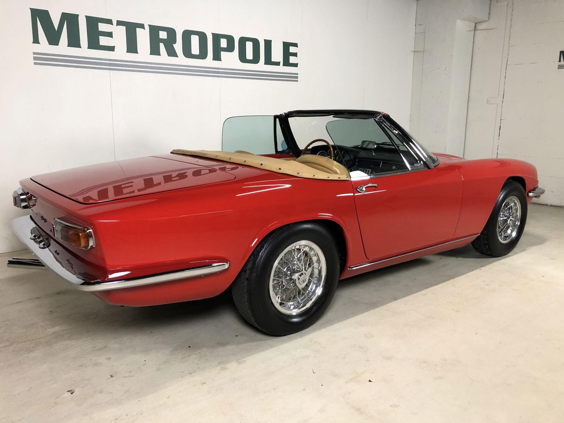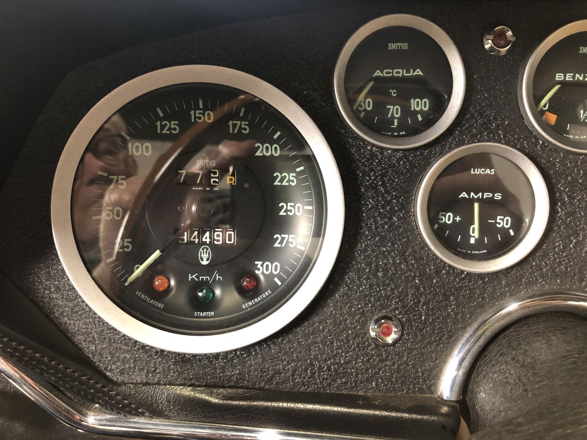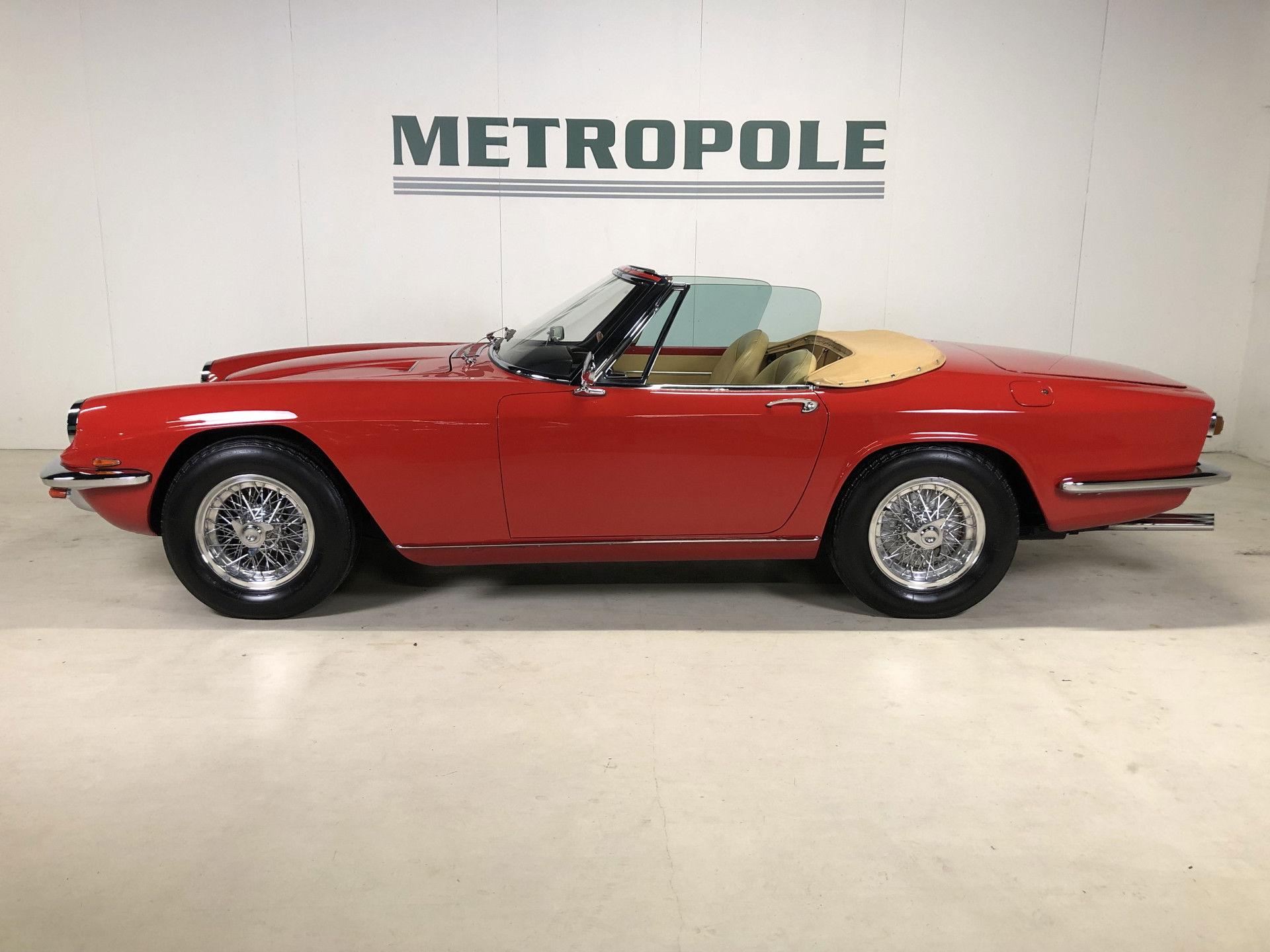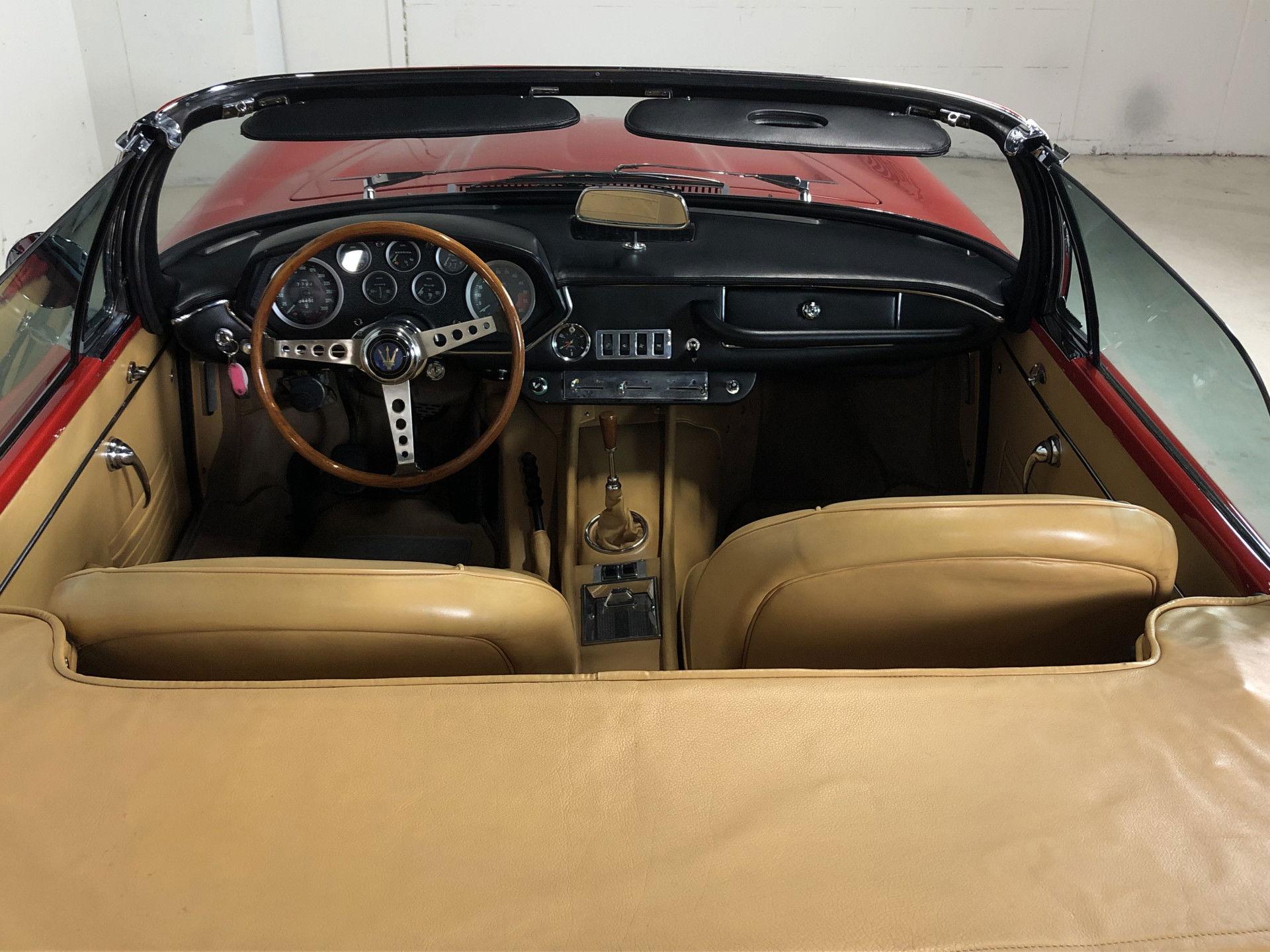 Of the approximately 950 Maserati Mistrals produced, only 124 were delivered as open Spyders. Like the Coupe, the Spyder was available with one of three six-cylinder engines. According to respected historian Adolfo Orsi, this particular Spyder left the factory with a 3.7-liter inline-six, mated to a five-speed manual transmission. Originally finished in Rosso Cordova with beige Connolly leather and fitted with wire wheels, the car was delivered to Umberto Nuvoli, presumably a prominent radiologist from Rome. The car's history is sketchy until around 2000, when it was sold at auction in Monaco, described as having been owned by an Austrian Maserati enthusiast. By then, the car had been restored and repainted in its current Italian Rosso Corsa, with beige leather upholstery.