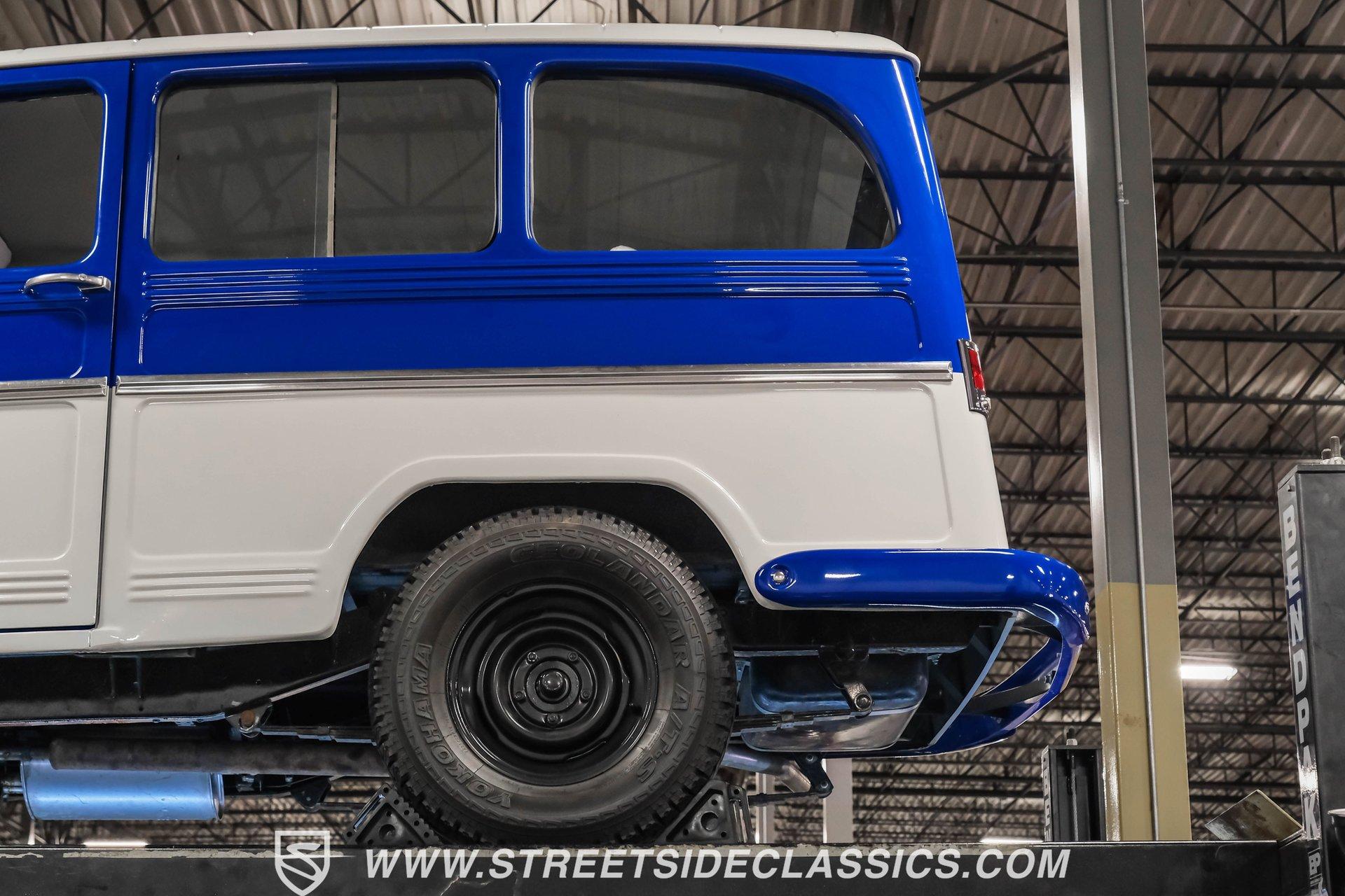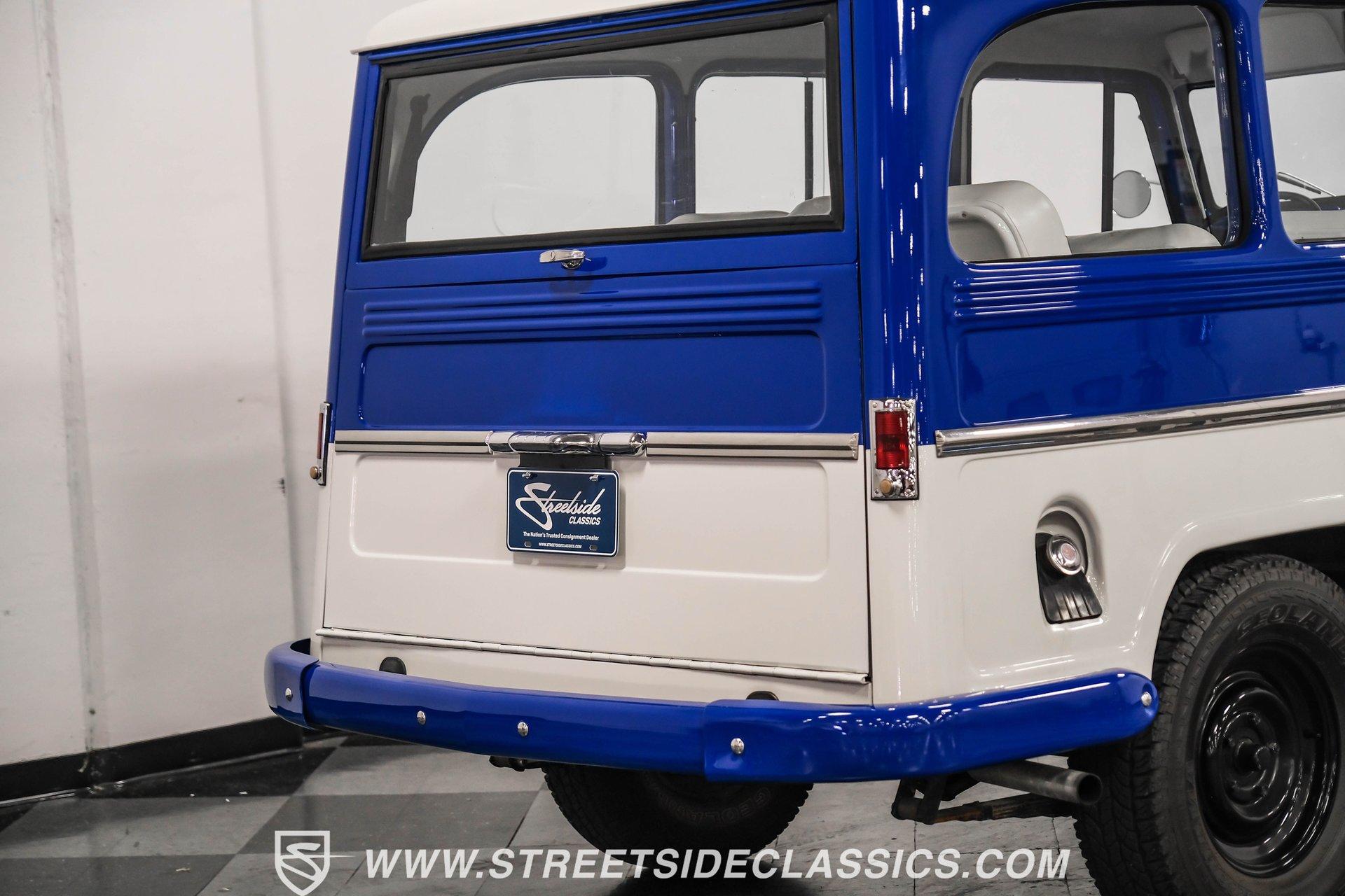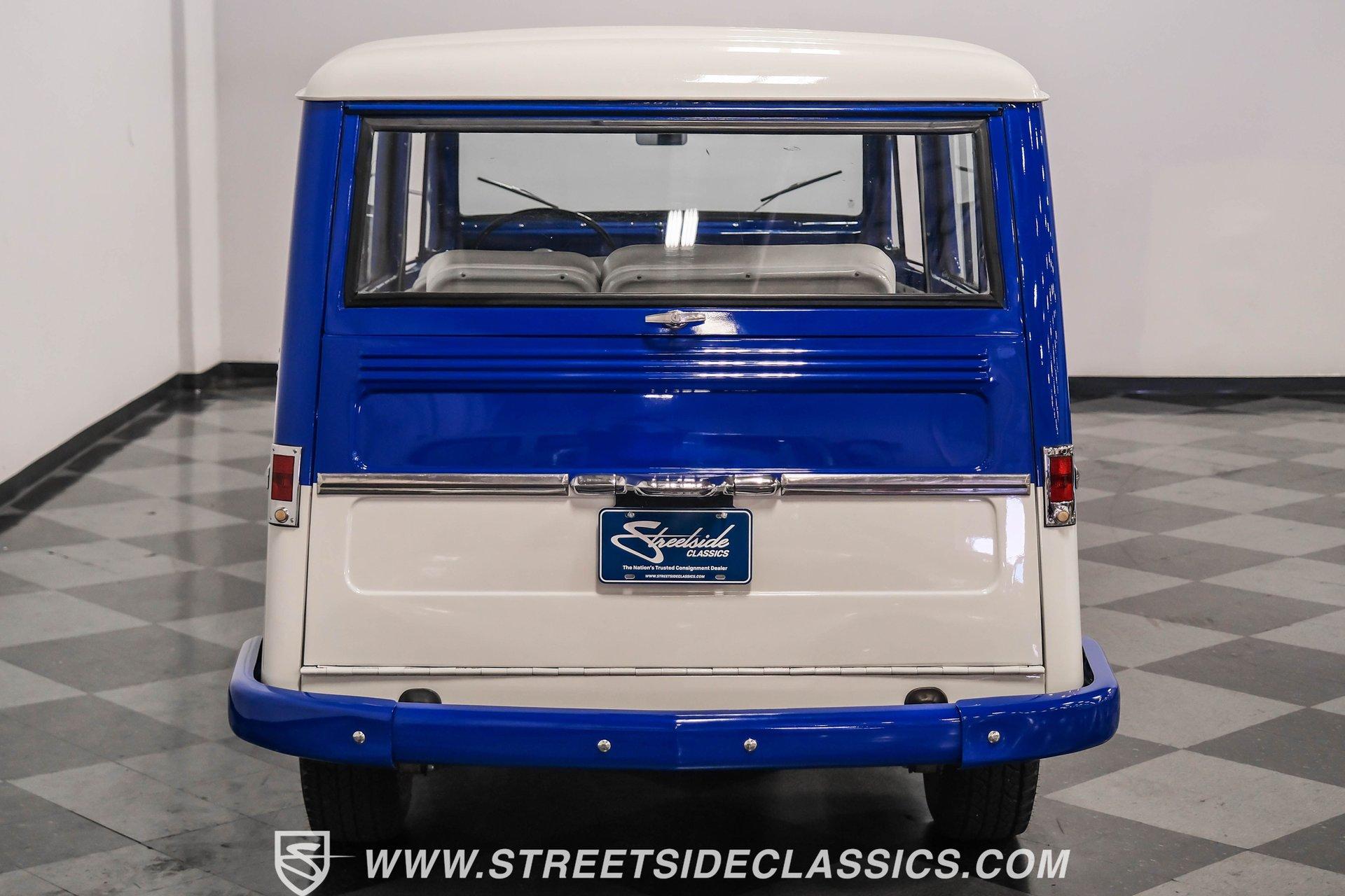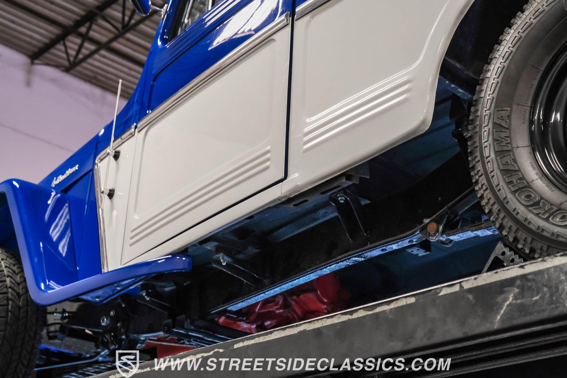 This is one "super clean" vehicle inside and out. It's hard enough to find a Willys as it is, but finding one in this good of shape is almost impossible. This 1961 Willys Jeep Wagon 4x4 has been completely restored and is dressed to impress. The Blue and White two-tone exterior instantly catches the eye with its black wheels, painted bumpers, and chrome trim. Its stance is imposing, the front grille even more so, and overall, it's simply a very cool vehicle to look at and enjoy. The interior continues the theme, with white and blue vinyl seats. The door panels as well carry the same look and are in equally good condition. The headliner is in great shape, and instead of carpet, the front features metal floors, while behind the front seats begins a set of wooden running boards over the steel floor. The dashboard is painted blue to match the exterior and looks outstanding. The steering wheel and speedometer have a stock appearance, as does the rest of the dash, except for one neatly mounted water temperature gauge beneath the dash. Door jambs, weatherstripping, and glass all look good with no major damage and the floor shifters are in good shape, easy to reach, and ready for fun. Under the hood, you'll find a very obedient 226 cubic-inch inline-6 cylinder engine, nicknamed the "Super Hurricane". It's paired with a 3-speed manual transmission that delivers power to the front and rear Dana 30 solid axles. Both axles use leaf springs with shocks for suspension duties, while at all four corners sit 15-inch painted black rims wrapped in 235/75R15 Yokohama tires. Drum brakes handle stopping power, and a stock exhaust system keeps this Willys sounding just right. Highlights: Four-Wheel Drive 226 Cubic-Inch Inline-6 Cylinder Engine (Super Hurricane) 3-Speed Manual Transmission Front And Rear Dana 30 Solid Axles Front And Rear, Leaf Springs And Shocks 15-Inch Painted Black Wheels Front And Rear 235/75R15 Yokohama Tires Heat And Defrost AM Radio Owner's Manual Here is a vehicle that runs and drives as good as it looks. This 1961 Willys Jeep Wagon 4x4 will treat you well as long as you treat it well. With a frame-off restoration, this Jeep has the potential to last someone a very long time. Call Today!