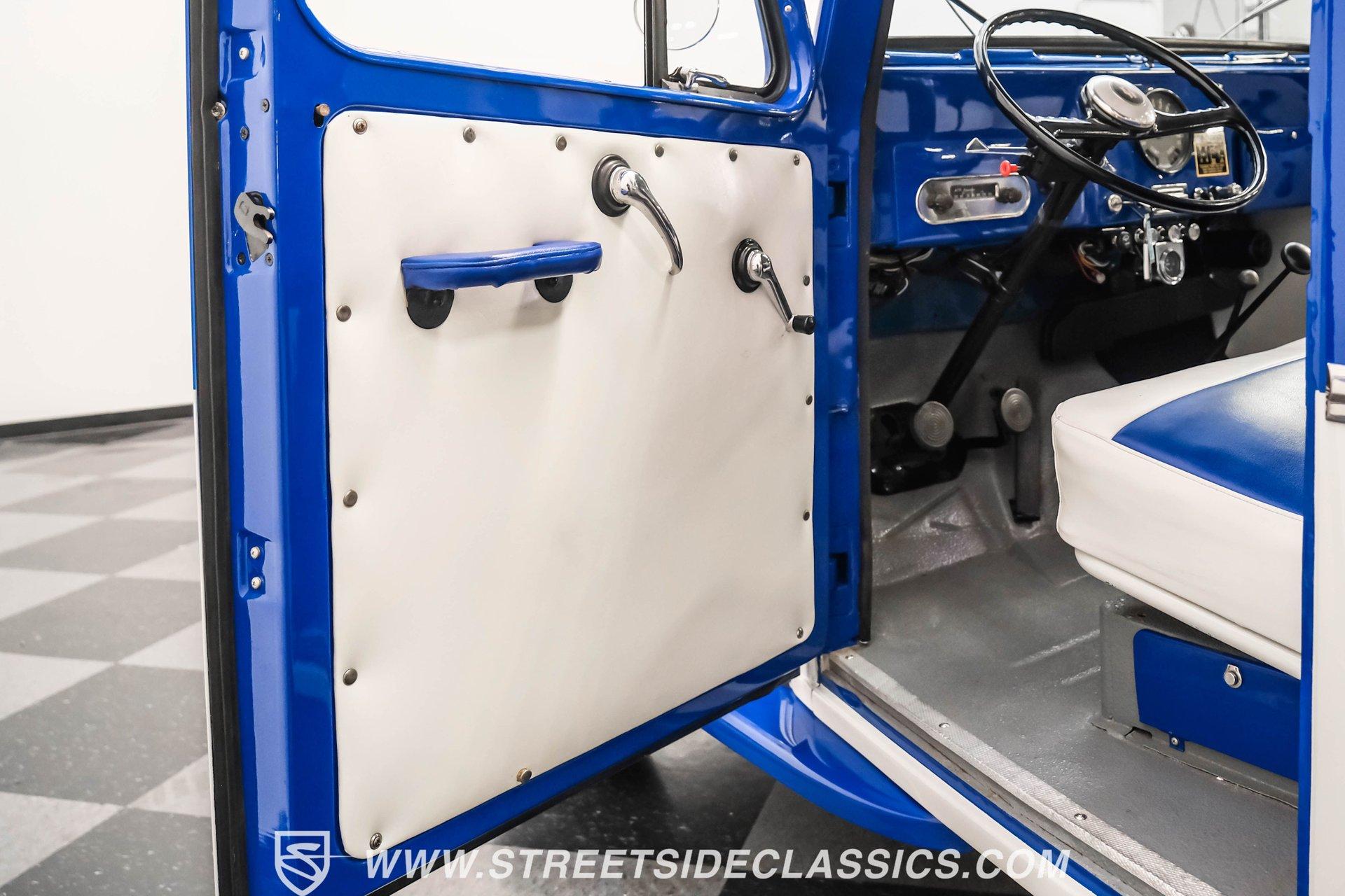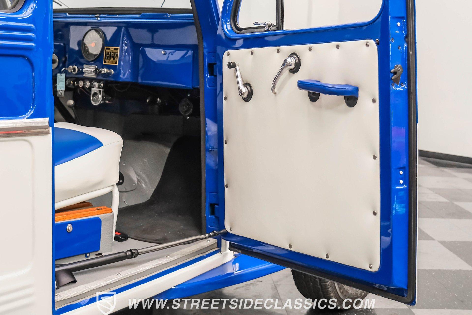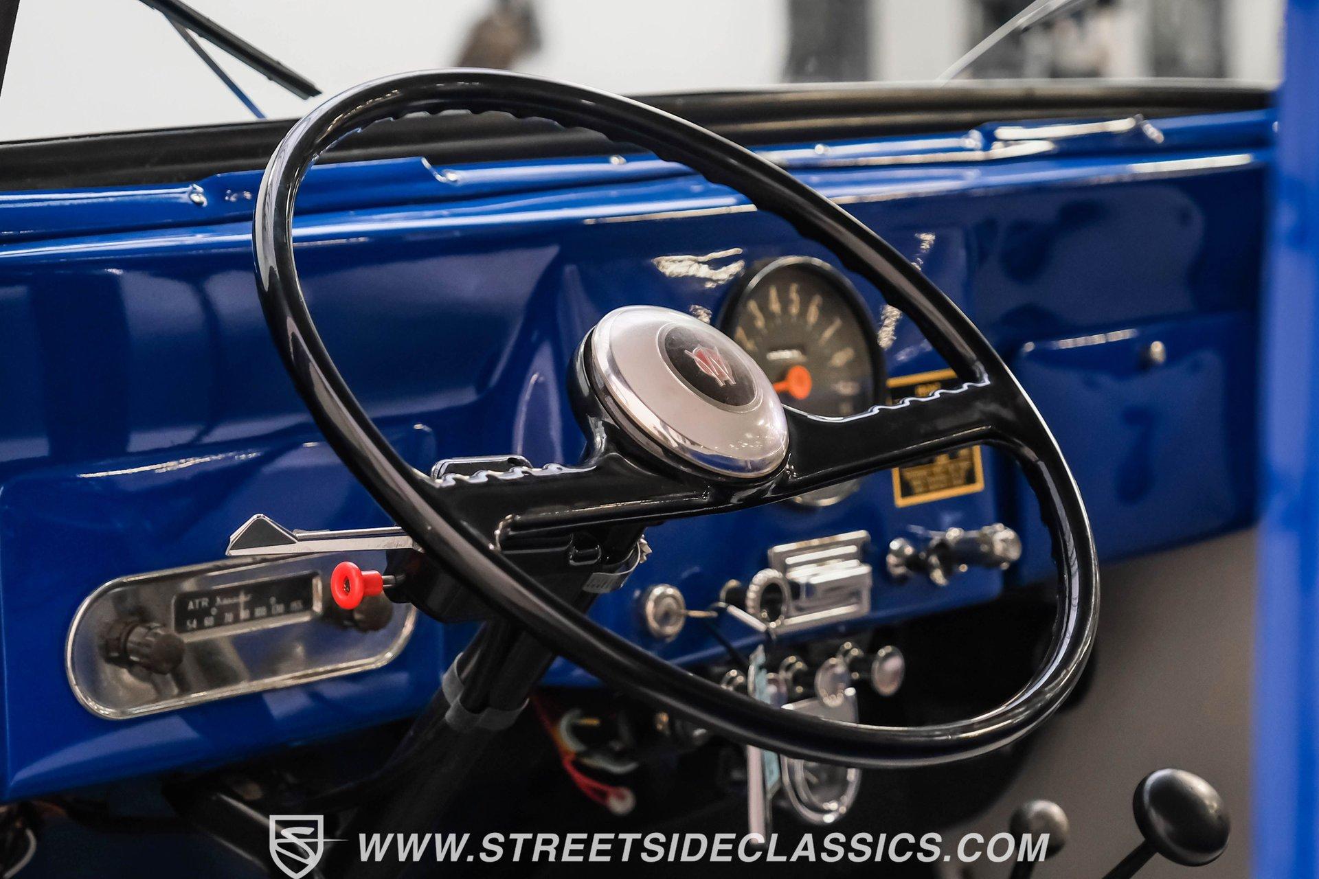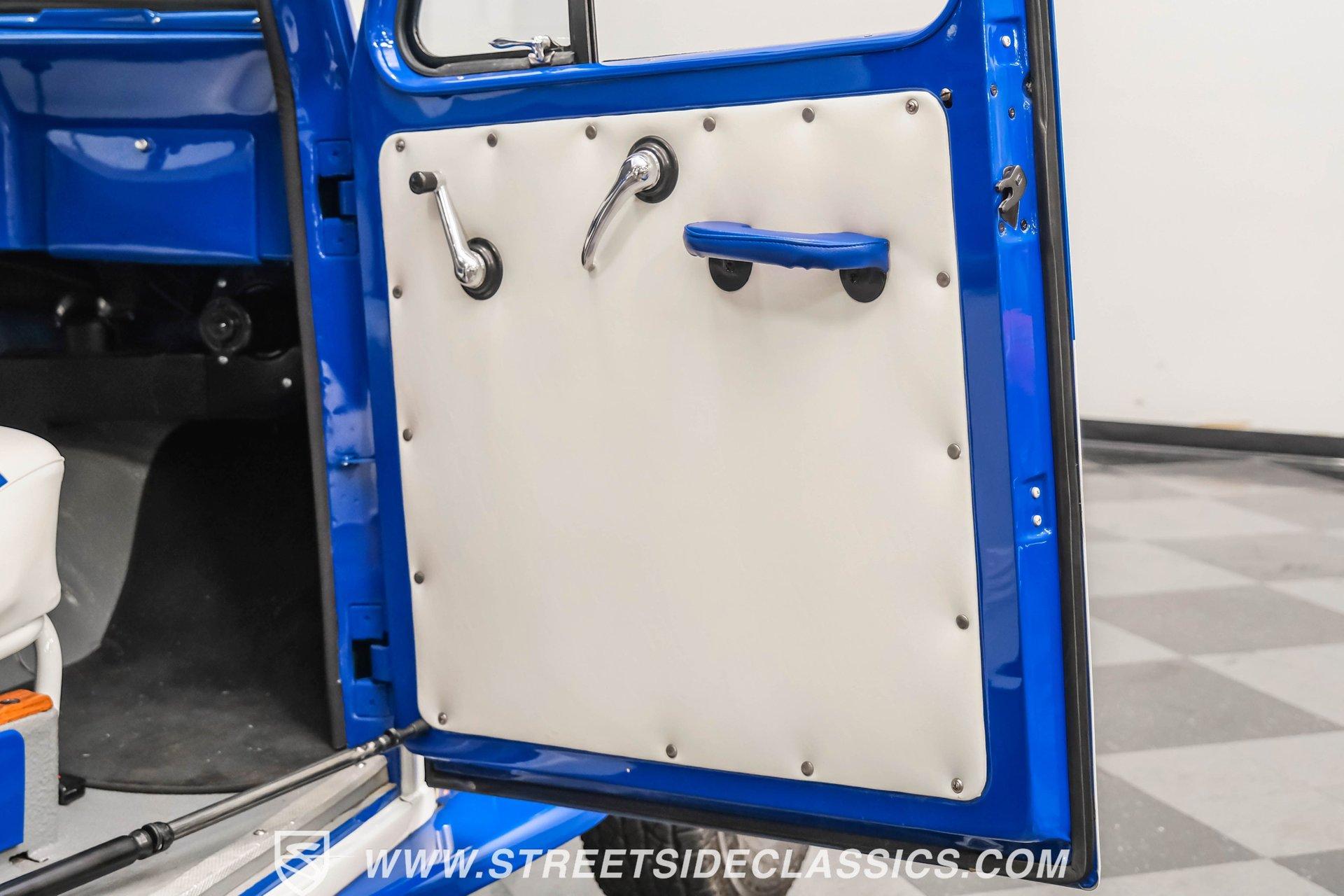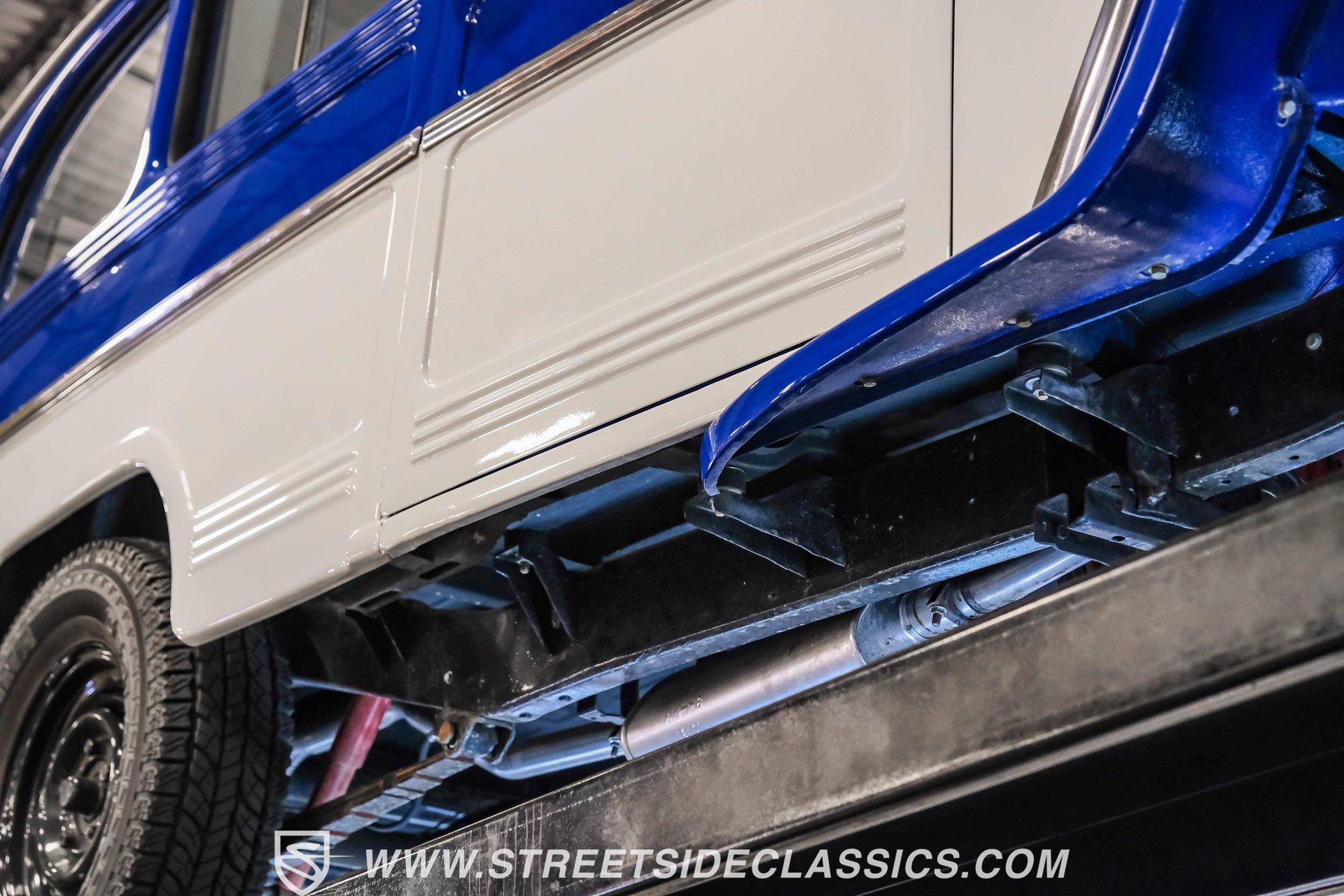 This is one "super clean" vehicle inside and out. It's hard enough to find a Willys as it is, but finding one in this good of shape is almost impossible. This 1961 Willys Jeep Wagon 4x4 has been completely restored and is dressed to impress. The Blue and White two-tone exterior instantly catches the eye with its black wheels, painted bumpers, and chrome trim. Its stance is imposing, the front grille even more so, and overall, it's simply a very cool vehicle to look at and enjoy. The interior continues the theme, with white and blue vinyl seats. The door panels as well carry the same look and are in equally good condition. The headliner is in great shape, and instead of carpet, the front features metal floors, while behind the front seats begins a set of wooden running boards over the steel floor. The dashboard is painted blue to match the exterior and looks outstanding. The steering wheel and speedometer have a stock appearance, as does the rest of the dash, except for one neatly mounted water temperature gauge beneath the dash. Door jambs, weatherstripping, and glass all look good with no major damage and the floor shifters are in good shape, easy to reach, and ready for fun. Under the hood, you'll find a very obedient 226 cubic-inch inline-6 cylinder engine, nicknamed the "Super Hurricane". It's paired with a 3-speed manual transmission that delivers power to the front and rear Dana 30 solid axles. Both axles use leaf springs with shocks for suspension duties, while at all four corners sit 15-inch painted black rims wrapped in 235/75R15 Yokohama tires. Drum brakes handle stopping power, and a stock exhaust system keeps this Willys sounding just right. Highlights: Four-Wheel Drive 226 Cubic-Inch Inline-6 Cylinder Engine (Super Hurricane) 3-Speed Manual Transmission Front And Rear Dana 30 Solid Axles Front And Rear, Leaf Springs And Shocks 15-Inch Painted Black Wheels Front And Rear 235/75R15 Yokohama Tires Heat And Defrost AM Radio Owner's Manual Here is a vehicle that runs and drives as good as it looks. This 1961 Willys Jeep Wagon 4x4 will treat you well as long as you treat it well. With a frame-off restoration, this Jeep has the potential to last someone a very long time. Call Today!