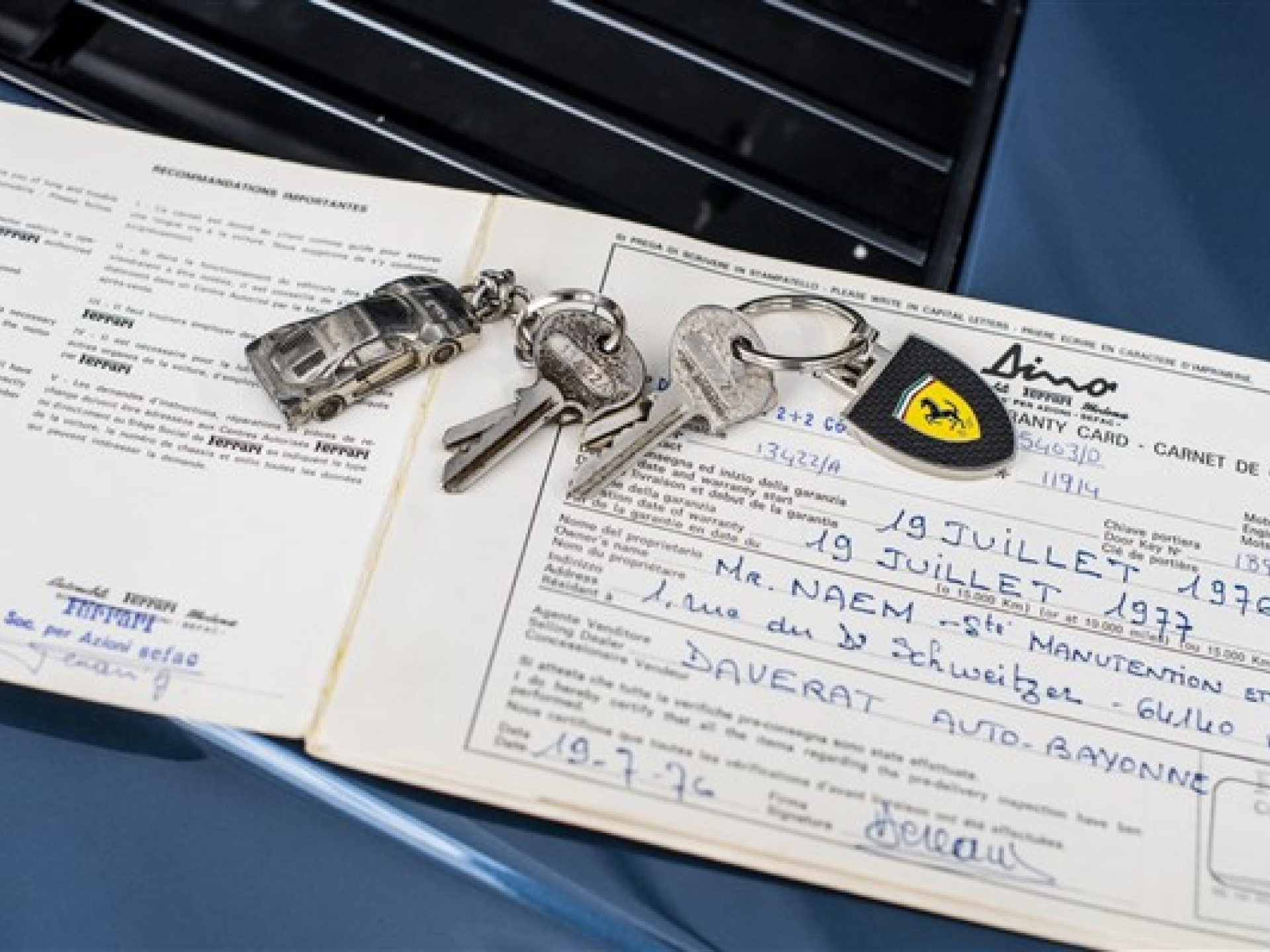 Our Dino 308GT4 was delivered in July 1976 by Ferrari agent Daverat in Bayonne. All of its owners are known, as is its mileage, as confirmed by its maintenance booklet and all of the copies of the registration documents and roadworthiness tests on file. Always perfectly maintained, it has undergone rigorous servicing and all the attention of its last owner. The distribution has been done, the carburetors are adjusted, the original rims have been restored etc. It is ready to take you on the winding roads of France, why not with your family!