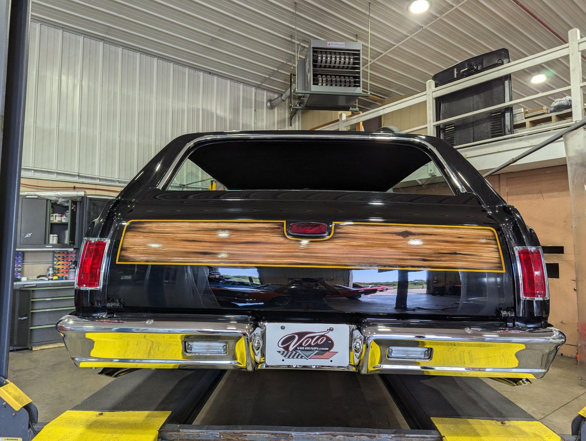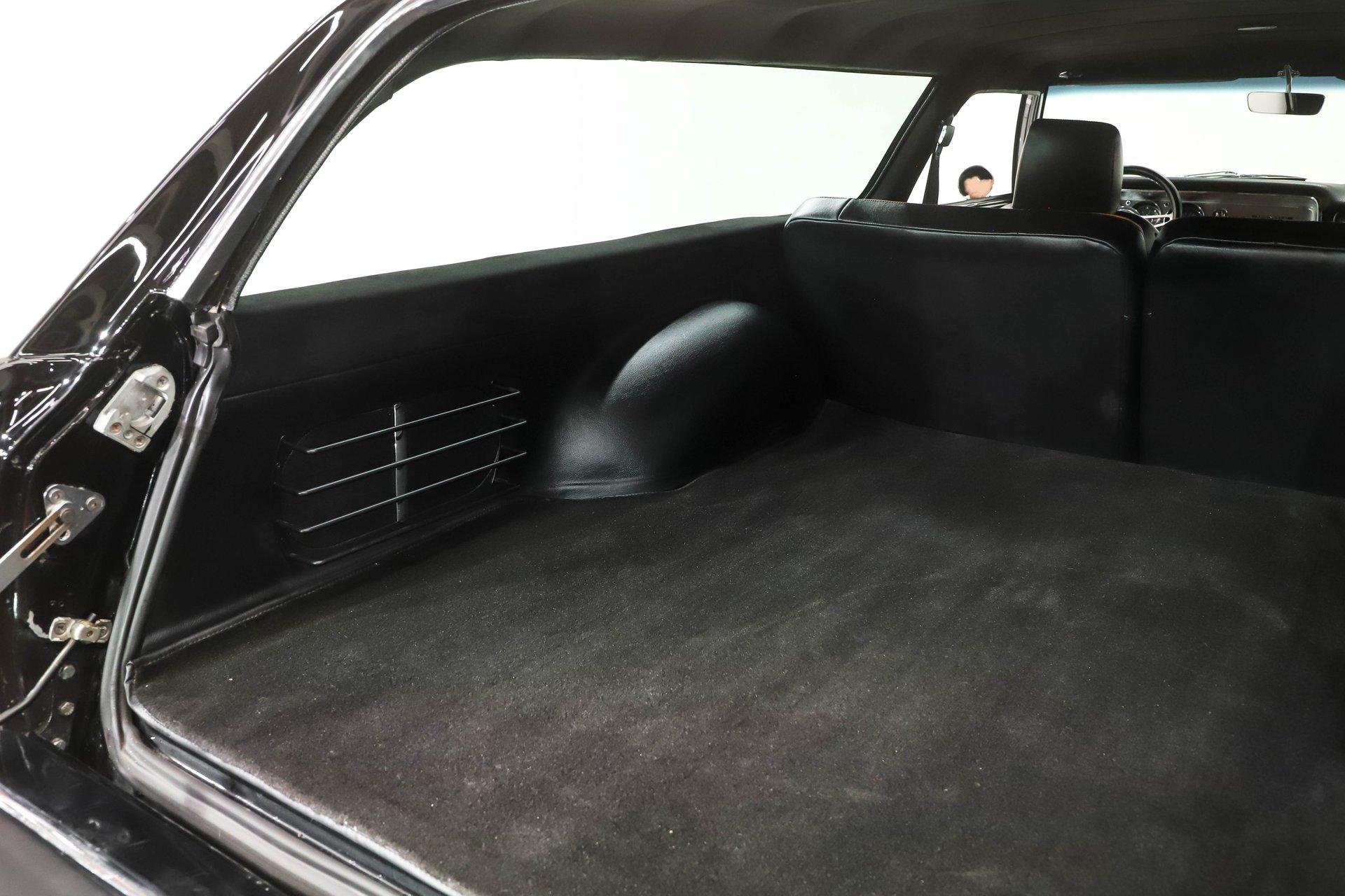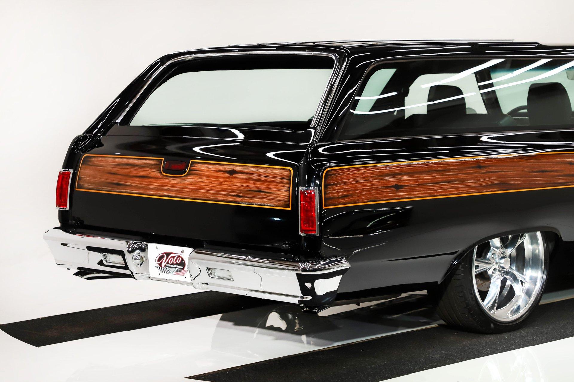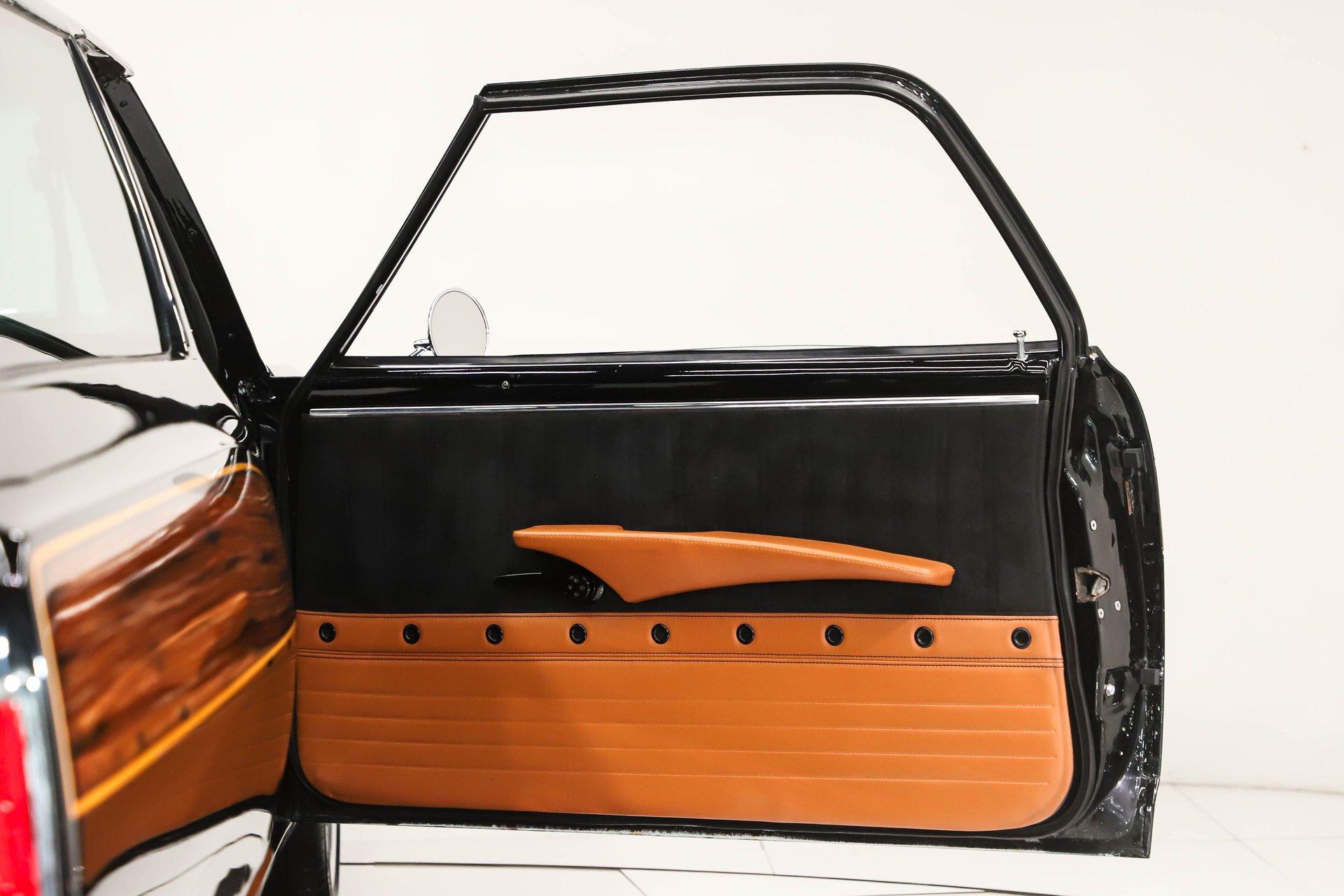 Celebrating our 65 year anniversary! This family owned and operated business was established in 1960, making us the oldest classic car dealership in America. Special thank you to all our customers for entrusting us to park the car of your dreams in your driveway while preserving automotive history for future generations to embrace and enjoy. -Grams family & Volo Museum staff INTRODUCTION: We just purchased this from Christopher Titus: an avid car collector, famous comedian and TV star. This is 1 of only 1,101 2 door wagons made in 1964. Now it's a 1 of 1 after Christopher spent 10 years on a complete body off frame custom build. Only 365 miles since completion! EXTERIOR: It's an attention getter, when have you seen another one? The black paint is smooth and shiny. The faux woodgrain gives it the west coast “woody” vibe. The body has some subtle custom changes: it was smoothed out by removing all the side moldings and emblems, the upper door window frame was rounded at the rear corner. All of the glass was replaced by Eddie Kotto custom glass. The windshield is flush mounted and the 2 piece side windows were replaced with 1 piece for a clean look. It has a custom grill, chrome strips were added to the roof, SS grilles were added to the hood, it has dual bowtie mirrors and it has billet door handles. The tailgate handle was replaced with an LED 3rd brake light. It is sitting on some staggered size Schott wheels: 18s in front, 20s in back. The are wearing Pirelli P Zero tires. INTERIOR: It was completely gutted then Dynamat sound deadener was installed. It was treated to an updated wiring harness and fuse panel too. It has very rich looking and comfortable TMI seats along with matching door panels. The console is custom made and upholstered to match. It features USB ports, power window switches, Vintage Air electric controls, cup holders and the best part: a manual 6-speed billet shifter! Upgraded custom carpet was cut and installed front to back. Overhead is a custom cloth headliner and visors. In front of me is a restored dash with optional dash pad, full set of custom gauges and a Foose wheel on the tilt column. The retro stereo is part of a great sounding system that includes an amp, kick panel speakers and 6x9s in back. There are seat belts for everybody; the front passengers get 3 point reclining belts. ENGINE COMPARTMENT: There's some extensive metal fabrication in here! The firewall was smoothed, custom shrouds were made over the engine, inner fenders and radiator. It's a GM performance crate Ramjet 350 making 345 horsepower. It features a fuel injection system that resembles the look of the vintage style with modern technology. It's dressed in some beautiful valve covers and breathers. It exhales through Heddmen headers. The front of the engine has a complete March runner system with billet brackets and pulleys, a serpentine belt, one wire polished alternator, mini polished a/c compressor and a polished power steering. An aluminum radiator with dual electric fans keeps it cool. The billet hinges look sharp and feel smooth. TRUNK COMPARTMENT: The power window switch is hidden in the console for the power window on the tailgate. You put the window down and reach in to release the tailgate. The rear compartment is upholstered and carpeted. On one side you have a sub woofer and the other side has a compartment that holds the battery. UNDERSIDE: The body was off the frame for a complete restoration with upgrades. The front end steering and suspension was completely replaced and upgraded with tubular control arms, fat swaybar and lowering springs. In back is a four link system with tubular control arms, lowering springs, a swaybar and air shocks. The fuel system was all replaced and compatible with fuel injection. The dual exhaust has stainless steel Magnaflow mufflers and a crossover pipe. The brake system has a custom e-brake assembly and disc brakes at all four of the wheels. Looking up at the motor it is clean and has a high torque starter. There's a custom scatter shield, a T56 Tremec 6-speed manual trans with a hydraulic clutch. A custom driveshaft leads back to the 10 bolt rear with cruising 3.23 gears and a chrome cover. The floors are all clean metal painted satin black, the frame is semi-gloss. SERVICE: We take pride in our cars and reputation. Therefore, we built a 2 million dollar, 10,000 square ft service center, and hired a team of technicians to work it. This is so we can sell you the best cars within reason. CONCLUSION: This is a very unique car to start with and now it's one of a kind. It makes a great cruiser: it's comfortable, has room for people and cargo, and it's loaded with nice features. That 6-speed will make some fun of it too! For nearly 30 years, I, Jay Grams, have personally written the highlights for almost every car in our collection. What I provide is my professional opinion based on my experience with these vehicles. However, opinions can vary, and I strongly recommend a personal inspection to form your own view. Our sales team is always available to answer any questions you may have. One great option is to request a personalized walk-around video, where we can showcase the car and share our team’s insights. **Our cars are displayed within a museum setting. If you are interested in a specific vehicle, please schedule an appointment with a salesperson to view it. Without an appointment, there is an admission fee to enter the showroom. If you decide to purchase a car, your admission will be refunded, and you'll receive a one-year museum membership. ☎️ 815 385 3644 9-5 central 📧 Sales@volocars.com Answered ASAP Air conditioning Power brakes 4 wheel disc Power steering Fuel Injection Power windows Retro stereo system Sport seats Console Tilt wheel Padded dash Faux woodgrain Schott wheels