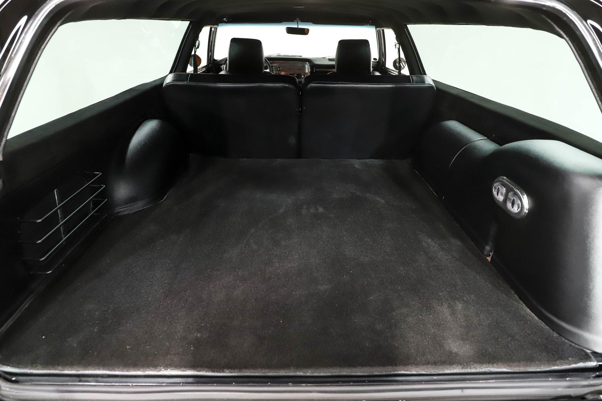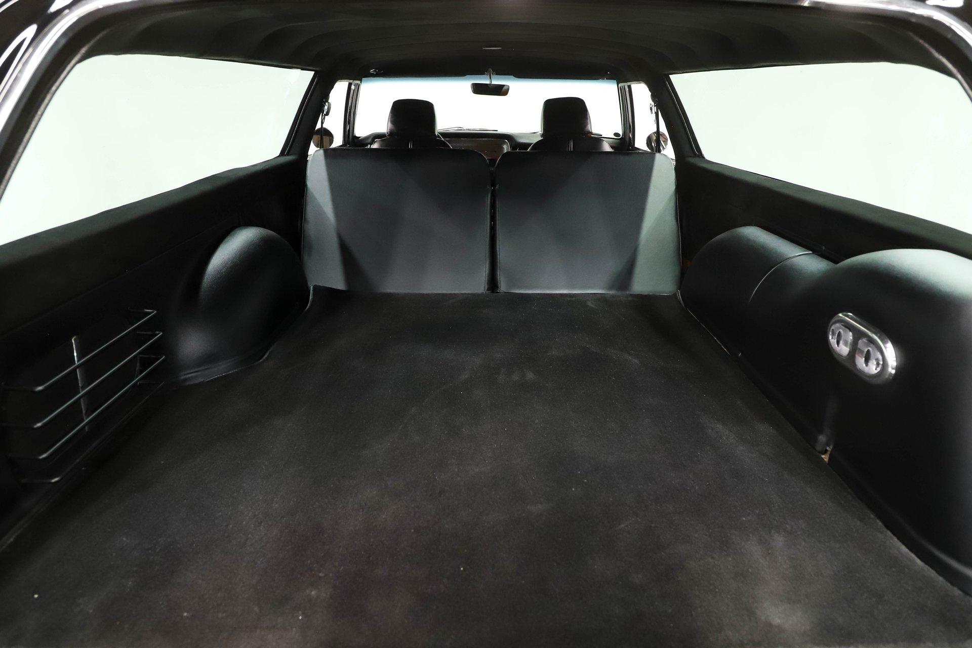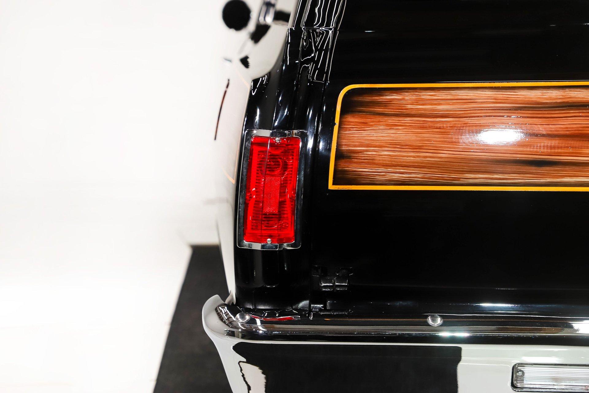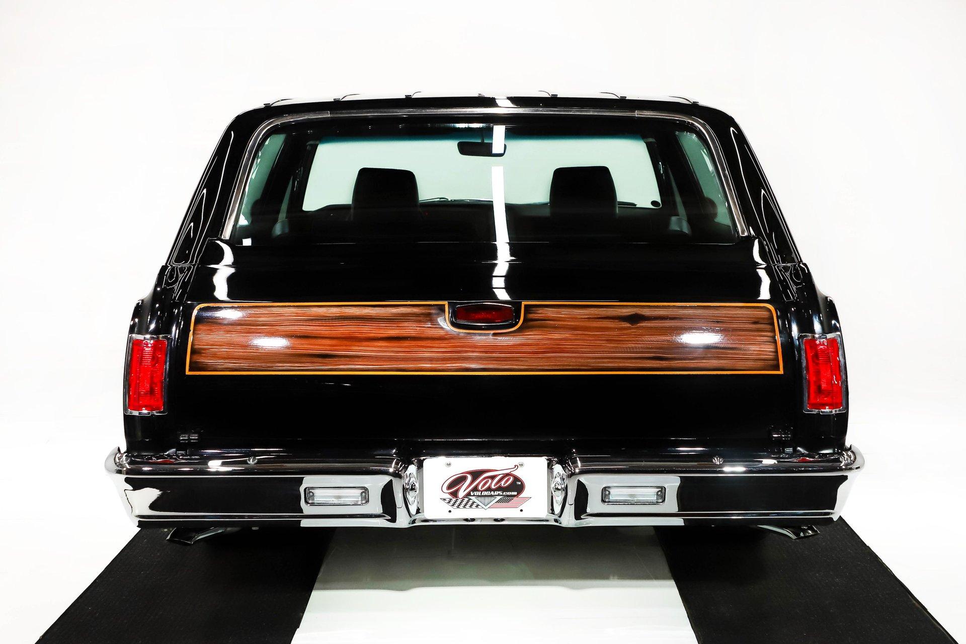 Celebrating our 65 year anniversary! This family owned and operated business was established in 1960, making us the oldest classic car dealership in America. Special thank you to all our customers for entrusting us to park the car of your dreams in your driveway while preserving automotive history for future generations to embrace and enjoy. -Grams family & Volo Museum staff INTRODUCTION: We just purchased this from Christopher Titus: an avid car collector, famous comedian and TV star. This is 1 of only 1,101 2 door wagons made in 1964. Now it's a 1 of 1 after Christopher spent 10 years on a complete body off frame custom build. Only 365 miles since completion! EXTERIOR: It's an attention getter, when have you seen another one? The black paint is smooth and shiny. The faux woodgrain gives it the west coast “woody” vibe. The body has some subtle custom changes: it was smoothed out by removing all the side moldings and emblems, the upper door window frame was rounded at the rear corner. All of the glass was replaced by Eddie Kotto custom glass. The windshield is flush mounted and the 2 piece side windows were replaced with 1 piece for a clean look. It has a custom grill, chrome strips were added to the roof, SS grilles were added to the hood, it has dual bowtie mirrors and it has billet door handles. The tailgate handle was replaced with an LED 3rd brake light. It is sitting on some staggered size Schott wheels: 18s in front, 20s in back. The are wearing Pirelli P Zero tires. INTERIOR: It was completely gutted then Dynamat sound deadener was installed. It was treated to an updated wiring harness and fuse panel too. It has very rich looking and comfortable TMI seats along with matching door panels. The console is custom made and upholstered to match. It features USB ports, power window switches, Vintage Air electric controls, cup holders and the best part: a manual 6-speed billet shifter! Upgraded custom carpet was cut and installed front to back. Overhead is a custom cloth headliner and visors. In front of me is a restored dash with optional dash pad, full set of custom gauges and a Foose wheel on the tilt column. The retro stereo is part of a great sounding system that includes an amp, kick panel speakers and 6x9s in back. There are seat belts for everybody; the front passengers get 3 point reclining belts. ENGINE COMPARTMENT: There's some extensive metal fabrication in here! The firewall was smoothed, custom shrouds were made over the engine, inner fenders and radiator. It's a GM performance crate Ramjet 350 making 345 horsepower. It features a fuel injection system that resembles the look of the vintage style with modern technology. It's dressed in some beautiful valve covers and breathers. It exhales through Heddmen headers. The front of the engine has a complete March runner system with billet brackets and pulleys, a serpentine belt, one wire polished alternator, mini polished a/c compressor and a polished power steering. An aluminum radiator with dual electric fans keeps it cool. The billet hinges look sharp and feel smooth. TRUNK COMPARTMENT: The power window switch is hidden in the console for the power window on the tailgate. You put the window down and reach in to release the tailgate. The rear compartment is upholstered and carpeted. On one side you have a sub woofer and the other side has a compartment that holds the battery. UNDERSIDE: The body was off the frame for a complete restoration with upgrades. The front end steering and suspension was completely replaced and upgraded with tubular control arms, fat swaybar and lowering springs. In back is a four link system with tubular control arms, lowering springs, a swaybar and air shocks. The fuel system was all replaced and compatible with fuel injection. The dual exhaust has stainless steel Magnaflow mufflers and a crossover pipe. The brake system has a custom e-brake assembly and disc brakes at all four of the wheels. Looking up at the motor it is clean and has a high torque starter. There's a custom scatter shield, a T56 Tremec 6-speed manual trans with a hydraulic clutch. A custom driveshaft leads back to the 10 bolt rear with cruising 3.23 gears and a chrome cover. The floors are all clean metal painted satin black, the frame is semi-gloss. SERVICE: We take pride in our cars and reputation. Therefore, we built a 2 million dollar, 10,000 square ft service center, and hired a team of technicians to work it. This is so we can sell you the best cars within reason. CONCLUSION: This is a very unique car to start with and now it's one of a kind. It makes a great cruiser: it's comfortable, has room for people and cargo, and it's loaded with nice features. That 6-speed will make some fun of it too! For nearly 30 years, I, Jay Grams, have personally written the highlights for almost every car in our collection. What I provide is my professional opinion based on my experience with these vehicles. However, opinions can vary, and I strongly recommend a personal inspection to form your own view. Our sales team is always available to answer any questions you may have. One great option is to request a personalized walk-around video, where we can showcase the car and share our team’s insights. **Our cars are displayed within a museum setting. If you are interested in a specific vehicle, please schedule an appointment with a salesperson to view it. Without an appointment, there is an admission fee to enter the showroom. If you decide to purchase a car, your admission will be refunded, and you'll receive a one-year museum membership. ☎️ 815 385 3644 9-5 central 📧 Sales@volocars.com Answered ASAP Air conditioning Power brakes 4 wheel disc Power steering Fuel Injection Power windows Retro stereo system Sport seats Console Tilt wheel Padded dash Faux woodgrain Schott wheels