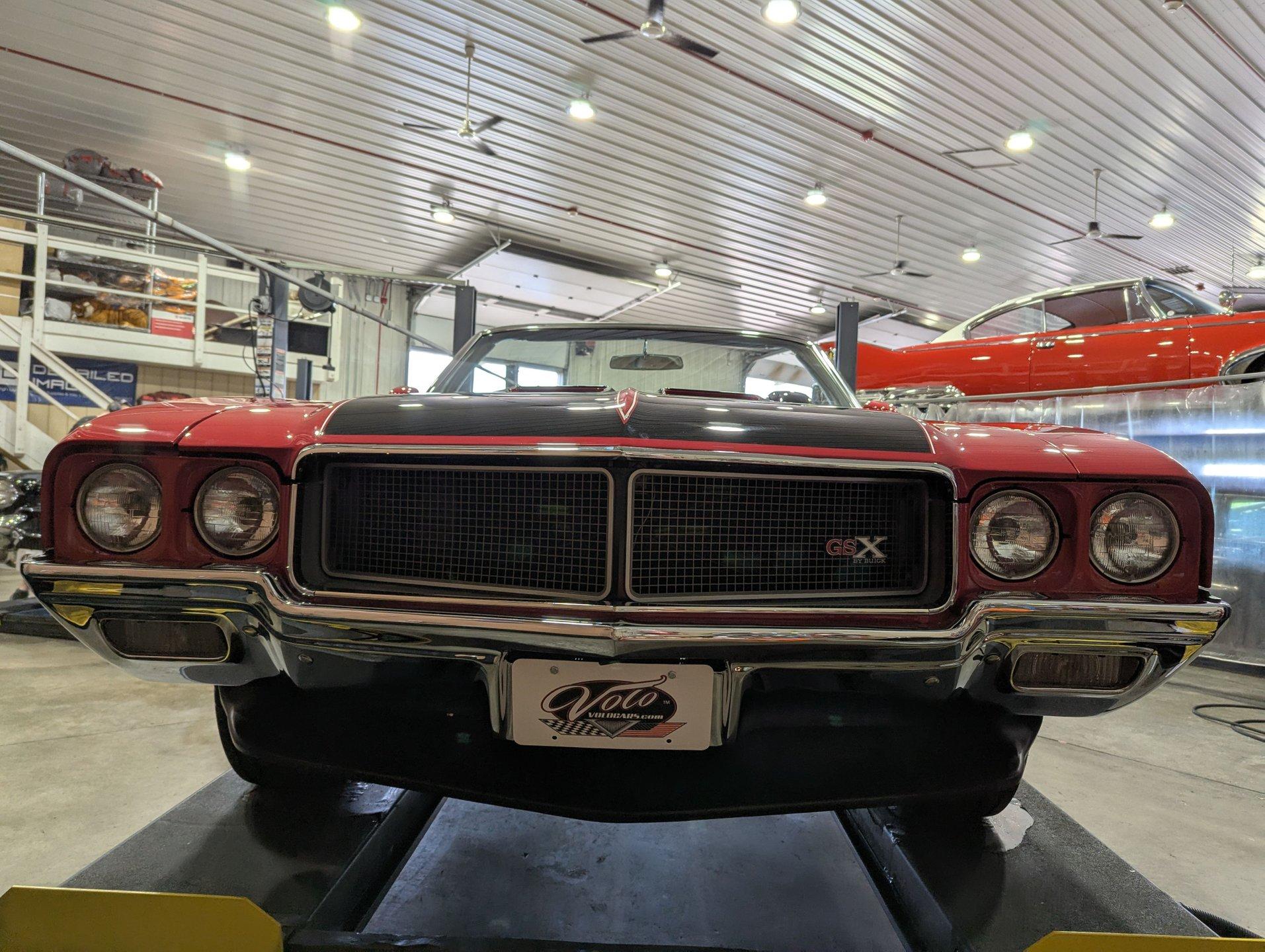 Celebrating our 65 year anniversary! This family owned and operated business was established in 1960, making us the oldest classic car dealership in America. Special thank you to all our customers for entrusting us to park the car of your dreams in your driveway while preserving automotive history for future generations to embrace and enjoy. -Grams family & Volo Museum staff INTRODUCTION: Hotter than a housewife watching Fifty Shades of Grey! This is a genuine GS 455 that has the correct engine, factory born red with white interior, and is documented with the original order form. Everything functions as it should, I wouldn't be afraid to drive this car anywhere. Highly detailed and dialed in. When I say detailed I mean it, even the underside is exceptional. This is luxury muscle at its finest! EXTERIOR: Smoking hot! This exterior speaks for itself! The Fire Red paint was applied with expert precision then polished to a slick and reflective finish. All the GSX striping is painted on and really makes the entire car pop. Looking down the side of the 100% laser straight body you will see nothing but smooth contours and sharp lines. The fit and finish are exceptional. All the panels have been painstakingly aligned square and flush with consistent gaps that are right on the money. The heavy doors do not sag when opened and close easily with a solid thud that sounds like quality. All the moldings fit properly and the remaining brightwork has a magnificent shine. The white power vinyl top has been replaced. The functioning Ram Air Hood with heads-up tachometer looks so tough plus the front and rear spoilers really enhance the profile. The front grille is spotless and the GSX emblem is a cool little touch. The headlights were upgraded with much brighter halogen units. The tail lights look to be original but in fantastic condition. It is rolling on beautiful 15” chrome Buick wheels wrapped in BFGoodrich Radial T/A tires that compliment the entire ensemble perfectly. INTERIOR: White and done right! The factory correct Ivory interior has been totally refurbished and looks tremendous. The front bench seat with fold down armrest and adjustable headrests has been nicely reupholstered. The rear seat has been recovered with matching vinyl. Both front and rear are equipped with seatbelts. The door panels have also been redone and are outfitted with power window switches. There is a remote toggle for the driver side mirror. The dash pad was replaced and has no cracks. The gauges look great and the clock is functioning. The power convertible top switch is conveniently located near the shifter. It has a tilt column and good looking steering wheel. The sun visors and carpeting have both been replaced as well. ENGINE COMPARTMENT: Pretty and proper! The correct Buick 455 V8 is just glistening. It has a functioning Ram Air Hood and correct dual snorkel air cleaner. Everything looks fresh with nice red paint, new belts, hoses, alternator, power steering pump, brake master and power booster too. The wiper motor was also replaced, squirters are hooked up, horns are hooked up, and the battery is properly secured. The radiator looks like it was replaced or rebuilt and even has its correct overflow bottle. The fender wells and firewall have been neatly painted satin black. The original cowl tag is in place. The hinges were restored and the bottom of the steel hood is complete with insulation. TRUNK COMPARTMENT: Clean and complete! The underside of the trunk lid and jamb are painted nice and glossy just like the body. The weatherstrip was replaced, latch mechanism refurbished, and it also has reproduction stickers. Inside is all solid and rust-free metal with a neatly applied spatter finish paint. It is also equipped with a full size spare tire, hold down, jack assembly, and vinyl trunk mat. UNDERSIDE: Dazzling and detailed! All the steering components look new and have been replaced including the steering gearbox by Steeda. The front suspension looks fresh with replaced shocks and springs, it also has a sway bar. The rear suspension was also redone with new springs and shocks and a sway bar too. It is equipped with front power disc brakes plus the master cylinder, brake booster and all the lines were replaced as well. The emergency brake is even hooked up. The entire dual exhaust system was redone and purrs like a lion. The gas tank was replaced and has new lines too. Looking up at the engine is satisfying with all the fresh red paint and lots of new components. The numbers matching Turbo 400 automatic transmission was gone through, it has a new pan, linkage, and trans mount. The rebuilt drive shaft leads back to a fresh looking 10 bolt posi rear end. The floors are nice and smooth, rust-free metal that have a neatly applied coat of semi-gloss black paint. SERVICE: We take pride in our cars and reputation. Therefore, we built a 2 million dollar, 10,000 square foot service center, and hired a team of technicians to service the essentials on every car we sell. CONCLUSION: Even in our showroom full of breathing classic cars, this one stands out! A documented GS convertible with a 455 and lots of luxuries plus the desirable colors, outstanding fit, and all the fine details attended to, this car is an absolute winner! Sizzle sizzle! For nearly 30 years, I, Jay Grams, have personally written the highlights for almost every car in our collection. What I provide is my professional opinion based on my experience with these vehicles. However, opinions can vary, and I strongly recommend a personal inspection to form your own view. Our sales team is always available to answer any questions you may have. One great option is to request a personalized walk-around video, where we can showcase the car and share our team’s insights. **Our cars are displayed within a museum setting. If you are interested in a specific vehicle, please schedule an appointment with a salesperson to view it. Without an appointment, there is an admission