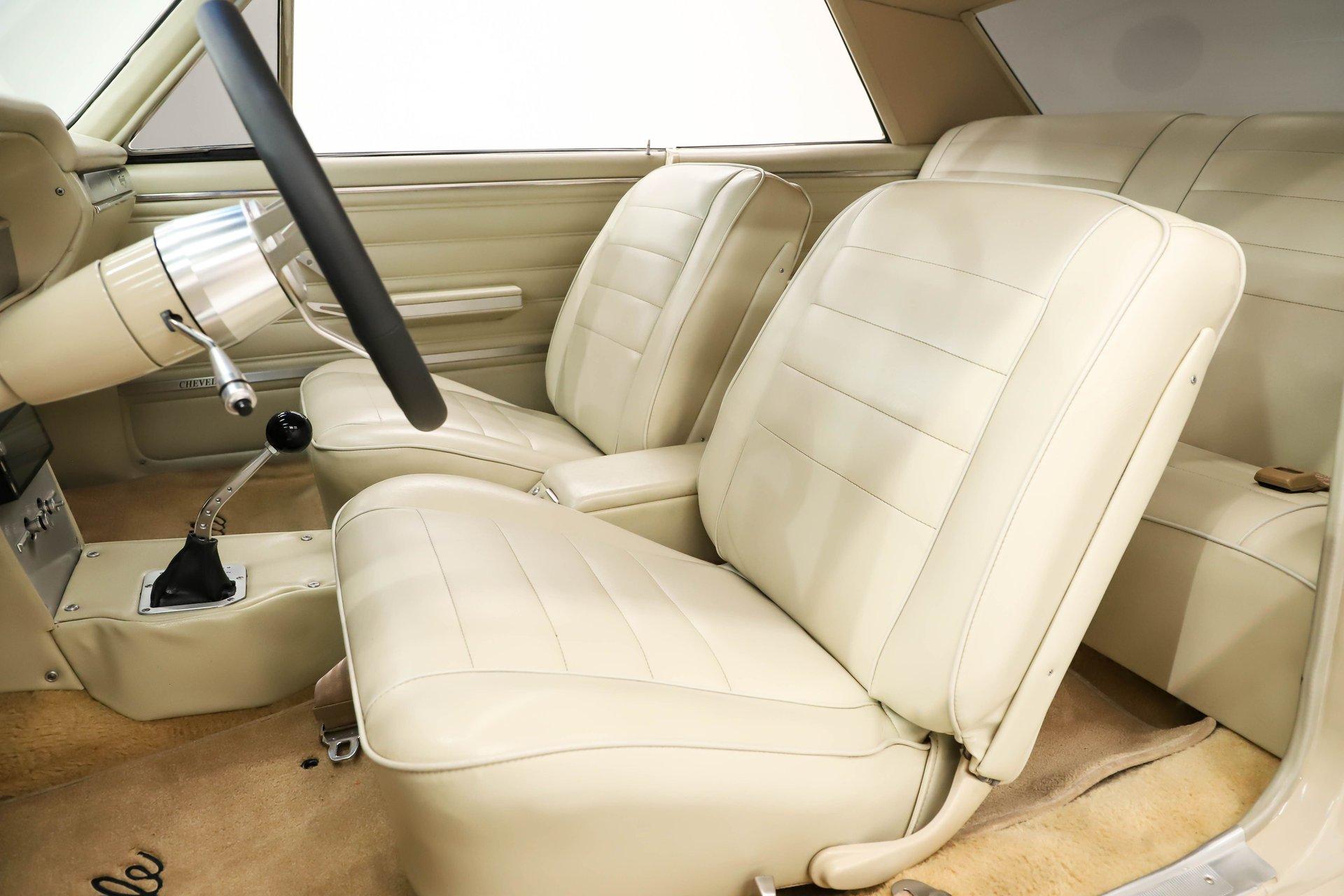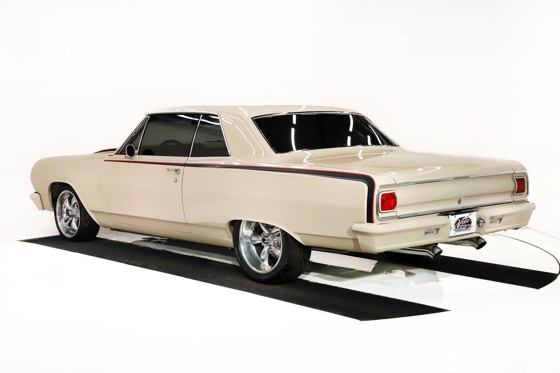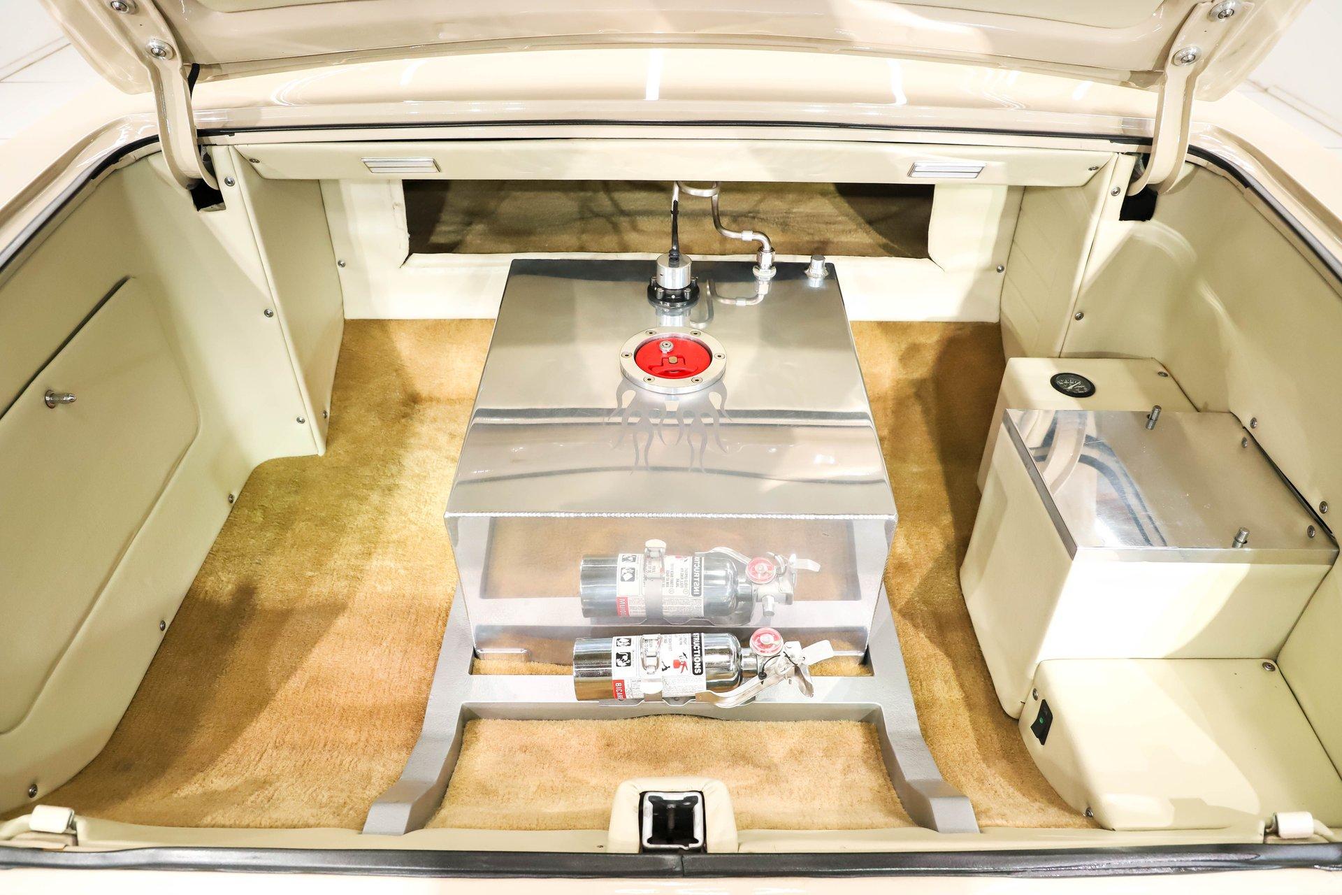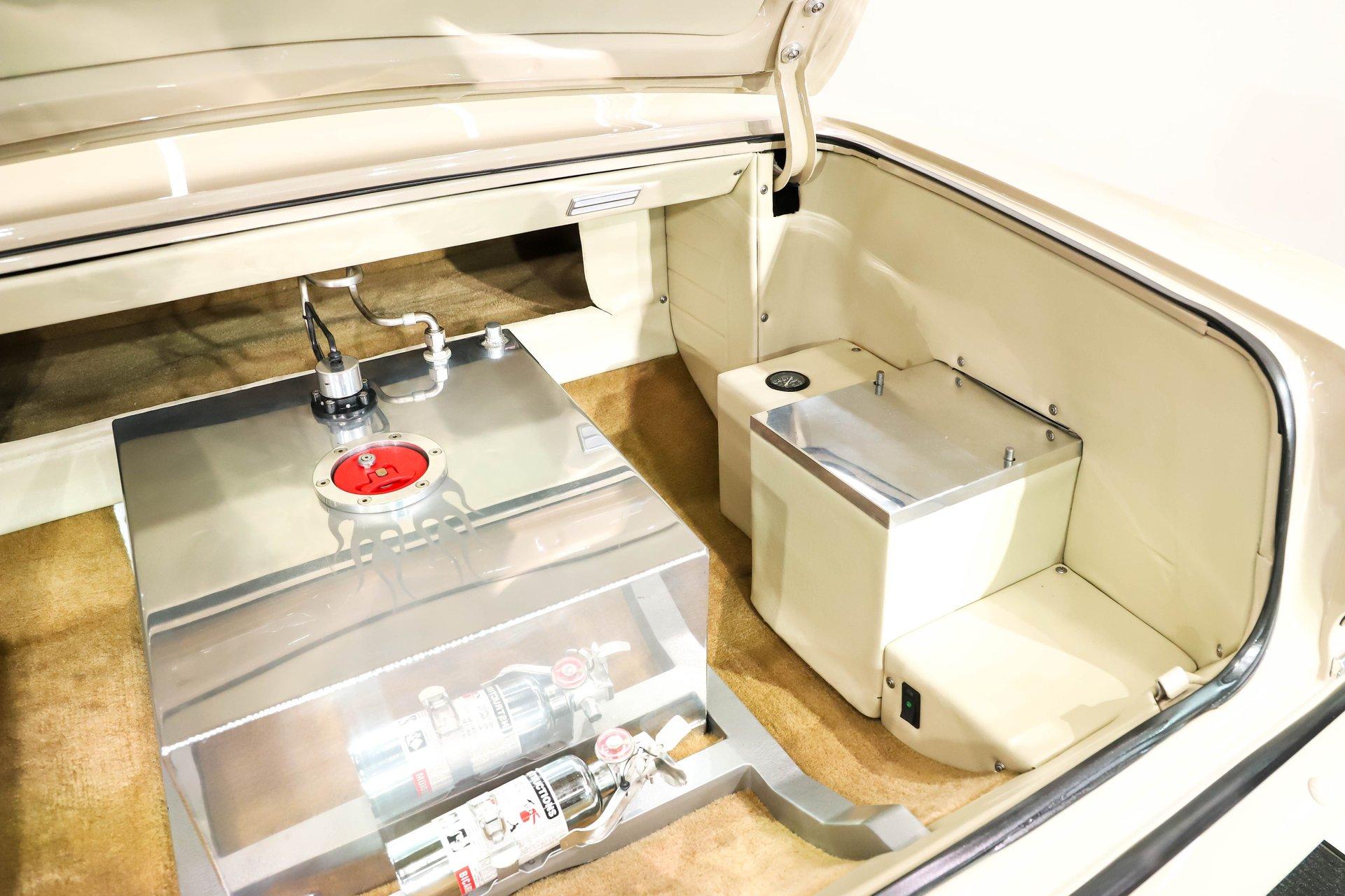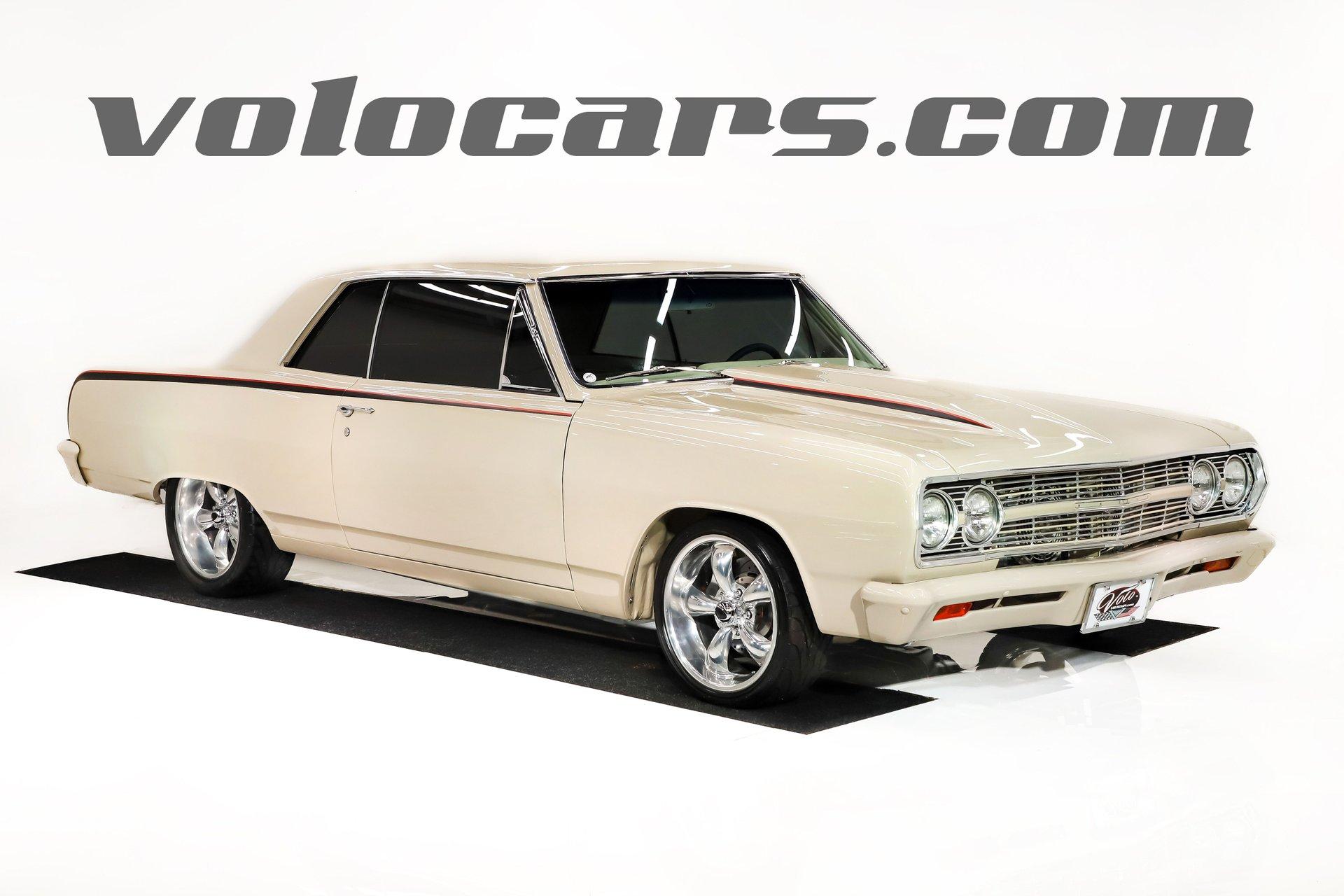Celebrating our 65 year anniversary! This family owned and operated business was established in 1960, making us the oldest classic car dealership in America. Special thank you to all our customers for entrusting us to park the car of your dreams in your driveway while preserving automotive history for future generations to embrace and enjoy. -Grams family & Volo Museum staff INTRODUCTION: Very meticulous frame off build with many handmade details! Don't let the subtle beige fool you, there's a dual quad stroker under the hood, and a built 4-speed with overdrive, a posi and custom chassis under the car. It is beautifully detailed throughout! EXTERIOR: California car with a super clean body. A metal cowl hood was added, the laser straight panels fit square and flush. The beige paint is polished smooth and glossy. The bumpers were color matched. Decal stripes were added to give it some pop! The rest of the chrome and trim has been replaced or restored. The windshield was replaced and the windows were tinted. The weatherstrips were replaced. There is a third brake light custom built into the rear molding and a back up camera mounted above the license plate. so backup camera. It's rolling on Coy's five spoke aluminum wheels wrapped in G-Force tires, 17s in front and 18s in back that are much wider. INTERIOR: It has been completely redone and has several custom touches. Upgraded with a Ron Francis wiring system. On the floor it has plush carpets with Lloyd's embroidered mats. The center console is home to the stereo, headlight switch, vents, air ride controls and a four-speed shifter with a custom drilled handle. The lower dash is upholstered and has dash pad on top. The instrument panel is custom with a beautiful set of Dakota Digital gauges. It has a nice cushion grip steering wheel and the turn signal lever was custom fitted with a button that controls the overdrive. The air ride gauge is below the dash and seat belts were installed. The door panels are reproduction with custom-made billet trim, handles and armrest bases. The headliner and visors were replaced. ENGINE COMPARTMENT: It was meticulously designed, assembled and detailed. The heartbeat comes from a 385 that's been built, balanced and stroked. It has aluminum heads, dual quad intake with fuel injection, MSD ignition and coated headers. Beautifully finished tall aluminum valve covers, the front of the motor has polished brackets, alternator and pulleys with a serpentine belt. There are brushed aluminum inserts on the firewall and above the radiator. It runs cool with an electric water pump, a big aluminum radiator and overflow bottle with three electric fans. I am really impressed with the hard pipe hoses with custom fittings. The power brake booster is chrome and the master cylinder is polished. There is so much detail and handmade custom items in this engine compartment. TRUNK COMPARTMENT: Even the trunk is filled with little details! Under the trunk lid and the jamb are painted smooth like the car. It has custom upholstered inserts on the bottom of the trunk lid and billet stainless hardware. Inside it's completely boxed and upholstered. It has a side compartment that opens and built in lights that turn on with a switch. There's a battery box, the compressor and components for the air ride. The floor is carpeted and there's a special made cradle with hammered silver paint that holds the polished fuel cell. A chrome fire extinguisher, car cover and a bra is included. UNDERSIDE: It was treated to a very detailed body off frame restoration! The frame was boxed, it has been smoothed out and painted hammered silver and has bow tie shaped access holes. Up front is upgraded with tubular control arms, coilover adjustable air bags, upgraded sway bar with billet brackets. The steering was all rebuilt, it has a 525 steering box. In back it has upgraded billet lower control arms, adjustable upper control arms, a swaybar, adjustable gas shocks and air bags. Stainless fuel and brake lines, and stainless e-brake cables were installed. The stainless Magnaflow exhaust system has an X-Pipe, machine turned pipes and polished turn down tips. The brakes were upgraded with polished calipers, drilled and slotted disc at all four wheels. Looking up at the motor the oil pan is painted silver like the frame and there is a high torque starter. A Lakewood scatter shield houses a Centerforce clutch. The Muncie M21 is a reproduction Auto Gear Supercase, and there's a Gear Vendors overdrive and a Hurst Competition Plus linkage. Complete rebuild of the 12 bolt rear end was done by Pro Differentials and it has an aluminum girdle cover. The rust free floors are pristine. They were given two coats of bed liner, two coats of primer, two coats of beige and then two coats of clear coat!! There's a battery disconnect and remote jumper terminals under the car along with a fuel shut off, filters and pump under the car. A custom made grille was installed under the radiator. SERVICE: We take pride in our cars and reputation. Therefore, we built a 2 million dollar, 10,000 square ft service center, and hired a team of technicians to work it. This is so we can sell you the best cars within reason. CONCLUSION: This car would cost a fortune to duplicate at a professional shop! Not only the typical restoration costs, but this car has so many hand fabricated one of a kind pieces and that's where labor costs really soar. A pile of documentation is included. It's a great value for a fun, unique muscle car! For nearly 30 years, I, Jay Grams, have personally written the highlights for almost every car in our collection. What I provide is my professional opinion based on my experience with these vehicles. However, opinions can vary, and I strongly recommend a personal inspection to form your own view. Our sales team is always available to answer any questions you may have. One great option is to request a personalized walk-around video, where we can showcase the car and share our t