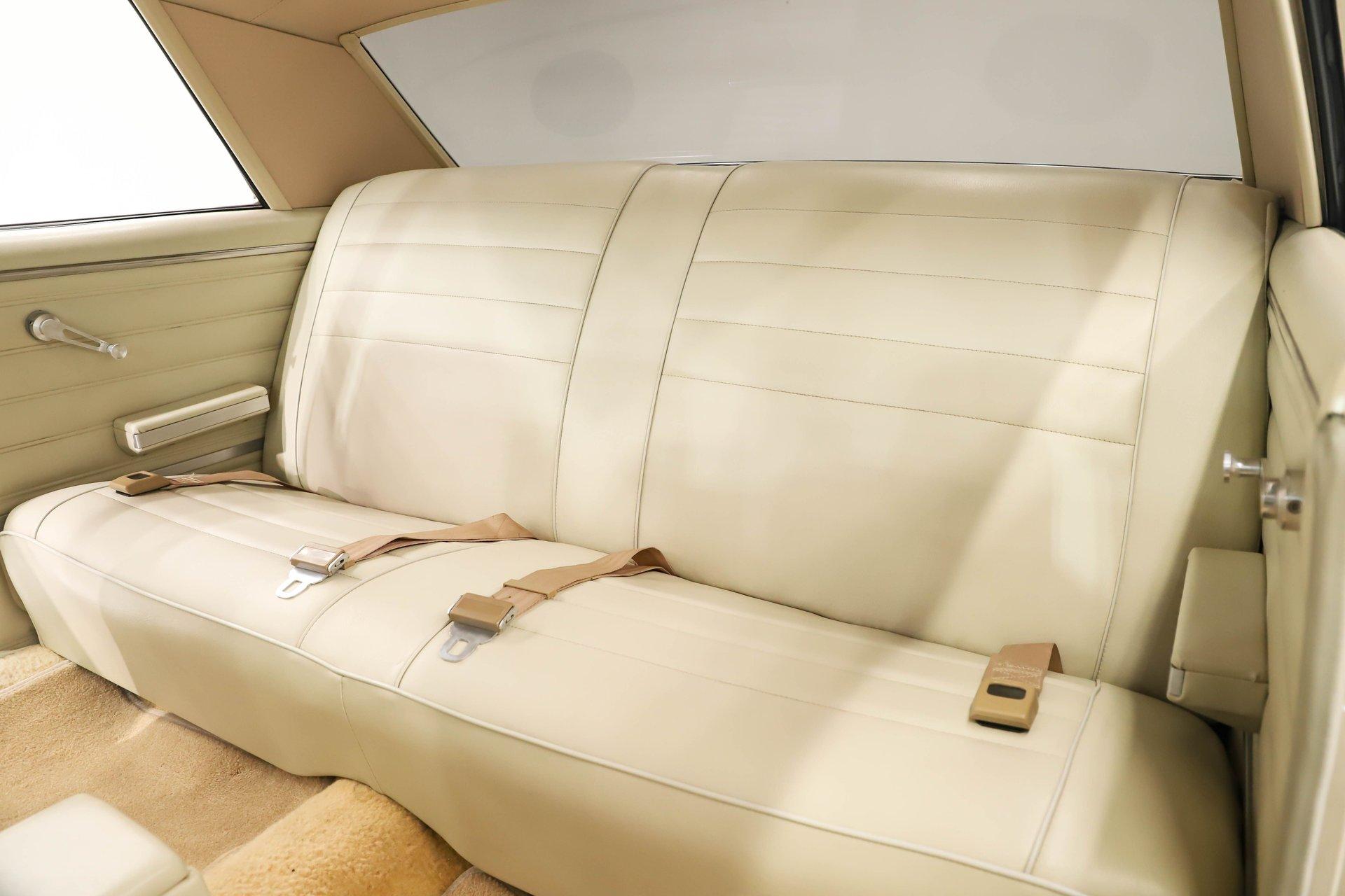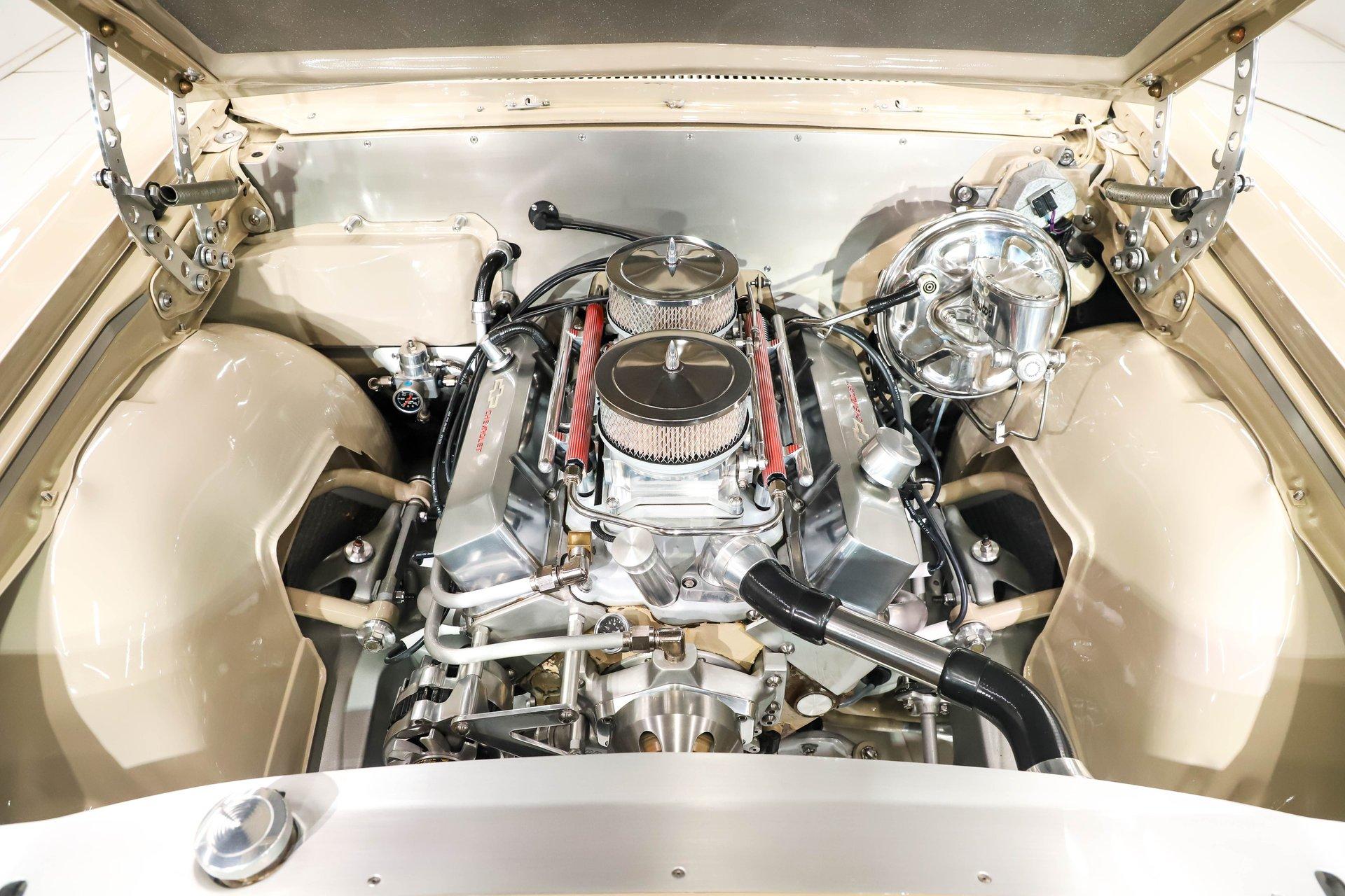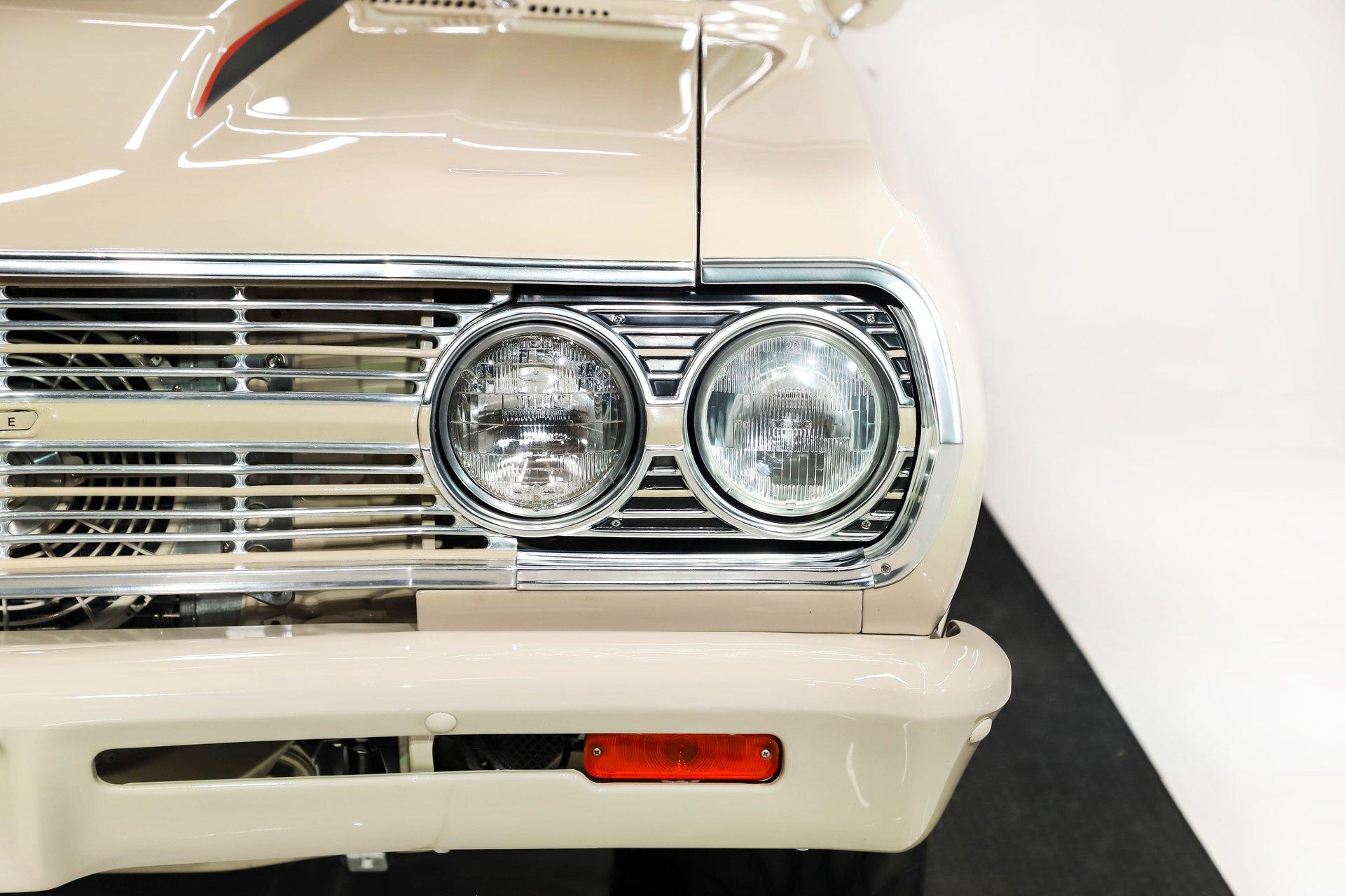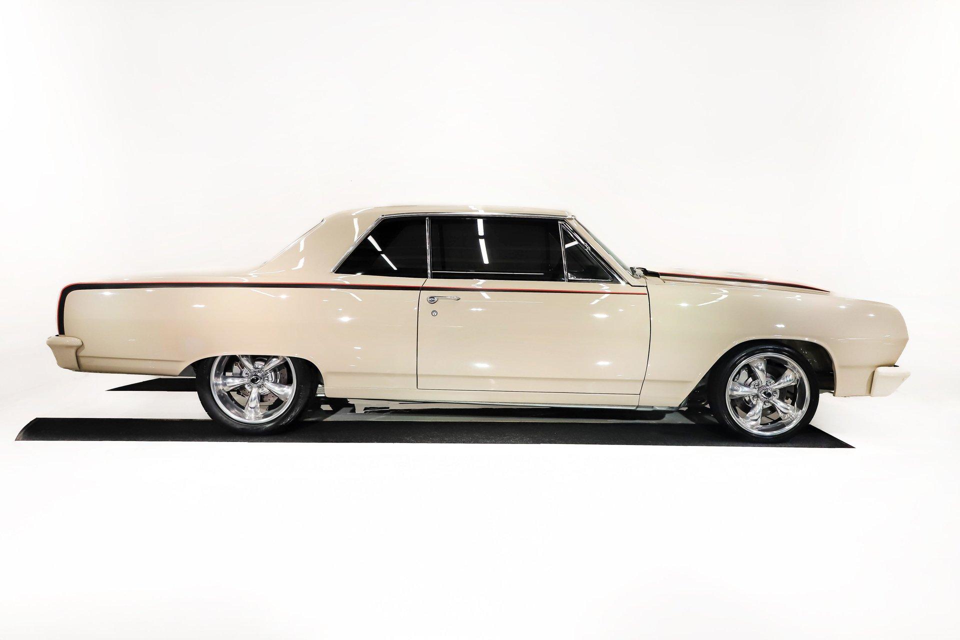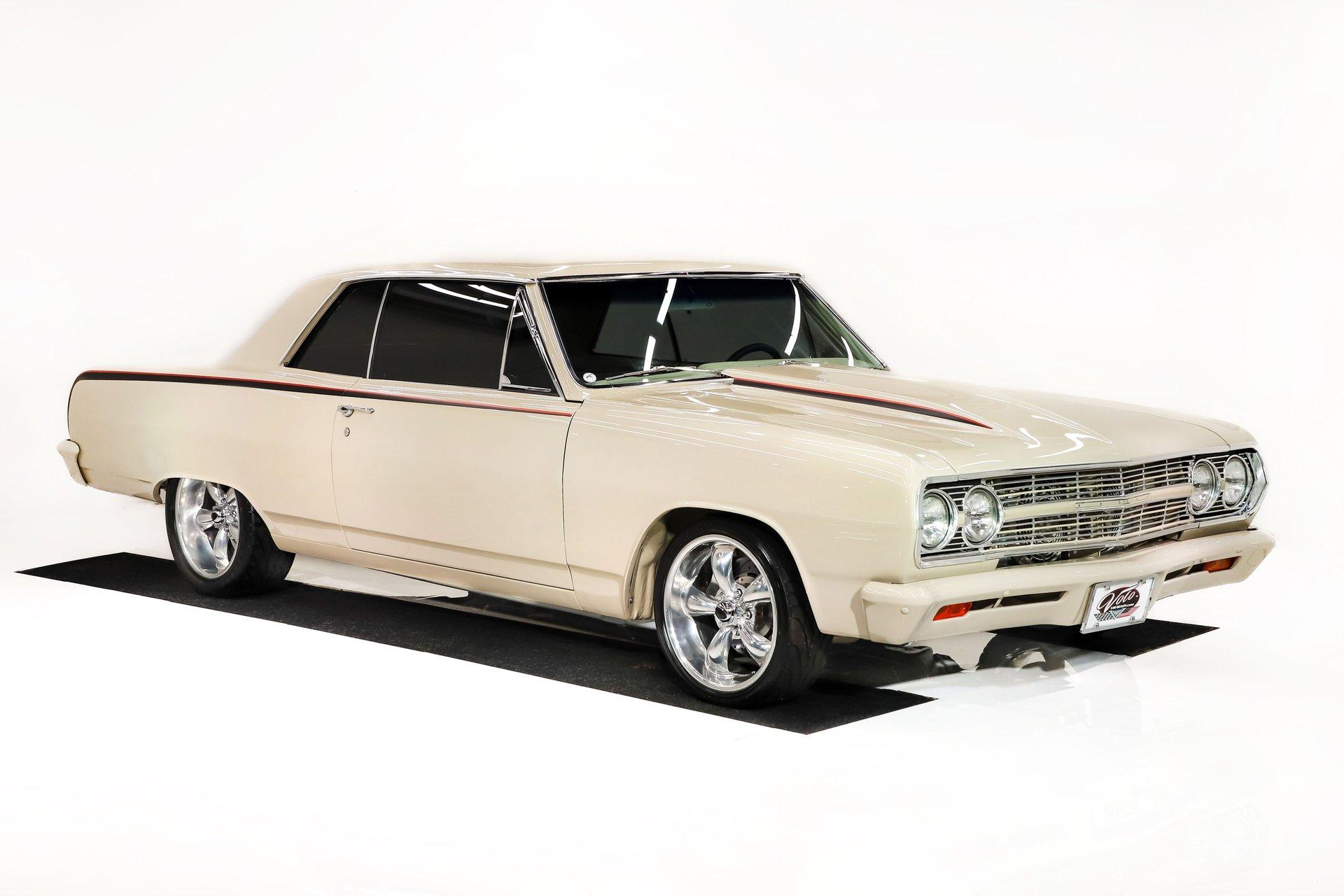 Celebrating our 65 year anniversary! This family owned and operated business was established in 1960, making us the oldest classic car dealership in America. Special thank you to all our customers for entrusting us to park the car of your dreams in your driveway while preserving automotive history for future generations to embrace and enjoy. -Grams family & Volo Museum staff INTRODUCTION: Very meticulous frame off build with many handmade details! Don't let the subtle beige fool you, there's a dual quad stroker under the hood, and a built 4-speed with overdrive, a posi and custom chassis under the car. It is beautifully detailed throughout! EXTERIOR: California car with a super clean body. A metal cowl hood was added, the laser straight panels fit square and flush. The beige paint is polished smooth and glossy. The bumpers were color matched. Decal stripes were added to give it some pop! The rest of the chrome and trim has been replaced or restored. The windshield was replaced and the windows were tinted. The weatherstrips were replaced. There is a third brake light custom built into the rear molding and a back up camera mounted above the license plate. so backup camera. It's rolling on Coy's five spoke aluminum wheels wrapped in G-Force tires, 17s in front and 18s in back that are much wider. INTERIOR: It has been completely redone and has several custom touches. Upgraded with a Ron Francis wiring system. On the floor it has plush carpets with Lloyd's embroidered mats. The center console is home to the stereo, headlight switch, vents, air ride controls and a four-speed shifter with a custom drilled handle. The lower dash is upholstered and has dash pad on top. The instrument panel is custom with a beautiful set of Dakota Digital gauges. It has a nice cushion grip steering wheel and the turn signal lever was custom fitted with a button that controls the overdrive. The air ride gauge is below the dash and seat belts were installed. The door panels are reproduction with custom-made billet trim, handles and armrest bases. The headliner and visors were replaced. ENGINE COMPARTMENT: It was meticulously designed, assembled and detailed. The heartbeat comes from a 385 that's been built, balanced and stroked. It has aluminum heads, dual quad intake with fuel injection, MSD ignition and coated headers. Beautifully finished tall aluminum valve covers, the front of the motor has polished brackets, alternator and pulleys with a serpentine belt. There are brushed aluminum inserts on the firewall and above the radiator. It runs cool with an electric water pump, a big aluminum radiator and overflow bottle with three electric fans. I am really impressed with the hard pipe hoses with custom fittings. The power brake booster is chrome and the master cylinder is polished. There is so much detail and handmade custom items in this engine compartment. TRUNK COMPARTMENT: Even the trunk is filled with little details! Under the trunk lid and the jamb are painted smooth like the car. It has custom upholstered inserts on the bottom of the trunk lid and billet stainless hardware. Inside it's completely boxed and upholstered. It has a side compartment that opens and built in lights that turn on with a switch. There's a battery box, the compressor and components for the air ride. The floor is carpeted and there's a special made cradle with hammered silver paint that holds the polished fuel cell. A chrome fire extinguisher, car cover and a bra is included. UNDERSIDE: It was treated to a very detailed body off frame restoration! The frame was boxed, it has been smoothed out and painted hammered silver and has bow tie shaped access holes. Up front is upgraded with tubular control arms, coilover adjustable air bags, upgraded sway bar with billet brackets. The steering was all rebuilt, it has a 525 steering box. In back it has upgraded billet lower control arms, adjustable upper control arms, a swaybar, adjustable gas shocks and air bags. Stainless fuel and brake lines, and stainless e-brake cables were installed. The stainless Magnaflow exhaust system has an X-Pipe, machine turned pipes and polished turn down tips. The brakes were upgraded with polished calipers, drilled and slotted disc at all four wheels. Looking up at the motor the oil pan is painted silver like the frame and there is a high torque starter. A Lakewood scatter shield houses a Centerforce clutch. The Muncie M21 is a reproduction Auto Gear Supercase, and there's a Gear Vendors overdrive and a Hurst Competition Plus linkage. Complete rebuild of the 12 bolt rear end was done by Pro Differentials and it has an aluminum girdle cover. The rust free floors are pristine. They were given two coats of bed liner, two coats of primer, two coats of beige and then two coats of clear coat!! There's a battery disconnect and remote jumper terminals under the car along with a fuel shut off, filters and pump under the car. A custom made grille was installed under the radiator. SERVICE: We take pride in our cars and reputation. Therefore, we built a 2 million dollar, 10,000 square ft service center, and hired a team of technicians to work it. This is so we can sell you the best cars within reason. CONCLUSION: This car would cost a fortune to duplicate at a professional shop! Not only the typical restoration costs, but this car has so many hand fabricated one of a kind pieces and that's where labor costs really soar. A pile of documentation is included. It's a great value for a fun, unique muscle car! For nearly 30 years, I, Jay Grams, have personally written the highlights for almost every car in our collection. What I provide is my professional opinion based on my experience with these vehicles. However, opinions can vary, and I strongly recommend a personal inspection to form your own view. Our sales team is always available to answer any questions you may have. One great option is to request a personalized walk-around video, where we can showcase the car and share our t