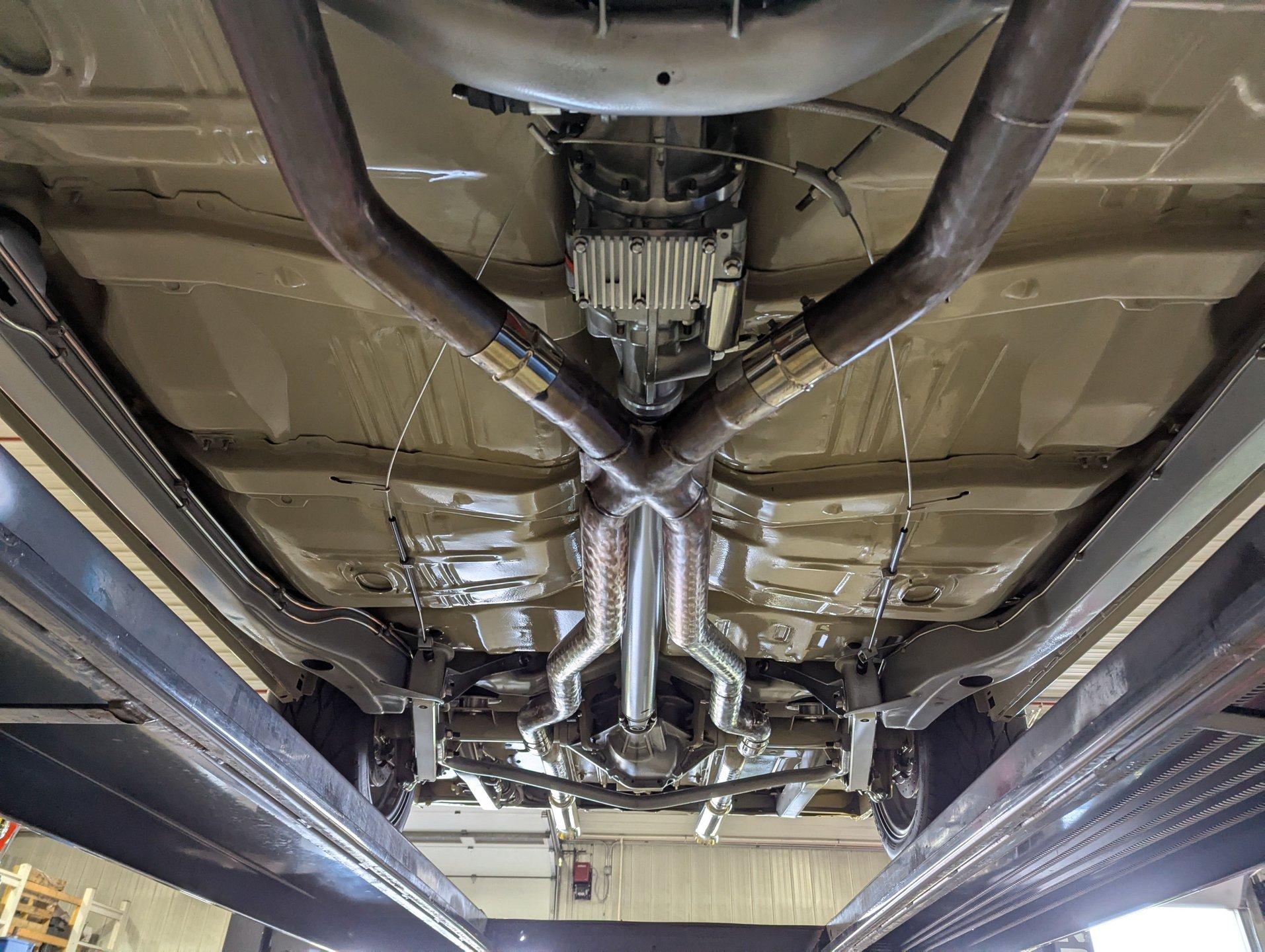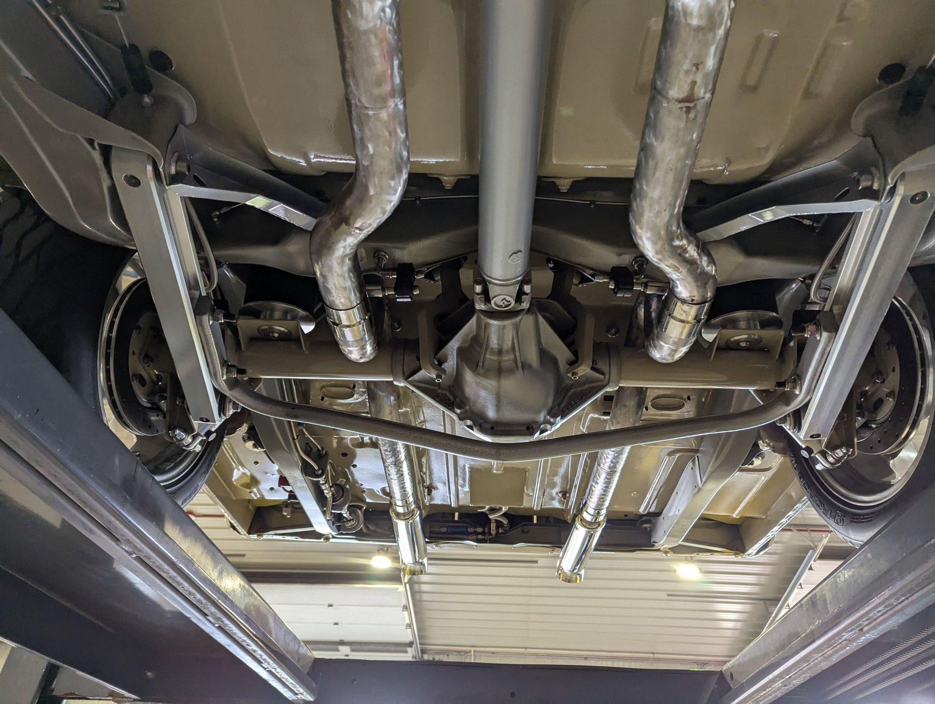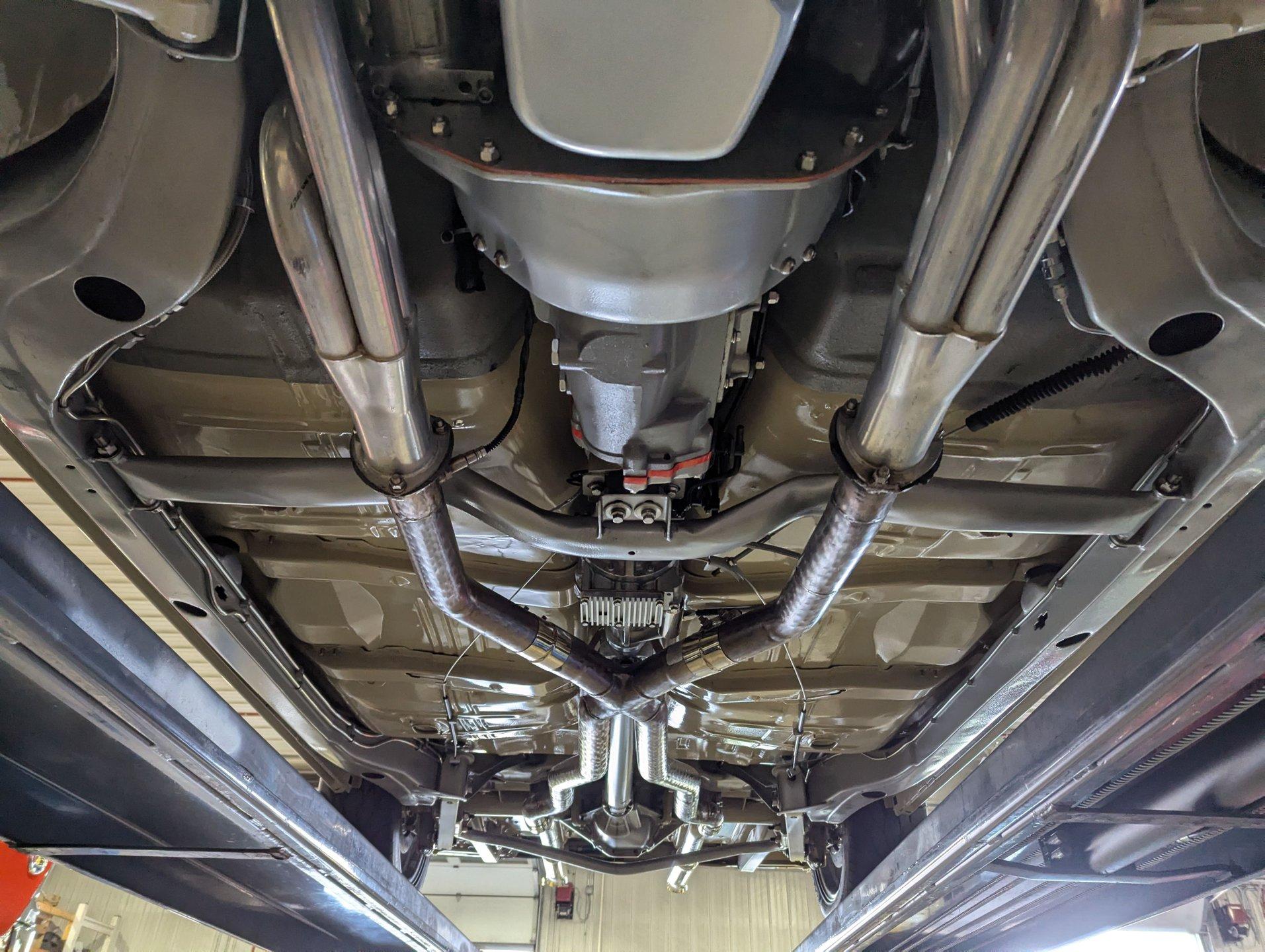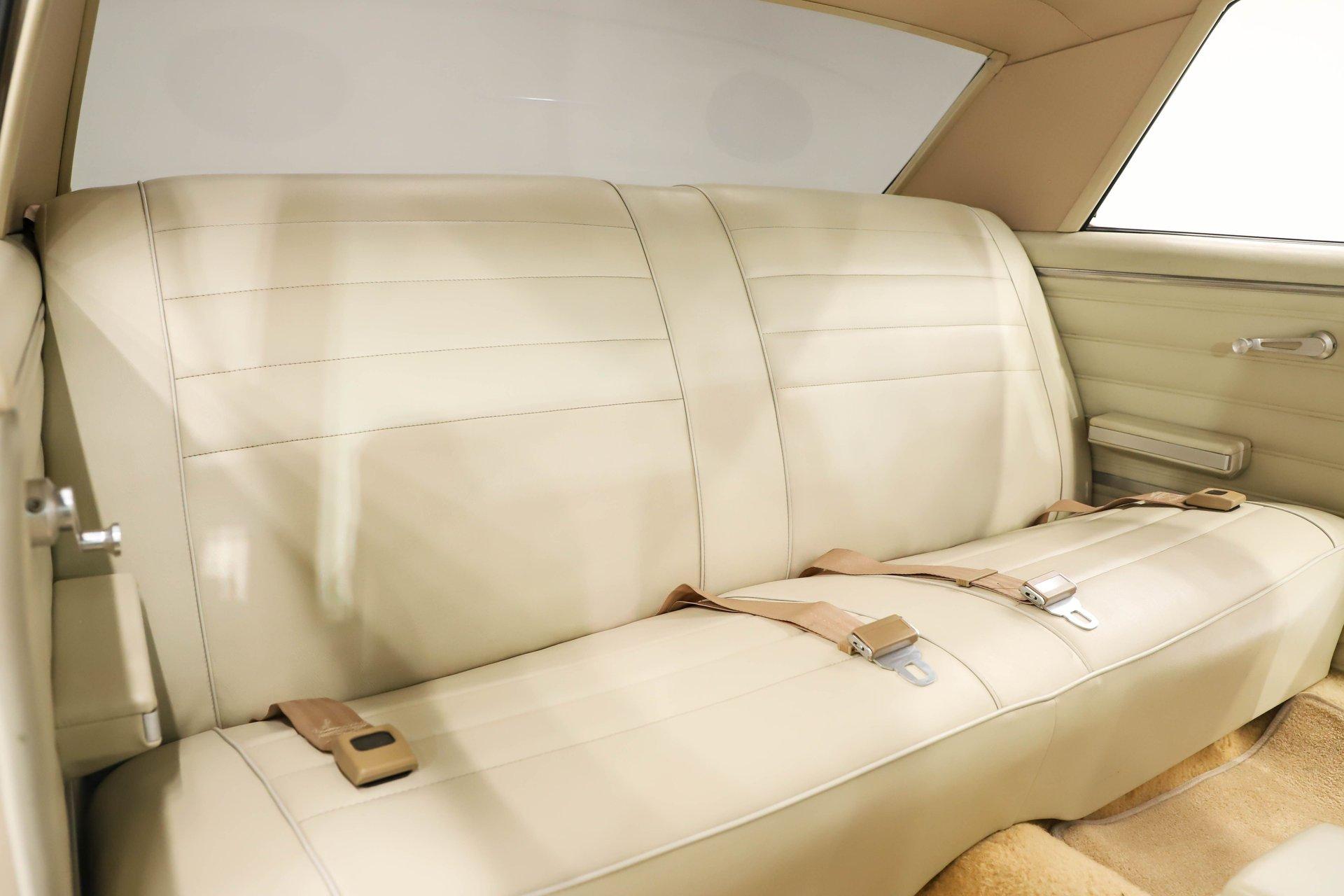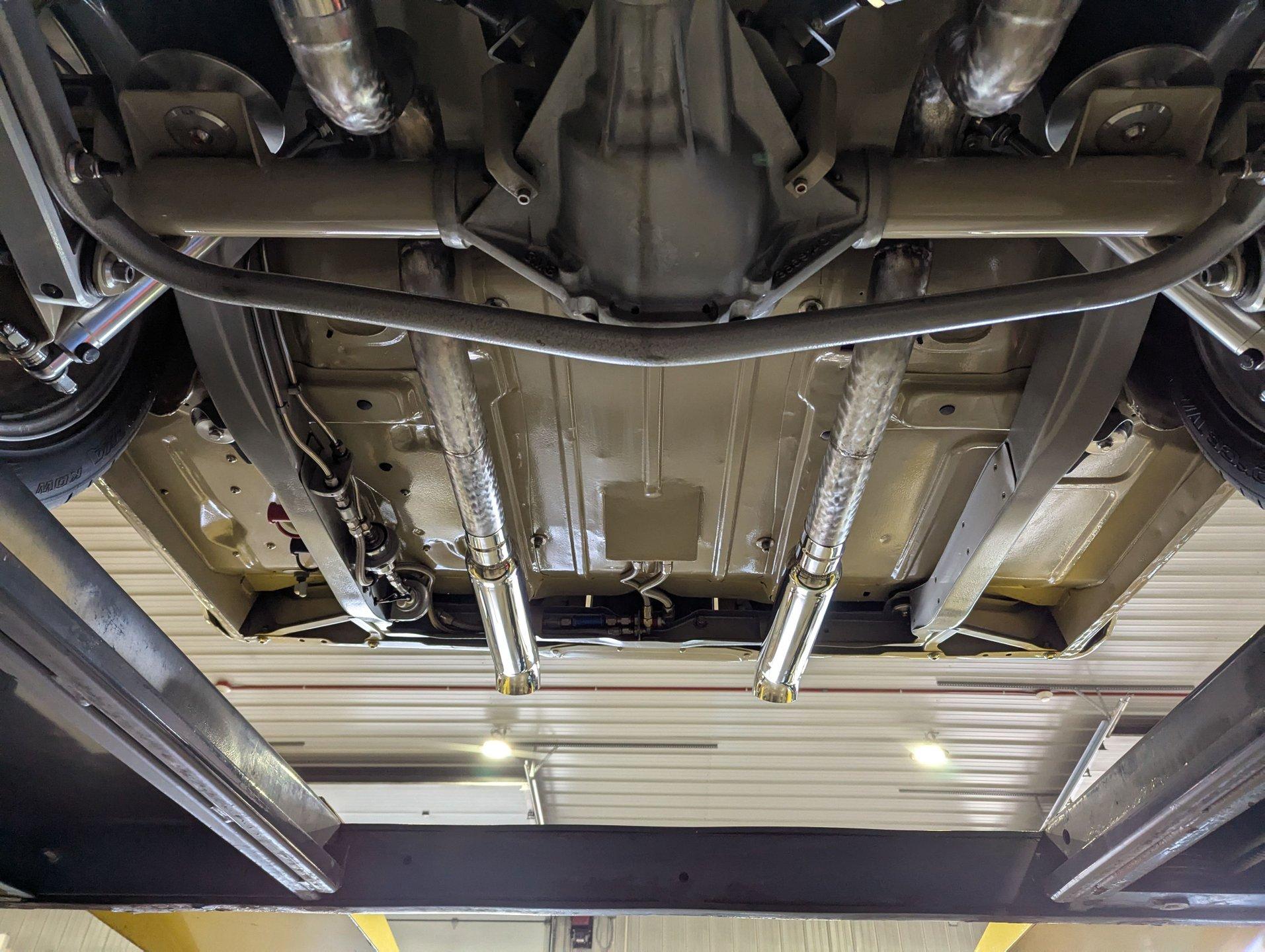 Celebrating our 65 year anniversary! This family owned and operated business was established in 1960, making us the oldest classic car dealership in America. Special thank you to all our customers for entrusting us to park the car of your dreams in your driveway while preserving automotive history for future generations to embrace and enjoy. -Grams family & Volo Museum staff INTRODUCTION: Very meticulous frame off build with many handmade details! Don't let the subtle beige fool you, there's a dual quad stroker under the hood, and a built 4-speed with overdrive, a posi and custom chassis under the car. It is beautifully detailed throughout! EXTERIOR: California car with a super clean body. A metal cowl hood was added, the laser straight panels fit square and flush. The beige paint is polished smooth and glossy. The bumpers were color matched. Decal stripes were added to give it some pop! The rest of the chrome and trim has been replaced or restored. The windshield was replaced and the windows were tinted. The weatherstrips were replaced. There is a third brake light custom built into the rear molding and a back up camera mounted above the license plate. so backup camera. It's rolling on Coy's five spoke aluminum wheels wrapped in G-Force tires, 17s in front and 18s in back that are much wider. INTERIOR: It has been completely redone and has several custom touches. Upgraded with a Ron Francis wiring system. On the floor it has plush carpets with Lloyd's embroidered mats. The center console is home to the stereo, headlight switch, vents, air ride controls and a four-speed shifter with a custom drilled handle. The lower dash is upholstered and has dash pad on top. The instrument panel is custom with a beautiful set of Dakota Digital gauges. It has a nice cushion grip steering wheel and the turn signal lever was custom fitted with a button that controls the overdrive. The air ride gauge is below the dash and seat belts were installed. The door panels are reproduction with custom-made billet trim, handles and armrest bases. The headliner and visors were replaced. ENGINE COMPARTMENT: It was meticulously designed, assembled and detailed. The heartbeat comes from a 385 that's been built, balanced and stroked. It has aluminum heads, dual quad intake with fuel injection, MSD ignition and coated headers. Beautifully finished tall aluminum valve covers, the front of the motor has polished brackets, alternator and pulleys with a serpentine belt. There are brushed aluminum inserts on the firewall and above the radiator. It runs cool with an electric water pump, a big aluminum radiator and overflow bottle with three electric fans. I am really impressed with the hard pipe hoses with custom fittings. The power brake booster is chrome and the master cylinder is polished. There is so much detail and handmade custom items in this engine compartment. TRUNK COMPARTMENT: Even the trunk is filled with little details! Under the trunk lid and the jamb are painted smooth like the car. It has custom upholstered inserts on the bottom of the trunk lid and billet stainless hardware. Inside it's completely boxed and upholstered. It has a side compartment that opens and built in lights that turn on with a switch. There's a battery box, the compressor and components for the air ride. The floor is carpeted and there's a special made cradle with hammered silver paint that holds the polished fuel cell. A chrome fire extinguisher, car cover and a bra is included. UNDERSIDE: It was treated to a very detailed body off frame restoration! The frame was boxed, it has been smoothed out and painted hammered silver and has bow tie shaped access holes. Up front is upgraded with tubular control arms, coilover adjustable air bags, upgraded sway bar with billet brackets. The steering was all rebuilt, it has a 525 steering box. In back it has upgraded billet lower control arms, adjustable upper control arms, a swaybar, adjustable gas shocks and air bags. Stainless fuel and brake lines, and stainless e-brake cables were installed. The stainless Magnaflow exhaust system has an X-Pipe, machine turned pipes and polished turn down tips. The brakes were upgraded with polished calipers, drilled and slotted disc at all four wheels. Looking up at the motor the oil pan is painted silver like the frame and there is a high torque starter. A Lakewood scatter shield houses a Centerforce clutch. The Muncie M21 is a reproduction Auto Gear Supercase, and there's a Gear Vendors overdrive and a Hurst Competition Plus linkage. Complete rebuild of the 12 bolt rear end was done by Pro Differentials and it has an aluminum girdle cover. The rust free floors are pristine. They were given two coats of bed liner, two coats of primer, two coats of beige and then two coats of clear coat!! There's a battery disconnect and remote jumper terminals under the car along with a fuel shut off, filters and pump under the car. A custom made grille was installed under the radiator. SERVICE: We take pride in our cars and reputation. Therefore, we built a 2 million dollar, 10,000 square ft service center, and hired a team of technicians to work it. This is so we can sell you the best cars within reason. CONCLUSION: This car would cost a fortune to duplicate at a professional shop! Not only the typical restoration costs, but this car has so many hand fabricated one of a kind pieces and that's where labor costs really soar. A pile of documentation is included. It's a great value for a fun, unique muscle car! For nearly 30 years, I, Jay Grams, have personally written the highlights for almost every car in our collection. What I provide is my professional opinion based on my experience with these vehicles. However, opinions can vary, and I strongly recommend a personal inspection to form your own view. Our sales team is always available to answer any questions you may have. One great option is to request a personalized walk-around video, where we can showcase the car and share our t