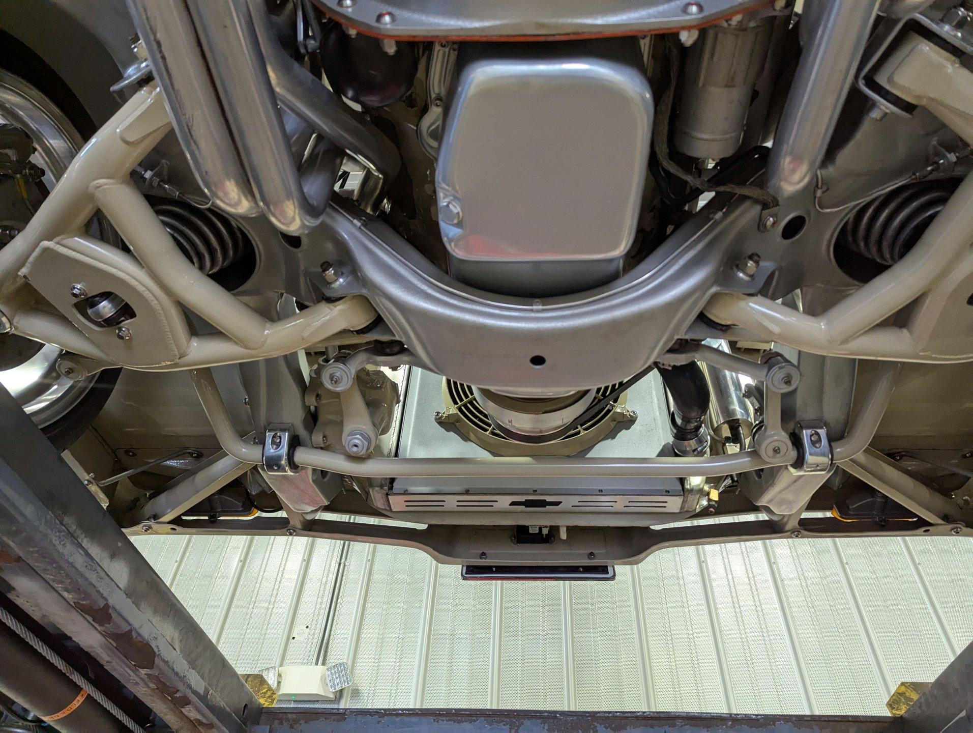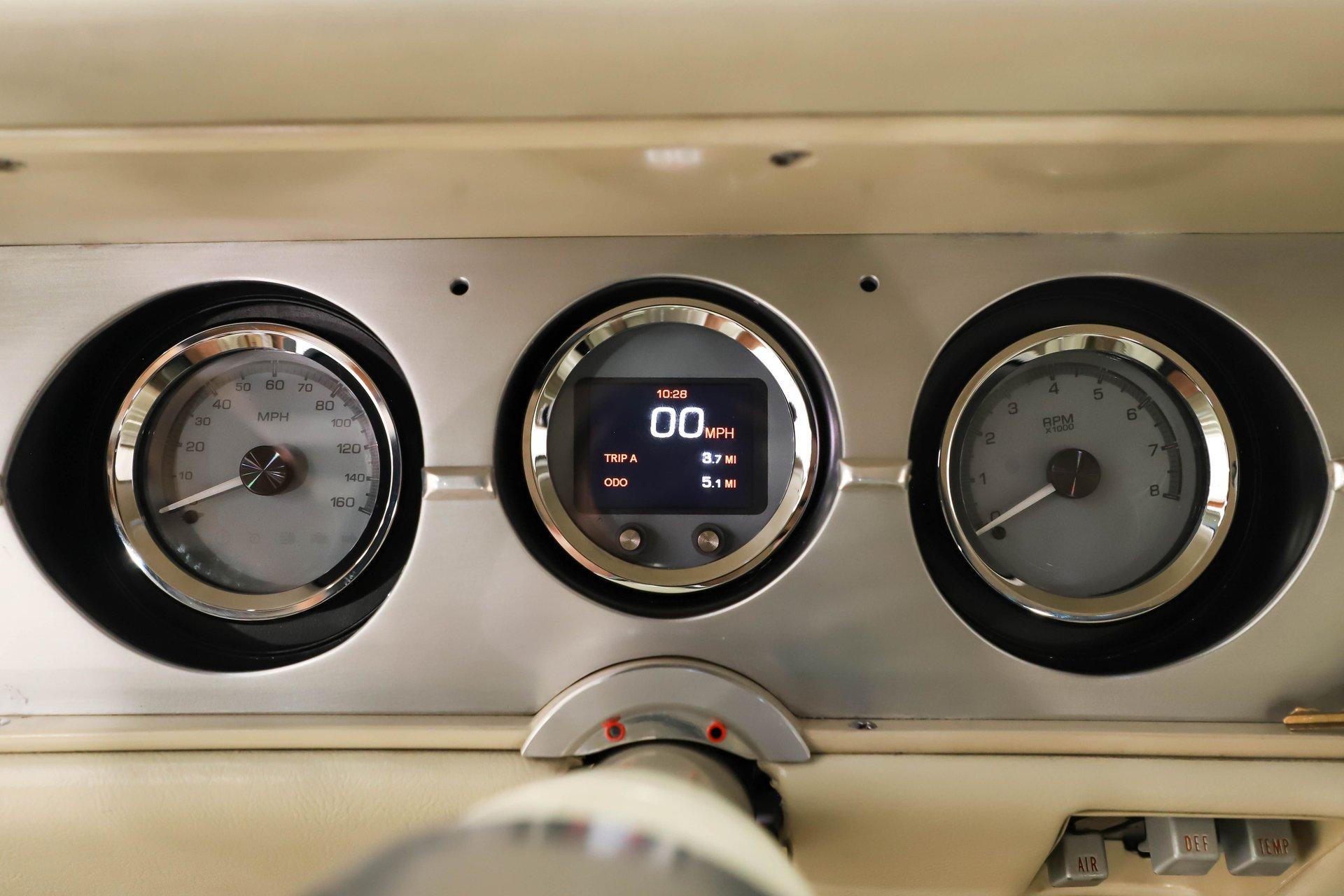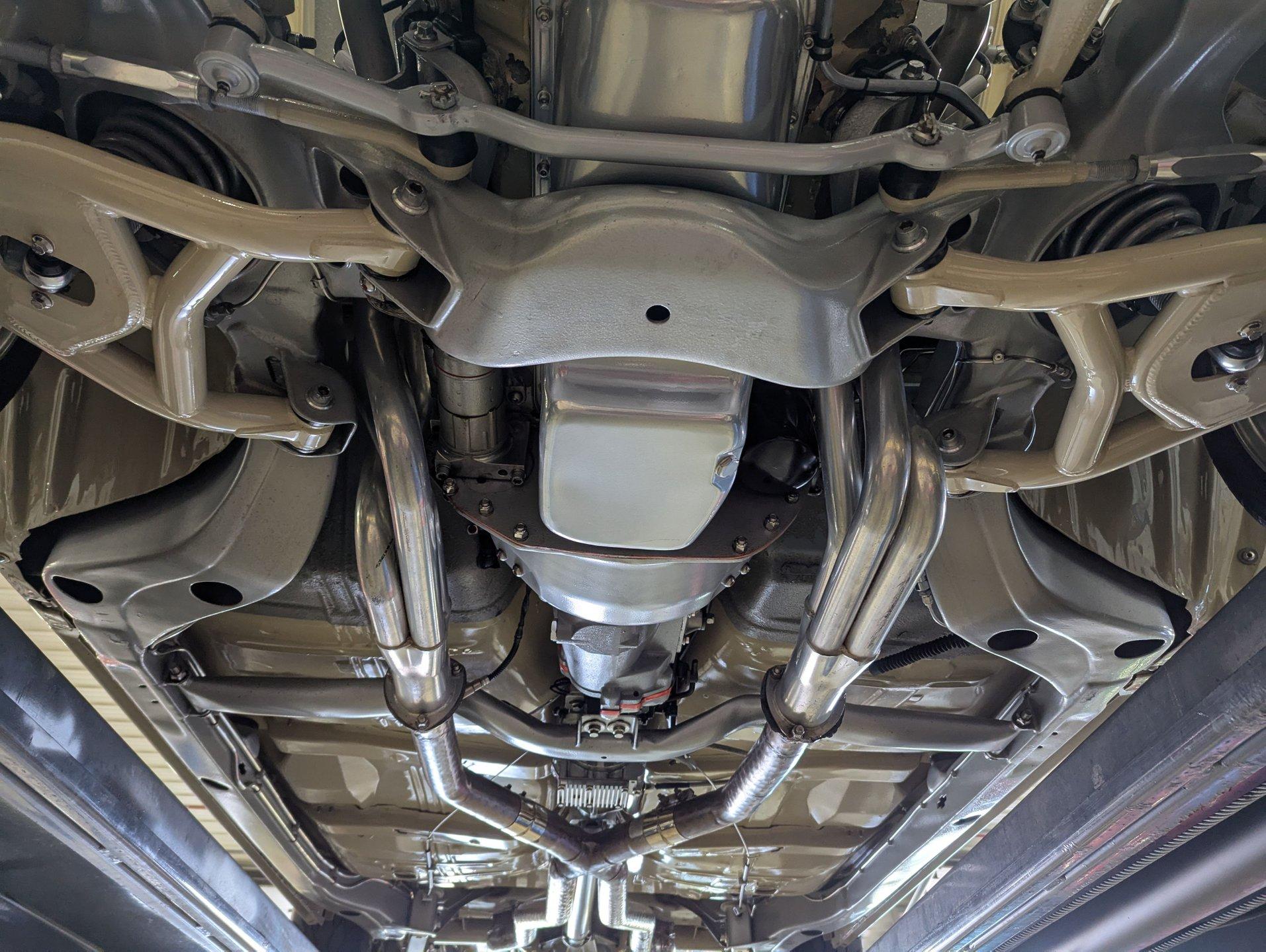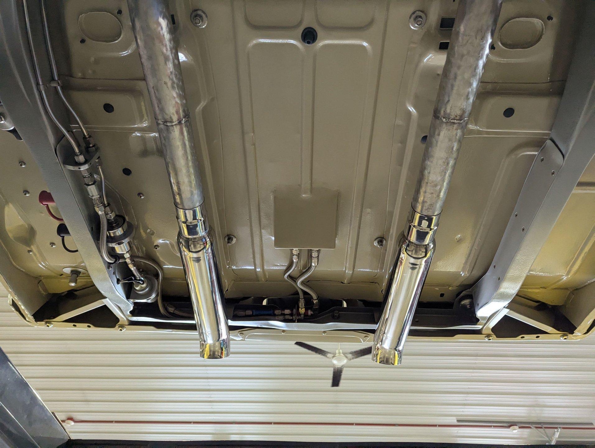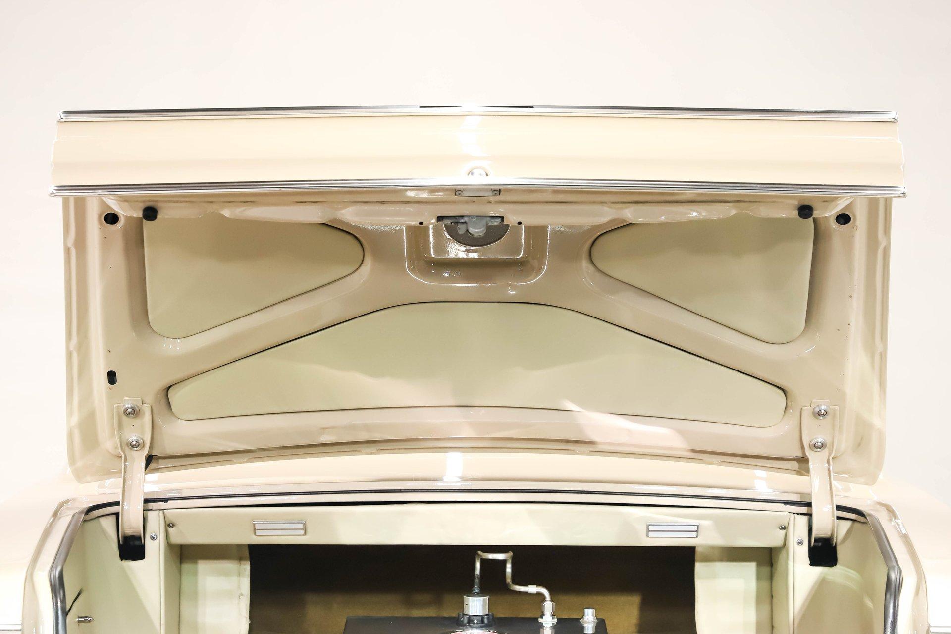 Celebrating our 65 year anniversary! This family owned and operated business was established in 1960, making us the oldest classic car dealership in America. Special thank you to all our customers for entrusting us to park the car of your dreams in your driveway while preserving automotive history for future generations to embrace and enjoy. -Grams family & Volo Museum staff INTRODUCTION: Very meticulous frame off build with many handmade details! Don't let the subtle beige fool you, there's a dual quad stroker under the hood, and a built 4-speed with overdrive, a posi and custom chassis under the car. It is beautifully detailed throughout! EXTERIOR: California car with a super clean body. A metal cowl hood was added, the laser straight panels fit square and flush. The beige paint is polished smooth and glossy. The bumpers were color matched. Decal stripes were added to give it some pop! The rest of the chrome and trim has been replaced or restored. The windshield was replaced and the windows were tinted. The weatherstrips were replaced. There is a third brake light custom built into the rear molding and a back up camera mounted above the license plate. so backup camera. It's rolling on Coy's five spoke aluminum wheels wrapped in G-Force tires, 17s in front and 18s in back that are much wider. INTERIOR: It has been completely redone and has several custom touches. Upgraded with a Ron Francis wiring system. On the floor it has plush carpets with Lloyd's embroidered mats. The center console is home to the stereo, headlight switch, vents, air ride controls and a four-speed shifter with a custom drilled handle. The lower dash is upholstered and has dash pad on top. The instrument panel is custom with a beautiful set of Dakota Digital gauges. It has a nice cushion grip steering wheel and the turn signal lever was custom fitted with a button that controls the overdrive. The air ride gauge is below the dash and seat belts were installed. The door panels are reproduction with custom-made billet trim, handles and armrest bases. The headliner and visors were replaced. ENGINE COMPARTMENT: It was meticulously designed, assembled and detailed. The heartbeat comes from a 385 that's been built, balanced and stroked. It has aluminum heads, dual quad intake with fuel injection, MSD ignition and coated headers. Beautifully finished tall aluminum valve covers, the front of the motor has polished brackets, alternator and pulleys with a serpentine belt. There are brushed aluminum inserts on the firewall and above the radiator. It runs cool with an electric water pump, a big aluminum radiator and overflow bottle with three electric fans. I am really impressed with the hard pipe hoses with custom fittings. The power brake booster is chrome and the master cylinder is polished. There is so much detail and handmade custom items in this engine compartment. TRUNK COMPARTMENT: Even the trunk is filled with little details! Under the trunk lid and the jamb are painted smooth like the car. It has custom upholstered inserts on the bottom of the trunk lid and billet stainless hardware. Inside it's completely boxed and upholstered. It has a side compartment that opens and built in lights that turn on with a switch. There's a battery box, the compressor and components for the air ride. The floor is carpeted and there's a special made cradle with hammered silver paint that holds the polished fuel cell. A chrome fire extinguisher, car cover and a bra is included. UNDERSIDE: It was treated to a very detailed body off frame restoration! The frame was boxed, it has been smoothed out and painted hammered silver and has bow tie shaped access holes. Up front is upgraded with tubular control arms, coilover adjustable air bags, upgraded sway bar with billet brackets. The steering was all rebuilt, it has a 525 steering box. In back it has upgraded billet lower control arms, adjustable upper control arms, a swaybar, adjustable gas shocks and air bags. Stainless fuel and brake lines, and stainless e-brake cables were installed. The stainless Magnaflow exhaust system has an X-Pipe, machine turned pipes and polished turn down tips. The brakes were upgraded with polished calipers, drilled and slotted disc at all four wheels. Looking up at the motor the oil pan is painted silver like the frame and there is a high torque starter. A Lakewood scatter shield houses a Centerforce clutch. The Muncie M21 is a reproduction Auto Gear Supercase, and there's a Gear Vendors overdrive and a Hurst Competition Plus linkage. Complete rebuild of the 12 bolt rear end was done by Pro Differentials and it has an aluminum girdle cover. The rust free floors are pristine. They were given two coats of bed liner, two coats of primer, two coats of beige and then two coats of clear coat!! There's a battery disconnect and remote jumper terminals under the car along with a fuel shut off, filters and pump under the car. A custom made grille was installed under the radiator. SERVICE: We take pride in our cars and reputation. Therefore, we built a 2 million dollar, 10,000 square ft service center, and hired a team of technicians to work it. This is so we can sell you the best cars within reason. CONCLUSION: This car would cost a fortune to duplicate at a professional shop! Not only the typical restoration costs, but this car has so many hand fabricated one of a kind pieces and that's where labor costs really soar. A pile of documentation is included. It's a great value for a fun, unique muscle car! For nearly 30 years, I, Jay Grams, have personally written the highlights for almost every car in our collection. What I provide is my professional opinion based on my experience with these vehicles. However, opinions can vary, and I strongly recommend a personal inspection to form your own view. Our sales team is always available to answer any questions you may have. One great option is to request a personalized walk-around video, where we can showcase the car and share our t