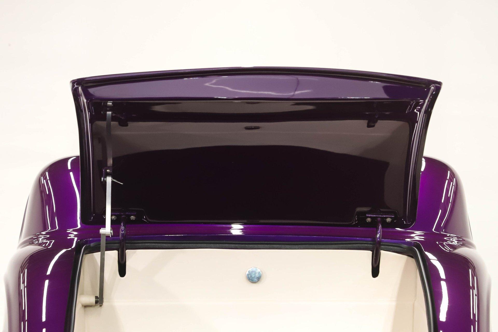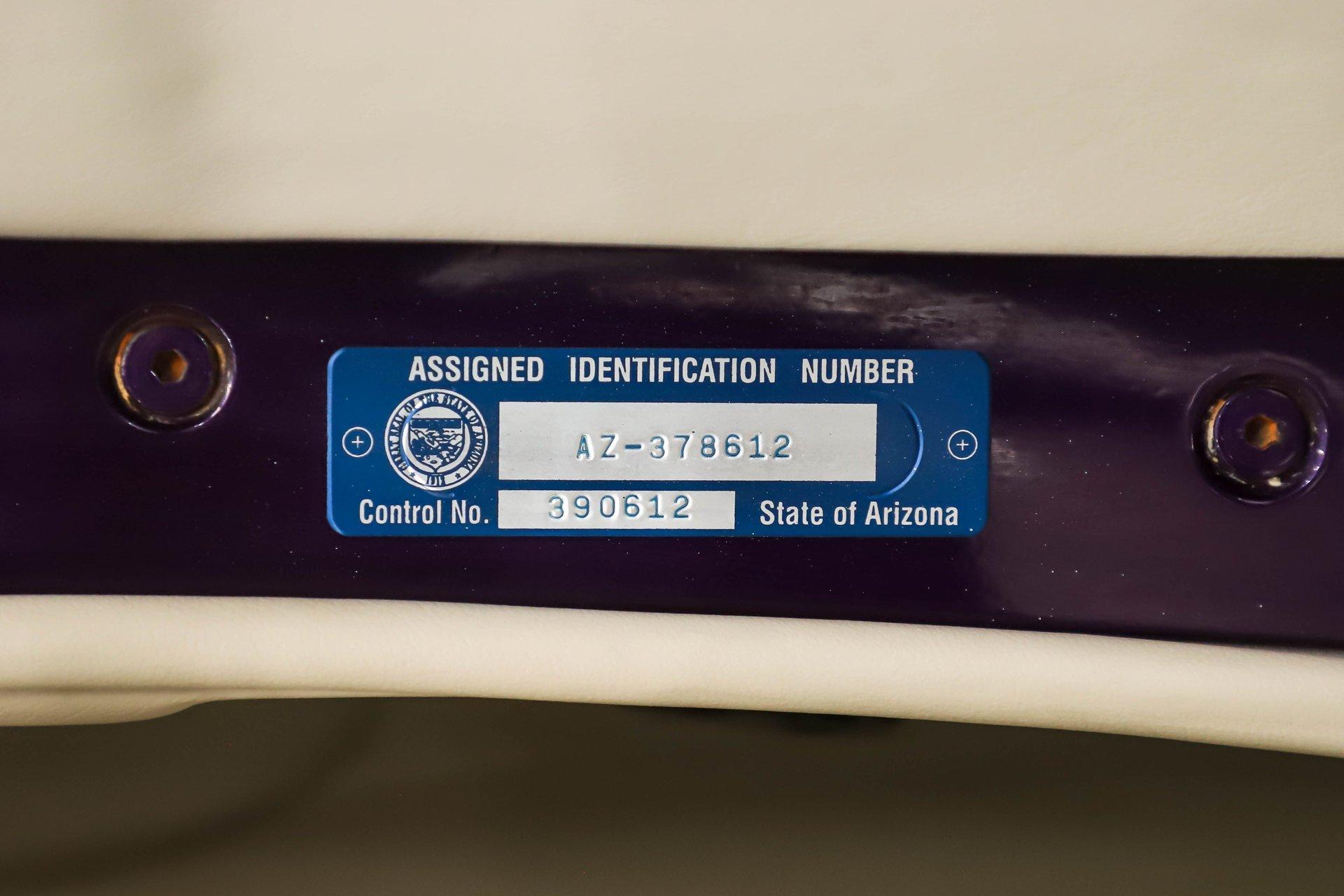 Celebrating our 65 year anniversary! This family owned and operated business was established in 1960, making us the oldest classic car dealership in America. Special thank you to all our customers for entrusting us to park the car of your dreams in your driveway while preserving automotive history for future generations to embrace and enjoy. -Grams family & Volo Museum staff INTRODUCTION: Wow is this a knockout! The colors on this body with that stance are outstanding! And that's not all, it's powered by an LS motor! Only 375 miles showing on the odometer and now it's up to you to get it rolling down the road and having fun! EXTERIOR: Rat’s Glass composite body and man is it sleek! It looks like a Hot Wheels car with its dramatic lines. The body is smooth with no handles or trim, the door opens by a remote button. The purple paint looks like a piece of wet grape candy. The silver flames are a great looking addition. The staggered size polished Torque Thrust wheels really scream “hot rod”! They are 17 inches in front and 19s in back and extra wide. The license plate drops down from under the car with a switch inside, fold it back up out of sight when parked. INTERIOR: The white interior is a stunning contrast against the purple. It has comfortable bucket seats, I'm 6 ft tall and I do fit in this car. The entire inside of the cabin is upholstered including under the dash, behind the seats and sculpted door panels. It has a custom center console with a billet shifter and in front of you is a nice set of AutoMeter gauges in a polished bezel. Below that is the screen for the backup cameras, yes cameras. There are cameras on the back of each headlight and behind the car and all three show up at once on the split screen. The polished tilt column has a white rimmed billet steering wheel, the pedals are billet too. The controls are hidden out of sight. The air condition vents are behind the seats, the power window and power locks switches are hidden under the armrests. The toggle switches up above control your ignition, lights and fold away license plate. ENGINE COMPARTMENT: There's an LS motor under the hood! It's beautifully detailed, everything is polished or painted. The motor is a Street & Performance built LS6 5.7L motor making 550 horsepower. The front of the motor has a polished a/c compressor, alternator and pulleys with a serpentine belt. An aluminum radiator with an electric fan keeps it running cool. The engine bay is smooth and glossy, the engine covers even have painted flames. TRUNK COMPARTMENT: The power lift trunk is operated from a switch inside the car. Inside is boxed and upholstered to match the interior. The battery and fuel tank is hidden behind the panels. There is a built in battery tender with the plug in under the car. UNDERSIDE: It is beautiful under this car with everything being high gloss purple or chrome! It sits on a boxed frame with tubular supports. It has a chromed independent suspension front and rear with tubular control arms and coil over adjustable gas shocks. Chromed rack and pinion steering. The coated headers feed a ceramic coated exhaust with stainless tube mufflers and custom tips exiting through each rocker panel. Disc brakes up front with polished calipers and backing plate, stainless braided hoses. In back it has unique inboard disc brakes with polished calipers. Looking up at the motor it is painted body color and has a high torque starter. The 4L60E overdrive automatic is purple too and has a remote oil cooler. A chromed driveshaft leads back to a polished aluminum Jaguar rear end with a quick change cover. SERVICE: We take pride in our cars and reputation. Therefore, we built a 2 million dollar, 10,000 square ft service center, and hired a team of technicians to work it. This is so we can sell you the best cars within reason. CONCLUSION: Dang, this car is hot looking! With an LS6 under the hood, overdrive, independent suspension, and air conditioning, it's going to be a blast to drive too! For nearly 30 years, I, Jay Grams, have personally written the highlights for almost every car in our collection. What I provide is my professional opinion based on my experience with these vehicles. However, opinions can vary, and I strongly recommend a personal inspection to form your own view. Our sales team is always available to answer any questions you may have. One great option is to request a personalized walk-around video, where we can showcase the car and share our team’s insights. **Our cars are displayed within a museum setting. If you are interested in a specific vehicle, please schedule an appointment with a salesperson to view it. Without an appointment, there is an admission fee to enter the showroom. If you decide to purchase a car, your admission will be refunded, and you'll receive a one-year museum membership. ☎️ 815 385 3644 9-5 central 📧 Sales@volocars.com Answered ASAP Air conditioning Rack & pinion 4 wheel disc 4 wheel ind suspension Fuel Injection Jaguar rear end Back up camera Tilt wheel Power windows Power locks Power lift trunk Door poppers Hood popper Polished wheels
