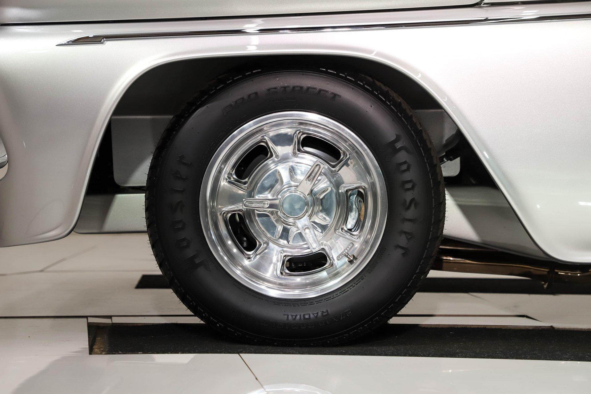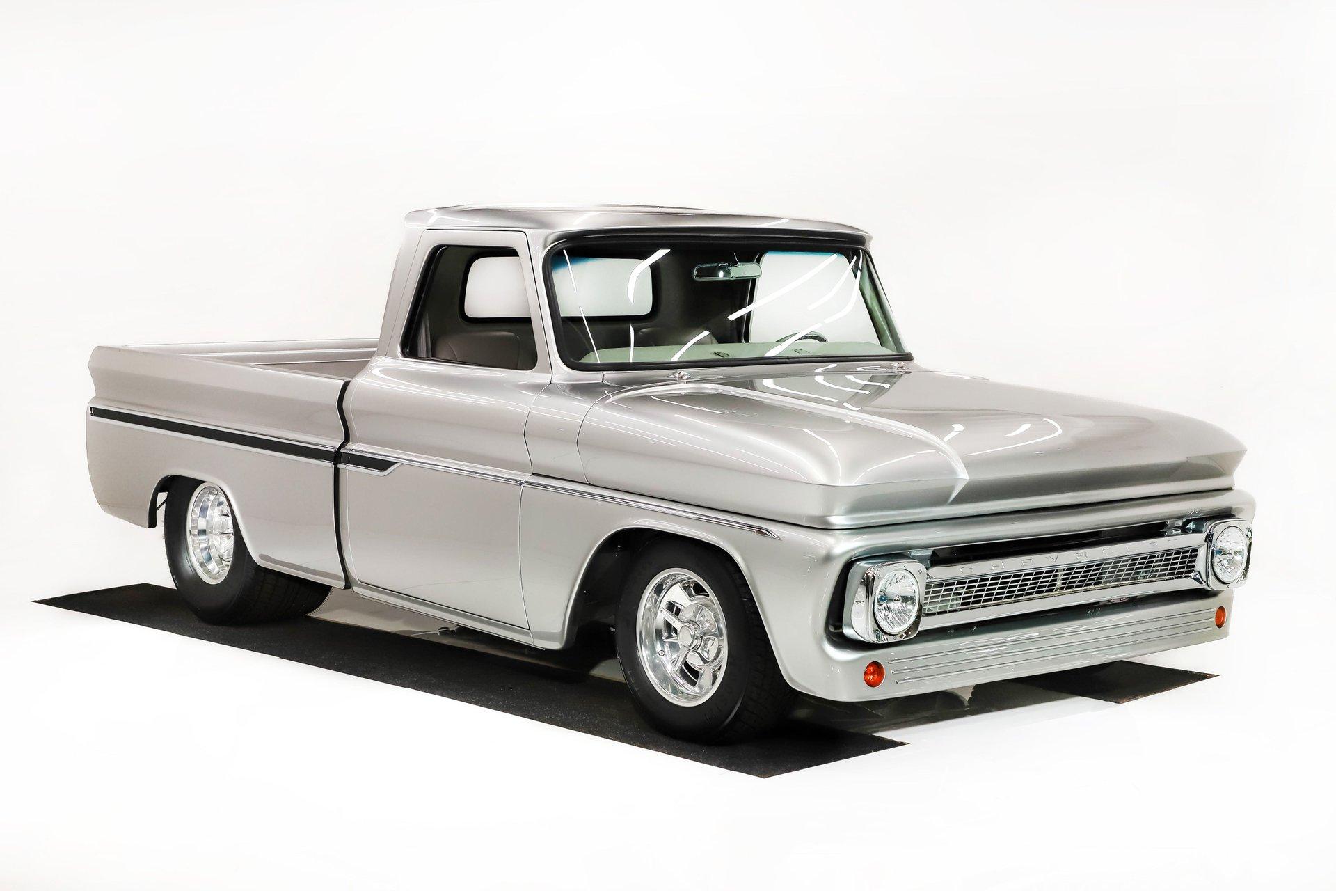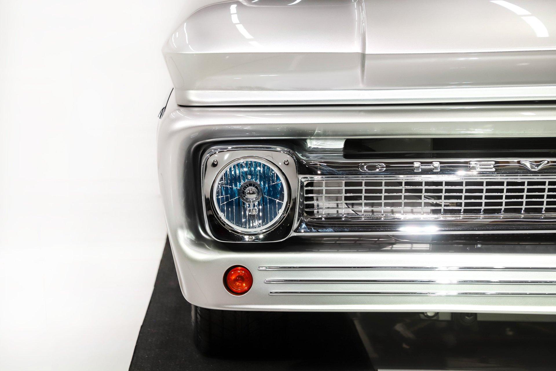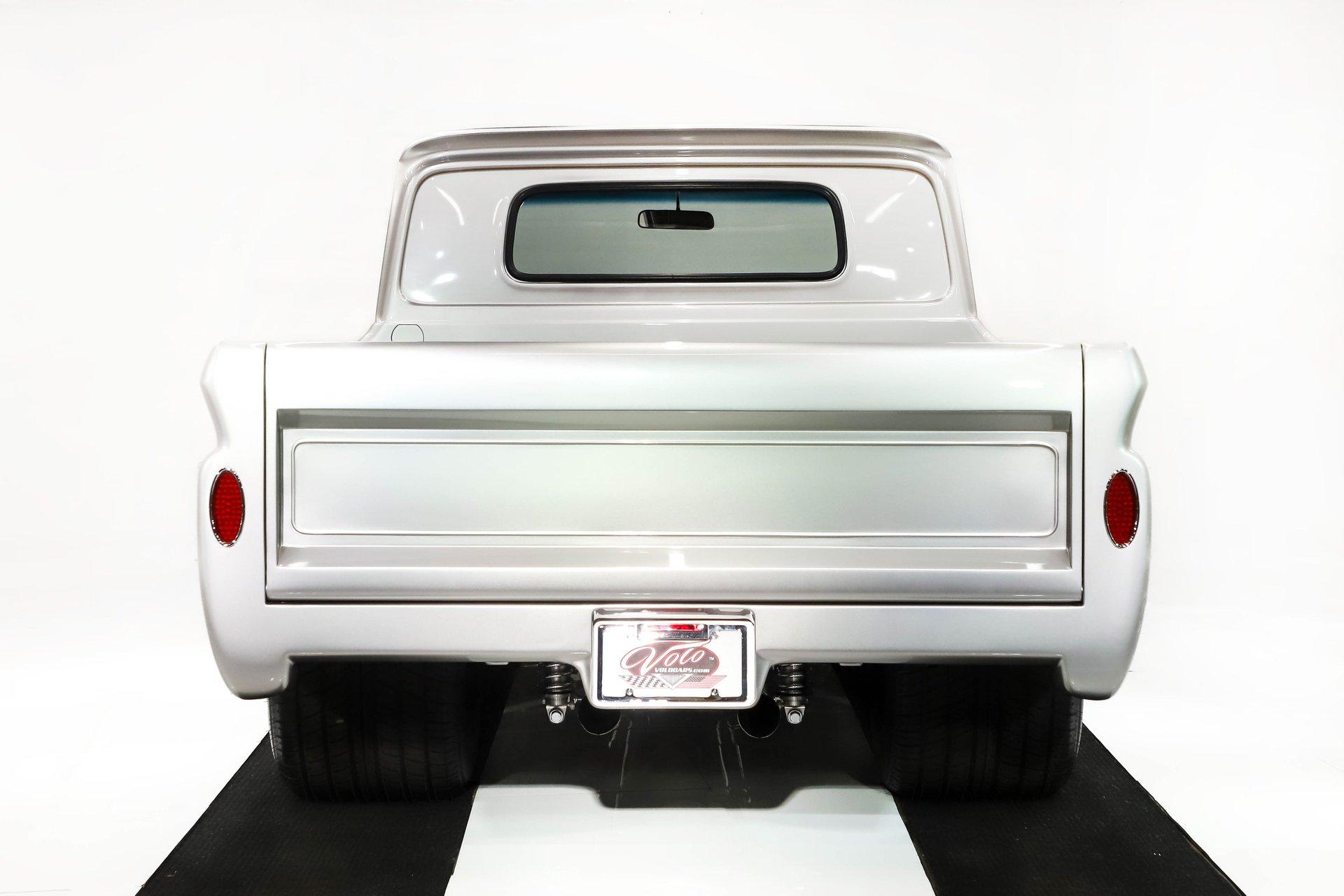 Celebrating our 65 year anniversary! This family owned and operated business was established in 1960, making us the oldest classic car dealership in America. Special thank you to all our customers for entrusting us to park the car of your dreams in your driveway while preserving automotive history for future generations to embrace and enjoy. -Grams family & Volo Museum staff The best in existence! Only 25 test miles on a breathtaking bespoke build. The quality of workmanship is out of this world. The custom tilt bed and hood put it in another stratosphere. Here is a unique opportunity to own a “once in a lifetime, pinnacle build” that was meticulously crafted by expert artisans. Really, anyone can brag about the quality of a vehicle, this is the best of the best. Michael and I were so very impressed with the owner and builder when he told us about the build. The amount of care, pride and effort that went into this truck is insurmountable! EXTERIOR: Beyond exceptionally impressive! It started as a clean southern Tennessee truck that was stripped to bare metal. There are some very significant and many subtle body modifications that were made, the longer you gaze, the more you will see. Looking down the side of the laser straight body is satisfying with its smooth contours and crisp lines. The truck was shaved removing emblems, mirrors, handles, bumpers and even the rain gutters for a clean look. The hood was extensively modified filling in the front vents and turn signals as well as redesigning it to flip forward. The turn signals were relocated to the lower front valance that was completely custom fabricated. The bed actually tilts back to show off the detail of the chassis! The tailgate is also a custom, smoother version of the original. The panels were painstakingly aligned with precise gaps that are right on the money. The doors close easily like a new car and pop open via electric remote key fob (there is also a manual release under the drivers side rocker panel). The high quality paint color is called Light Platinum Metallic and is a 2005 Cadillac XLR color that was tweaked with a very classy and slightly larger metal flake. It is literally polished smooth like a piece of glass, and has a reflection you could shave in. The side trim pieces were hand fabricated from solid brass then clad with show quality chrome. It also has a custom hand fabricated rollpan with an integrated license plate holder. A custom pop up gas door also has a quick fill cap. It was upgraded with nice bright halogen headlights. The handmade LED taillights are one of a kind, and the front turn signals are from a Harley Davidson Night Train. All the glass was replaced, the vent windows were eliminated for a cleaner looking 1 piece glass. The rubber seals are brand new. The entire ensemble is rolling on an awesome set of Halibrand chrome wheels with spinner center caps that are size 15x10 up front, and a ginormous 15×15 out back. They are wrapped in a new set of Hoosier performance radials. INTERIOR: Genuine glove soft leather everywhere! It took 8 cowhides to cover the seats, behind the seats, center console, dashboard, door panels, kick panels, and headliner. The leather was custom dyed at the same time for a perfectly consistent color. The interior smells great, just like a store that sells quality cowboy boots. The freshly upholstered buckets offer great support and comfort, all incorporated with an extremely clean look. They are equipped with modern 3 point shoulder harnesses for safety. All of the controls and switches are neatly concealed in the sliding center console compartment including the electronic push button transmission selector, ignition key cylinder, stereo, power window switches, and climate controls. The console also has speakers built into the side. The emergency brake is tucked away between the console and driver's seat. The gauges by Classic Instruments were the ideal choice matching the color and style of this truck so well. Air vents were added to the dash for the modern air conditioning system. A new tilt column was custom painted to match the upholstery and also has a leather wrapped billet steering wheel. Even the gas and brake pedals are new and upgraded to billet aluminum. The plush carpeting was custom cut and molded to fit tight with nicely bound edges. ENGINE COMPARTMENT: Professionally built! A 454 block was bored .030 over making it a 468 cubic inch V8 dyno tuned at 585 horsepower and 589 ft lbs of torque while running on pump gas. It was assembled utilizing the best parts available, they were part of a high quality kit which included the crank, rods, pistons and all the other internals. It was purchased from Reher Morrison Racing Engines, then precisely assembled by John Gosh from Motors by Gosh. Everything that could be balanced and rollered internally was. It has new Brodix heads, an Edelbrock intake manifold, and a giant Holley carburetor sitting on top. A really nice set of block hugger headers flank the sides. It is equipped with modern air conditioning, power steering, and a HEI ignition. The radiator was replaced and upgraded to a large unit with dual electric fans. Polished pulleys, a chrome air cleaner, and chrome valve covers dress up the bay nicely. The compartment has a custom cut firewall that was completely smoothed, and custom fabricated fenderwells too. The reverse opening hood is just too cool. Making things look so clean and tidy is like performing magic; and the builder of this truck was a true wizard! TRUNK COMPARTMENT: Tilt bed! Super spotless! Custom latches release the mechanism then the tailgate is held up by self retracting steel cables. Inside the jamb is painted slick just like the exterior. The rear wheel wells have been tubbed to accommodate the huge tires. The side walls have custom made panels that give it a very clean look. All the painted areas are finished to the same quality as the body. The floor was redone with nice thick oak slats and po