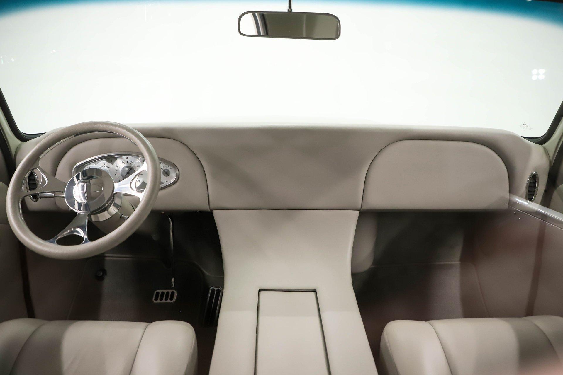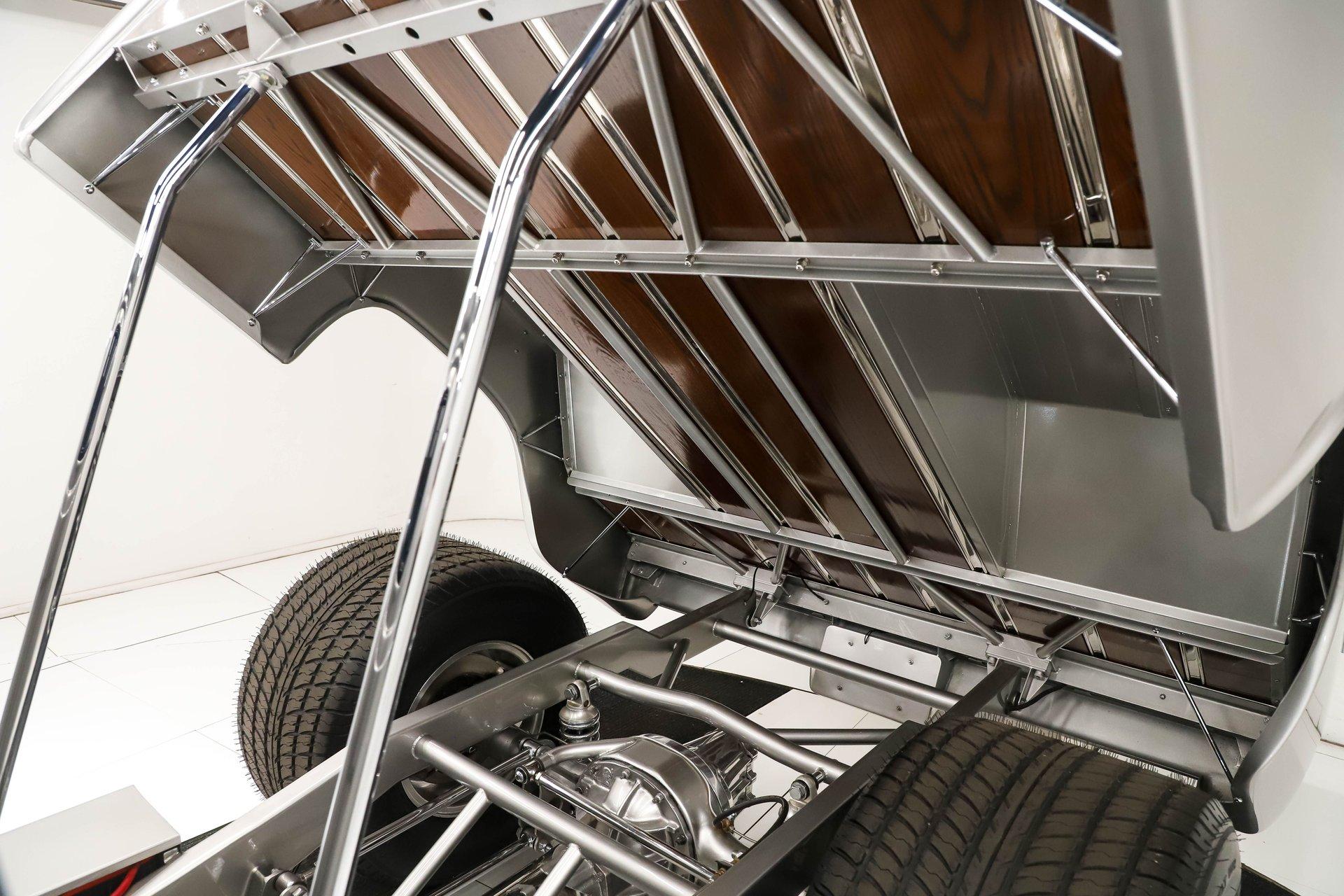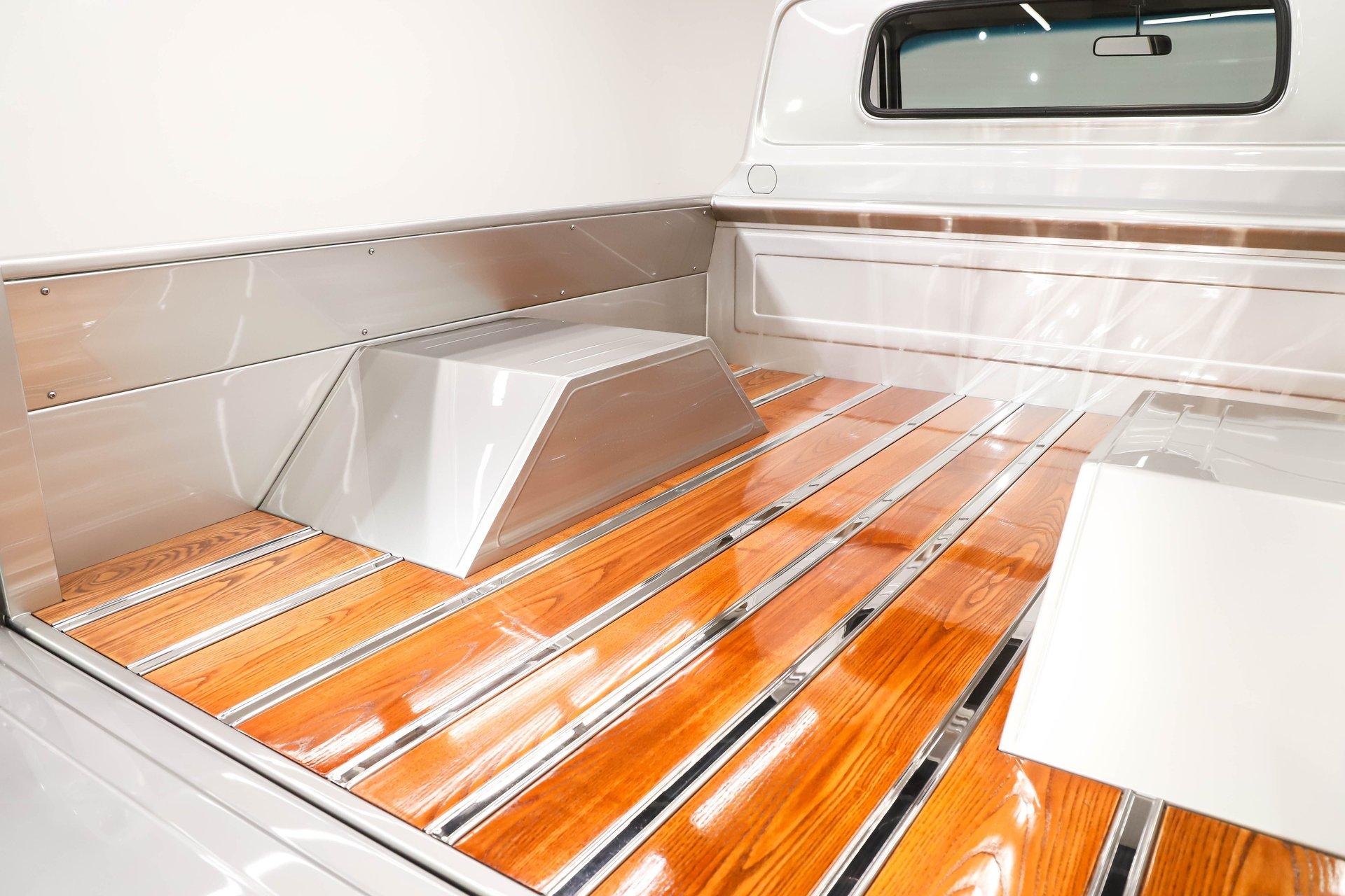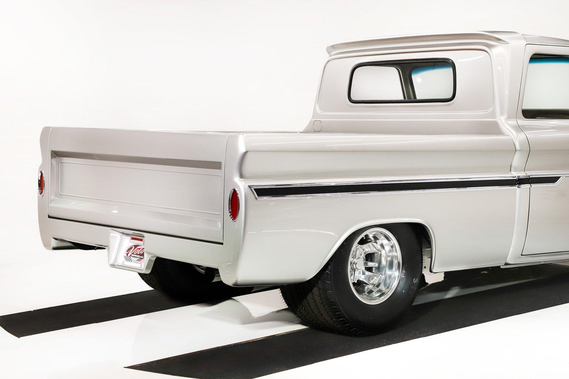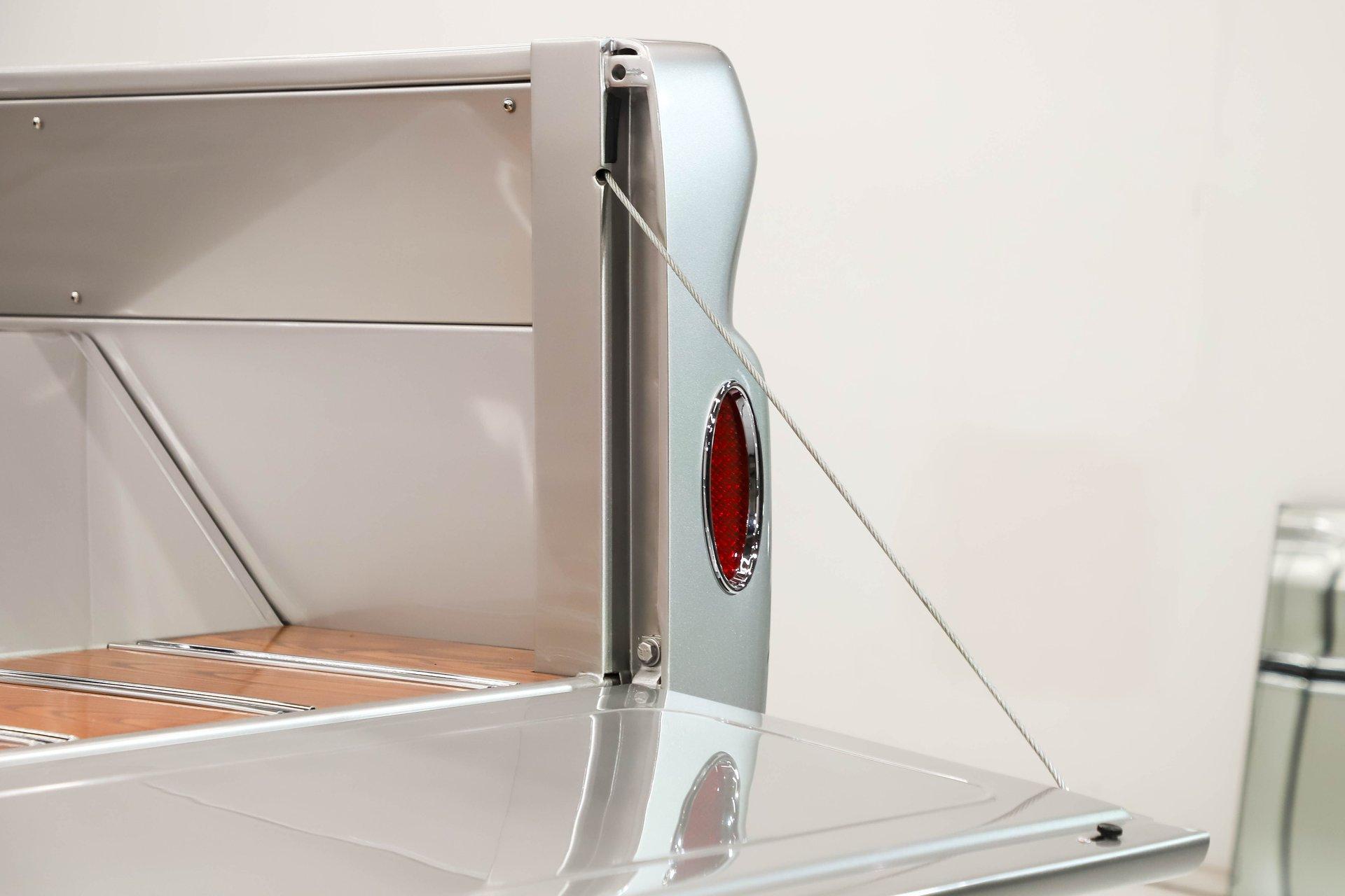 Celebrating our 65 year anniversary! This family owned and operated business was established in 1960, making us the oldest classic car dealership in America. Special thank you to all our customers for entrusting us to park the car of your dreams in your driveway while preserving automotive history for future generations to embrace and enjoy. -Grams family & Volo Museum staff The best in existence! Only 25 test miles on a breathtaking bespoke build. The quality of workmanship is out of this world. The custom tilt bed and hood put it in another stratosphere. Here is a unique opportunity to own a “once in a lifetime, pinnacle build” that was meticulously crafted by expert artisans. Really, anyone can brag about the quality of a vehicle, this is the best of the best. Michael and I were so very impressed with the owner and builder when he told us about the build. The amount of care, pride and effort that went into this truck is insurmountable! EXTERIOR: Beyond exceptionally impressive! It started as a clean southern Tennessee truck that was stripped to bare metal. There are some very significant and many subtle body modifications that were made, the longer you gaze, the more you will see. Looking down the side of the laser straight body is satisfying with its smooth contours and crisp lines. The truck was shaved removing emblems, mirrors, handles, bumpers and even the rain gutters for a clean look. The hood was extensively modified filling in the front vents and turn signals as well as redesigning it to flip forward. The turn signals were relocated to the lower front valance that was completely custom fabricated. The bed actually tilts back to show off the detail of the chassis! The tailgate is also a custom, smoother version of the original. The panels were painstakingly aligned with precise gaps that are right on the money. The doors close easily like a new car and pop open via electric remote key fob (there is also a manual release under the drivers side rocker panel). The high quality paint color is called Light Platinum Metallic and is a 2005 Cadillac XLR color that was tweaked with a very classy and slightly larger metal flake. It is literally polished smooth like a piece of glass, and has a reflection you could shave in. The side trim pieces were hand fabricated from solid brass then clad with show quality chrome. It also has a custom hand fabricated rollpan with an integrated license plate holder. A custom pop up gas door also has a quick fill cap. It was upgraded with nice bright halogen headlights. The handmade LED taillights are one of a kind, and the front turn signals are from a Harley Davidson Night Train. All the glass was replaced, the vent windows were eliminated for a cleaner looking 1 piece glass. The rubber seals are brand new. The entire ensemble is rolling on an awesome set of Halibrand chrome wheels with spinner center caps that are size 15x10 up front, and a ginormous 15×15 out back. They are wrapped in a new set of Hoosier performance radials. INTERIOR: Genuine glove soft leather everywhere! It took 8 cowhides to cover the seats, behind the seats, center console, dashboard, door panels, kick panels, and headliner. The leather was custom dyed at the same time for a perfectly consistent color. The interior smells great, just like a store that sells quality cowboy boots. The freshly upholstered buckets offer great support and comfort, all incorporated with an extremely clean look. They are equipped with modern 3 point shoulder harnesses for safety. All of the controls and switches are neatly concealed in the sliding center console compartment including the electronic push button transmission selector, ignition key cylinder, stereo, power window switches, and climate controls. The console also has speakers built into the side. The emergency brake is tucked away between the console and driver's seat. The gauges by Classic Instruments were the ideal choice matching the color and style of this truck so well. Air vents were added to the dash for the modern air conditioning system. A new tilt column was custom painted to match the upholstery and also has a leather wrapped billet steering wheel. Even the gas and brake pedals are new and upgraded to billet aluminum. The plush carpeting was custom cut and molded to fit tight with nicely bound edges. ENGINE COMPARTMENT: Professionally built! A 454 block was bored .030 over making it a 468 cubic inch V8 dyno tuned at 585 horsepower and 589 ft lbs of torque while running on pump gas. It was assembled utilizing the best parts available, they were part of a high quality kit which included the crank, rods, pistons and all the other internals. It was purchased from Reher Morrison Racing Engines, then precisely assembled by John Gosh from Motors by Gosh. Everything that could be balanced and rollered internally was. It has new Brodix heads, an Edelbrock intake manifold, and a giant Holley carburetor sitting on top. A really nice set of block hugger headers flank the sides. It is equipped with modern air conditioning, power steering, and a HEI ignition. The radiator was replaced and upgraded to a large unit with dual electric fans. Polished pulleys, a chrome air cleaner, and chrome valve covers dress up the bay nicely. The compartment has a custom cut firewall that was completely smoothed, and custom fabricated fenderwells too. The reverse opening hood is just too cool. Making things look so clean and tidy is like performing magic; and the builder of this truck was a true wizard! TRUNK COMPARTMENT: Tilt bed! Super spotless! Custom latches release the mechanism then the tailgate is held up by self retracting steel cables. Inside the jamb is painted slick just like the exterior. The rear wheel wells have been tubbed to accommodate the huge tires. The side walls have custom made panels that give it a very clean look. All the painted areas are finished to the same quality as the body. The floor was redone with nice thick oak slats and po