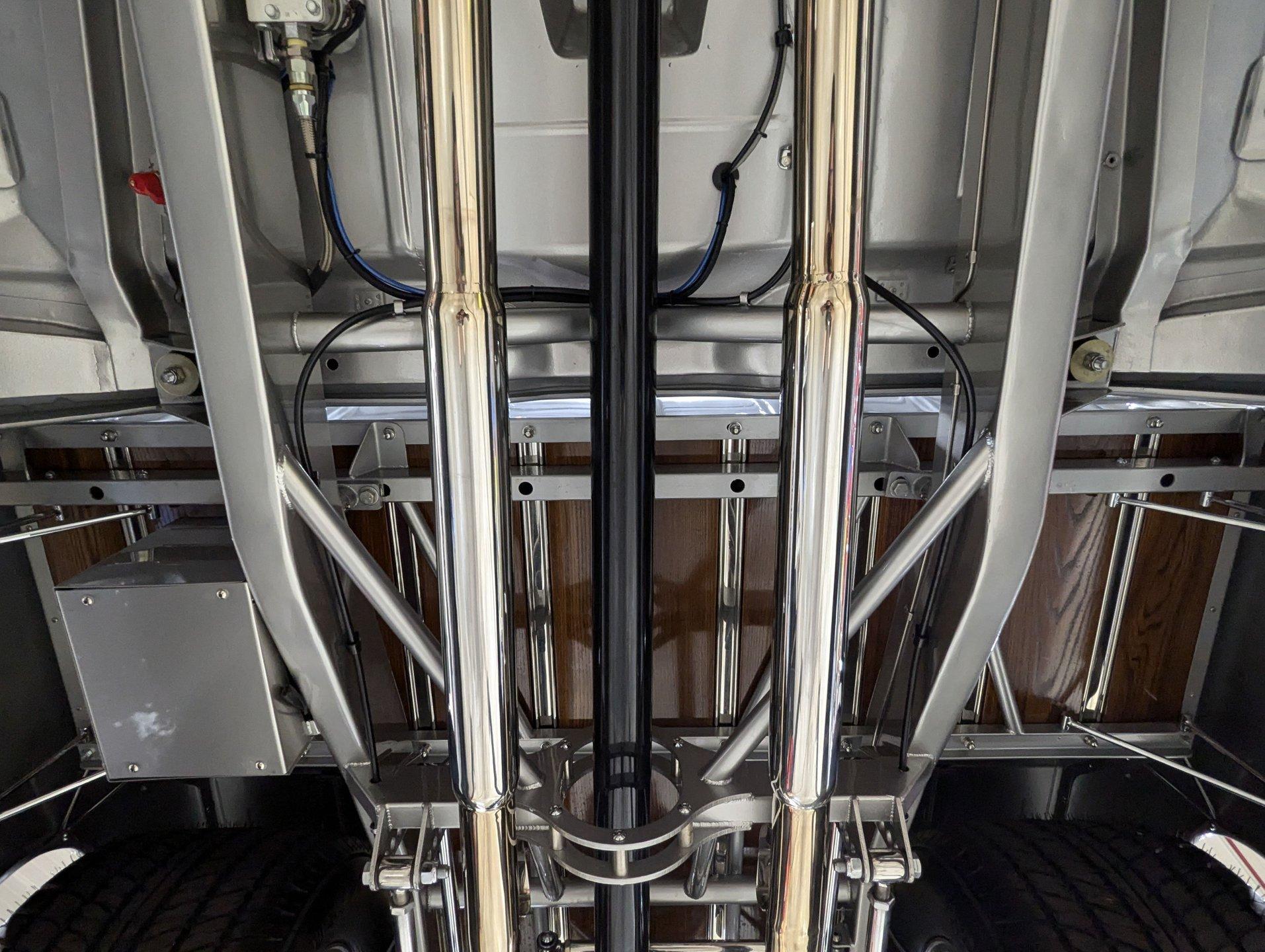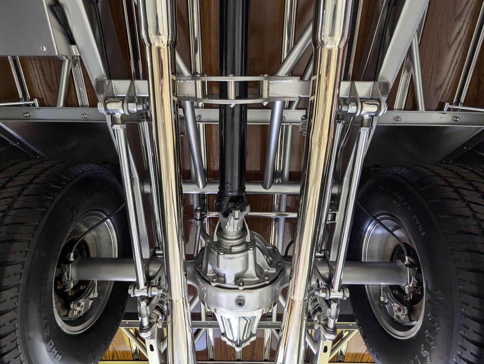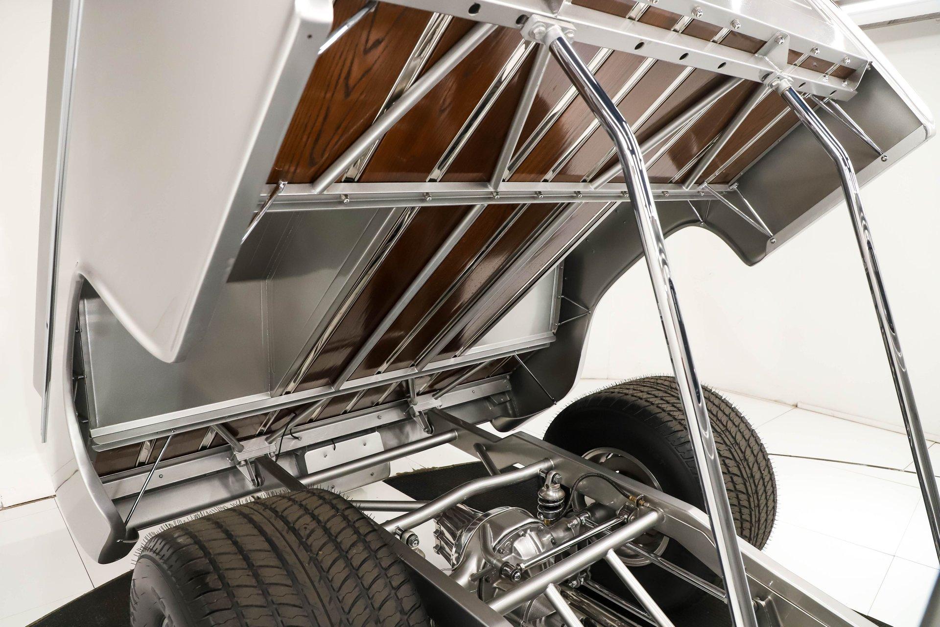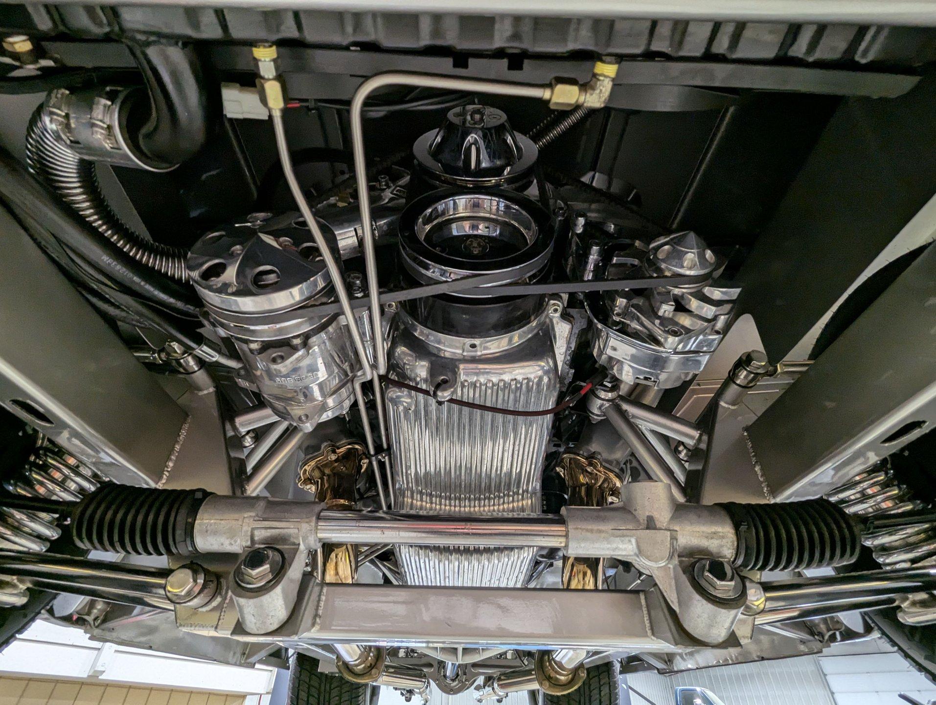 Celebrating our 65 year anniversary! This family owned and operated business was established in 1960, making us the oldest classic car dealership in America. Special thank you to all our customers for entrusting us to park the car of your dreams in your driveway while preserving automotive history for future generations to embrace and enjoy. -Grams family & Volo Museum staff The best in existence! Only 25 test miles on a breathtaking bespoke build. The quality of workmanship is out of this world. The custom tilt bed and hood put it in another stratosphere. Here is a unique opportunity to own a “once in a lifetime, pinnacle build” that was meticulously crafted by expert artisans. Really, anyone can brag about the quality of a vehicle, this is the best of the best. Michael and I were so very impressed with the owner and builder when he told us about the build. The amount of care, pride and effort that went into this truck is insurmountable! EXTERIOR: Beyond exceptionally impressive! It started as a clean southern Tennessee truck that was stripped to bare metal. There are some very significant and many subtle body modifications that were made, the longer you gaze, the more you will see. Looking down the side of the laser straight body is satisfying with its smooth contours and crisp lines. The truck was shaved removing emblems, mirrors, handles, bumpers and even the rain gutters for a clean look. The hood was extensively modified filling in the front vents and turn signals as well as redesigning it to flip forward. The turn signals were relocated to the lower front valance that was completely custom fabricated. The bed actually tilts back to show off the detail of the chassis! The tailgate is also a custom, smoother version of the original. The panels were painstakingly aligned with precise gaps that are right on the money. The doors close easily like a new car and pop open via electric remote key fob (there is also a manual release under the drivers side rocker panel). The high quality paint color is called Light Platinum Metallic and is a 2005 Cadillac XLR color that was tweaked with a very classy and slightly larger metal flake. It is literally polished smooth like a piece of glass, and has a reflection you could shave in. The side trim pieces were hand fabricated from solid brass then clad with show quality chrome. It also has a custom hand fabricated rollpan with an integrated license plate holder. A custom pop up gas door also has a quick fill cap. It was upgraded with nice bright halogen headlights. The handmade LED taillights are one of a kind, and the front turn signals are from a Harley Davidson Night Train. All the glass was replaced, the vent windows were eliminated for a cleaner looking 1 piece glass. The rubber seals are brand new. The entire ensemble is rolling on an awesome set of Halibrand chrome wheels with spinner center caps that are size 15x10 up front, and a ginormous 15×15 out back. They are wrapped in a new set of Hoosier performance radials. INTERIOR: Genuine glove soft leather everywhere! It took 8 cowhides to cover the seats, behind the seats, center console, dashboard, door panels, kick panels, and headliner. The leather was custom dyed at the same time for a perfectly consistent color. The interior smells great, just like a store that sells quality cowboy boots. The freshly upholstered buckets offer great support and comfort, all incorporated with an extremely clean look. They are equipped with modern 3 point shoulder harnesses for safety. All of the controls and switches are neatly concealed in the sliding center console compartment including the electronic push button transmission selector, ignition key cylinder, stereo, power window switches, and climate controls. The console also has speakers built into the side. The emergency brake is tucked away between the console and driver's seat. The gauges by Classic Instruments were the ideal choice matching the color and style of this truck so well. Air vents were added to the dash for the modern air conditioning system. A new tilt column was custom painted to match the upholstery and also has a leather wrapped billet steering wheel. Even the gas and brake pedals are new and upgraded to billet aluminum. The plush carpeting was custom cut and molded to fit tight with nicely bound edges. ENGINE COMPARTMENT: Professionally built! A 454 block was bored .030 over making it a 468 cubic inch V8 dyno tuned at 585 horsepower and 589 ft lbs of torque while running on pump gas. It was assembled utilizing the best parts available, they were part of a high quality kit which included the crank, rods, pistons and all the other internals. It was purchased from Reher Morrison Racing Engines, then precisely assembled by John Gosh from Motors by Gosh. Everything that could be balanced and rollered internally was. It has new Brodix heads, an Edelbrock intake manifold, and a giant Holley carburetor sitting on top. A really nice set of block hugger headers flank the sides. It is equipped with modern air conditioning, power steering, and a HEI ignition. The radiator was replaced and upgraded to a large unit with dual electric fans. Polished pulleys, a chrome air cleaner, and chrome valve covers dress up the bay nicely. The compartment has a custom cut firewall that was completely smoothed, and custom fabricated fenderwells too. The reverse opening hood is just too cool. Making things look so clean and tidy is like performing magic; and the builder of this truck was a true wizard! TRUNK COMPARTMENT: Tilt bed! Super spotless! Custom latches release the mechanism then the tailgate is held up by self retracting steel cables. Inside the jamb is painted slick just like the exterior. The rear wheel wells have been tubbed to accommodate the huge tires. The side walls have custom made panels that give it a very clean look. All the painted areas are finished to the same quality as the body. The floor was redone with nice thick oak slats and po