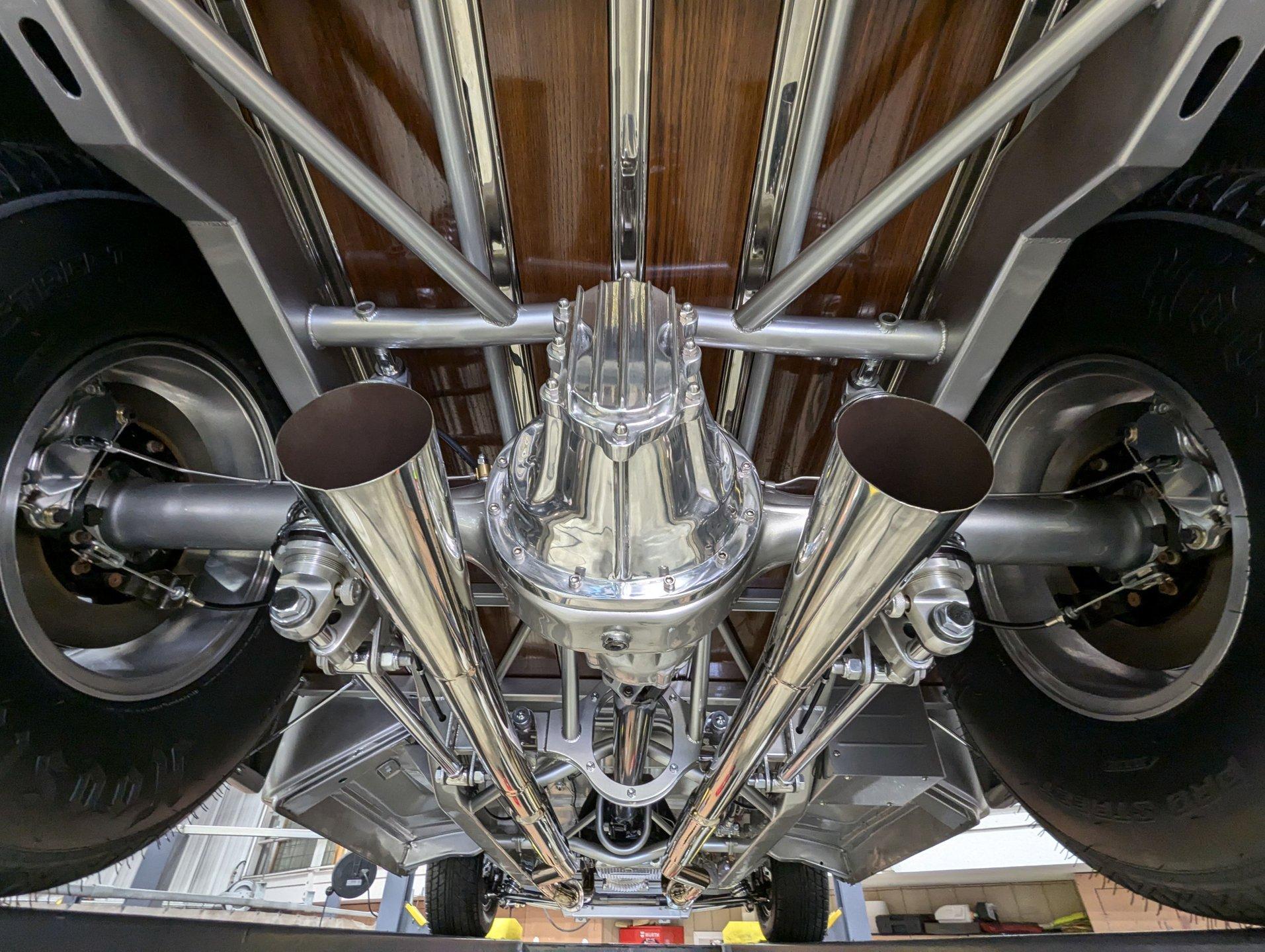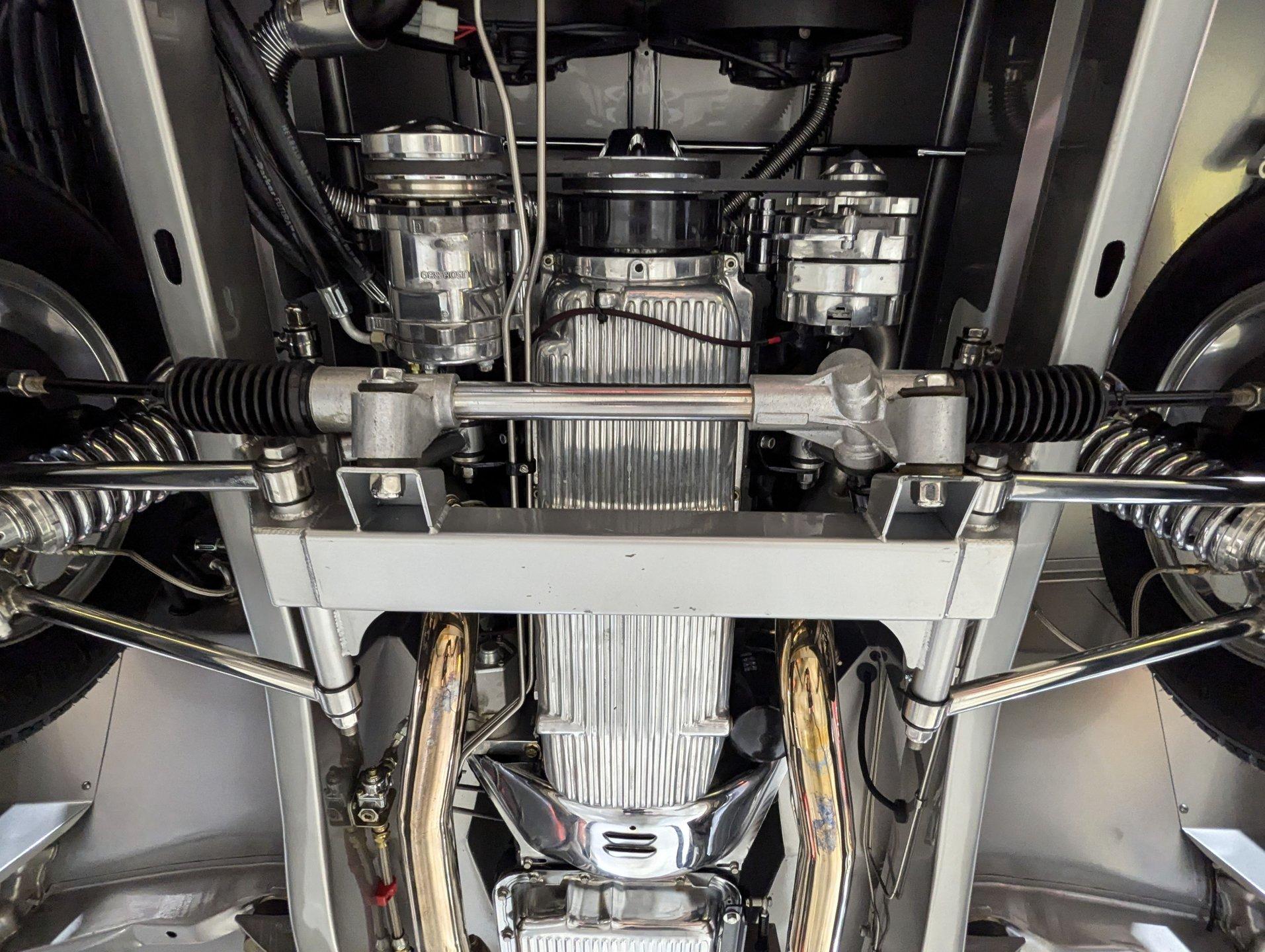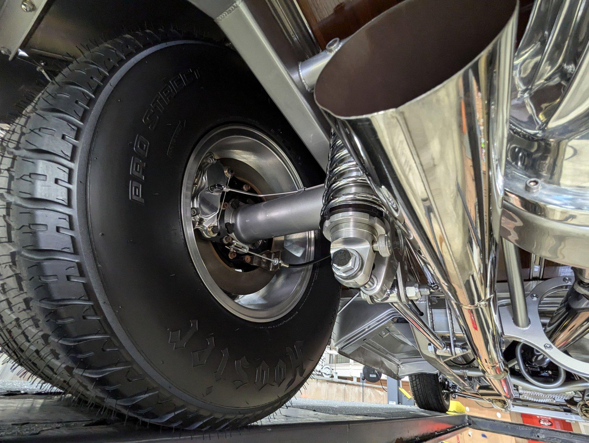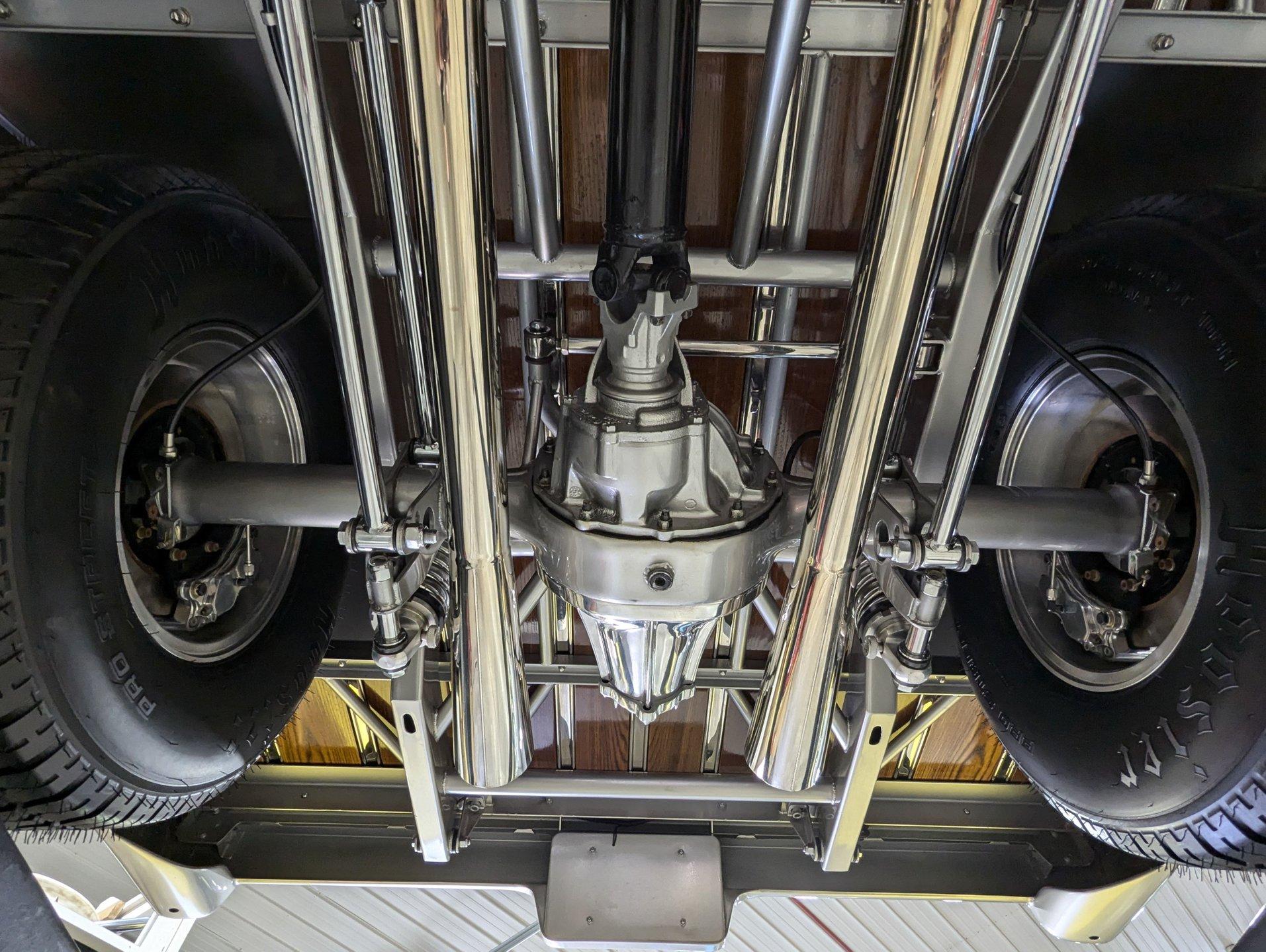 Celebrating our 65 year anniversary! This family owned and operated business was established in 1960, making us the oldest classic car dealership in America. Special thank you to all our customers for entrusting us to park the car of your dreams in your driveway while preserving automotive history for future generations to embrace and enjoy. -Grams family & Volo Museum staff The best in existence! Only 25 test miles on a breathtaking bespoke build. The quality of workmanship is out of this world. The custom tilt bed and hood put it in another stratosphere. Here is a unique opportunity to own a “once in a lifetime, pinnacle build” that was meticulously crafted by expert artisans. Really, anyone can brag about the quality of a vehicle, this is the best of the best. Michael and I were so very impressed with the owner and builder when he told us about the build. The amount of care, pride and effort that went into this truck is insurmountable! EXTERIOR: Beyond exceptionally impressive! It started as a clean southern Tennessee truck that was stripped to bare metal. There are some very significant and many subtle body modifications that were made, the longer you gaze, the more you will see. Looking down the side of the laser straight body is satisfying with its smooth contours and crisp lines. The truck was shaved removing emblems, mirrors, handles, bumpers and even the rain gutters for a clean look. The hood was extensively modified filling in the front vents and turn signals as well as redesigning it to flip forward. The turn signals were relocated to the lower front valance that was completely custom fabricated. The bed actually tilts back to show off the detail of the chassis! The tailgate is also a custom, smoother version of the original. The panels were painstakingly aligned with precise gaps that are right on the money. The doors close easily like a new car and pop open via electric remote key fob (there is also a manual release under the drivers side rocker panel). The high quality paint color is called Light Platinum Metallic and is a 2005 Cadillac XLR color that was tweaked with a very classy and slightly larger metal flake. It is literally polished smooth like a piece of glass, and has a reflection you could shave in. The side trim pieces were hand fabricated from solid brass then clad with show quality chrome. It also has a custom hand fabricated rollpan with an integrated license plate holder. A custom pop up gas door also has a quick fill cap. It was upgraded with nice bright halogen headlights. The handmade LED taillights are one of a kind, and the front turn signals are from a Harley Davidson Night Train. All the glass was replaced, the vent windows were eliminated for a cleaner looking 1 piece glass. The rubber seals are brand new. The entire ensemble is rolling on an awesome set of Halibrand chrome wheels with spinner center caps that are size 15x10 up front, and a ginormous 15×15 out back. They are wrapped in a new set of Hoosier performance radials. INTERIOR: Genuine glove soft leather everywhere! It took 8 cowhides to cover the seats, behind the seats, center console, dashboard, door panels, kick panels, and headliner. The leather was custom dyed at the same time for a perfectly consistent color. The interior smells great, just like a store that sells quality cowboy boots. The freshly upholstered buckets offer great support and comfort, all incorporated with an extremely clean look. They are equipped with modern 3 point shoulder harnesses for safety. All of the controls and switches are neatly concealed in the sliding center console compartment including the electronic push button transmission selector, ignition key cylinder, stereo, power window switches, and climate controls. The console also has speakers built into the side. The emergency brake is tucked away between the console and driver's seat. The gauges by Classic Instruments were the ideal choice matching the color and style of this truck so well. Air vents were added to the dash for the modern air conditioning system. A new tilt column was custom painted to match the upholstery and also has a leather wrapped billet steering wheel. Even the gas and brake pedals are new and upgraded to billet aluminum. The plush carpeting was custom cut and molded to fit tight with nicely bound edges. ENGINE COMPARTMENT: Professionally built! A 454 block was bored .030 over making it a 468 cubic inch V8 dyno tuned at 585 horsepower and 589 ft lbs of torque while running on pump gas. It was assembled utilizing the best parts available, they were part of a high quality kit which included the crank, rods, pistons and all the other internals. It was purchased from Reher Morrison Racing Engines, then precisely assembled by John Gosh from Motors by Gosh. Everything that could be balanced and rollered internally was. It has new Brodix heads, an Edelbrock intake manifold, and a giant Holley carburetor sitting on top. A really nice set of block hugger headers flank the sides. It is equipped with modern air conditioning, power steering, and a HEI ignition. The radiator was replaced and upgraded to a large unit with dual electric fans. Polished pulleys, a chrome air cleaner, and chrome valve covers dress up the bay nicely. The compartment has a custom cut firewall that was completely smoothed, and custom fabricated fenderwells too. The reverse opening hood is just too cool. Making things look so clean and tidy is like performing magic; and the builder of this truck was a true wizard! TRUNK COMPARTMENT: Tilt bed! Super spotless! Custom latches release the mechanism then the tailgate is held up by self retracting steel cables. Inside the jamb is painted slick just like the exterior. The rear wheel wells have been tubbed to accommodate the huge tires. The side walls have custom made panels that give it a very clean look. All the painted areas are finished to the same quality as the body. The floor was redone with nice thick oak slats and po