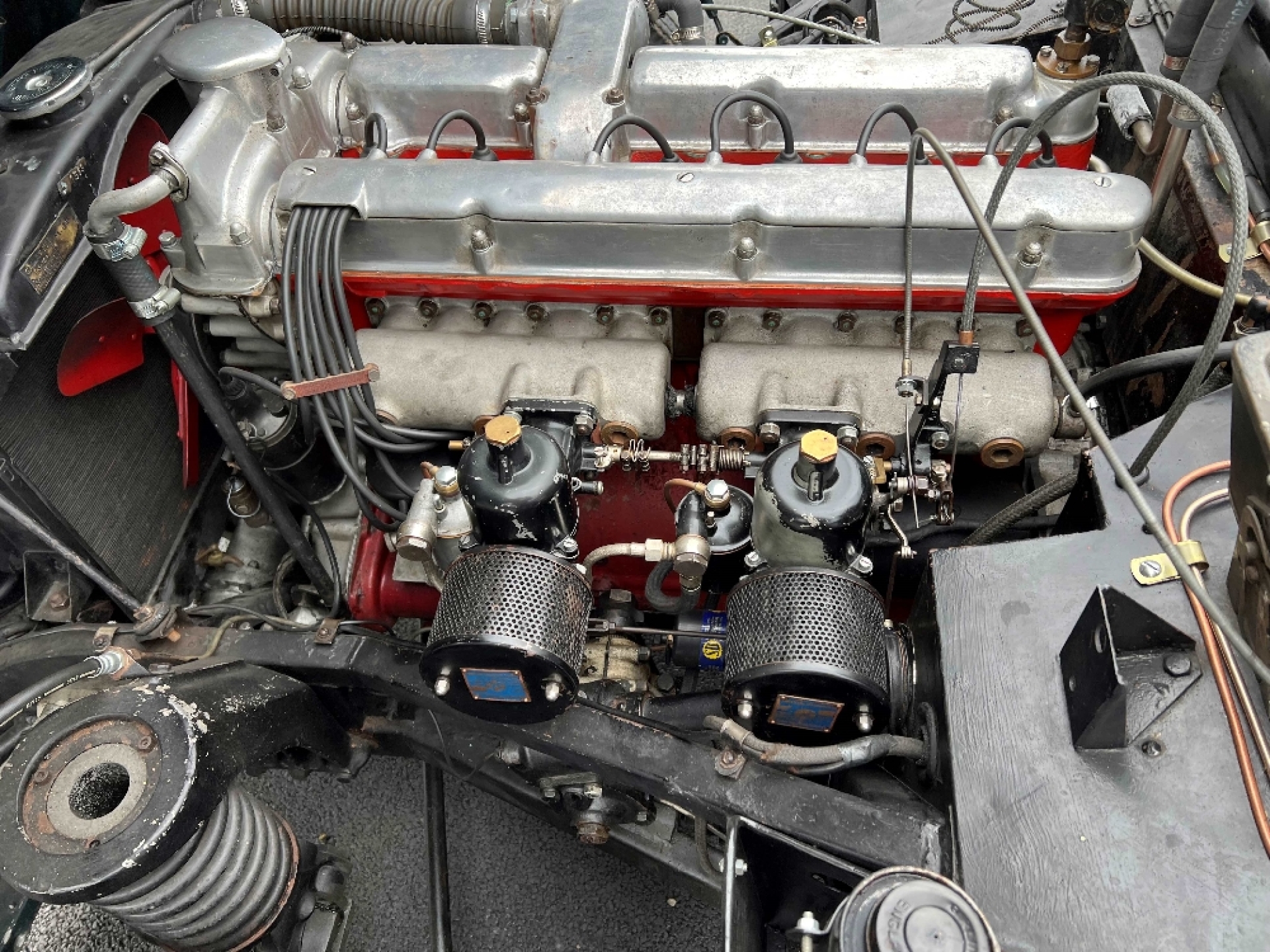 Built with the improved 3.0L engine together with Alfin brakes, Le Mans headlamps, an arm-rest on the driver’s door, a built up tool kit and a locking glove box lid to the dashboard. The original colours were white with red trim and a black hood the latter which it retains. Now well presented in the more traditional colours of British Racing Green with Tan hides and black mohair hood.