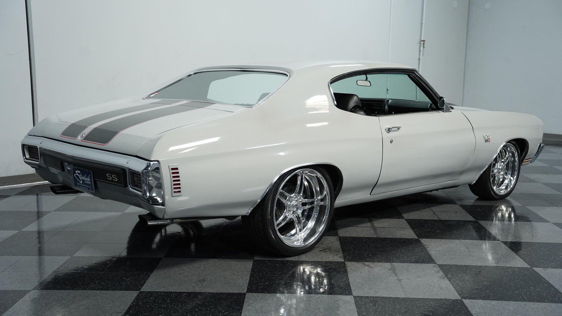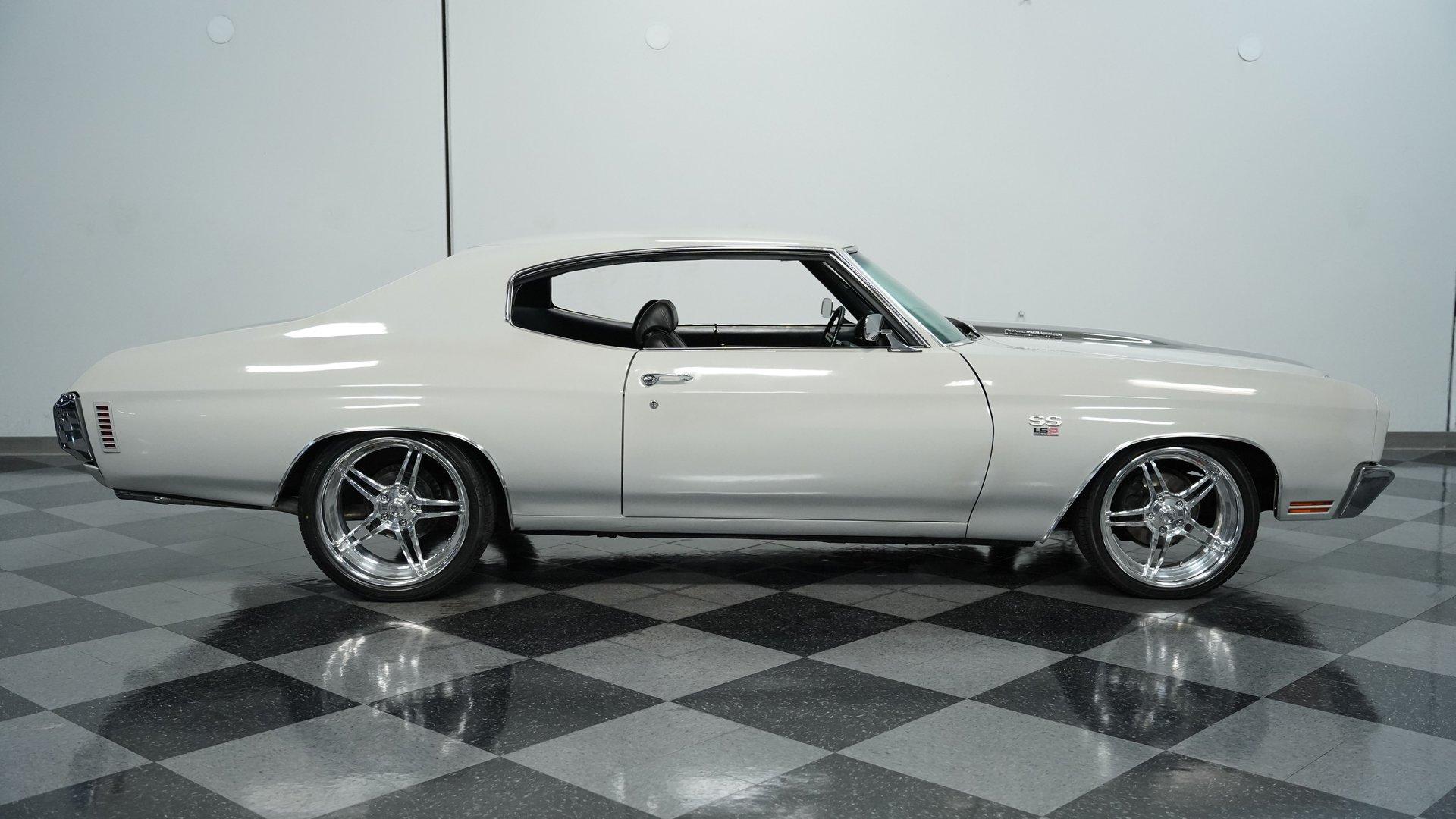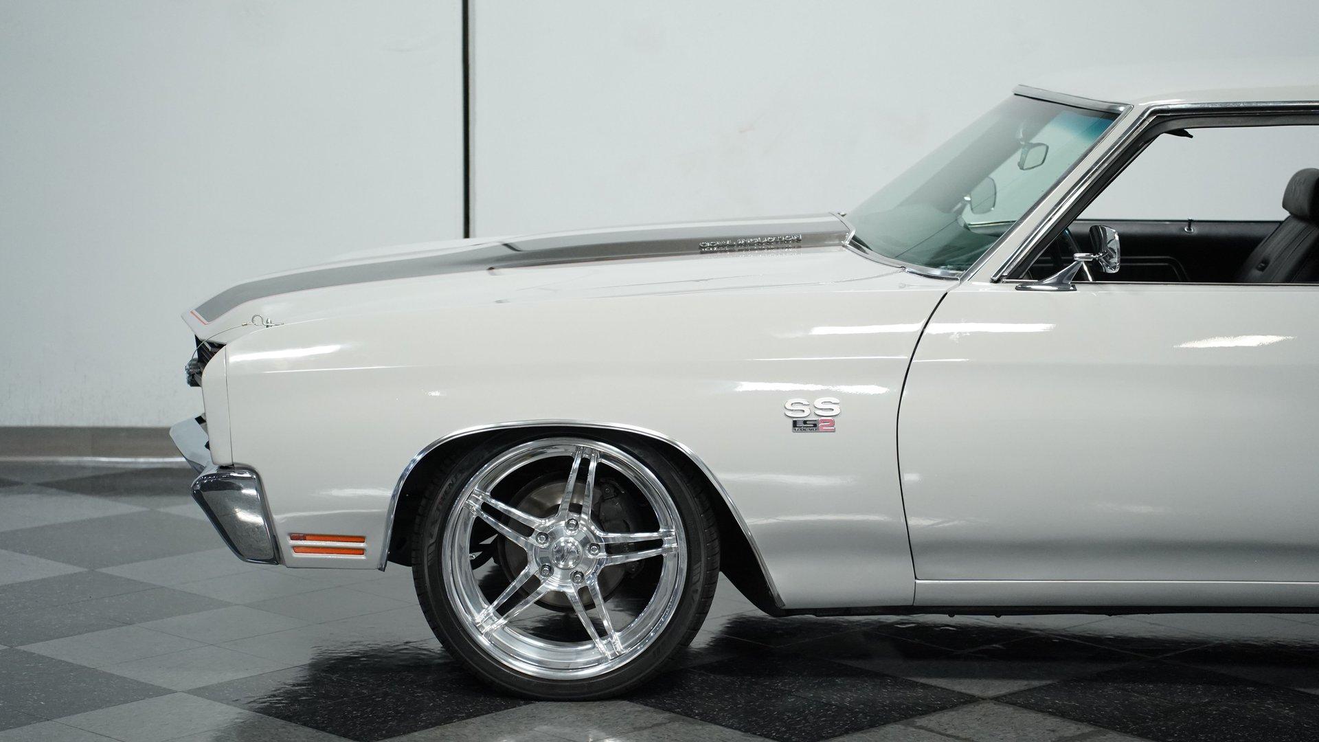 While the Chevelle name has been long gone from Chevy's showroom for decades, its legacy lives on in the hearts and minds of muscle car enthusiasts everywhere. One look at this 1970 Chevrolet Chevelle LS2 Restomod, and it's easy to see why this car has been so lusted after. Fully repainted in a beautiful Chalk Grey with complementing red and grey painted racing stripes, this Chevelle showcases its hood-pinned cowl hood, along with its huge polished wheels that not-so-subtly hint at the car's modern technology. Inside, we find a nicely done black vinyl interior. A center console separates a pair of bucket seats, sporting red SS badge stitching. A three-spoke power-assisted steering wheel sits ahead of a trick Dakota Digital gauge cluster, highlighted by an 8,000 rpm tachometer and 150 mph speedometer. A digital AM/FM/Bluetooth head unit keeps the modern vibe going, while a Vintage Air HVAC setup keeps things cool. Under that expansive hood, we find a late-model 6.0-liter overhead valve V-8 engine. With a lightweight aluminum block and heads, sequential-port fuel injection, a composite intake manifold, and high-flow injectors, this Gen IV small block is capable of producing a minimum of 400 horsepower and 400 pound-feet of torque. That output is funneled through a 4L60E four-speed automatic transmission before heading out to the ten-bolt rear end that transfers power to the pavement via a set of massive 20-inch Billet Specialties wheels shod in 275/35R-19 low-profile rubber. At the same time, a staggered set of 19-inch wheels is wrapped in narrower 245/35R-19 tires that handle steering duties up front. HIGHLIGHTS: Full Chalk Grey Repaint Red and Grey Racing Stripes Cowl Hood Hood Pins LS2 V8 Shorty Headers 4L60E Four Speed Auto Ten Bolt Rear Four Wheel Power Brakes Front Disc Brakes Billet Specialties Wheels Z-Rated Low Profile Tires Black Vinyl Interior SS Emblems on Seatbacks Dakota Digital Gauges Vintage Air HVAC AC Rear Deck Speaker Bluetooth Radio This 1970 Chevrolet Chevelle LS2 Restomod rides on a relatively stock-style suspension consisting of an independent front and four-link rear setup. Four-wheel power brakes, featuring a pair of front discs, are ready to scrub off speed at a moment's notice. This restomod Chevelle takes what we love most about Chevy's iconic muscle car and adds a reliable and potent modern powertrain. If you have yet to feel what it's like to turn heads everywhere you go, then this is the car you've been searching for. Don't wait, call today!