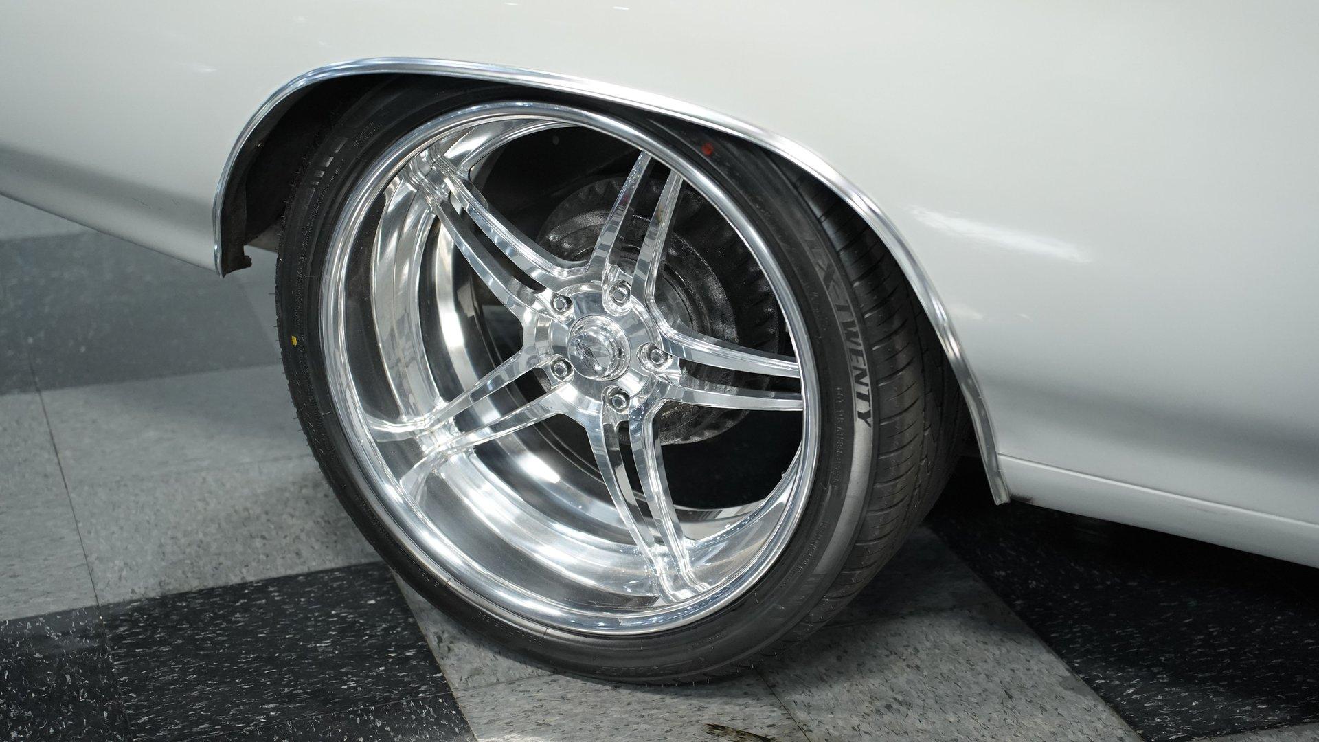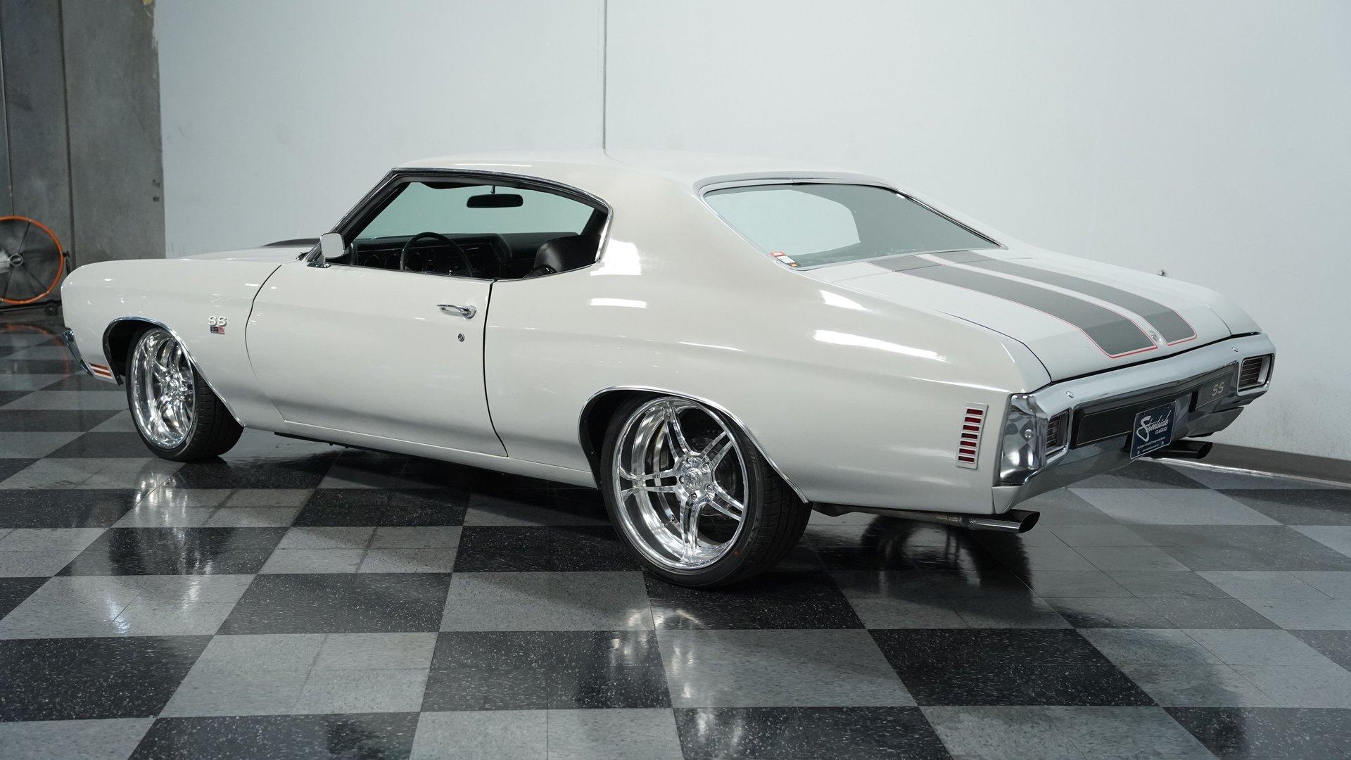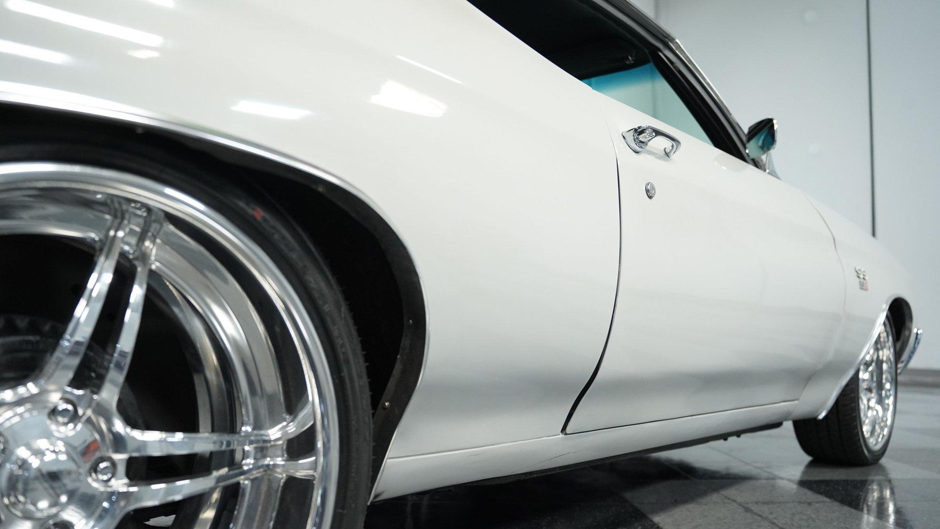 While the Chevelle name has been long gone from Chevy's showroom for decades, its legacy lives on in the hearts and minds of muscle car enthusiasts everywhere. One look at this 1970 Chevrolet Chevelle LS2 Restomod, and it's easy to see why this car has been so lusted after. Fully repainted in a beautiful Chalk Grey with complementing red and grey painted racing stripes, this Chevelle showcases its hood-pinned cowl hood, along with its huge polished wheels that not-so-subtly hint at the car's modern technology. Inside, we find a nicely done black vinyl interior. A center console separates a pair of bucket seats, sporting red SS badge stitching. A three-spoke power-assisted steering wheel sits ahead of a trick Dakota Digital gauge cluster, highlighted by an 8,000 rpm tachometer and 150 mph speedometer. A digital AM/FM/Bluetooth head unit keeps the modern vibe going, while a Vintage Air HVAC setup keeps things cool. Under that expansive hood, we find a late-model 6.0-liter overhead valve V-8 engine. With a lightweight aluminum block and heads, sequential-port fuel injection, a composite intake manifold, and high-flow injectors, this Gen IV small block is capable of producing a minimum of 400 horsepower and 400 pound-feet of torque. That output is funneled through a 4L60E four-speed automatic transmission before heading out to the ten-bolt rear end that transfers power to the pavement via a set of massive 20-inch Billet Specialties wheels shod in 275/35R-19 low-profile rubber. At the same time, a staggered set of 19-inch wheels is wrapped in narrower 245/35R-19 tires that handle steering duties up front. HIGHLIGHTS: Full Chalk Grey Repaint Red and Grey Racing Stripes Cowl Hood Hood Pins LS2 V8 Shorty Headers 4L60E Four Speed Auto Ten Bolt Rear Four Wheel Power Brakes Front Disc Brakes Billet Specialties Wheels Z-Rated Low Profile Tires Black Vinyl Interior SS Emblems on Seatbacks Dakota Digital Gauges Vintage Air HVAC AC Rear Deck Speaker Bluetooth Radio This 1970 Chevrolet Chevelle LS2 Restomod rides on a relatively stock-style suspension consisting of an independent front and four-link rear setup. Four-wheel power brakes, featuring a pair of front discs, are ready to scrub off speed at a moment's notice. This restomod Chevelle takes what we love most about Chevy's iconic muscle car and adds a reliable and potent modern powertrain. If you have yet to feel what it's like to turn heads everywhere you go, then this is the car you've been searching for. Don't wait, call today!