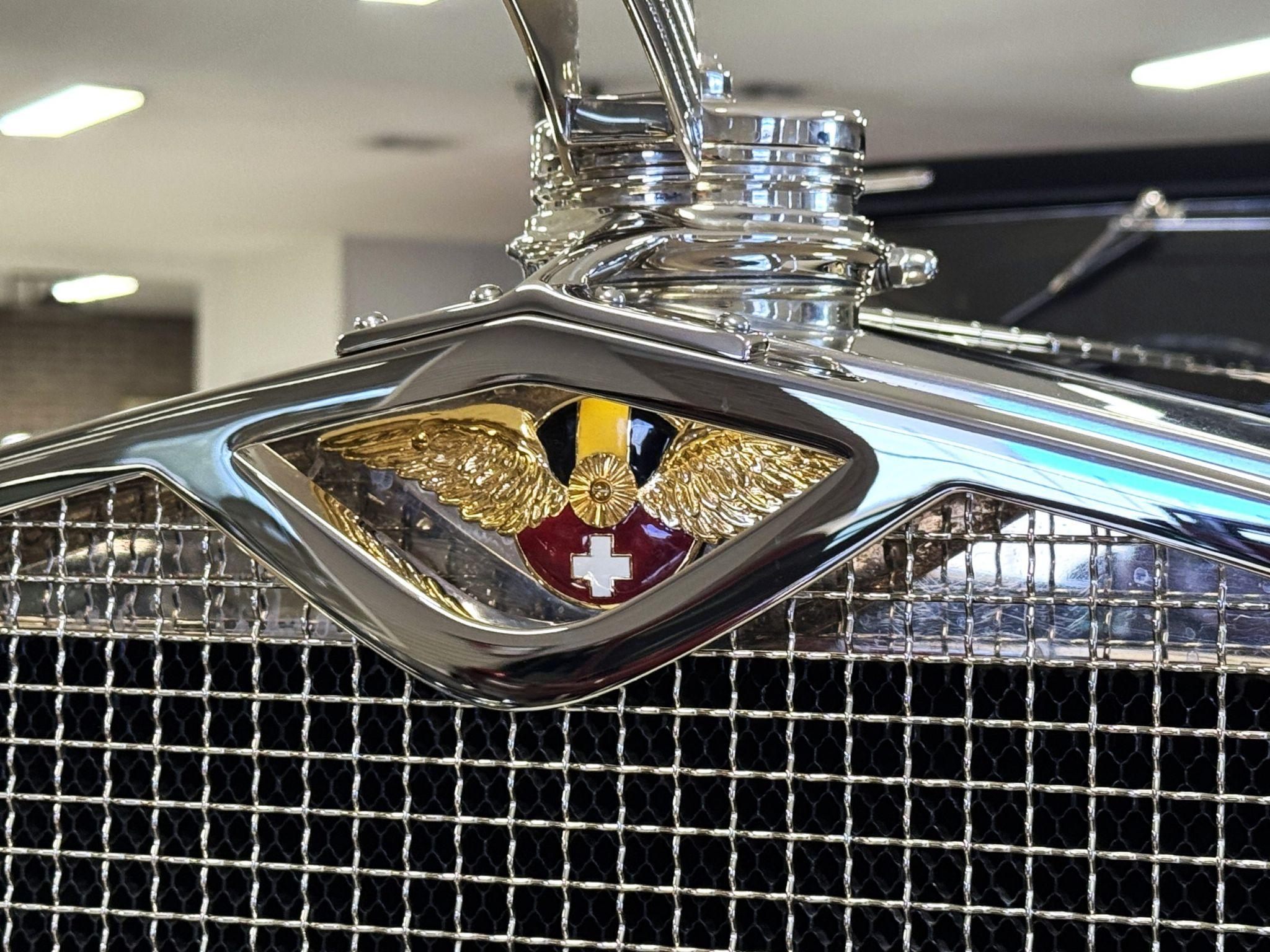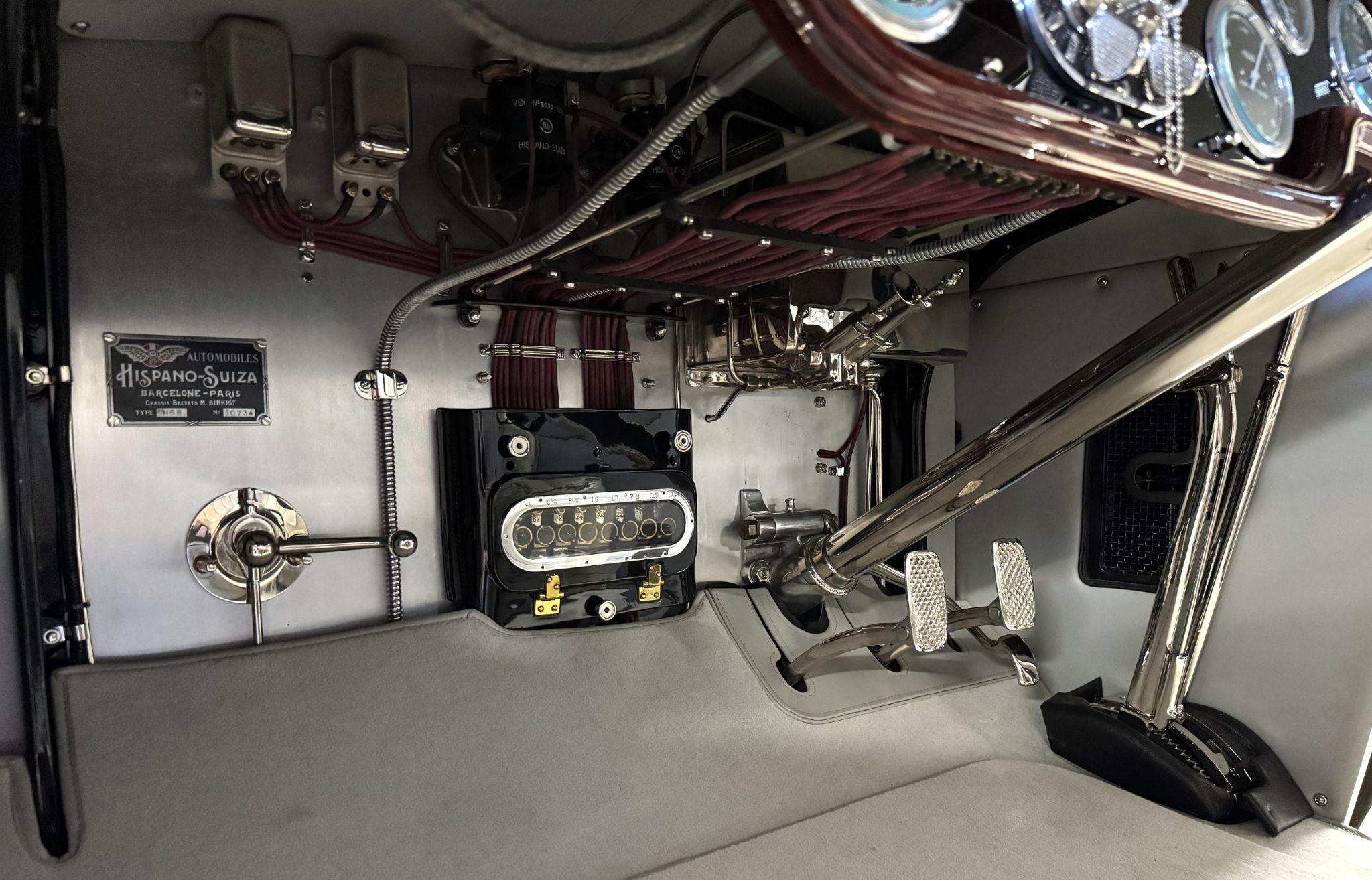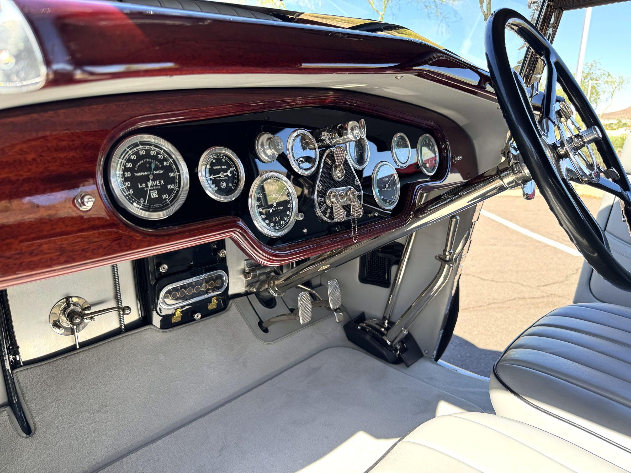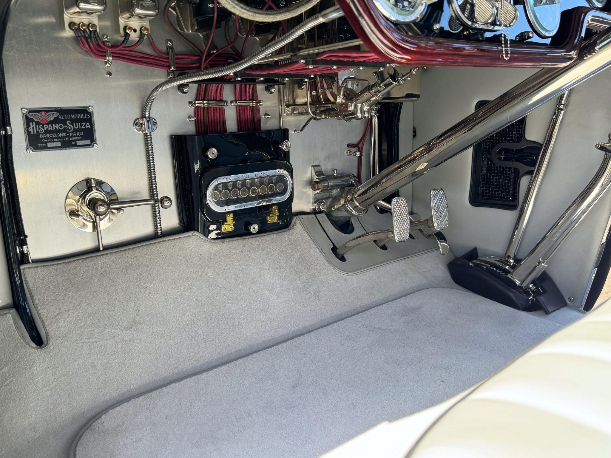 The 1923 Hispano-Suiza H6B Cabriolet, chassis number 10734, is a concours-winning example of one of Europes most technically advanced and aesthetically elegant automobiles of the interwar years. Winner of First in Class at the 2024 Pebble Beach Concours dElegance, this Hispano-Suiza combines Fernandez et Darrins sleek cabriolet coachwork with the marques aircraft-derived engineering to create a motorcar of exceptional presence. Finished in black over light gray leather with nickel-plated trim, the H6B represents a world-class candidate for the most exclusive concours events worldwide. Chassis 10734 was purchased new in June 1923 by Albert Venot. While the original body is not recorded, factory documentation suggests that the Hispano-Suiza was returned in 1929 for rebuilding, with Fernandez et Darrin completing the present Cabriolet bodywork in 1932. In the 1950s, the Hispano-Suiza was discovered in a French salvage yard, with the chassis and engine numbers verified against the original Venot car. The H6B was later acquired by collector Mr. Bitel and then passed to Dutch enthusiasts Jan Bruijn and J.A. Palman in the late 1980s. After a period of incomplete restoration, the Hispano-Suiza was sold to Otis Chandler in 2002 and entered the care of Stu Laidlaw in California. Following Chandlers passing, George Fernandez of Spain assumed ownership before being acquired by collector Sam Mann in 2015, who completed the restoration. Today, the Hispano-Suiza is offered in fully restored, concours-winning condition with a fascinating and well-documented history. The exterior coachwork by Fernandez et Darrin is finished in a sleek black with nickel-plated hardware throughout, in overall excellent condition. The Hispano-Suiza features a folding black soft top, dual coach doors with nickel handles, Marchal headlights, sweeping fenders with art deco accent lamps, and the marques signature Flying Stork mascots at both the radiator and rear deck. Dual windshields, including a cleverly concealed screen for rumble seat passengers, provide elegance and functionality. Full cloth side mount wheel covers, and a prominent grille complete the striking, period-correct presentation. The interior is upholstered in light gray leather with black piping, complemented by matching grey carpets and floor mats which are all in excellent condition. Mahogany wood trim adorns the doors and dashboard, while the etched nickel-plated instrument panel features Jaeger gauges labeled in French, including a 130 km/h speedometer and matching auxiliary instruments. The right-hand drive configuration, complete with steering wheel throttle controls and a floor-mounted shifter, reflects the cars original sporting character. A Cognac Brown convertible headliner and nickel-plated hardware complete the thoughtful, authentic finish. Every element of the Hispano-Suizas interior reinforces the quality and craftsmanship expected of one of Europes premier luxury marques. The Hispano-Suiza H6B was engineered by Swiss designer Marc Birkigt and became legendary for its technical sophistication. Powered by a 6.6-liter inline six-cylinder derived from aviation practice, the H6B employed steel cylinder liners in an aluminum block, overhead camshaft valve actuation, and a pressure-lubricated crankshaft with seven main bearings. Servo-assisted four-wheel brakes, patented by the marque, gave the Hispano-Suiza stopping power unmatched by contemporaries. Chassis 10734 retains its early-style rear axle assembly and crankcase, with evidence of an updated block dating from the 1929 rebuilding, while original components including the carburetor, distributor caps, and valve covers remain present. The Hispano-Suiza runs very well, reflecting both the brilliance of its engineering and the care invested in its recent restoration. For more information and details, please call or text Harry Clark at 1.602.245.7200 or email us at sales@classicpromenade.com. This Hispano-Suiza is available for inspection at our showroom in Phoenix. We are pleased to offer FaceTime or WhatsApp live video inspections, and we help coordinate shipping worldwide. We also have financing partners if you are interested in financing.