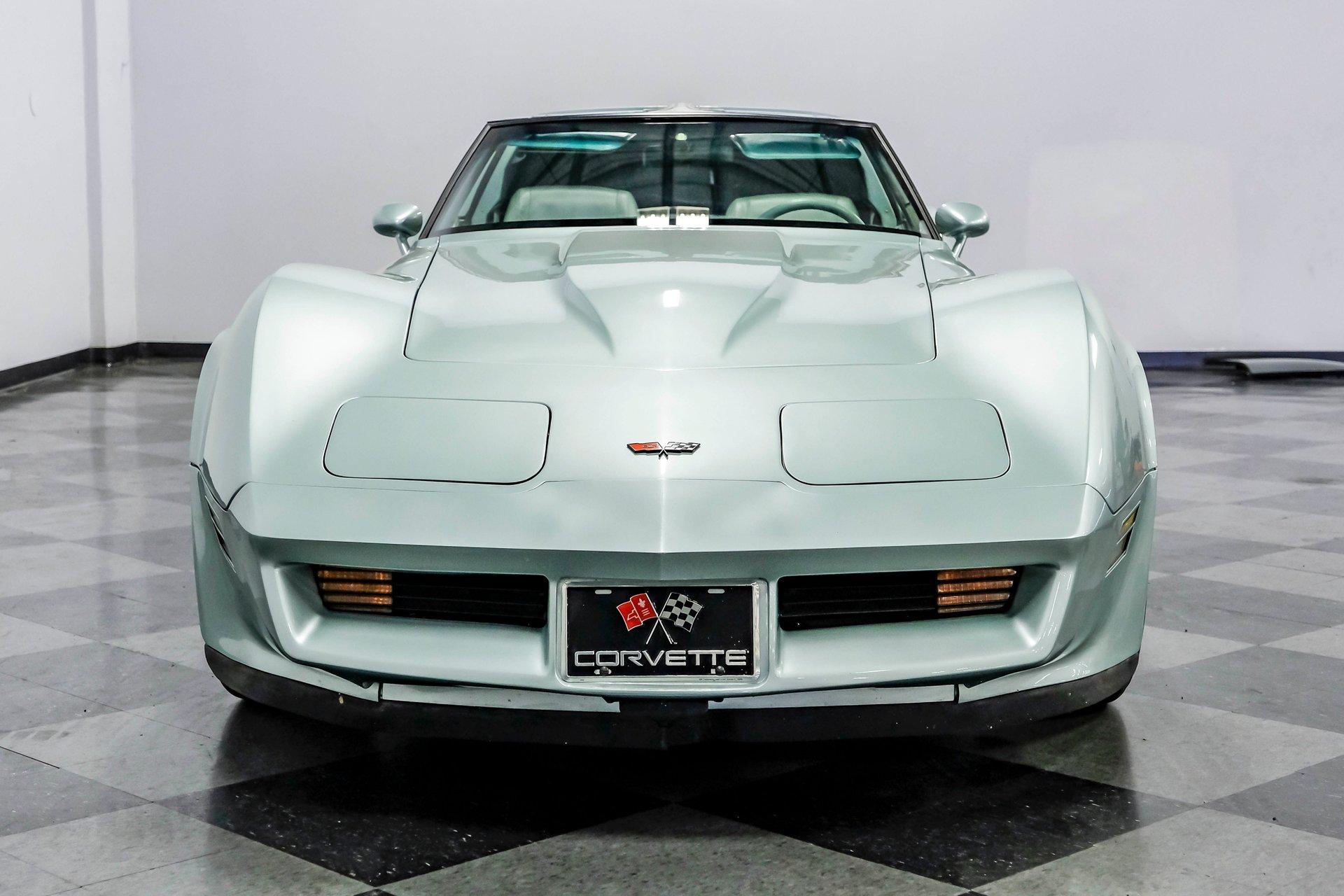 There is something about a true classic that reaches past practical utility and straight into the imagination. This Corvette is one of those cars that makes a statement just by being present, conjuring memories of open roads, small-town main streets, and the pride of owning an authentic piece of American performance history. Its presence is refined and purposeful, yet it still invites the sort of hands-on ownership that collectors and enthusiasts appreciate. If you have been looking for a C3 that blends rarity with correct running gear, consider this 1982 Chevrolet Corvette finished in the one-year Silver Green Metallic with a numbers-matching 350 V8 and 4-speed automatic overdrive transmission and A/C interior. Slide inside and you will find a mostly correct and comfortable interior that wears its age in the right places. The leather seats remain attractive overall with minimal wear. In addition to air conditioning, power features include power windows, power locks, power mirrors, and a power driver seat with tilt and telescopic steering column. The factory AM/FM cassette head unit and rear window defogger are intact. Overall, the cabin presents well and remains highly usable for regular driving or show duty. Under the hood this car retains the numbers-matching 350 V8 with the Crossfire fuel injection setup that is appropriate for the final C3 year. The engine starts easily, idles smoothly, and the car runs and drives without any notable concerns. The 4-speed automatic with overdrive shifts smoothly and suits highway cruising. Braking is handled by power disc brakes front and rear, and steering is power assisted for comfortable, confidence-inspiring control. The suspension keeps the car settled with coil springs and shocks up front and a mono leaf rear arrangement, and the car rides on 15 inch wheels with 255/60R15 BFG tires. Highlights: Final-year C3, single-year Silver Green Metallic exterior and matching single-year interior color believed to be one of about 723 finished in this paint Numbers-matching 350 V8 with Crossfire fuel injection 4-speed automatic with overdrive Factory air conditioning Power steering Power disc brakes Leather interior w/ power seats, power windows, power mirrors, tilt and telescopic steering column, and factory AM/FM cassette radio 15 inch factory wheels with 255/60R15 BFGoodrich tires This Corvette represents a rare color combination and the authentic driveline that collectors look for while still being an enjoyable driver. It offers a balance of originality and usable condition that will please both long-time enthusiasts and newcomers to Corvette ownership. Call today!