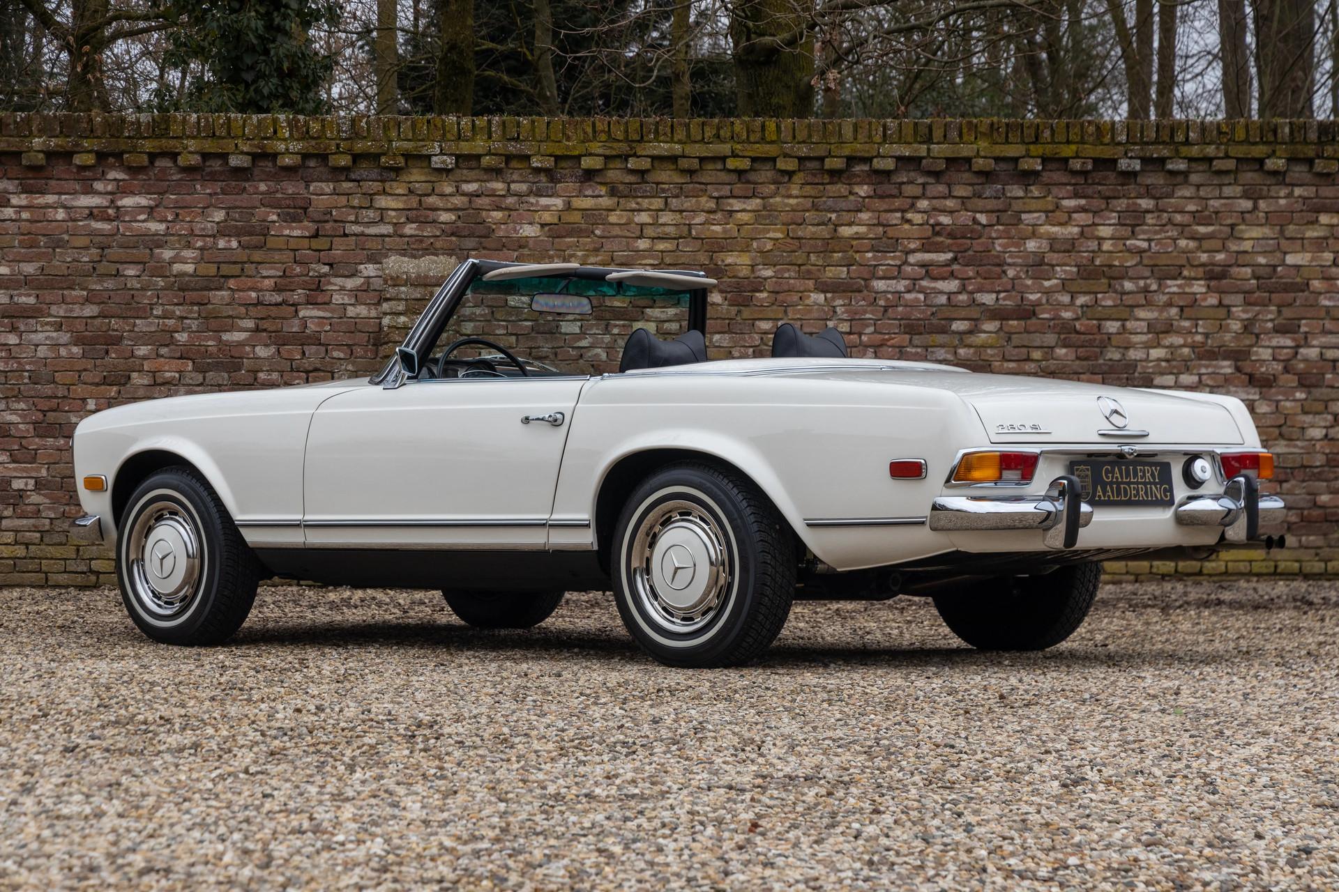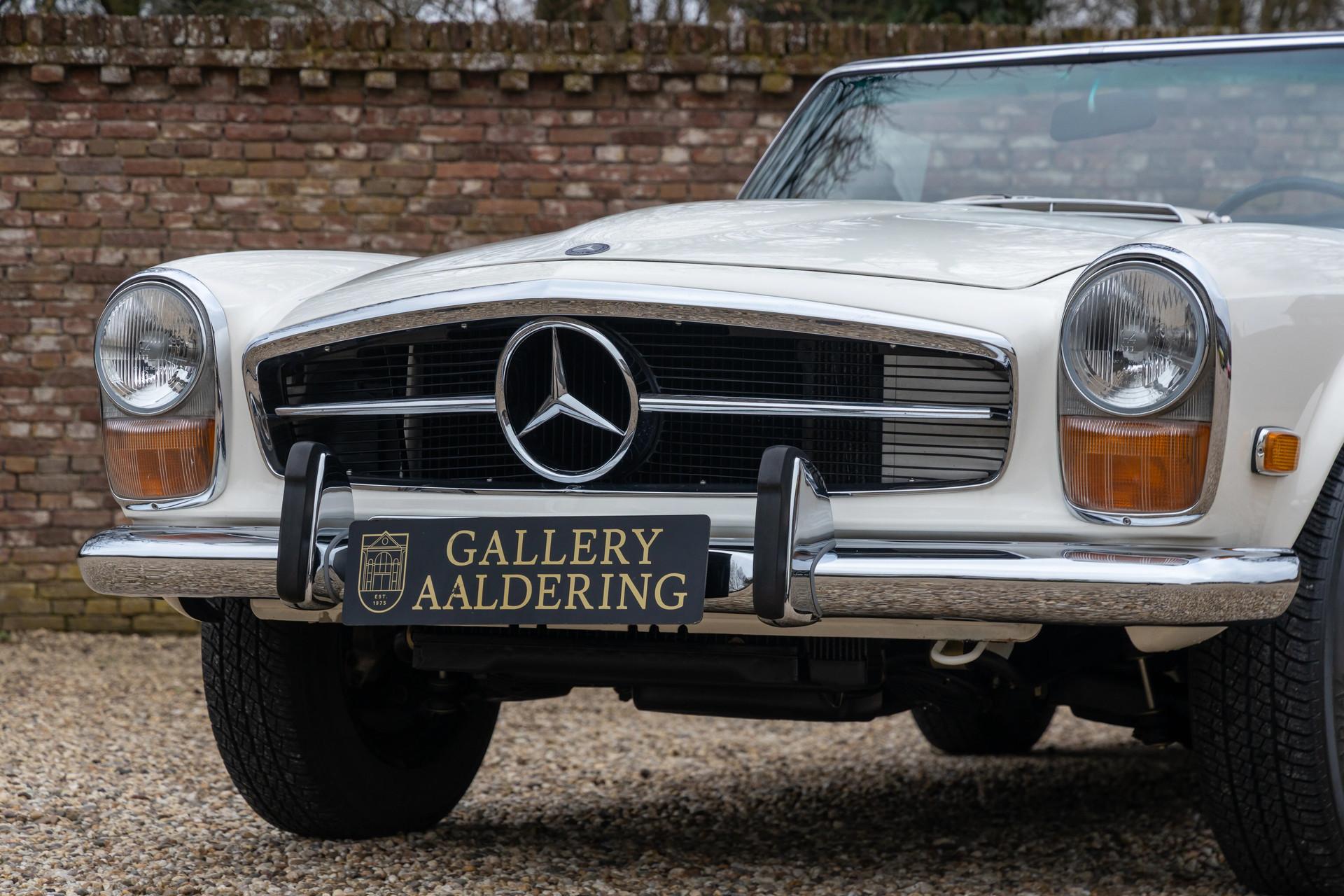This particular example, a 1970 280 SL, has undergone extensive restoration and refurbishment and now presents in truly stunning condition. The paintwork displays a beautiful luster and is of very high quality. The panel fit is excellent, and the chrome trim is exceptionally clean and well finished. At this level of restoration, such quality is exactly what you would expect. The underside of this Mercedes is equally impressive—just take a look at the photographs on our website.