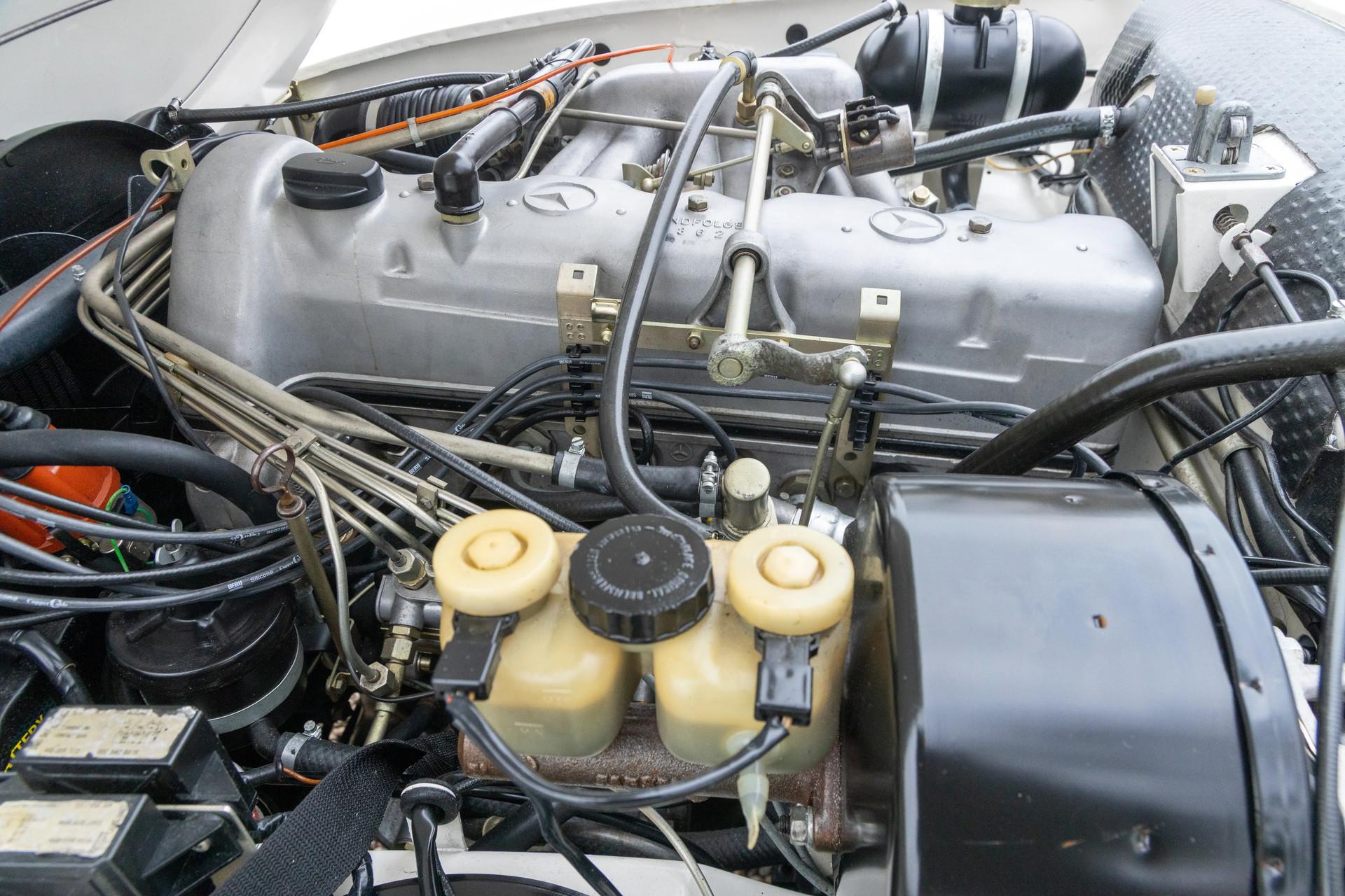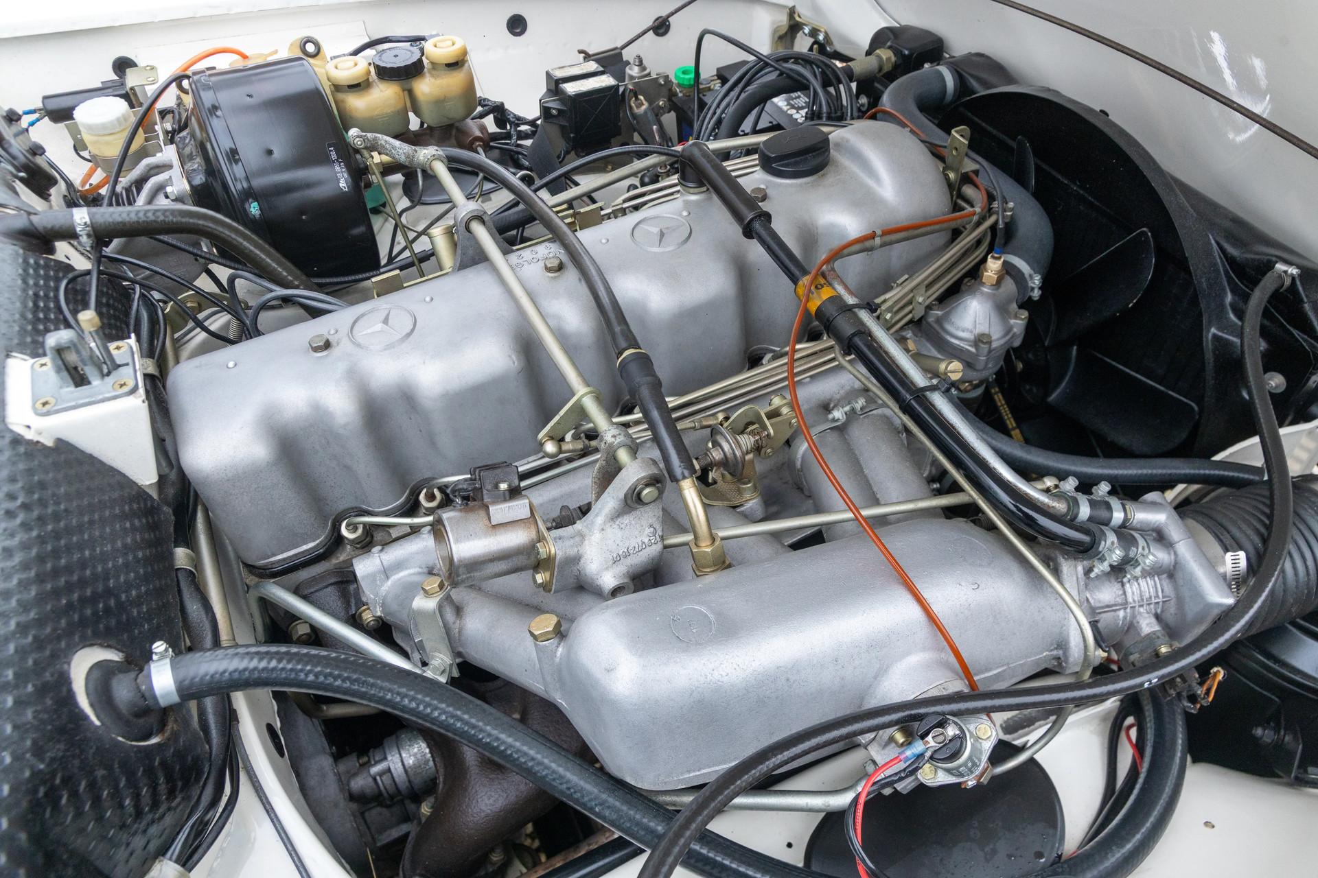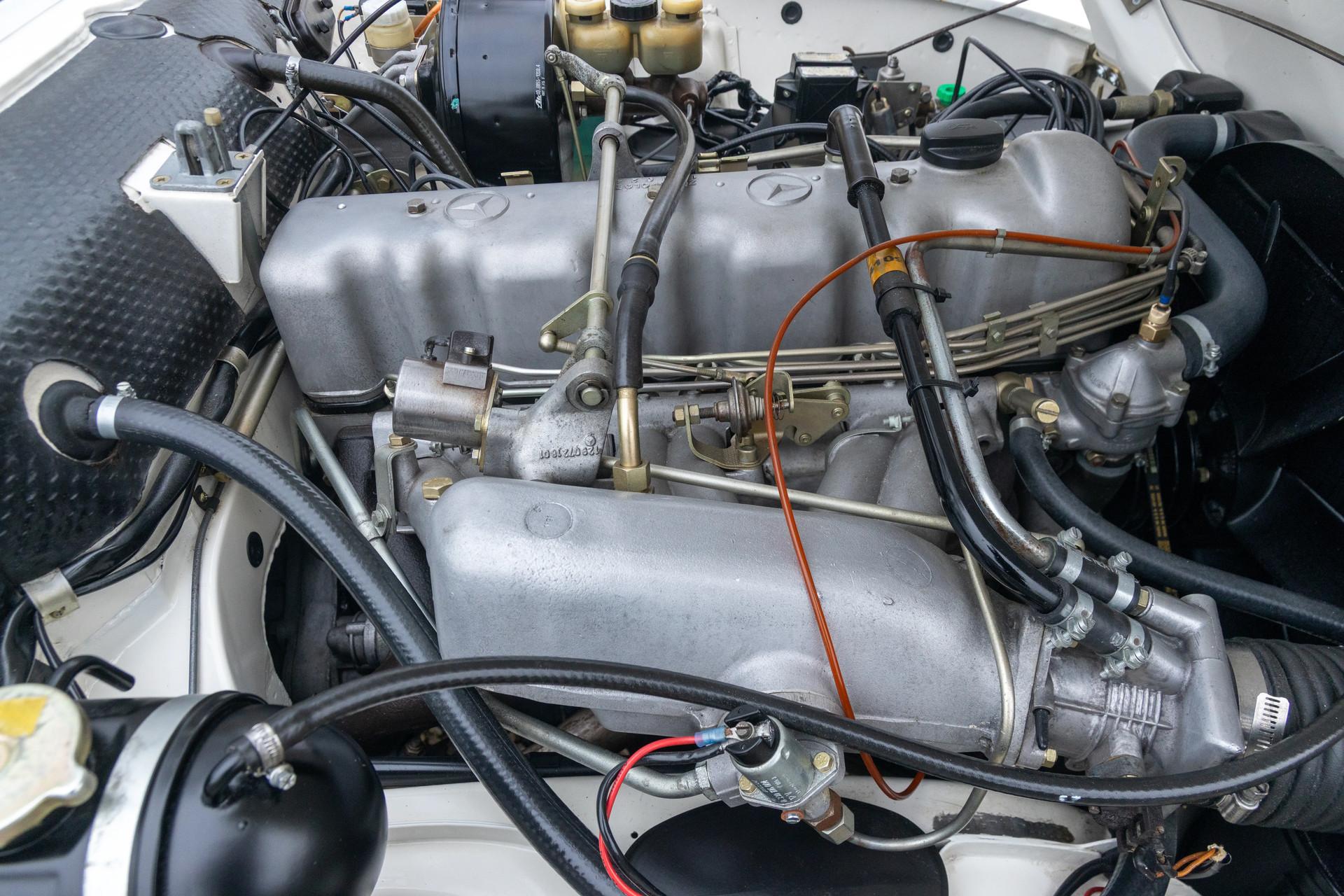 The engine in this Mercedes is nothing short of legendary. Turn the key, and you instantly know you are behind the wheel of a Mercedes-Benz. The sound is smooth, with no intrusive vibrations, and the driving experience is simply unforgettable. It is easy to forget that you are piloting a car more than fifty years old. This example is fitted with a manual transmission, giving the drive a more sporting character. The gearbox shifts with precision and feel, and the wonderfully refined engine always provides ample power.