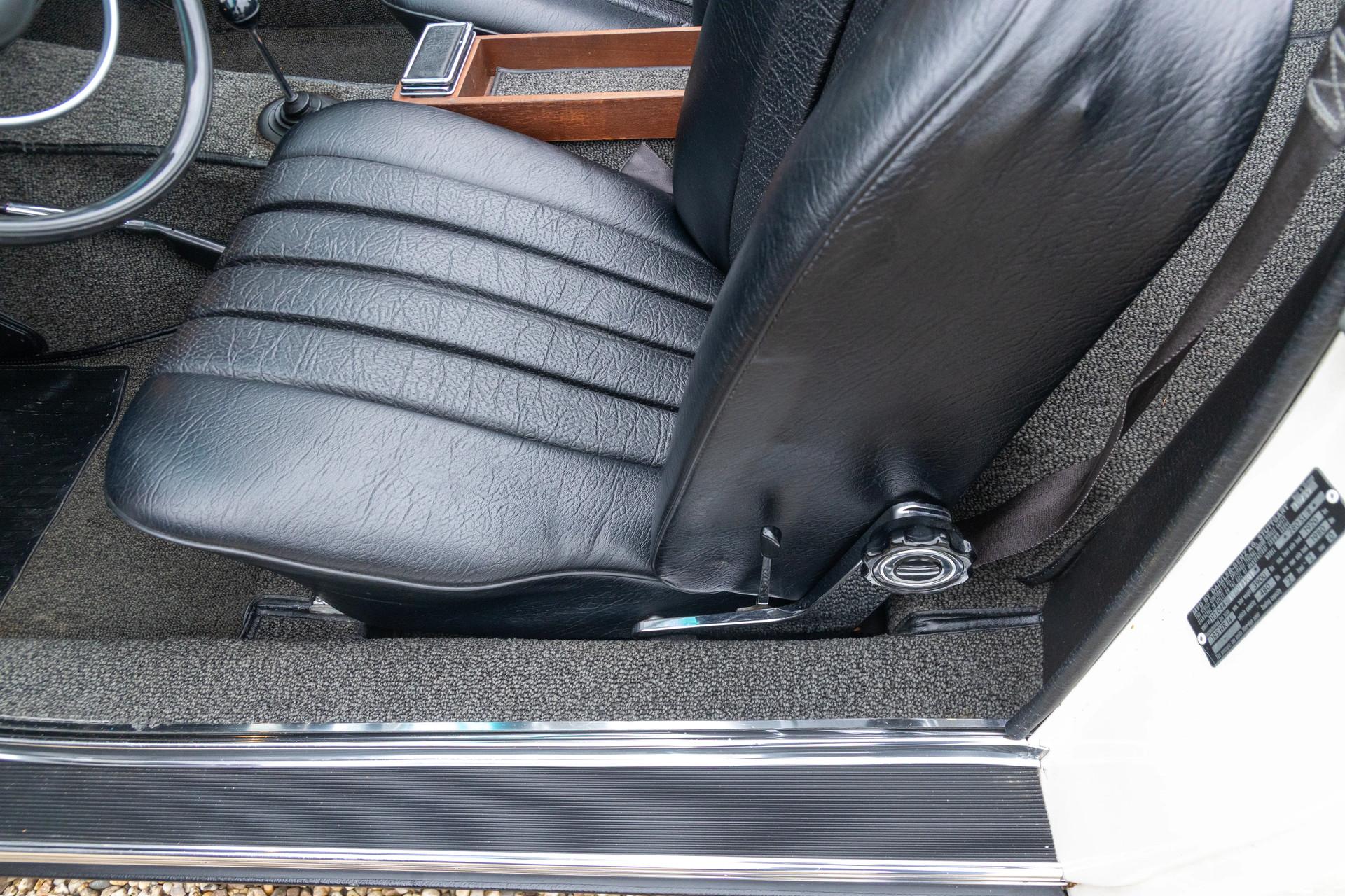 The classic color combination of a white exterior with a black interior is as timeless as it gets, and the cabin immediately impresses with its refinement. The upholstery is of outstanding quality, the carpets are immaculate, and the dashboard—complete with the correct steering wheel—looks superb. A thick file of invoices further confirms that this is an outstanding example in every respect.