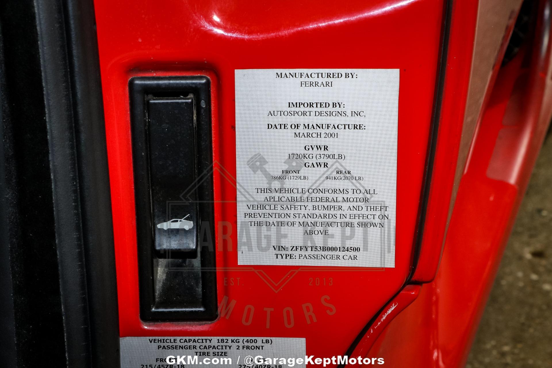 2001 Ferrari 360 Spider- Only 8k Original Miles!- European Market Example- Imported in to the U.S. in 2001- Rossa Corsa with Black Soft Top- Nero Leather Interior- 3.6L Rear Engine V8- 6 Speed F1 Sequential Gearbox- Limited Slip Differential - 2025 Timing Belt Service- 18 Inch 5 Spoke Alloy Wheels- Clean CarFaxThe 2001 Ferrari 360 Spider is a beautiful representation of early 2000s Italian performance and design, delivering open-top driving excitement paired with the raw emotion Ferrari is known for. This particular example is a rare European market model that was imported into the United States in 2001, making it a unique find among domestic 360 Spiders. With just 8,000 original miles, it remains in exceptional condition, offering a near time-capsule experience for collectors or enthusiasts seeking originality and low mileage.Finished in the iconic Rosso Corsa paint with a black soft top, this Ferrari exudes classic styling and presence. The factory 18-inch 5-spoke alloy wheels give the car a balanced, aggressive stance while maintaining the refined look of a true exotic. The body and paint are in excellent shape, showcasing the low miles and careful ownership history. A clean CarFax further confirms its accident-free past and adds value and peace of mind for prospective buyers.Inside, the Nero leather interior provides a sharp, purposeful contrast to the vibrant exterior. The cabin is well-preserved, with minimal signs of wear on the seats, dash, and trimfitting for a vehicle with such low usage. The driver?s environment is designed for engagement, featuring F1-style paddle shifters, clear analog gauges, and premium materials throughout. It?s a cockpit that reminds you this car is built for spirited driving as much as for visual appeal.Power comes from a 3.6-liter rear-mounted V8 that delivers a thrilling sound and engaging powerband. Paired with a 6-speed F1 sequential gearbox, the car shifts rapidly and precisely, providing an experience close to Ferrari?s Formula 1 heritage. The limited-slip differential enhances traction and control, especially during spirited cornering. Importantly, a timing belt service is scheduled for 2025, addressing one of the most crucial maintenance needs for long-term ownership confidence.With its European origins, extremely low mileage, and desirable Rosso Corsa over Nero color combination, this 2001 Ferrari 360 Spider stands out as a highly collectible and enjoyable modern classic. It's a turn-key exotic that offers the kind of performance, design, and pedigree that continues to define Ferrari?s legacy. Whether destined for a collection or weekend canyon runs, this Spider is an opportunity to own one of the marque?s most iconic drop-top models.