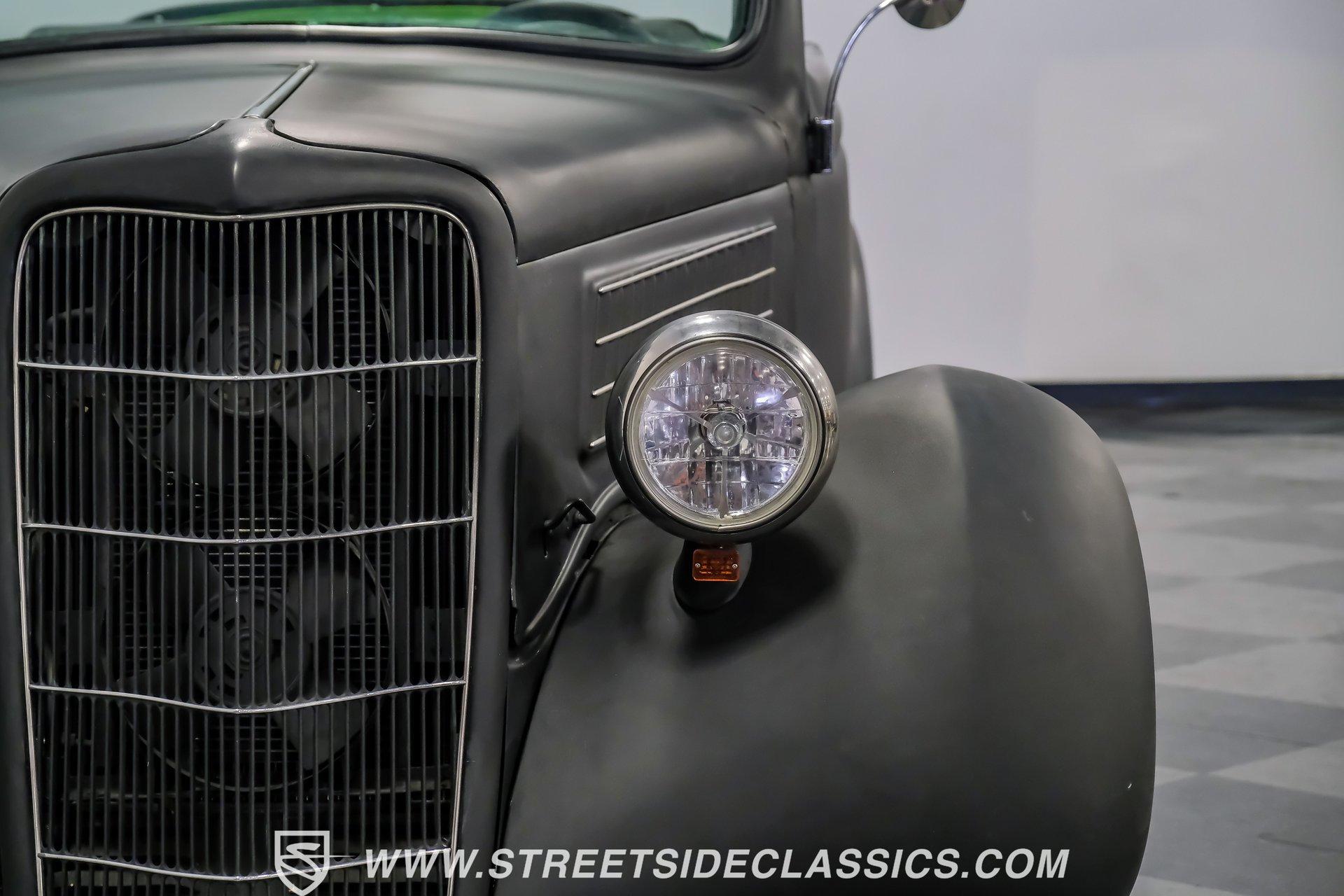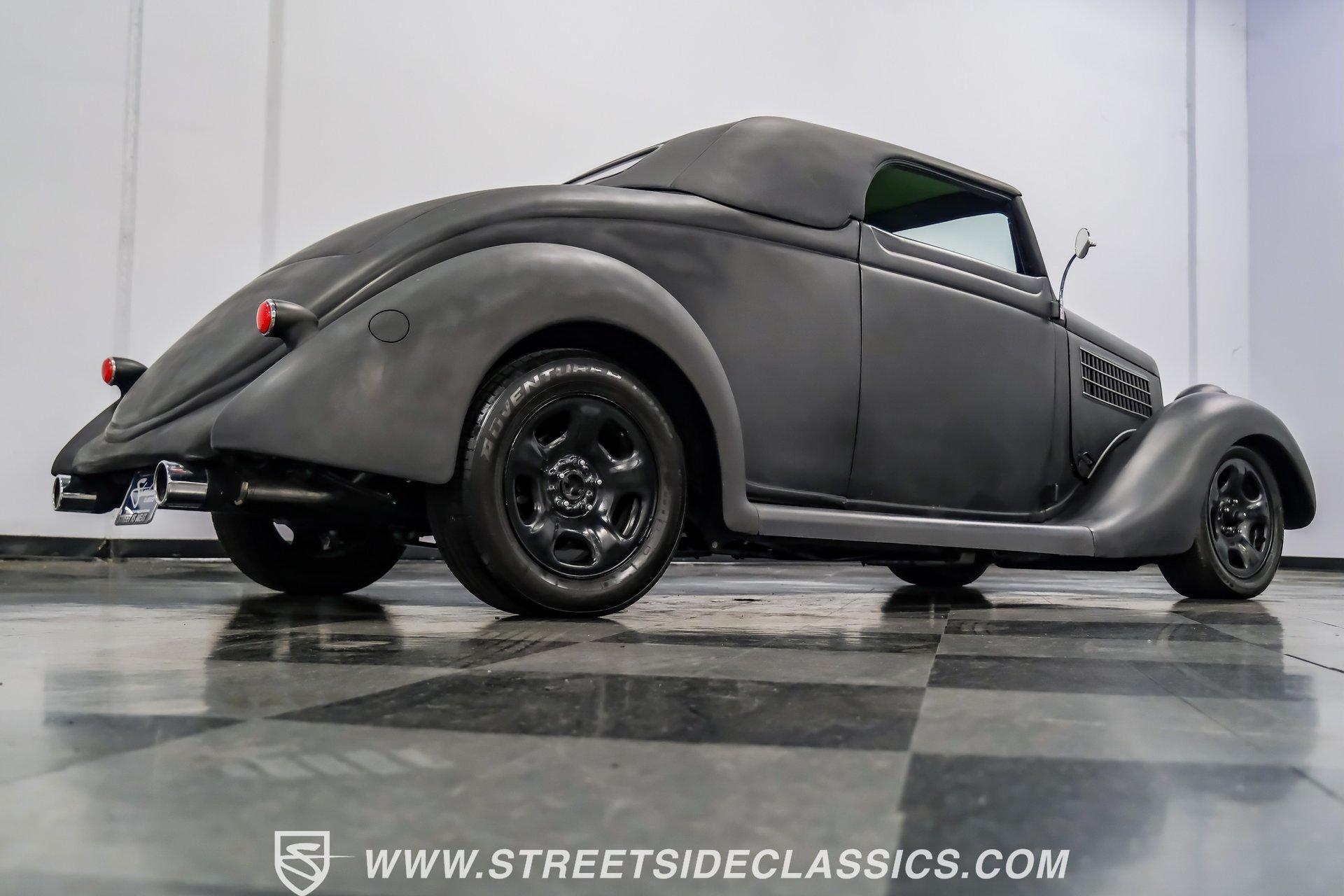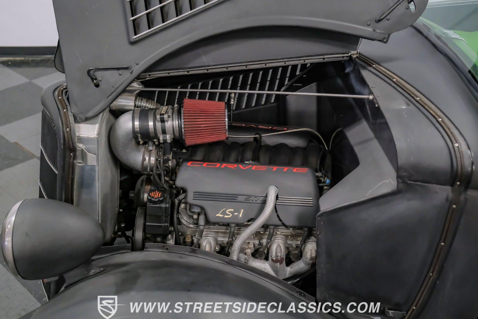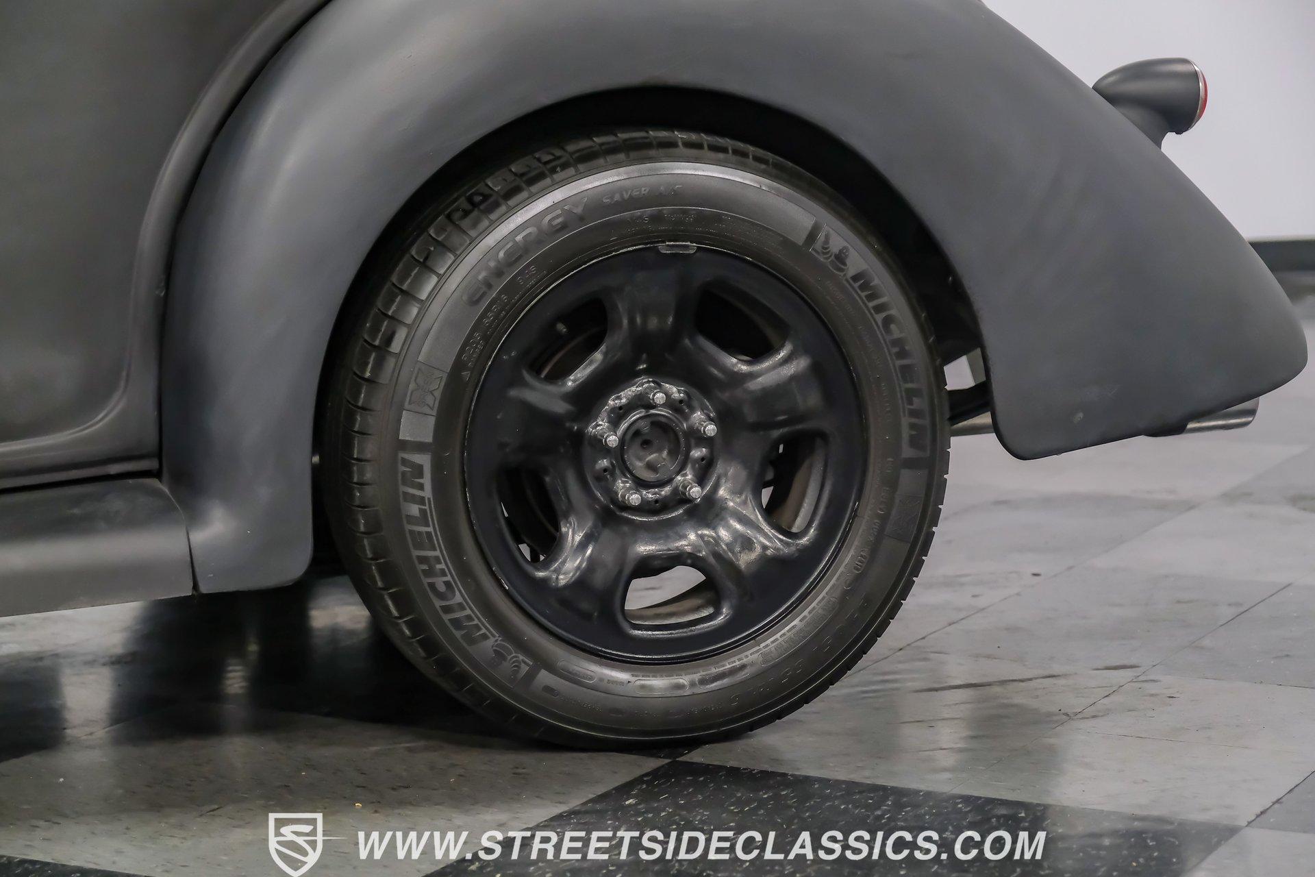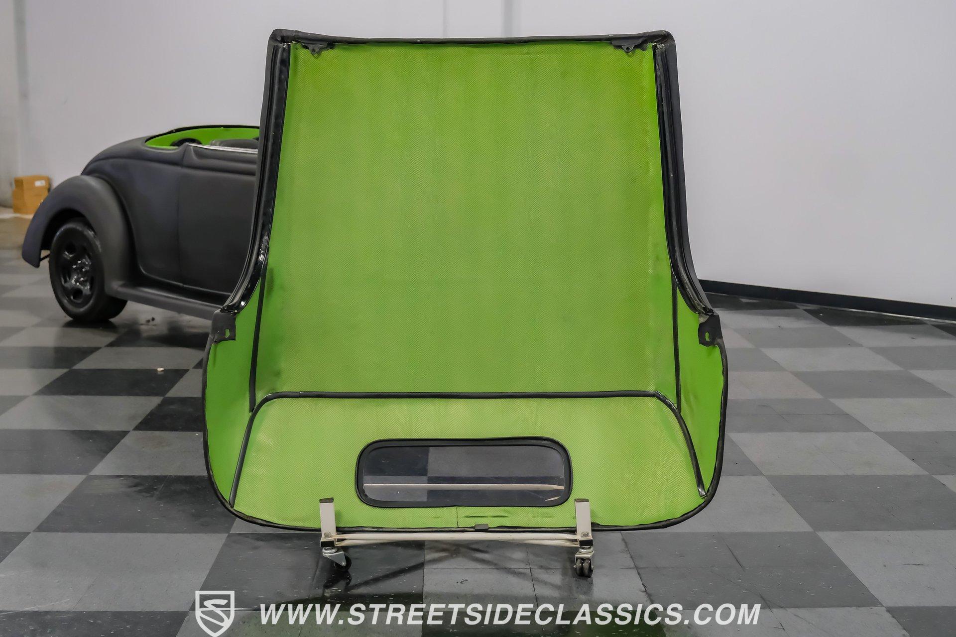 There is something irresistible about stepping into a vintage roadster that wears the past and the present at the same time. This car speaks to the builder who wanted classic lines with modern punch, a rolling statement that turns heads whether parked at a show or rolled down a coastal boulevard. It invites you to imagine weekend drives, the sound of a V8, and the satisfaction of owning something one of a kind. For the driver who values style and performance, this 1935 Ford Cabriolet Restomod, wearing a full flat black paint and powered by a 5.7L LS1 V8 and paired with a 4-speed automatic, is ready for its next chapter. Inside you will find a custom two-tone interior that prioritizes comfort and show presence over period correctness. The cabin wears aftermarket Pontiac bucket seats, a custom Camaro center console, Intellitronix digital-style gauges, and a dual-brand single-din head unit with Bluetooth, aux and USB. A chrome tilt column with a billet steering wheel adds some feel-good detail and it does come with provisions for air conditioning, but it will need servicing to blow cold again. Power windows operate by remote and the trunk is opened via a switch behind the driver seat. Underhood this Ford hides modern performance. The 5.7L LS1 V8 feeds a 4L60 4-speed automatic and cooling is handled by an aluminum radiator and electric fans which help the engine start right up and run well. The front suspension is a Mustang II-style setup with tubular A-arms while the rear is a solid axle with leaf springs and a 10-bolt posi rear end. Braking is handled by power discs front and rear and the ride sits on 16 inch wheels shod in 205 series tires. The dual exhaust system includes Flowmaster mufflers for an authoritative sound. Highlights: 5.7L LS1 V8 4L60 4-speed automatic transmission Aluminum radiator with electric fans 10-bolt posi rear differential Front suspension includes Mustang II-style with tubular A-arms Power disc brakes front and rear Custom two-tone interior with Pontiac bucket seats, Camaro console, Intellitronix gauges, Bluetooth head unit Vintage air conditioning - needs servicing to blow cold again Flat black repaint with deleted bumpers, flush gas filler, clear headlights, custom removable hard top This 1935 Ford Cabriolet Restomod is a very unique build that will appeal to a buyer seeking character and modern drivability in a classic package. Call today!