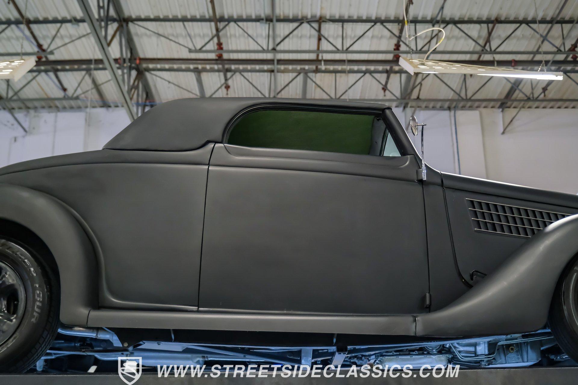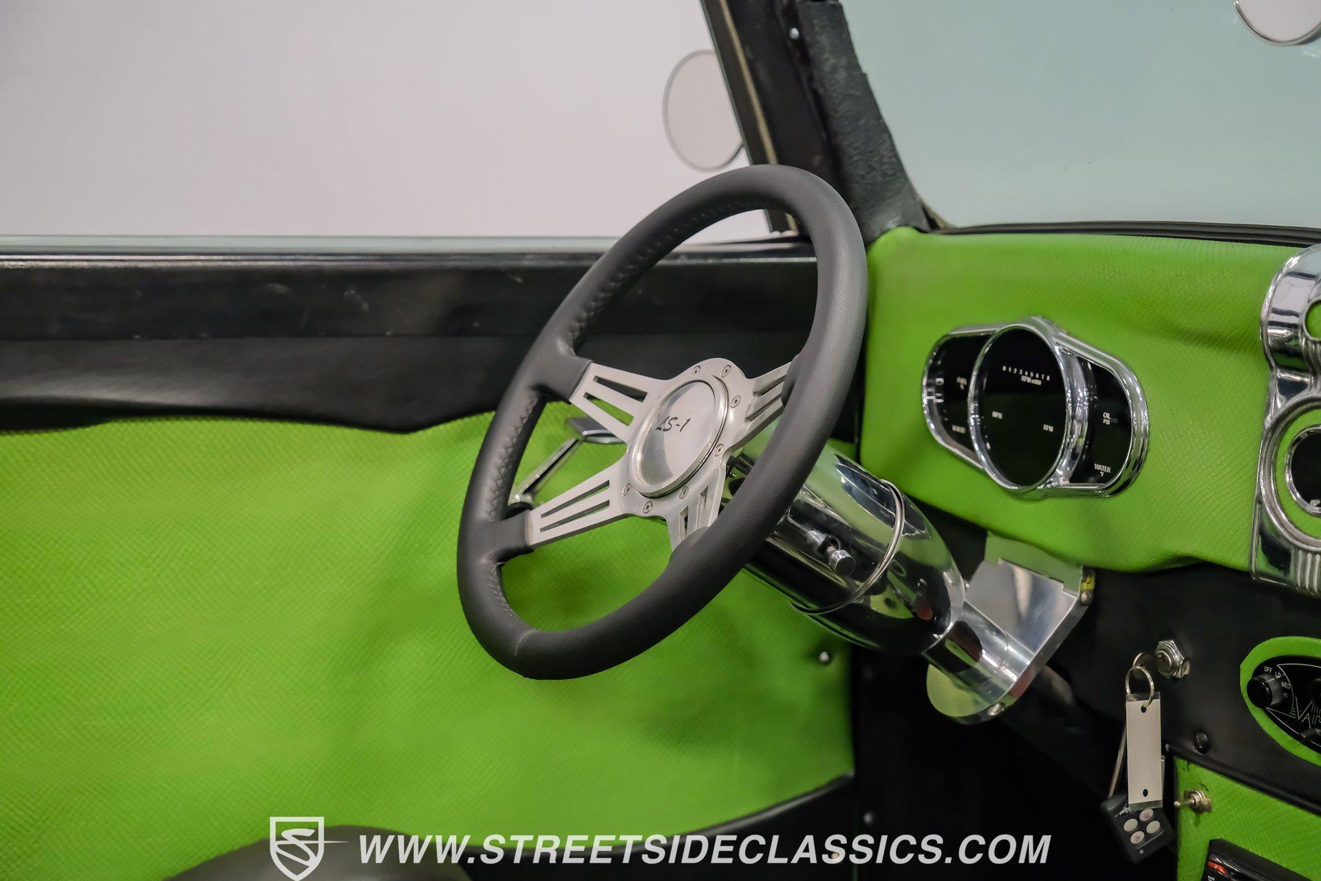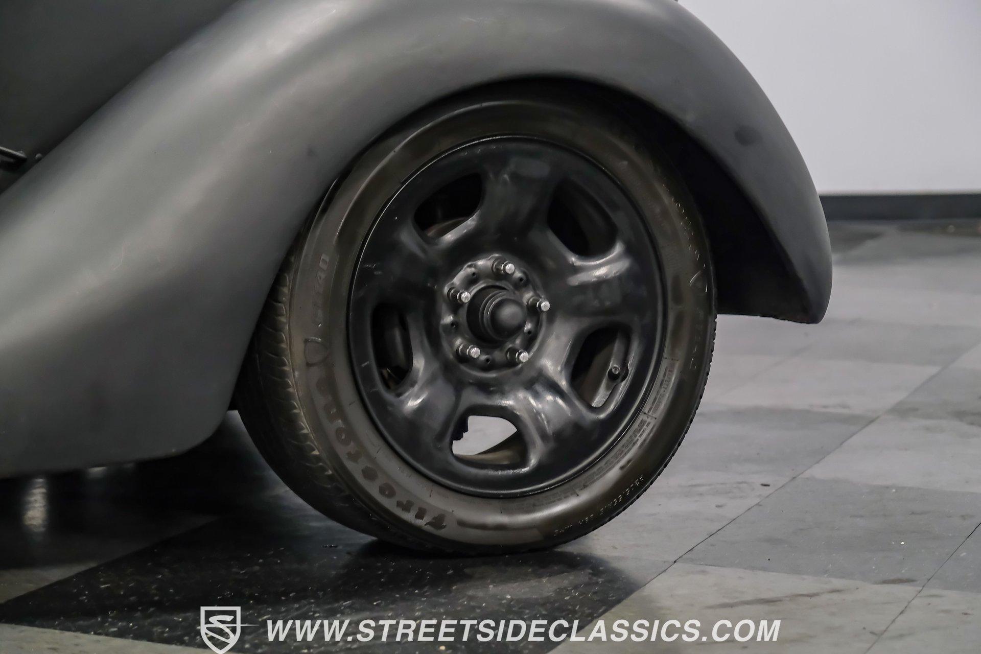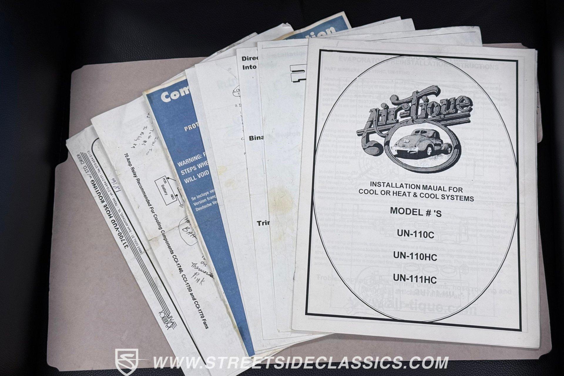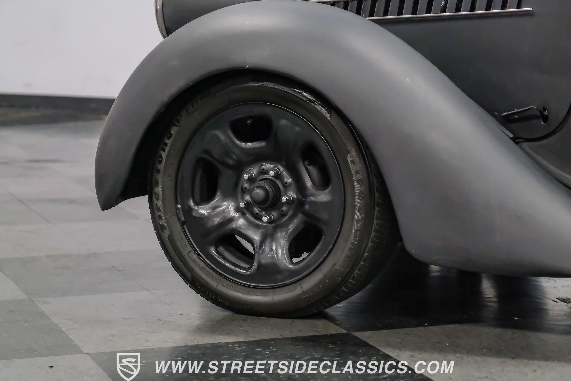 There is something irresistible about stepping into a vintage roadster that wears the past and the present at the same time. This car speaks to the builder who wanted classic lines with modern punch, a rolling statement that turns heads whether parked at a show or rolled down a coastal boulevard. It invites you to imagine weekend drives, the sound of a V8, and the satisfaction of owning something one of a kind. For the driver who values style and performance, this 1935 Ford Cabriolet Restomod, wearing a full flat black paint and powered by a 5.7L LS1 V8 and paired with a 4-speed automatic, is ready for its next chapter. Inside you will find a custom two-tone interior that prioritizes comfort and show presence over period correctness. The cabin wears aftermarket Pontiac bucket seats, a custom Camaro center console, Intellitronix digital-style gauges, and a dual-brand single-din head unit with Bluetooth, aux and USB. A chrome tilt column with a billet steering wheel adds some feel-good detail and it does come with provisions for air conditioning, but it will need servicing to blow cold again. Power windows operate by remote and the trunk is opened via a switch behind the driver seat. Underhood this Ford hides modern performance. The 5.7L LS1 V8 feeds a 4L60 4-speed automatic and cooling is handled by an aluminum radiator and electric fans which help the engine start right up and run well. The front suspension is a Mustang II-style setup with tubular A-arms while the rear is a solid axle with leaf springs and a 10-bolt posi rear end. Braking is handled by power discs front and rear and the ride sits on 16 inch wheels shod in 205 series tires. The dual exhaust system includes Flowmaster mufflers for an authoritative sound. Highlights: 5.7L LS1 V8 4L60 4-speed automatic transmission Aluminum radiator with electric fans 10-bolt posi rear differential Front suspension includes Mustang II-style with tubular A-arms Power disc brakes front and rear Custom two-tone interior with Pontiac bucket seats, Camaro console, Intellitronix gauges, Bluetooth head unit Vintage air conditioning - needs servicing to blow cold again Flat black repaint with deleted bumpers, flush gas filler, clear headlights, custom removable hard top This 1935 Ford Cabriolet Restomod is a very unique build that will appeal to a buyer seeking character and modern drivability in a classic package. Call today!