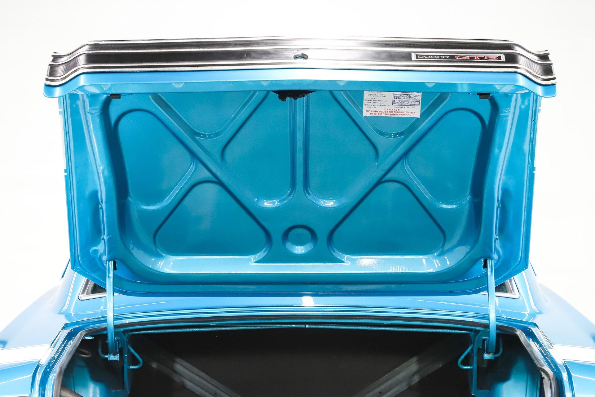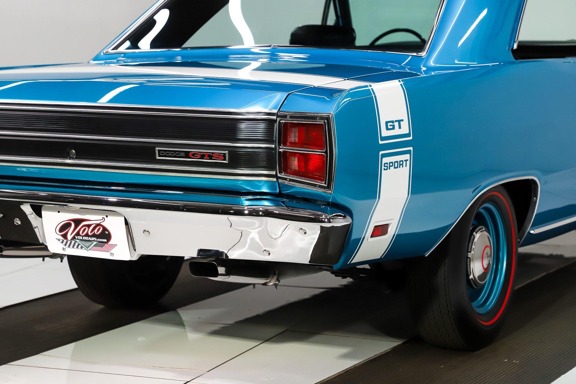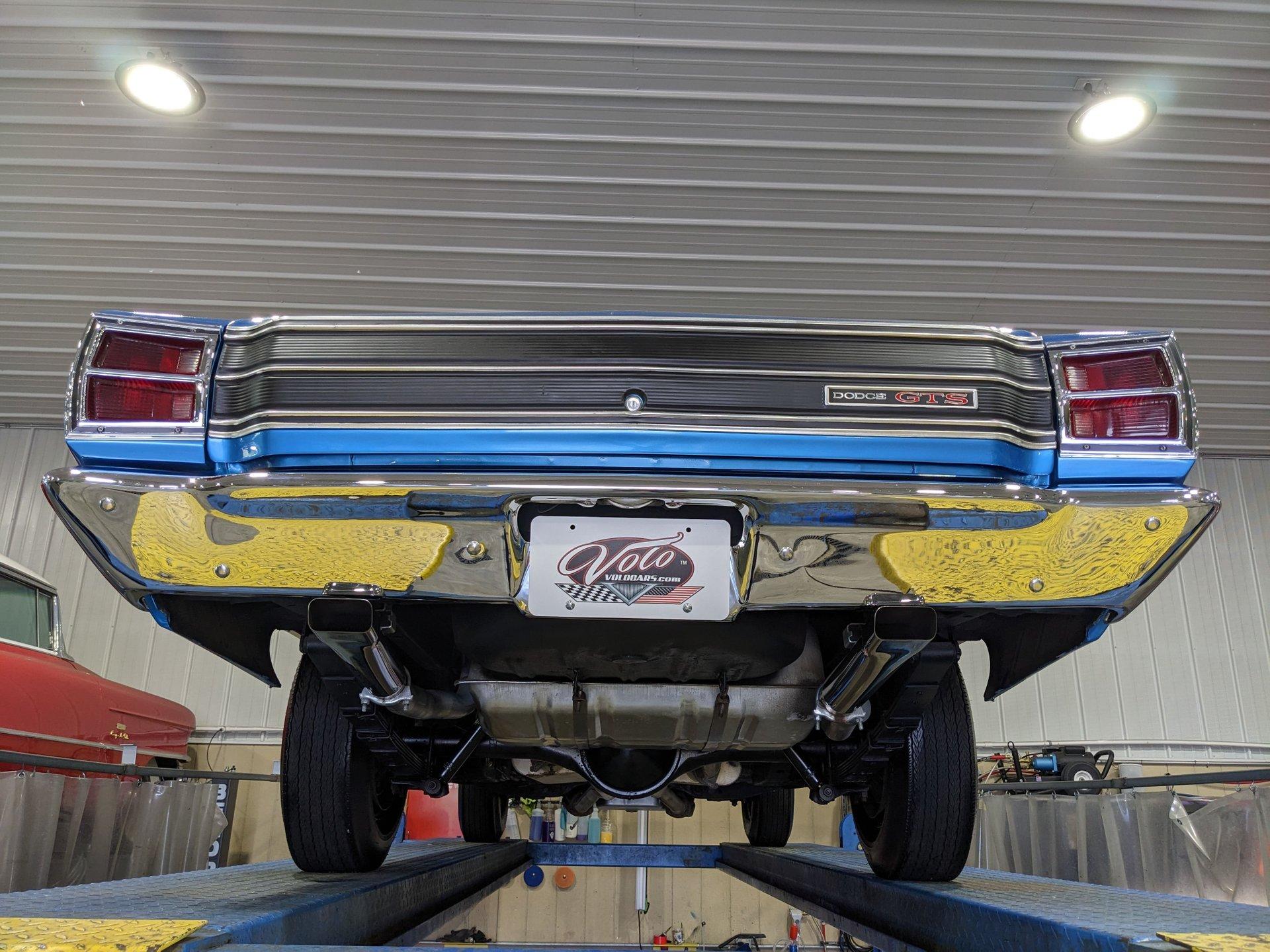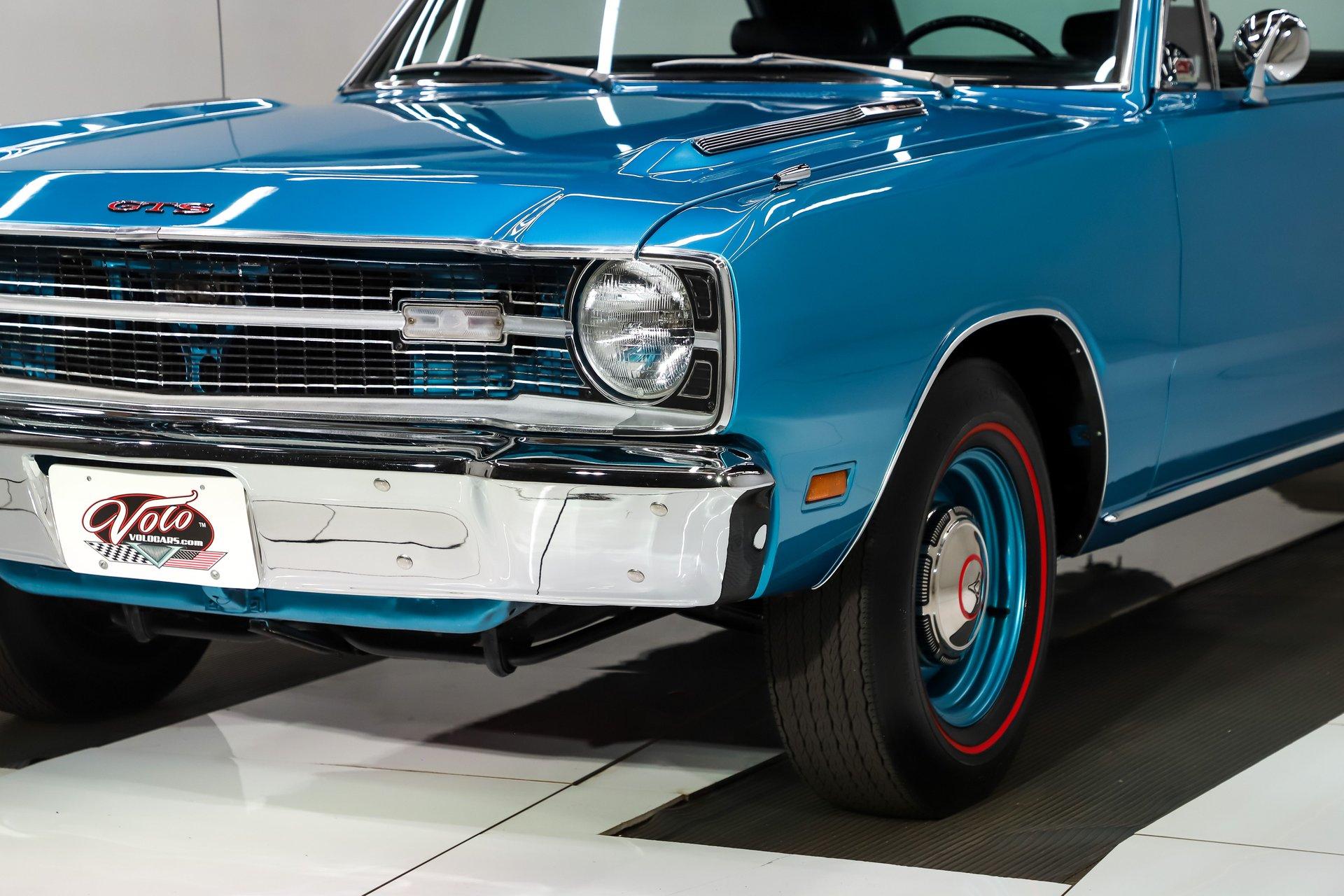 RRare factory big block GTS! Only 1,272 Darts had a 383 stuffed in them and this is one of them. From a very fussy collector, every car I get from him is dialed in cosmetically and mechanically. EXTERIOR: Beautiful! Great colors, no vinyl top and perfect choice of wheels. The body is amazing on this car. Every inch is laser beam straight. All the gaps are square and flush. There's no rust or damage at all. It has the GTS hood with dual bulges. Repainted it's original B5 blue color. It did not look this good when it was new! The metal flake is laid out evenly and the clear coat is polished to a glass finish. The white bumblebee stripe really pops. The bumpers were rechromed. The emblems and trim all sparkle. New correct antenna, working fender turn signals. Very good original blacked out grill and tail panel. The rear glass is new with correct Mopar logo. Weather strips were replaced. New reproduction redline tires on painted rims with poverty caps. INTERIOR: The interior's practically new from carpet to headliner. Very desirable bucket seats with a factory console and a floor shift. Door panels, armrests, window cranks are all excellent. The seats are recushioned and reupholstered. New carpet down on the floor and embroidered floor mats. The dash area is all restored: The chrome bezels sparkle, heater control panel looks new, it has a factory radio delete plate, new glove box liner. Below the dash is a vintage style set of Stuart Warner gauges. The headliner, visors and mirror are excellent, dome light works. ENGINE COMPARTMENT: Show quality to factory specs. Correct dated 383 big block. All stock intake, air cleaner and valve covers. Upgraded with headers and a dual feed Holley carb with electric choke. Every component looks like new. Everything is neatly installed. Correct hose clamps, radiator cap and a reproduction Mopar battery. The engine bay is clean metal painted real slick. The fender tag is attached and the VIN on the core support matches the car. TRUNK COMPARTMENT: Under the trunk lid and the jamb are painted real slick. Inside the entire compartment is dry, clean metal all painted B5 blue. It has a new mat and weather strip. UNDERSIDE: It looks very clean and orderly. The front and rear suspension looks like it's been gone through. The brakes have been serviced, e-brake is hooked up. Great sounding dual exhaust with Flowmaster mufflers and correct tips. The fuel tank and sending unit have been replaced. The floors and frame rails all appear to be clean solid metal painted black. Looking up at the motor it looks very fresh, it has a high torque starter. 727 Torqueflite automatic trans, drive shaft was rebuilt, 8 3/4 rear end. SERVICE: We inspected the car and repaired the reverse lights and replaced the turn signal switch. This is a rare and beautiful muscle car. 197,700 Darts were made in 1969, most were just economical grocery getters. The general definition of a muscle car is a little car with a big motor, this car really exemplifies that statement! Of the 1,272 made, how many exist and how many look this good? I, Jay Grams, take pride in personally writing the descriptions for virtually every car for about the last 30 years now. A significant amount of effort goes into fact checking. What I am offering is my professional impression of the vehicle. Our salesmen are happy to assist with descriptions and making sure your questions are answered. One great suggestion is letting us do a walk around video that explains the car's condition in detail. **These cars are displayed in a museum. If interested in a particular car, make an appointment with a salesman to see that car. Without an appointment there is an admission fee to enter the showroom. If you buy a car, your admission will be refunded, and you will be given a 1 year membership. 815 385 3644 9-5 central Sales@volocars.com Answered ASAP Bucket seats Console Embroidered mats up Poverty wheels Redline tires Bumble bee stripe Fender turnsignals Remote mirror SW gauges