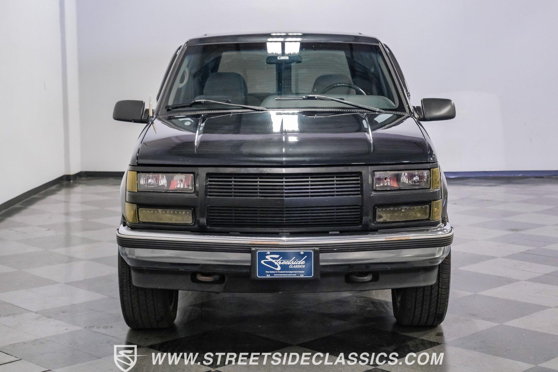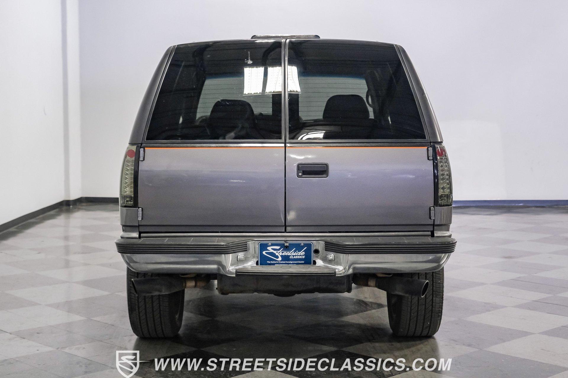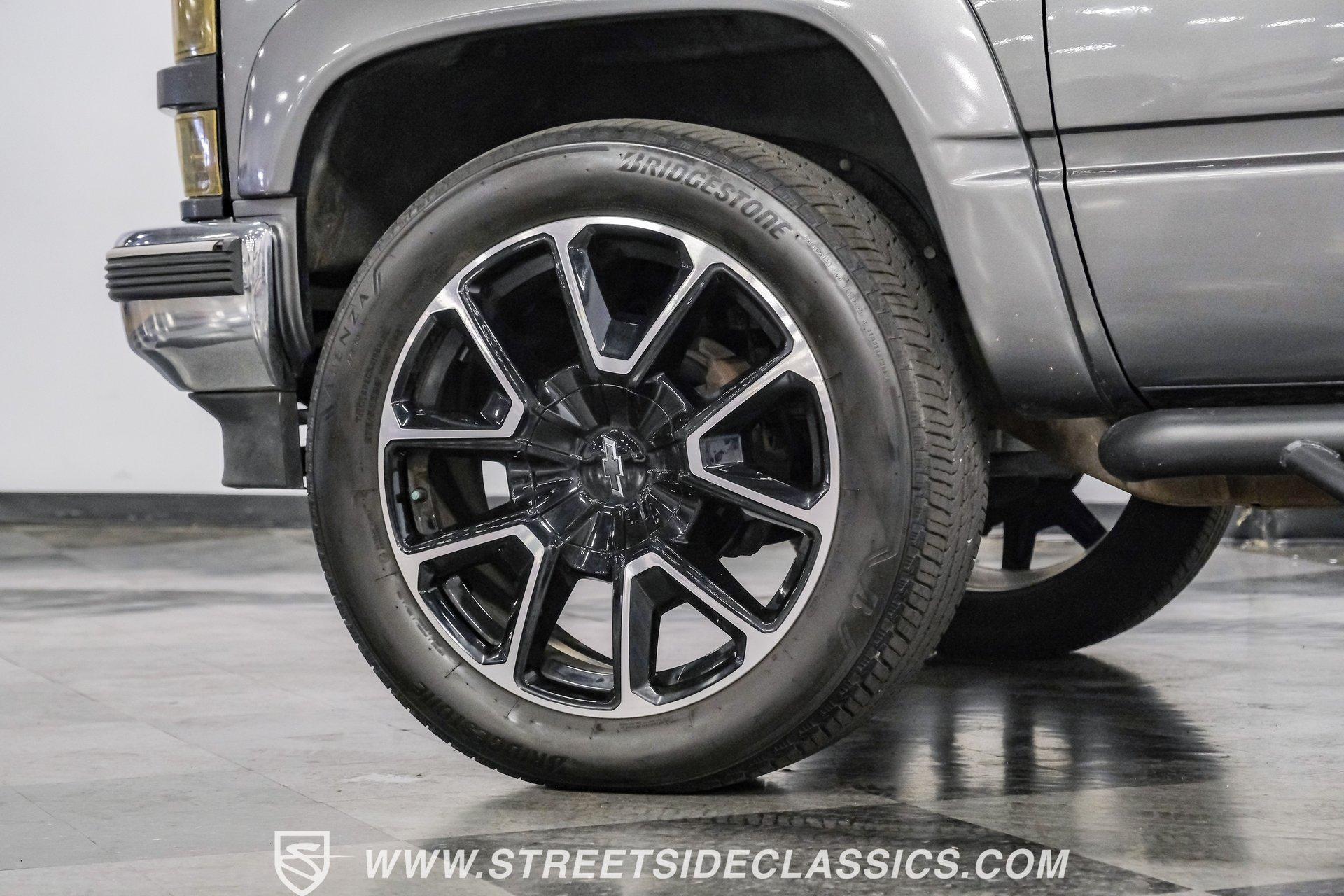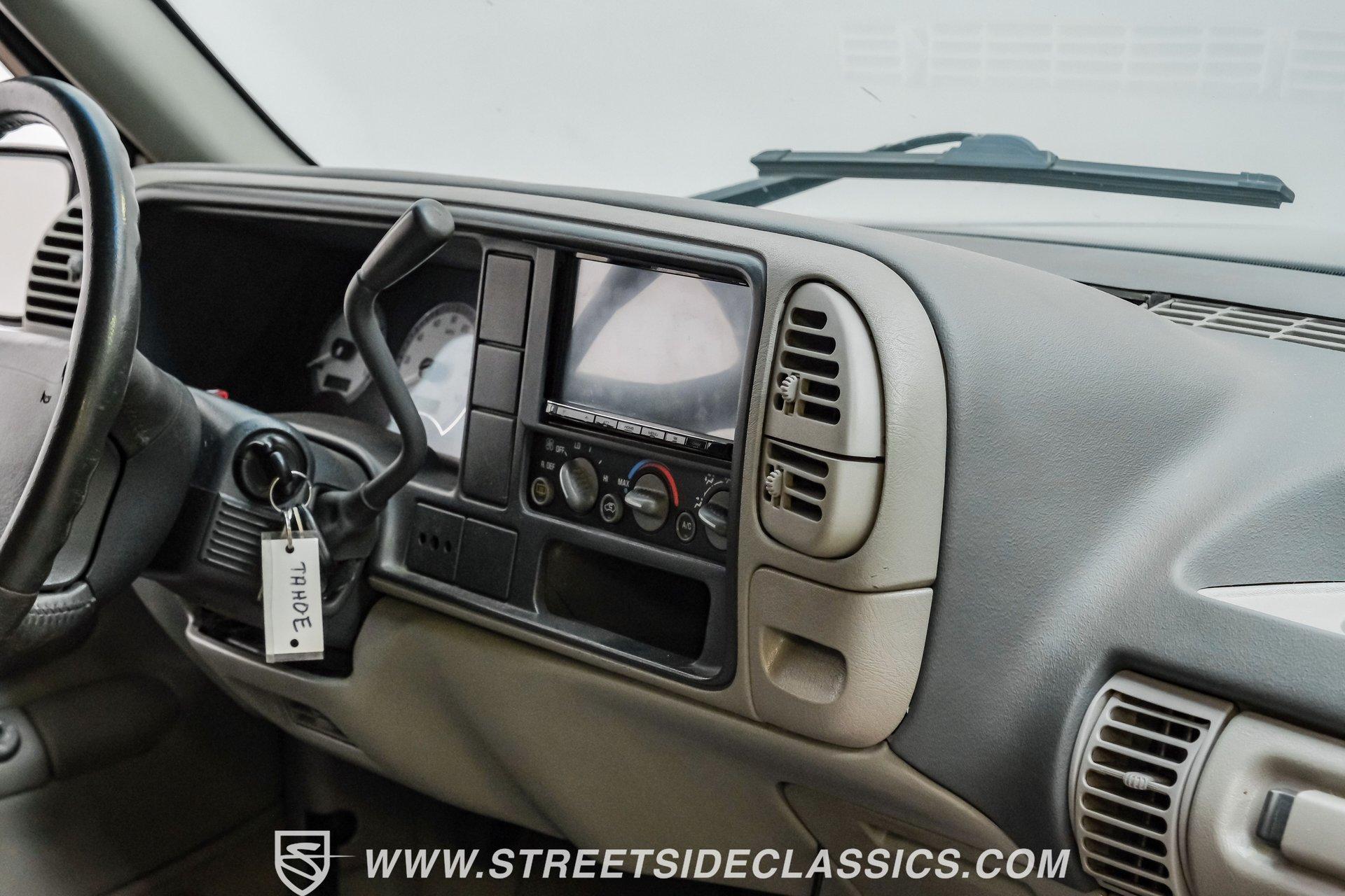 There is something about a two-door SUV that still captures the imagination. It reads like a time capsule from an era when trucks were simple, tough, and full of character. This Tahoe has been given a thoughtful twist that hints at what the next generation might have become if it had been allowed to evolve: modern presence with classic attitude. With hints of updated styling and a purposeful stance that turns heads, this is a truck that makes a statement and begs to be driven, especially as a 1995 Chevrolet Tahoe fitted with a Gen3 6.0 LQ9 V8 and 4L60E automatic transmission. Step inside and you will find a mostly stock layout with a few modern comforts. The cabin features cold blowing air conditioning, Dakota digital style gauges and a double din Kenwood head unit with Bluetooth, AM/FM, and a backup camera. Power driver seat, power windows, locks, mirrors, tilt wheel, and cruise control add convenience. Under the hood is a Gen3 6.0 LQ9 V8 sourced from a later Cadillac Escalade, paired with a 4L60E four speed automatic. The setup includes a big intake, mild cam, and headers, with the GM engine control module relocated just under the factory ECM. The truck starts readily and drives well while the front braking is power disc with rear power drum, steering is power assisted, and the rear is built around a 10 bolt axle. Rolling stock includes 22 inch wheels with Bridgestone 275/50R22 tires from 2021 that give it a modern, planted look. Highlights: Gen3 6.0 LQ9 V8 swap from a Cadillac Escalade 4L60E four speed automatic transmission Engine upgrades include a large intake, mild cam, and headers 10 bolt rear axle Front power disc brakes and rear power drum 22 inch wheels with 275/50R22 Bridgestone tires Full repaint with metallic flake Aftermarket grille and taillights Dakota style digital gauges, Kenwood double din with backup camera, Power driver seat This two-door Tahoe presents a rare opportunity to own a blend of classic SUV character with modern V8 muscle and contemporary styling cues. It will make a great driver or a solid starting point for further cosmetic finishing. Call today to arrange an appointment or to learn more.