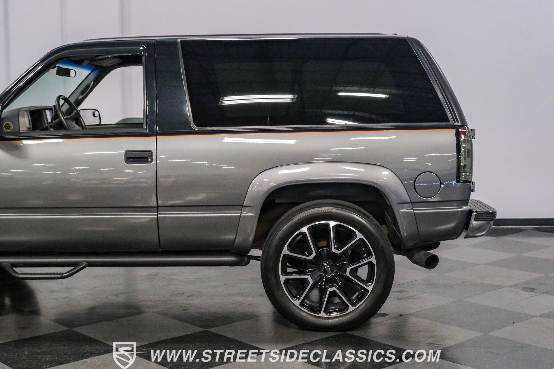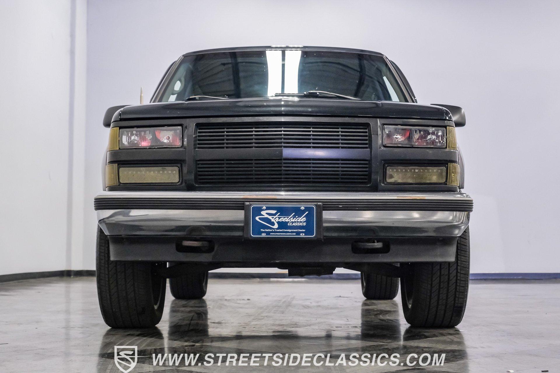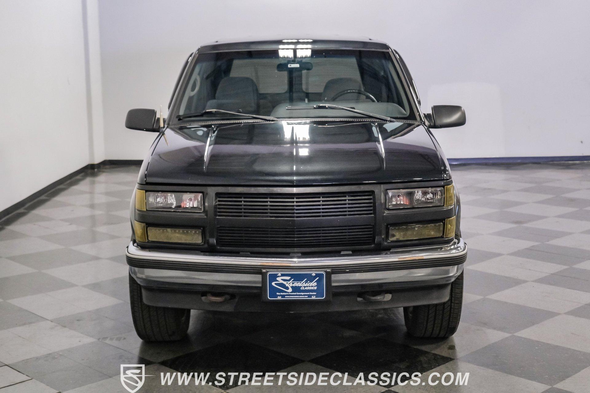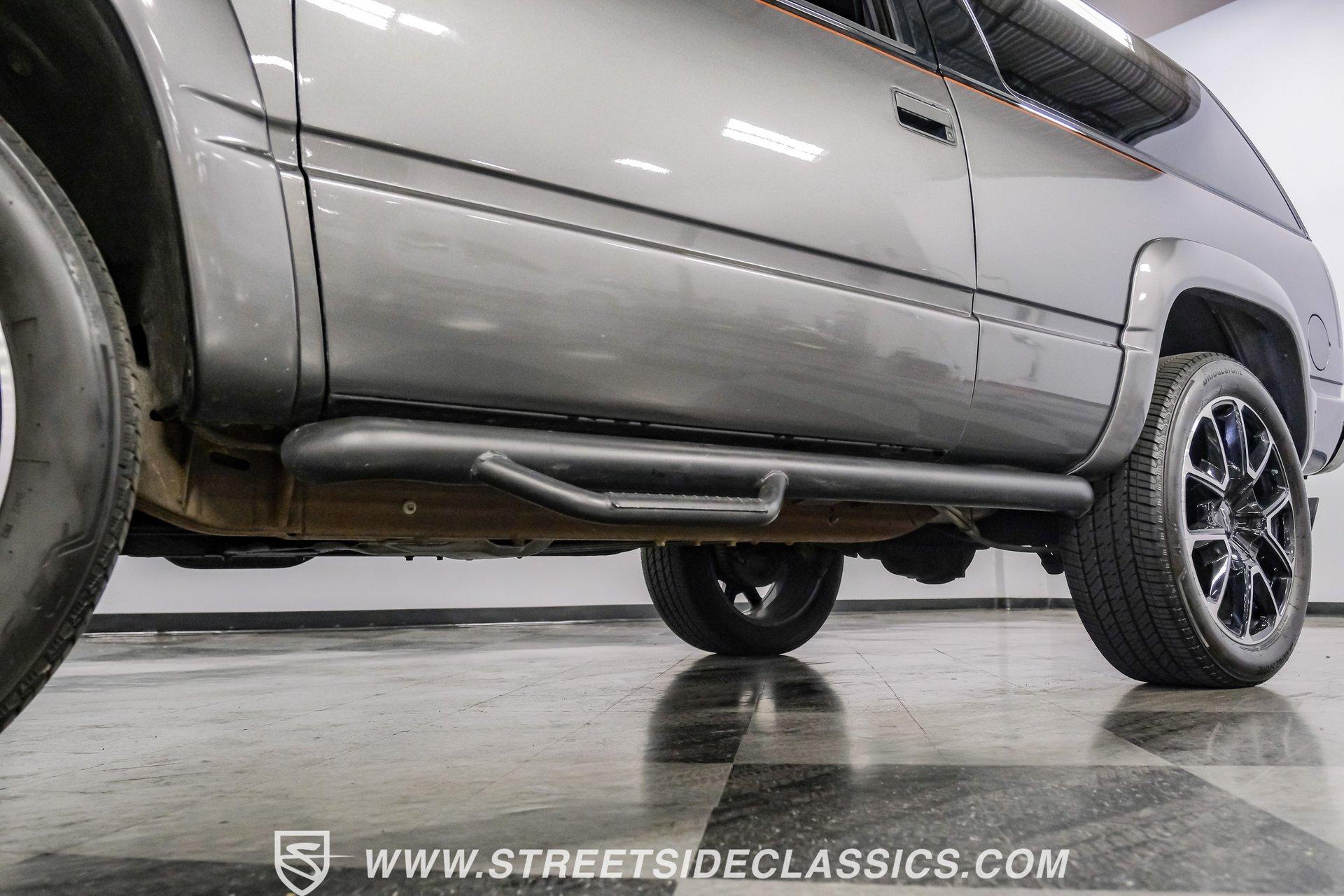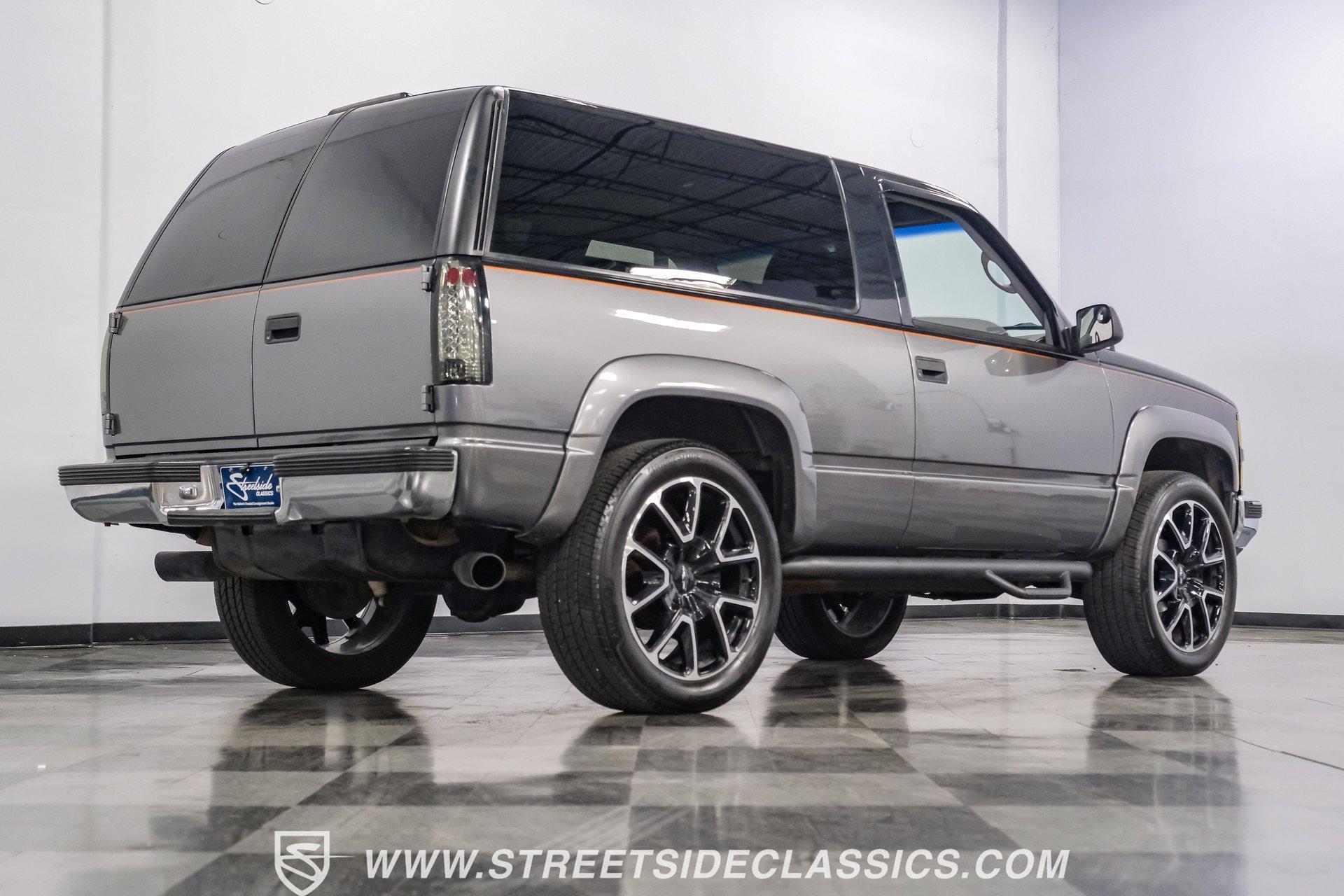 There is something about a two-door SUV that still captures the imagination. It reads like a time capsule from an era when trucks were simple, tough, and full of character. This Tahoe has been given a thoughtful twist that hints at what the next generation might have become if it had been allowed to evolve: modern presence with classic attitude. With hints of updated styling and a purposeful stance that turns heads, this is a truck that makes a statement and begs to be driven, especially as a 1995 Chevrolet Tahoe fitted with a Gen3 6.0 LQ9 V8 and 4L60E automatic transmission. Step inside and you will find a mostly stock layout with a few modern comforts. The cabin features cold blowing air conditioning, Dakota digital style gauges and a double din Kenwood head unit with Bluetooth, AM/FM, and a backup camera. Power driver seat, power windows, locks, mirrors, tilt wheel, and cruise control add convenience. Under the hood is a Gen3 6.0 LQ9 V8 sourced from a later Cadillac Escalade, paired with a 4L60E four speed automatic. The setup includes a big intake, mild cam, and headers, with the GM engine control module relocated just under the factory ECM. The truck starts readily and drives well while the front braking is power disc with rear power drum, steering is power assisted, and the rear is built around a 10 bolt axle. Rolling stock includes 22 inch wheels with Bridgestone 275/50R22 tires from 2021 that give it a modern, planted look. Highlights: Gen3 6.0 LQ9 V8 swap from a Cadillac Escalade 4L60E four speed automatic transmission Engine upgrades include a large intake, mild cam, and headers 10 bolt rear axle Front power disc brakes and rear power drum 22 inch wheels with 275/50R22 Bridgestone tires Full repaint with metallic flake Aftermarket grille and taillights Dakota style digital gauges, Kenwood double din with backup camera, Power driver seat This two-door Tahoe presents a rare opportunity to own a blend of classic SUV character with modern V8 muscle and contemporary styling cues. It will make a great driver or a solid starting point for further cosmetic finishing. Call today to arrange an appointment or to learn more.