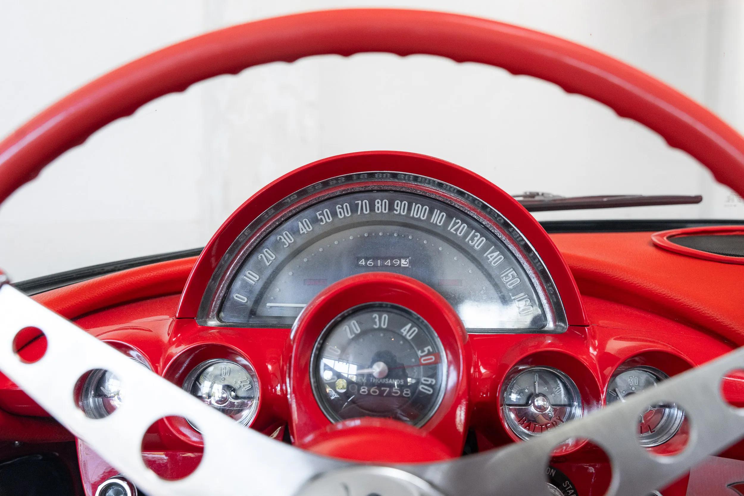 That legendary status took a while, though. In its first two years, the Corvette was equipped with a 150 hp inline-six and a 2-speed automatic - a “sports car” in name, but not in pace. Fortunately, the chassis was soon reworked, and less than two years later, there was room for a proper 4.3-liter V8. Ours? Born in 1957 — fitted with a 4.6-liter V8 with fuel injection. Almost double the horsepower. Add in the manual gearbox and…