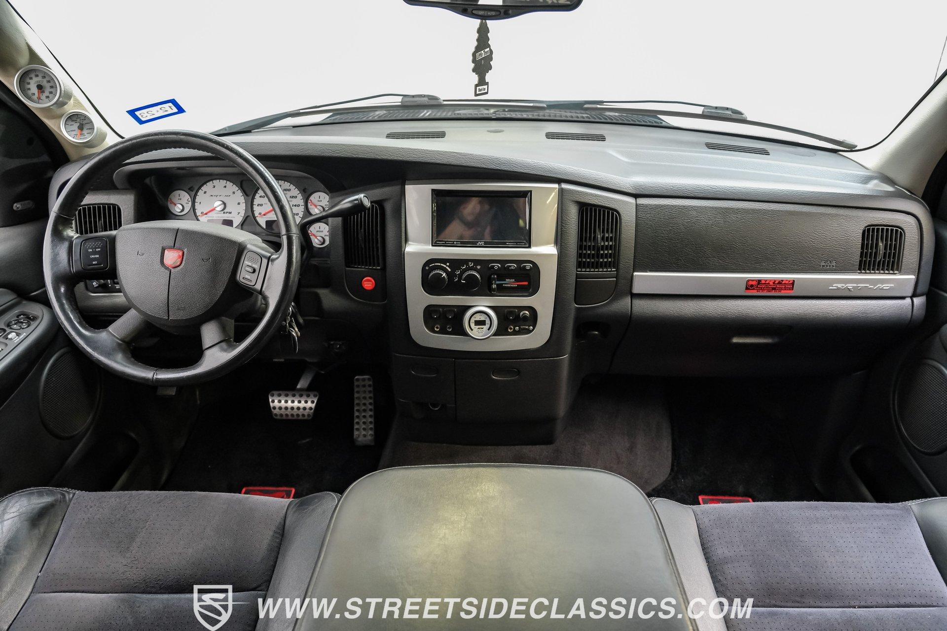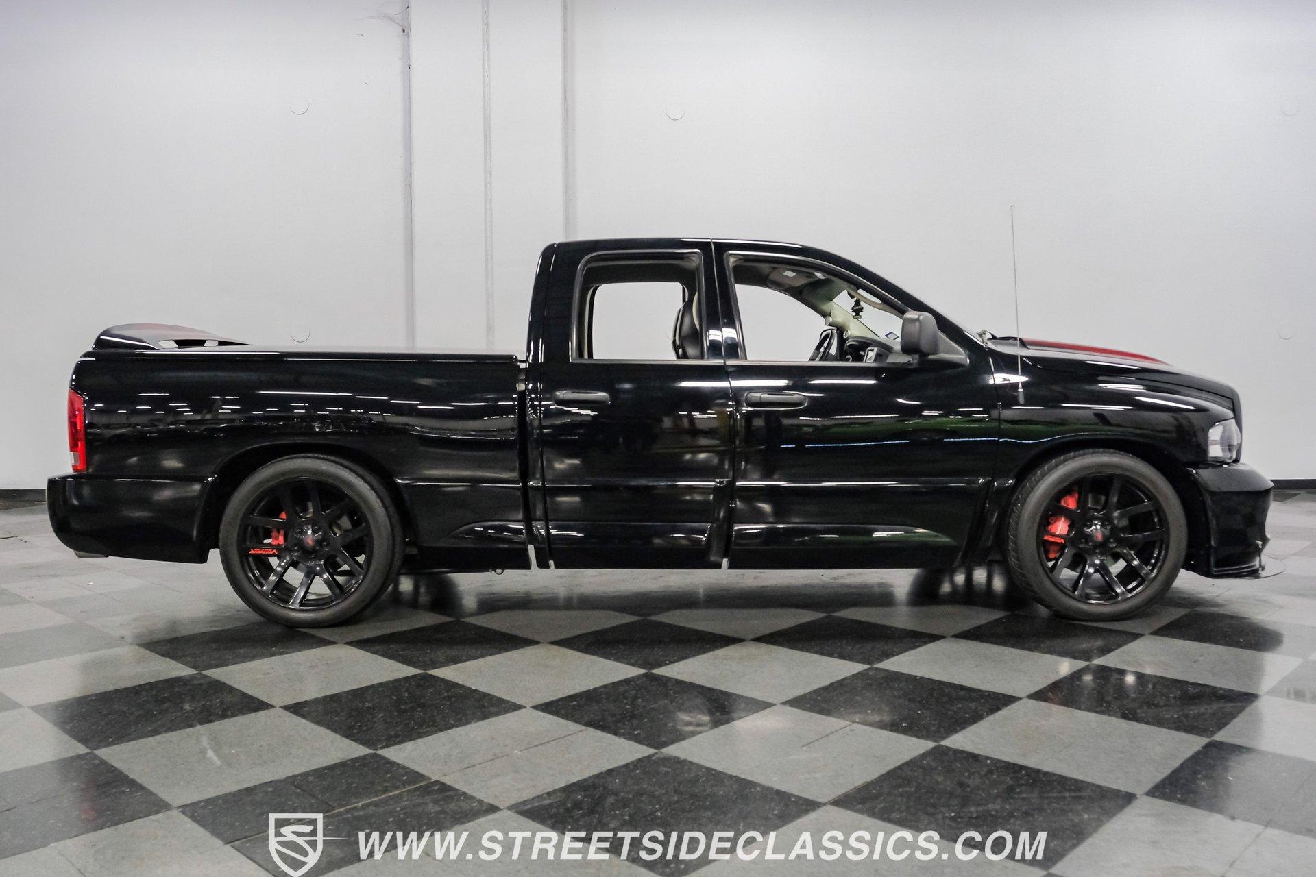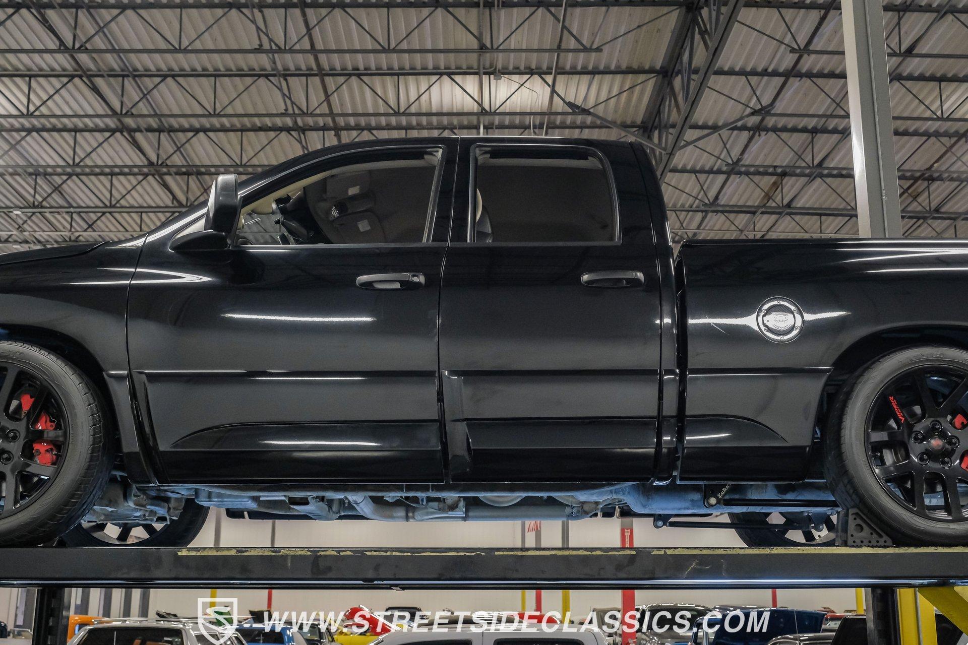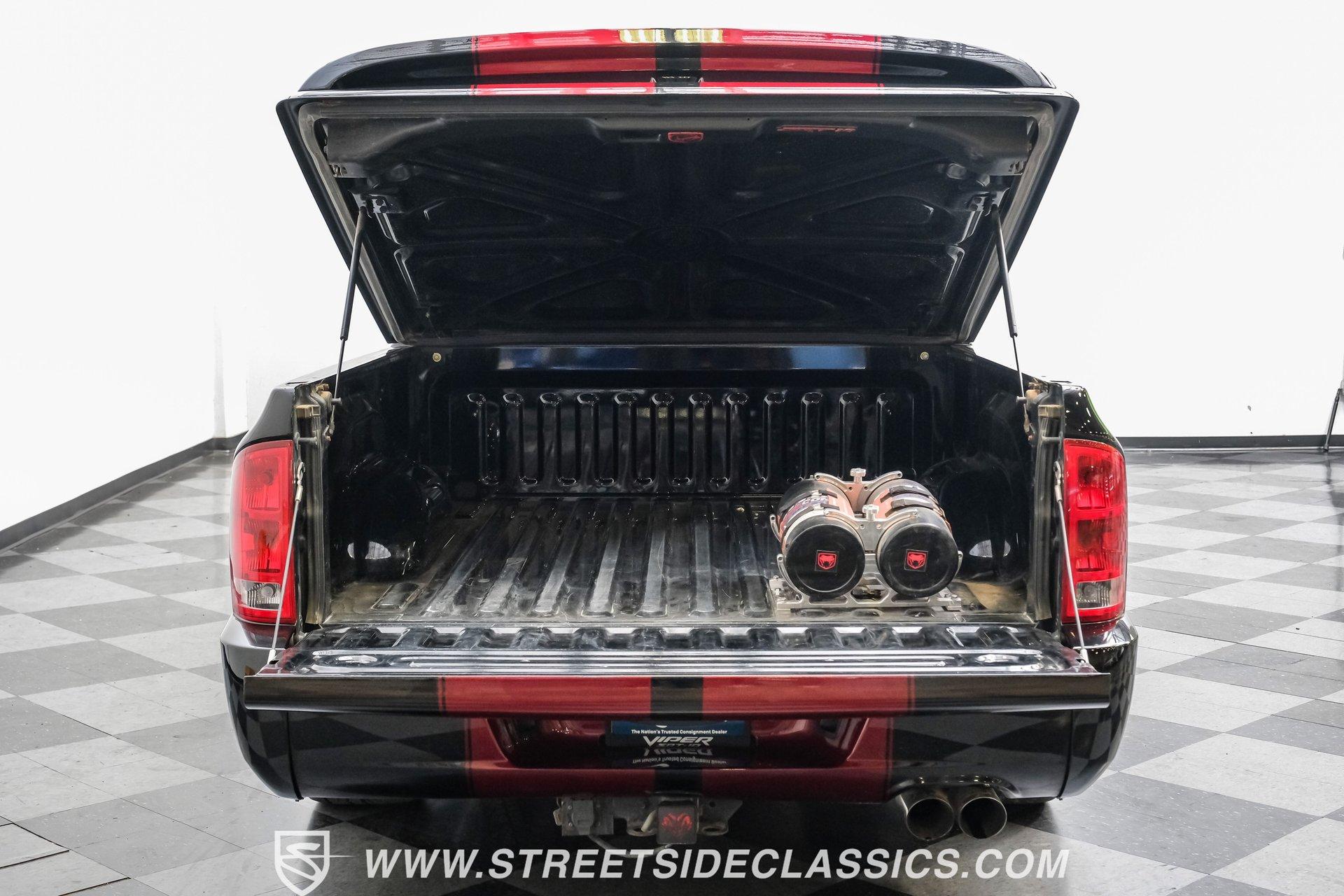 There is something about a bold truck that makes a statement long before you fire the engine. This truck blends the nostalgia of American pickup heritage with straight-line performance and custom street presence, inviting memories of open-road afternoons and weekend shows. Crisp paint with custom painted stripes, an adjustable front splitter, and purposeful stance make it a head-turner at every stoplight. If you want a distinctive Viper-powered pickup that pairs serious V10 grunt with show-ready style, take a closer look at this 2005 Dodge Ram SRT-10 Quad Cab with an 8.3L V10 and 57,276 actual miles. Step inside and you will find a well-appointed cabin built for both comfort and entertainment. Power leather/suede sport seats up front, power windows, locks, mirrors and A/C provide modern convenience while a double-din JVC AM/FM/CD/BT/SAT touchscreen anchors the dash. Dual JBL subwoofers and amps are neatly mounted under the rear seat, and a pillar gauge pod and AFR gauge keep key engine info visible. The seats and trim show minimal wear consistent with careful use, and the interior overall presents very well for driving and show duties. Under the hood the big 8.3L V10 provides serious motivation, paired with a 4-speed 48RE automatic transmission that launches this truck with authority. Performance additions include a Racing Solutions intake, JMB cold air intake, long-tube Belanger headers, and an installed nitrous system, all complemented by a quality exhaust with electric cutouts and tune to match. The truck rides on 22 inch wheels wrapped in 305/40R22 tires, with power disc brakes front and rear and factory-style suspension augmented with Cal-Tracs for improved traction and launch control on demand. Highlights: Mileage 57,276 Actual Full Repaint Done 2017 Viper Powered 8.3L V10 Engine JMB Cold Air Intake Racing Solutions Intake Long Tube Belanger Headers Nitrous Kit (608 RWHP / 647 max torque) 4 Speed Automatic 48RE Transmission Power Disc Brakes Factory Style Suspension With Cal-Tracs 22 Inch Wheels With 305/40R22 Tires JVC Double Din Touchscreen Head Unit Dual JBL Subwoofers Under Rear Seat This 2005 Dodge Ram SRT-10 Quad Cab combines commanding V10 performance with thoughtful custom touches and show-quality paint, making it a compelling buy for enthusiasts and collectors. Call today!