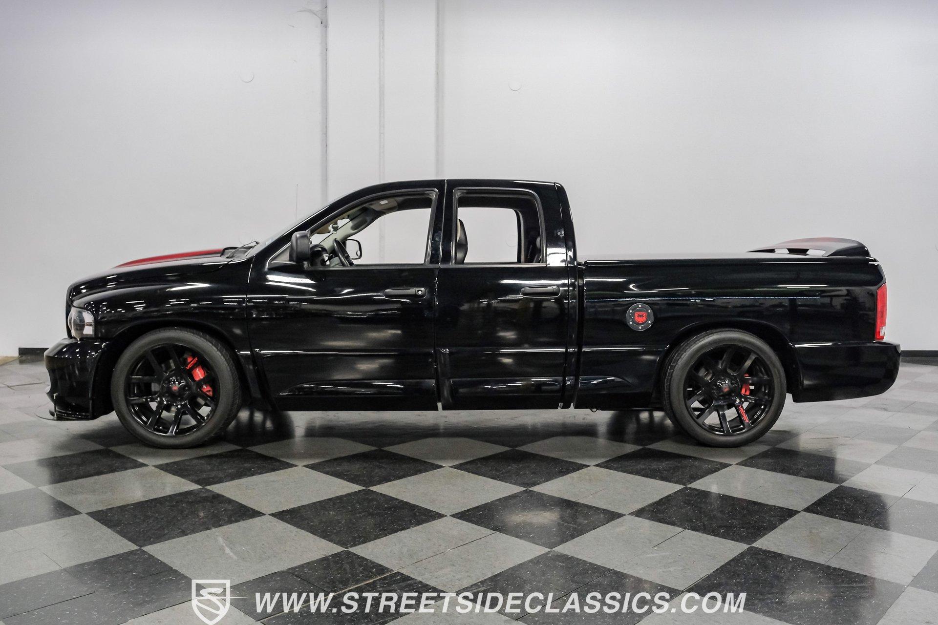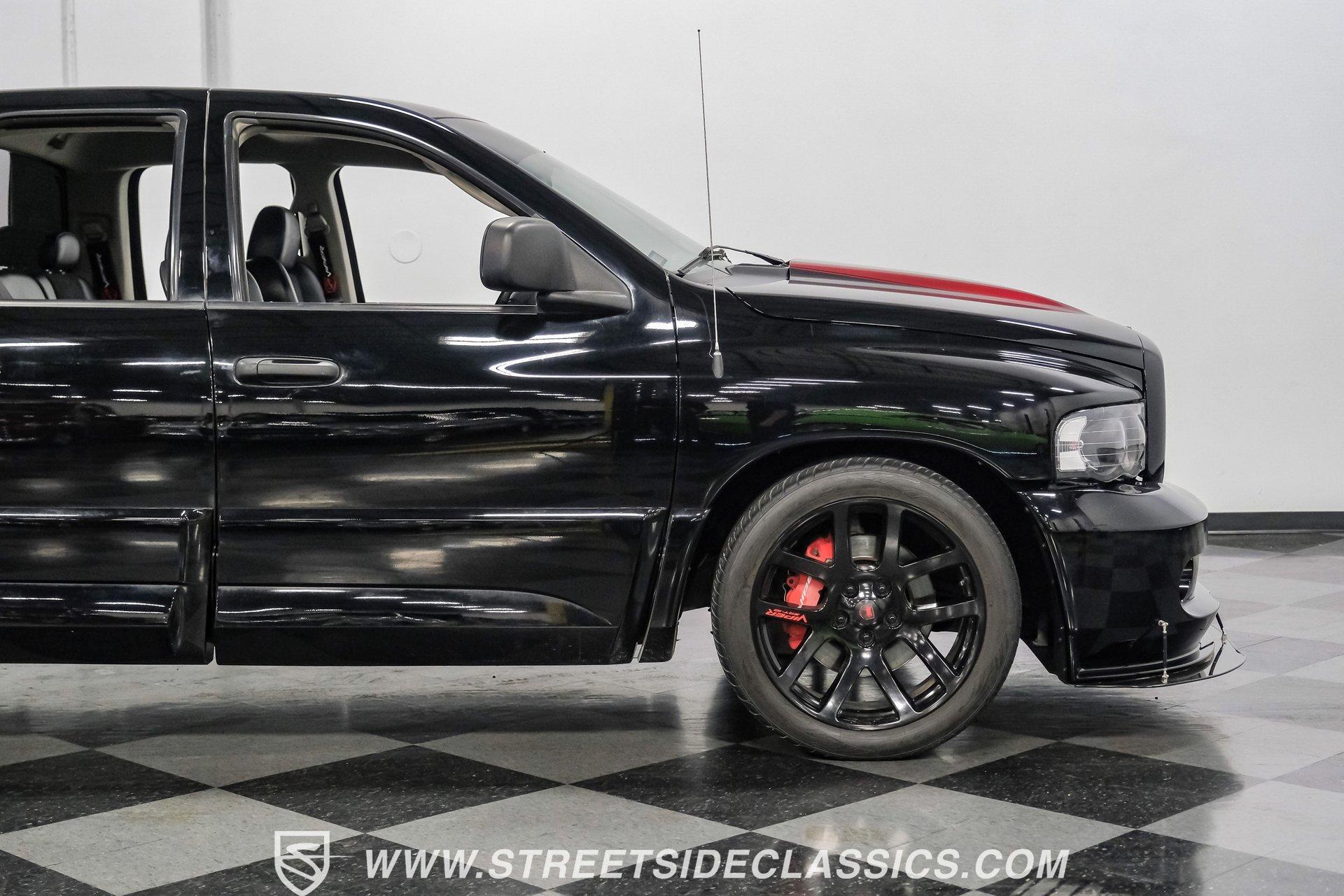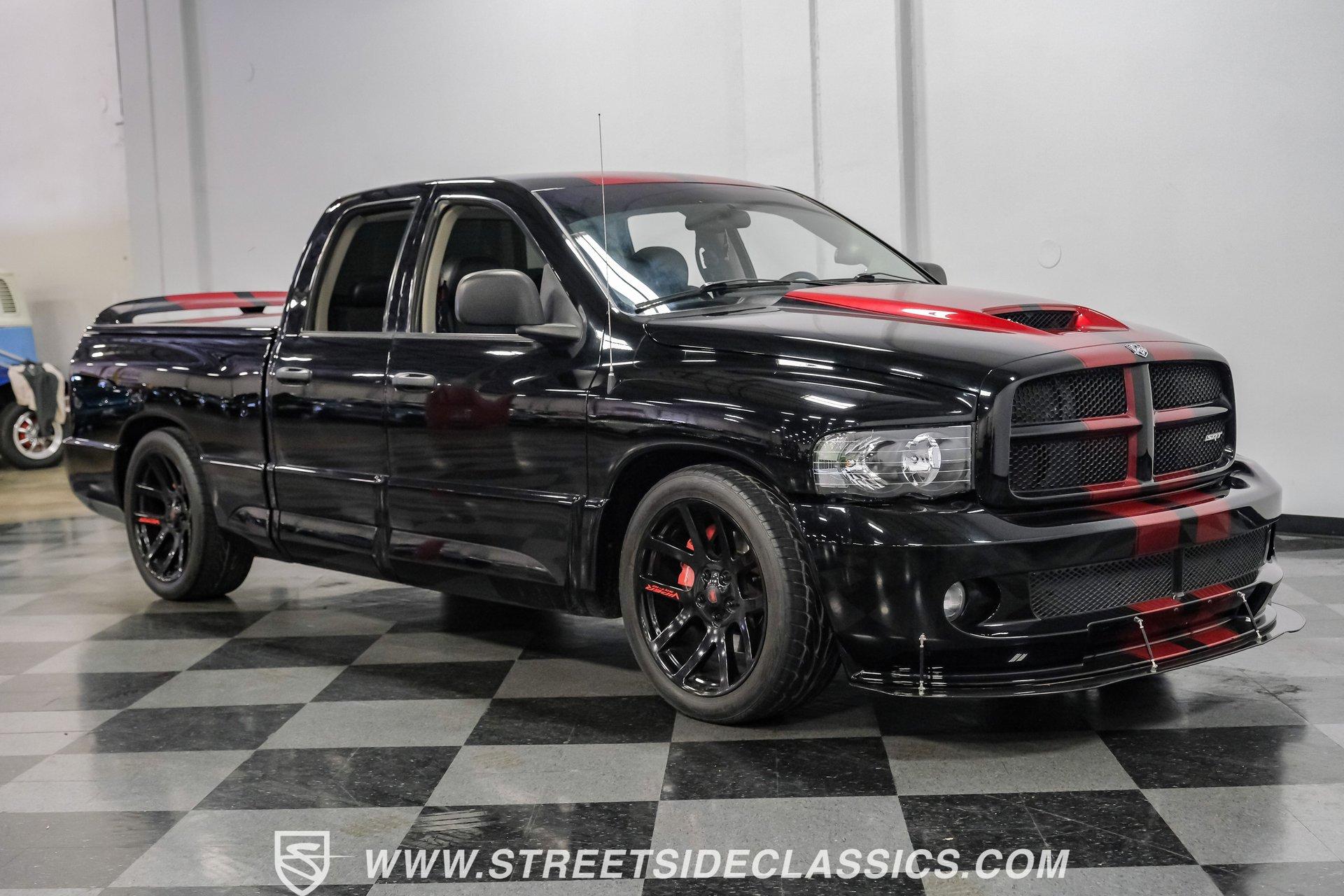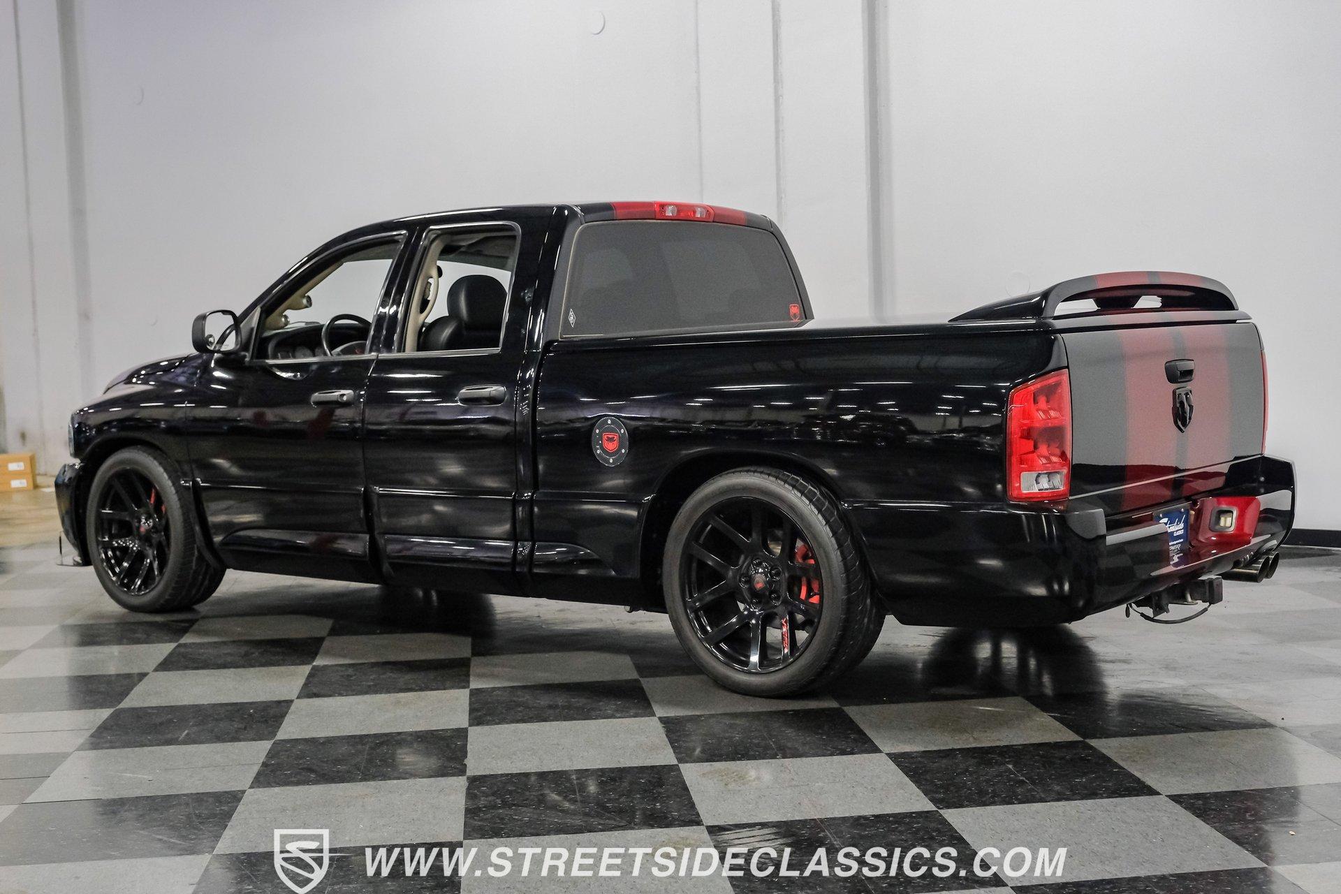 There is something about a bold truck that makes a statement long before you fire the engine. This truck blends the nostalgia of American pickup heritage with straight-line performance and custom street presence, inviting memories of open-road afternoons and weekend shows. Crisp paint with custom painted stripes, an adjustable front splitter, and purposeful stance make it a head-turner at every stoplight. If you want a distinctive Viper-powered pickup that pairs serious V10 grunt with show-ready style, take a closer look at this 2005 Dodge Ram SRT-10 Quad Cab with an 8.3L V10 and 57,276 actual miles. Step inside and you will find a well-appointed cabin built for both comfort and entertainment. Power leather/suede sport seats up front, power windows, locks, mirrors and A/C provide modern convenience while a double-din JVC AM/FM/CD/BT/SAT touchscreen anchors the dash. Dual JBL subwoofers and amps are neatly mounted under the rear seat, and a pillar gauge pod and AFR gauge keep key engine info visible. The seats and trim show minimal wear consistent with careful use, and the interior overall presents very well for driving and show duties. Under the hood the big 8.3L V10 provides serious motivation, paired with a 4-speed 48RE automatic transmission that launches this truck with authority. Performance additions include a Racing Solutions intake, JMB cold air intake, long-tube Belanger headers, and an installed nitrous system, all complemented by a quality exhaust with electric cutouts and tune to match. The truck rides on 22 inch wheels wrapped in 305/40R22 tires, with power disc brakes front and rear and factory-style suspension augmented with Cal-Tracs for improved traction and launch control on demand. Highlights: Mileage 57,276 Actual Full Repaint Done 2017 Viper Powered 8.3L V10 Engine JMB Cold Air Intake Racing Solutions Intake Long Tube Belanger Headers Nitrous Kit (608 RWHP / 647 max torque) 4 Speed Automatic 48RE Transmission Power Disc Brakes Factory Style Suspension With Cal-Tracs 22 Inch Wheels With 305/40R22 Tires JVC Double Din Touchscreen Head Unit Dual JBL Subwoofers Under Rear Seat This 2005 Dodge Ram SRT-10 Quad Cab combines commanding V10 performance with thoughtful custom touches and show-quality paint, making it a compelling buy for enthusiasts and collectors. Call today!