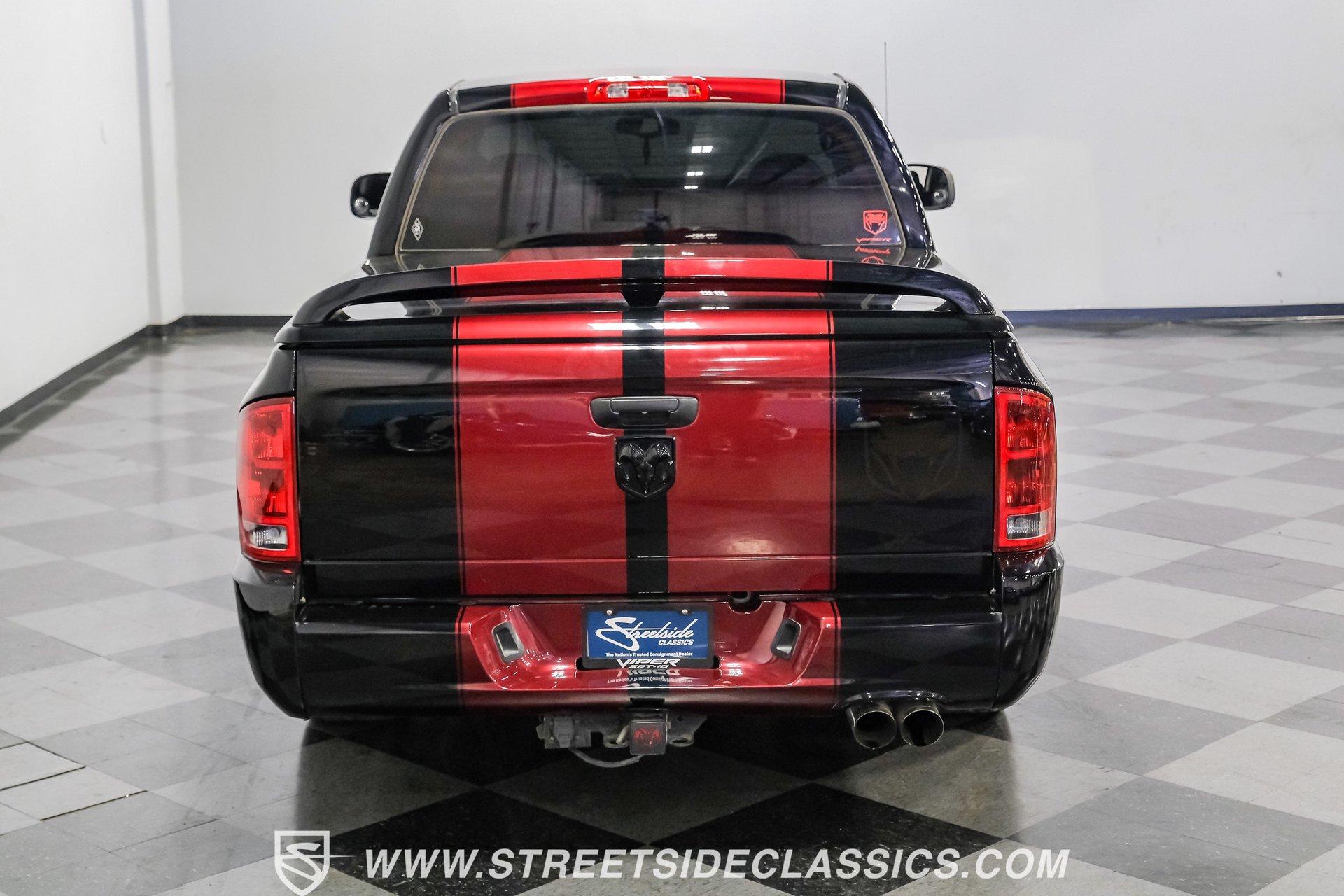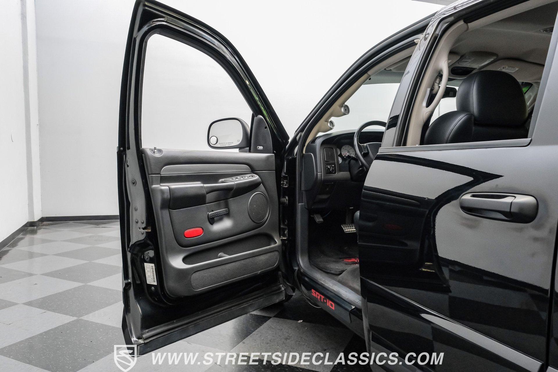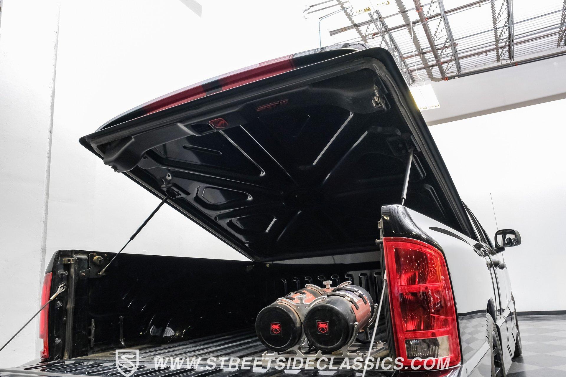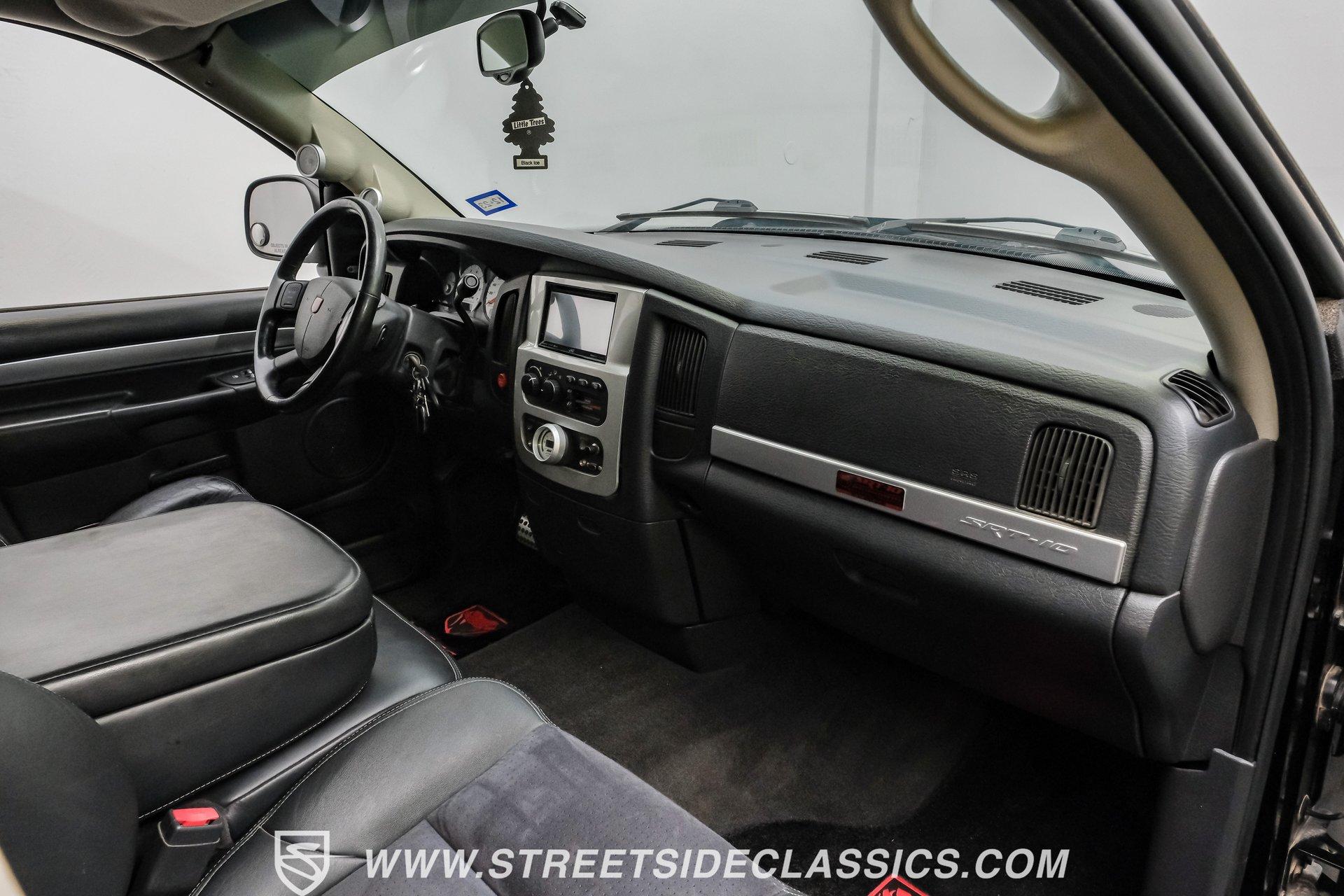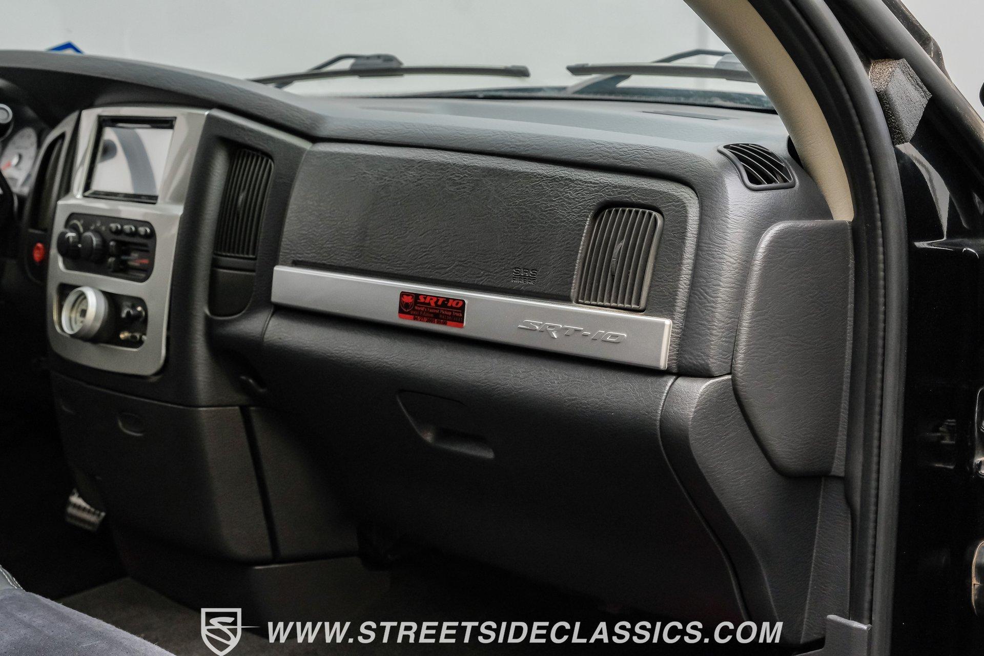 There is something about a bold truck that makes a statement long before you fire the engine. This truck blends the nostalgia of American pickup heritage with straight-line performance and custom street presence, inviting memories of open-road afternoons and weekend shows. Crisp paint with custom painted stripes, an adjustable front splitter, and purposeful stance make it a head-turner at every stoplight. If you want a distinctive Viper-powered pickup that pairs serious V10 grunt with show-ready style, take a closer look at this 2005 Dodge Ram SRT-10 Quad Cab with an 8.3L V10 and 57,276 actual miles. Step inside and you will find a well-appointed cabin built for both comfort and entertainment. Power leather/suede sport seats up front, power windows, locks, mirrors and A/C provide modern convenience while a double-din JVC AM/FM/CD/BT/SAT touchscreen anchors the dash. Dual JBL subwoofers and amps are neatly mounted under the rear seat, and a pillar gauge pod and AFR gauge keep key engine info visible. The seats and trim show minimal wear consistent with careful use, and the interior overall presents very well for driving and show duties. Under the hood the big 8.3L V10 provides serious motivation, paired with a 4-speed 48RE automatic transmission that launches this truck with authority. Performance additions include a Racing Solutions intake, JMB cold air intake, long-tube Belanger headers, and an installed nitrous system, all complemented by a quality exhaust with electric cutouts and tune to match. The truck rides on 22 inch wheels wrapped in 305/40R22 tires, with power disc brakes front and rear and factory-style suspension augmented with Cal-Tracs for improved traction and launch control on demand. Highlights: Mileage 57,276 Actual Full Repaint Done 2017 Viper Powered 8.3L V10 Engine JMB Cold Air Intake Racing Solutions Intake Long Tube Belanger Headers Nitrous Kit (608 RWHP / 647 max torque) 4 Speed Automatic 48RE Transmission Power Disc Brakes Factory Style Suspension With Cal-Tracs 22 Inch Wheels With 305/40R22 Tires JVC Double Din Touchscreen Head Unit Dual JBL Subwoofers Under Rear Seat This 2005 Dodge Ram SRT-10 Quad Cab combines commanding V10 performance with thoughtful custom touches and show-quality paint, making it a compelling buy for enthusiasts and collectors. Call today!