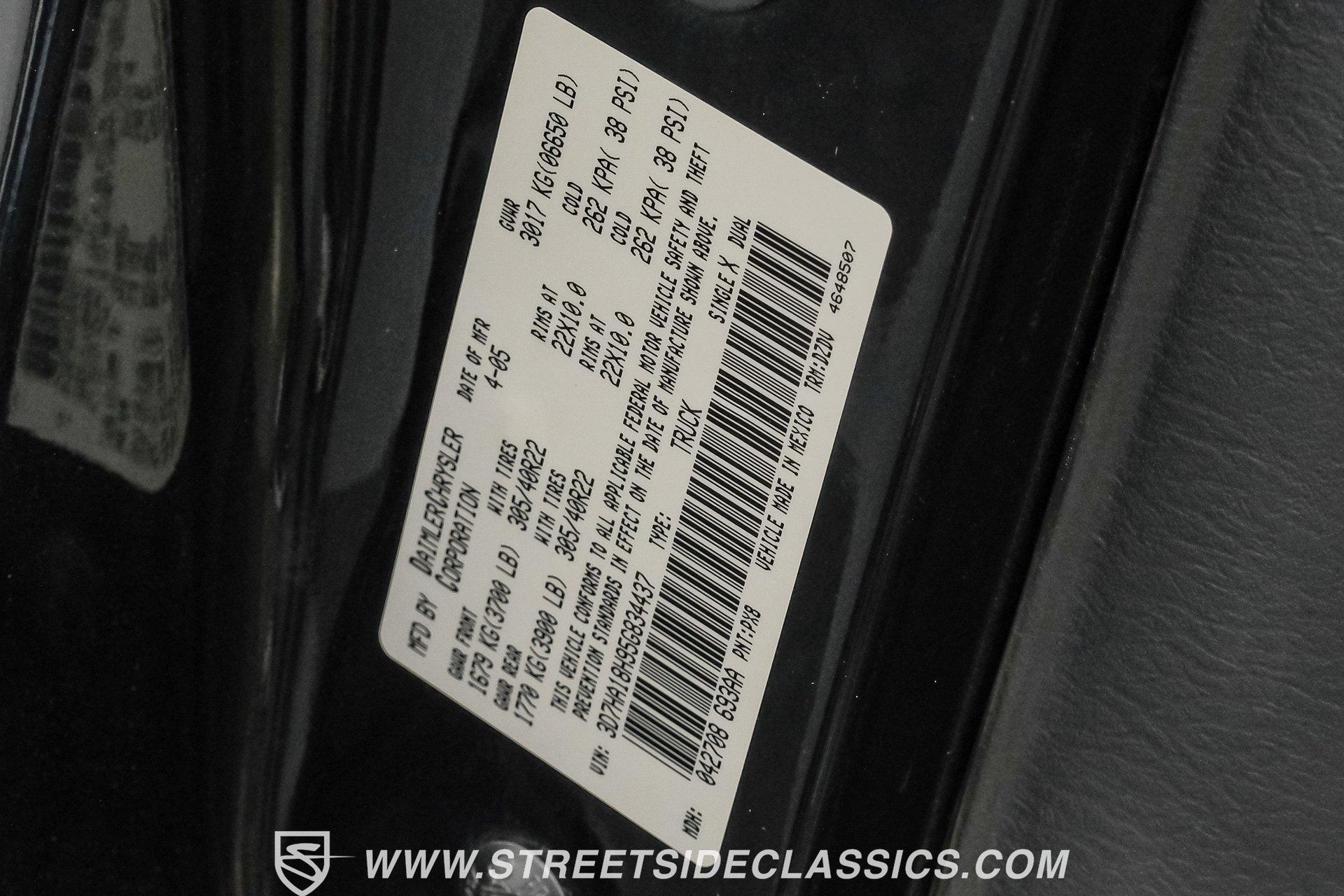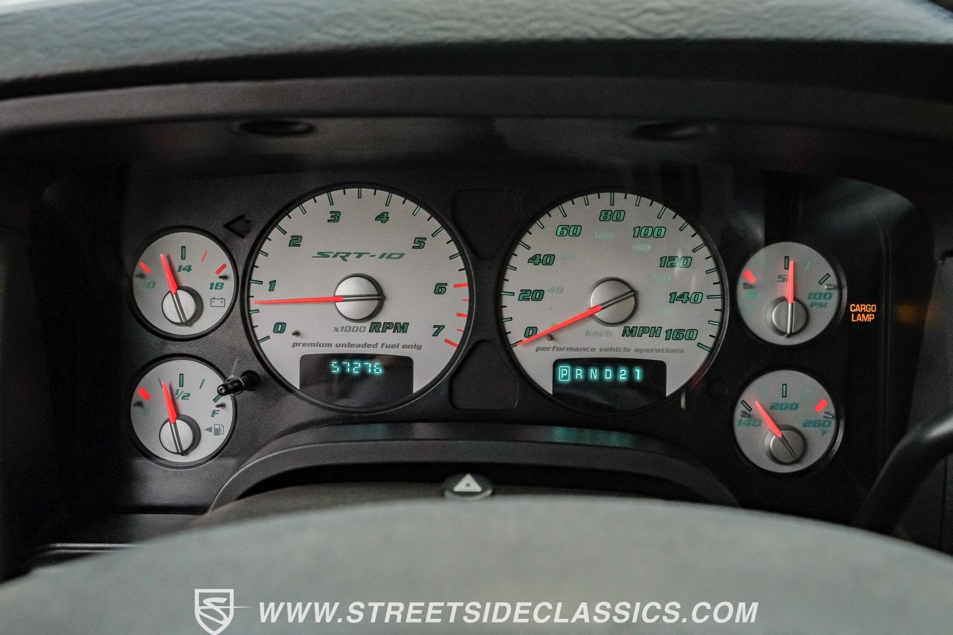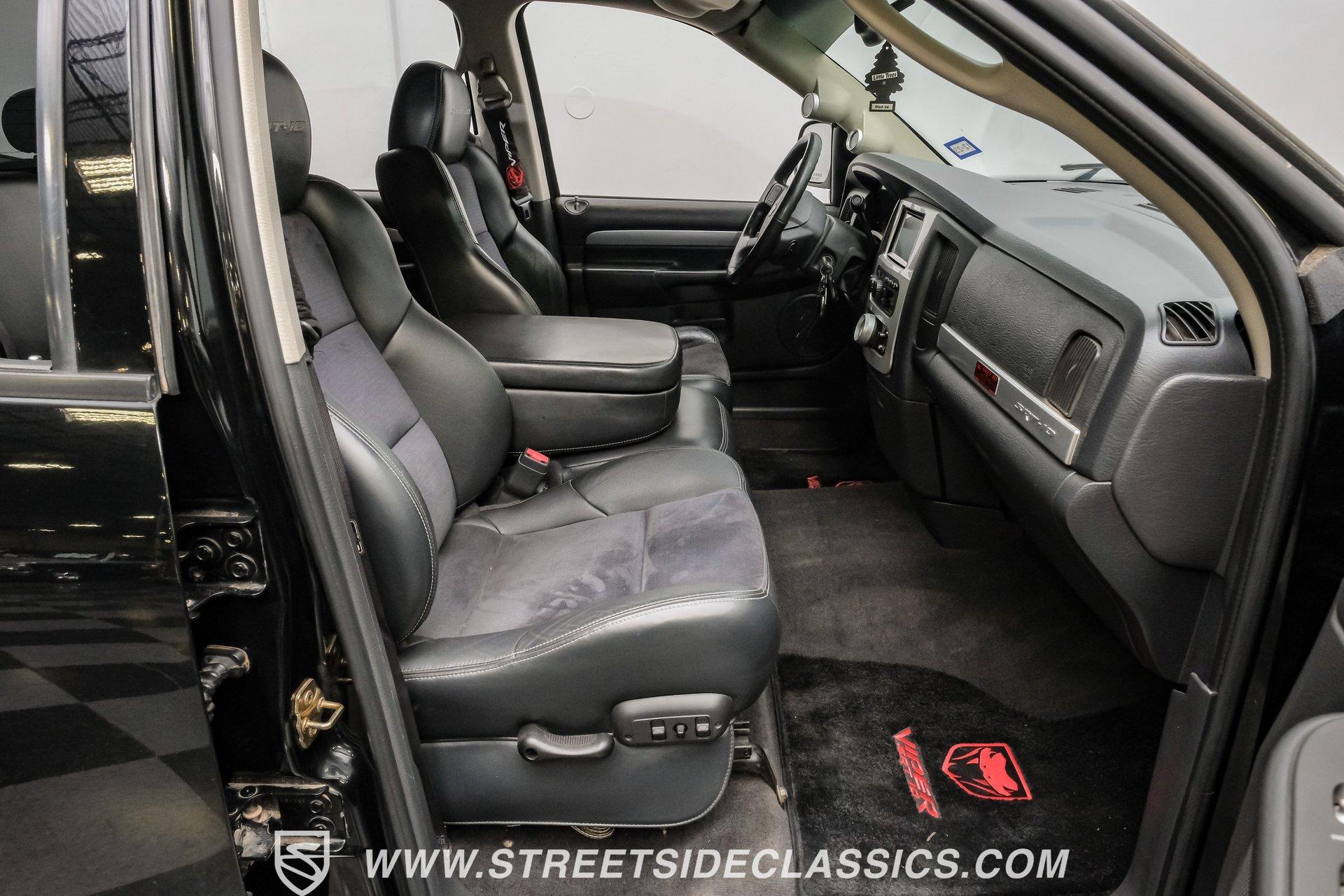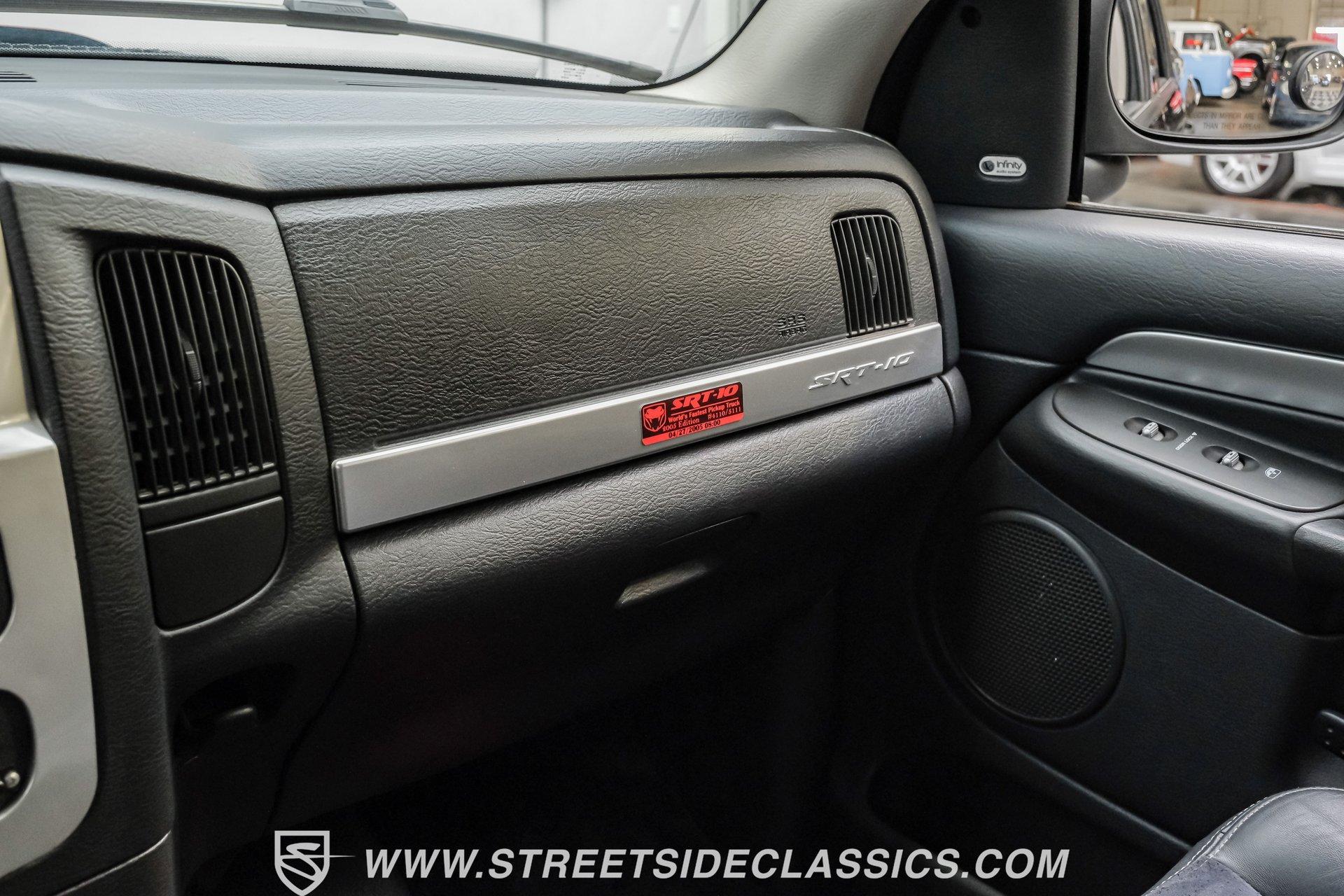 There is something about a bold truck that makes a statement long before you fire the engine. This truck blends the nostalgia of American pickup heritage with straight-line performance and custom street presence, inviting memories of open-road afternoons and weekend shows. Crisp paint with custom painted stripes, an adjustable front splitter, and purposeful stance make it a head-turner at every stoplight. If you want a distinctive Viper-powered pickup that pairs serious V10 grunt with show-ready style, take a closer look at this 2005 Dodge Ram SRT-10 Quad Cab with an 8.3L V10 and 57,276 actual miles. Step inside and you will find a well-appointed cabin built for both comfort and entertainment. Power leather/suede sport seats up front, power windows, locks, mirrors and A/C provide modern convenience while a double-din JVC AM/FM/CD/BT/SAT touchscreen anchors the dash. Dual JBL subwoofers and amps are neatly mounted under the rear seat, and a pillar gauge pod and AFR gauge keep key engine info visible. The seats and trim show minimal wear consistent with careful use, and the interior overall presents very well for driving and show duties. Under the hood the big 8.3L V10 provides serious motivation, paired with a 4-speed 48RE automatic transmission that launches this truck with authority. Performance additions include a Racing Solutions intake, JMB cold air intake, long-tube Belanger headers, and an installed nitrous system, all complemented by a quality exhaust with electric cutouts and tune to match. The truck rides on 22 inch wheels wrapped in 305/40R22 tires, with power disc brakes front and rear and factory-style suspension augmented with Cal-Tracs for improved traction and launch control on demand. Highlights: Mileage 57,276 Actual Full Repaint Done 2017 Viper Powered 8.3L V10 Engine JMB Cold Air Intake Racing Solutions Intake Long Tube Belanger Headers Nitrous Kit (608 RWHP / 647 max torque) 4 Speed Automatic 48RE Transmission Power Disc Brakes Factory Style Suspension With Cal-Tracs 22 Inch Wheels With 305/40R22 Tires JVC Double Din Touchscreen Head Unit Dual JBL Subwoofers Under Rear Seat This 2005 Dodge Ram SRT-10 Quad Cab combines commanding V10 performance with thoughtful custom touches and show-quality paint, making it a compelling buy for enthusiasts and collectors. Call today!