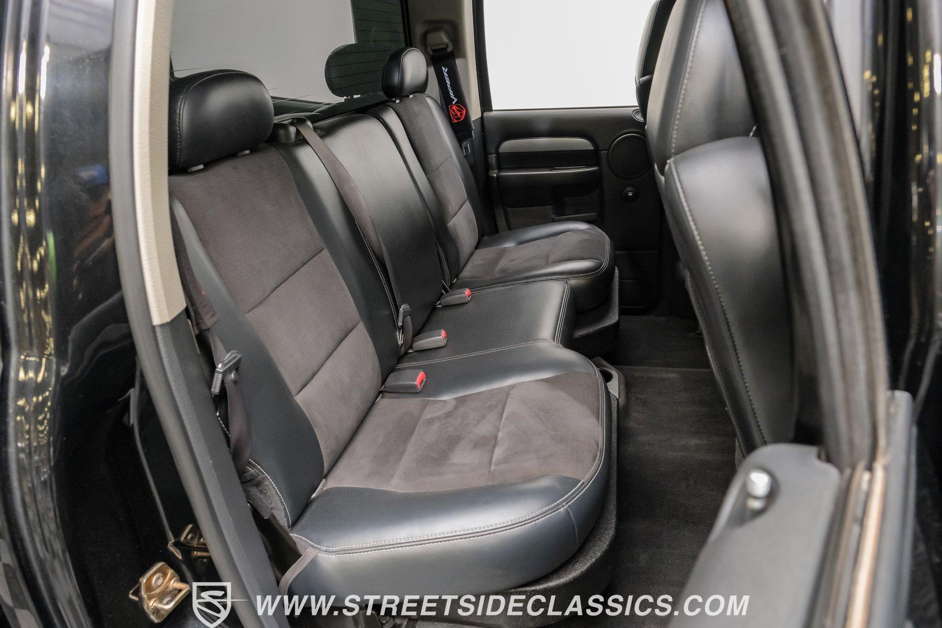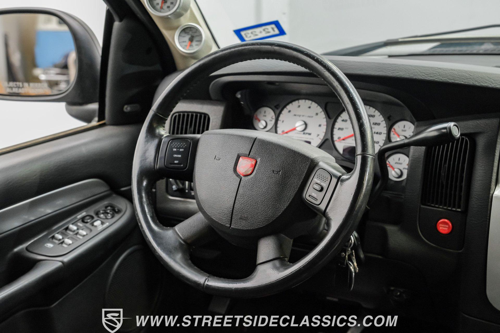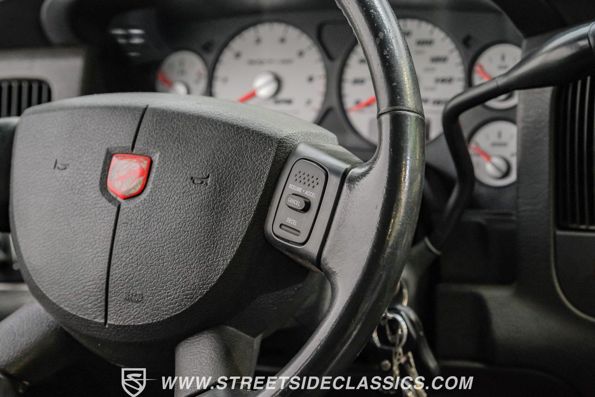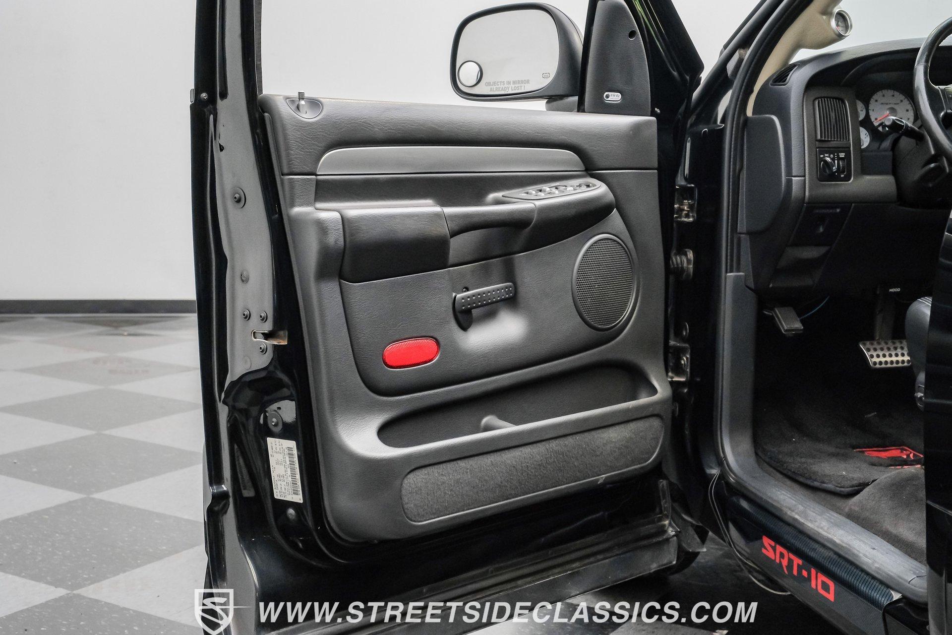 There is something about a bold truck that makes a statement long before you fire the engine. This truck blends the nostalgia of American pickup heritage with straight-line performance and custom street presence, inviting memories of open-road afternoons and weekend shows. Crisp paint with custom painted stripes, an adjustable front splitter, and purposeful stance make it a head-turner at every stoplight. If you want a distinctive Viper-powered pickup that pairs serious V10 grunt with show-ready style, take a closer look at this 2005 Dodge Ram SRT-10 Quad Cab with an 8.3L V10 and 57,276 actual miles. Step inside and you will find a well-appointed cabin built for both comfort and entertainment. Power leather/suede sport seats up front, power windows, locks, mirrors and A/C provide modern convenience while a double-din JVC AM/FM/CD/BT/SAT touchscreen anchors the dash. Dual JBL subwoofers and amps are neatly mounted under the rear seat, and a pillar gauge pod and AFR gauge keep key engine info visible. The seats and trim show minimal wear consistent with careful use, and the interior overall presents very well for driving and show duties. Under the hood the big 8.3L V10 provides serious motivation, paired with a 4-speed 48RE automatic transmission that launches this truck with authority. Performance additions include a Racing Solutions intake, JMB cold air intake, long-tube Belanger headers, and an installed nitrous system, all complemented by a quality exhaust with electric cutouts and tune to match. The truck rides on 22 inch wheels wrapped in 305/40R22 tires, with power disc brakes front and rear and factory-style suspension augmented with Cal-Tracs for improved traction and launch control on demand. Highlights: Mileage 57,276 Actual Full Repaint Done 2017 Viper Powered 8.3L V10 Engine JMB Cold Air Intake Racing Solutions Intake Long Tube Belanger Headers Nitrous Kit (608 RWHP / 647 max torque) 4 Speed Automatic 48RE Transmission Power Disc Brakes Factory Style Suspension With Cal-Tracs 22 Inch Wheels With 305/40R22 Tires JVC Double Din Touchscreen Head Unit Dual JBL Subwoofers Under Rear Seat This 2005 Dodge Ram SRT-10 Quad Cab combines commanding V10 performance with thoughtful custom touches and show-quality paint, making it a compelling buy for enthusiasts and collectors. Call today!