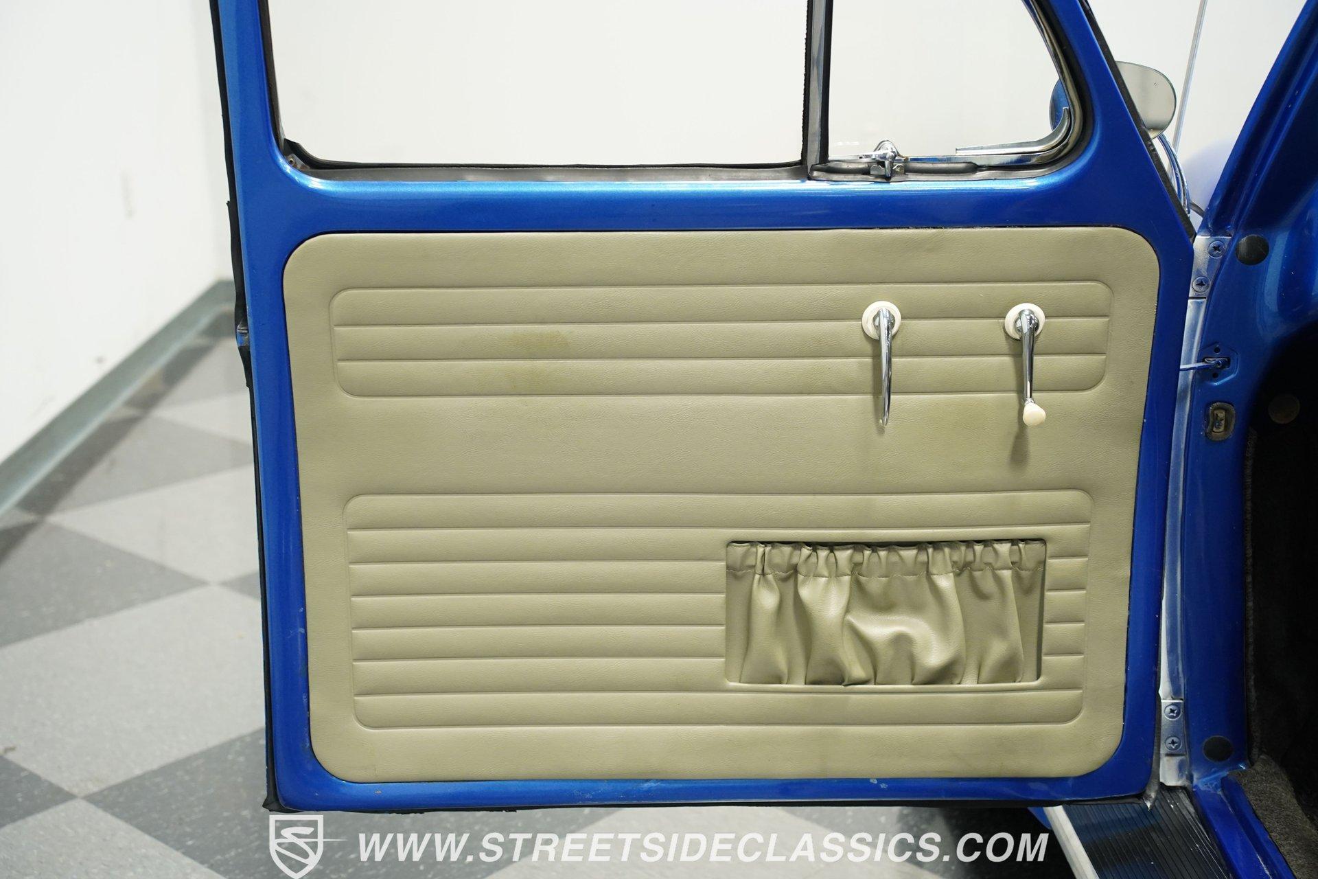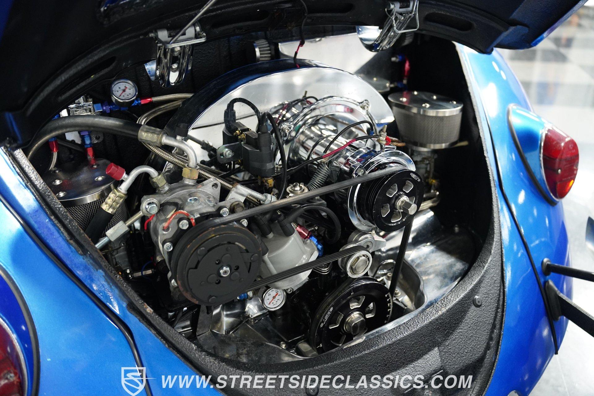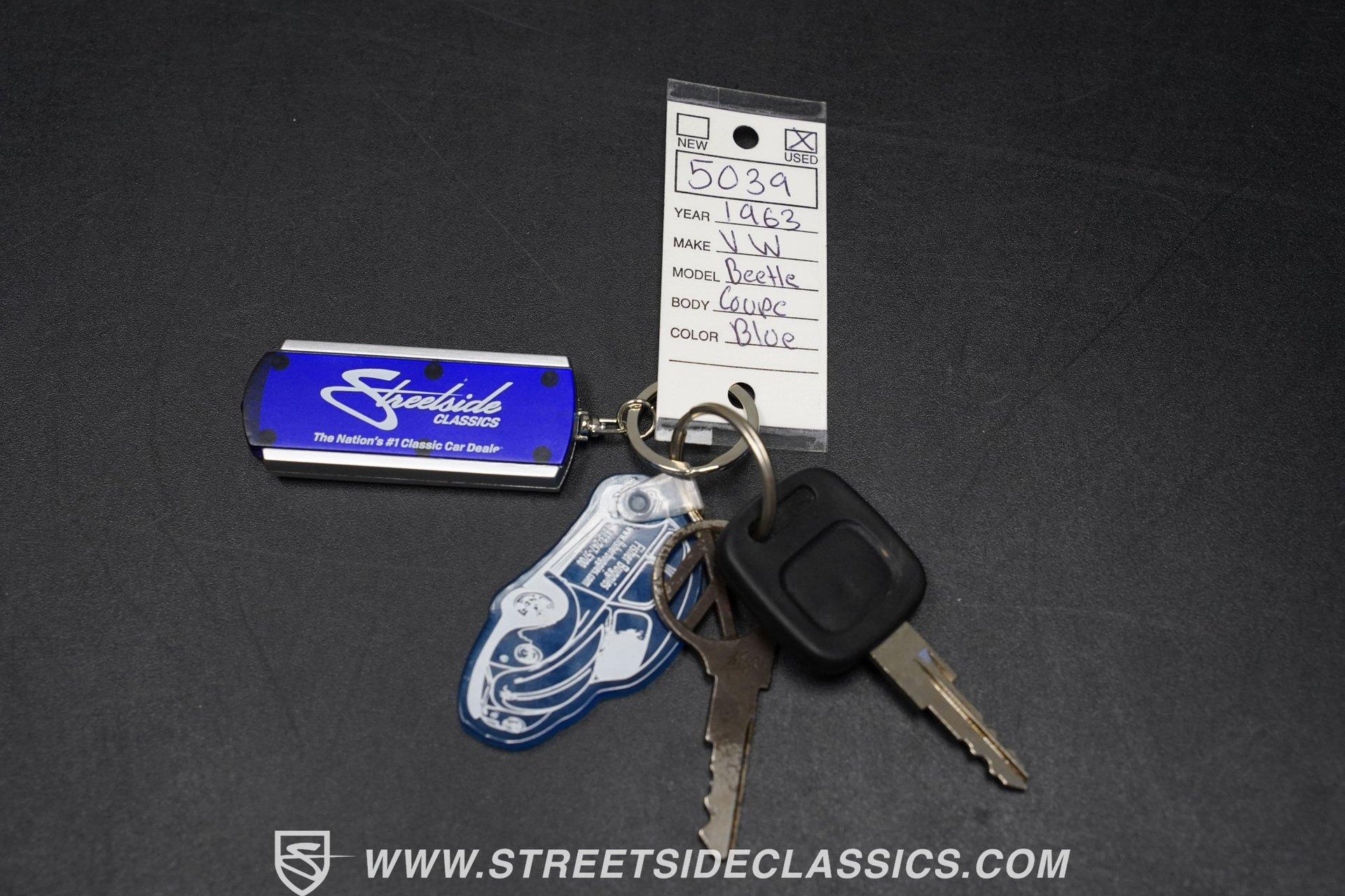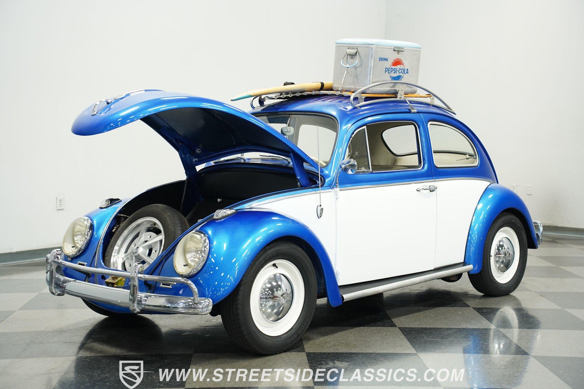 Step back in time with this beautifully restored 1963 Volkswagen Beetle, a true icon that captures the spirit of classic automotive design and carefree adventures. This Beetle is more than just a car; it's a statement of timeless charm and a rolling piece of history that brings nostalgia and joy to every drive. Whether cruising city streets or scenic backroads, this vintage Bug promises an experience filled with smiles and admiration. Don't miss your chance to own a piece of the past that's ready for today's roads and tomorrow's memories. Inside, you'll find a completely redone interior that combines classic style with modern comfort. The banjo-style steering wheel adds a touch of vintage flair. The RetroSound radio system provides quality audio entertainment, and the ice-cold Gilmore under-dash air conditioning keeps the cabin comfortable no matter the weather. The interior's vinyl upholstery is in excellent condition, reflecting the care and attention given to this Beetle's restoration. Under the hood, a nicely dressed and rebuilt 1835cc engine delivers lively performance with less than 5,000 miles since its rebuild. The engine features a shorty exhaust and chromed, braided stainless steel lines paired with a dual exhaust system that not only looks impressive but sounds fantastic. A 4-speed manual transmission offers engaging control, making every drive a spirited and enjoyable experience. The suspension remains factory style but lowered for a smooth and confident ride, complemented by disc brakes on all four wheels for reliable stopping power. Highlights 1963 Volkswagen Beetle 1835cc Engine Rebuilt Under 5,000 Miles 4-Speed Manual Transmission Shorty Exhaust With Dual Exhaust System Chromed And Braided Stainless Lines Deep Blue & White Full Repaint Vintage Speed Roof Rack With Surfboard & Cooler Completely Redone Interior RetroSound Radio System Ice Cold Gilmore Under Dash A/C Banjo Style Steering Wheel Factory Style Lowered Suspension Four Wheel Disc Brakes P195/65R15 Tires On 15" Wheels No Rust, Average Driver Quality Underside Build Receipts Included Financing Available Vehicle Protection Plans Available Worldwide Shipping This 1963 Volkswagen Beetle offers a perfect blend of classic style and modern upgrades, making it an excellent choice for enthusiasts and collectors alike. Its quality restoration and thoughtful enhancements ensure it's ready to provide years of driving pleasure. Call, email, or come visit our showroom today!