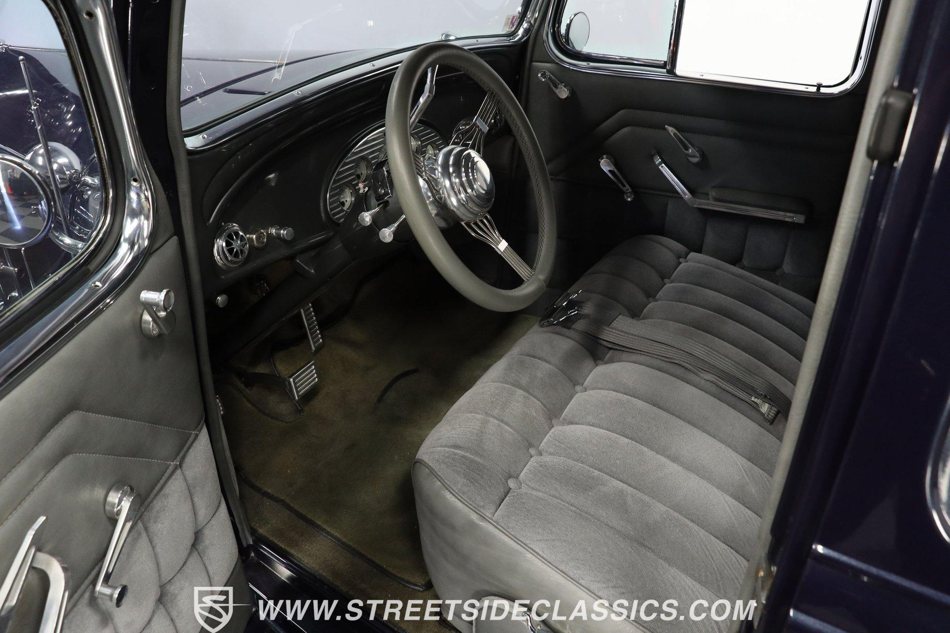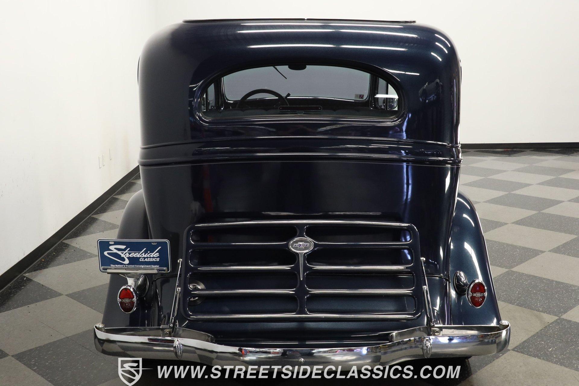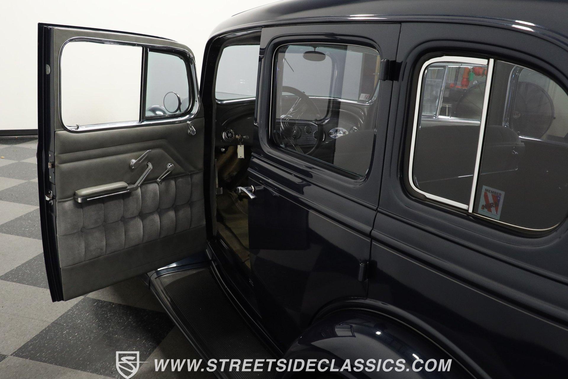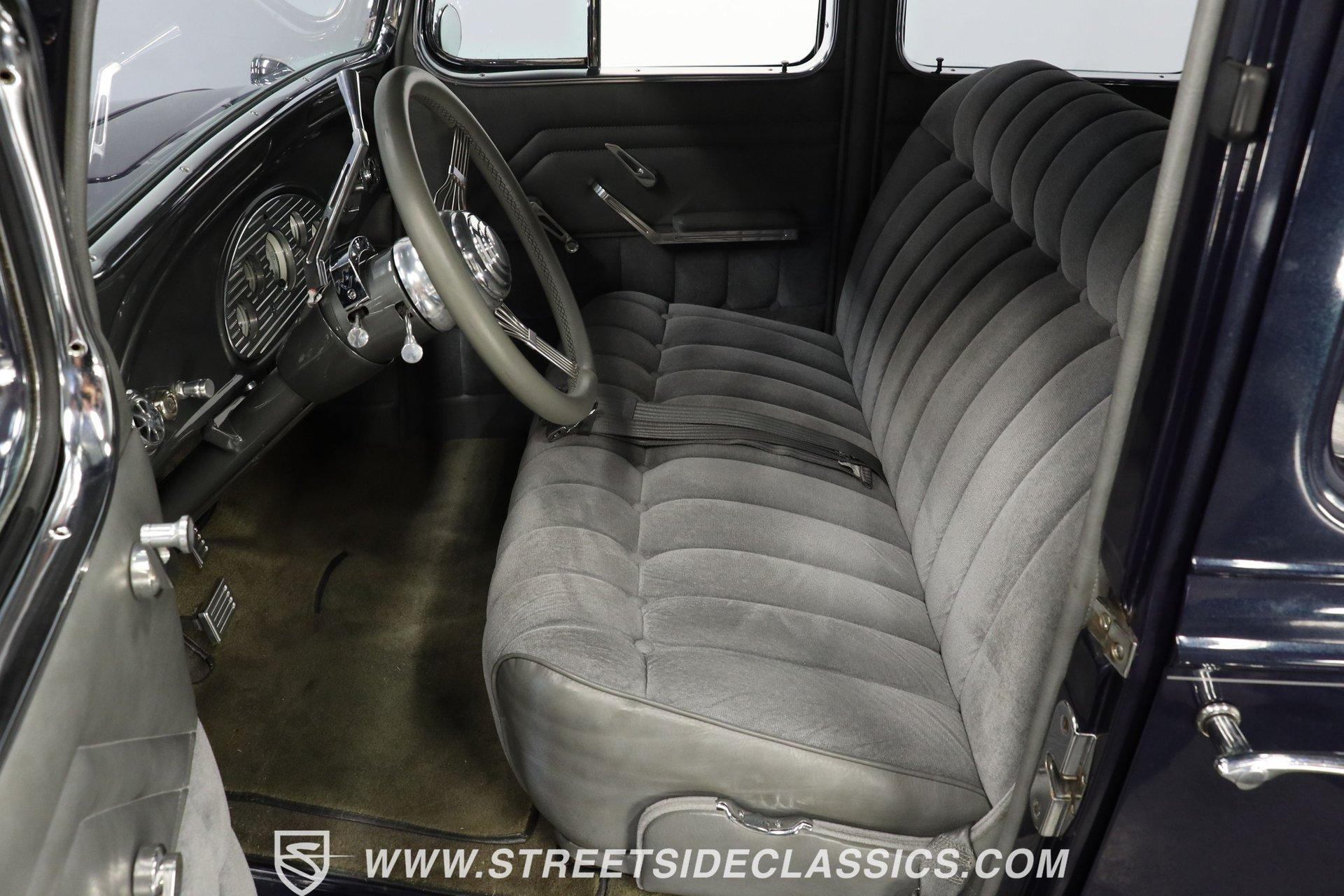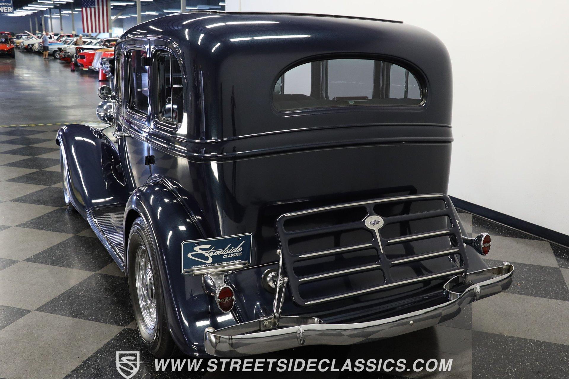 Step back in time and experience the charm and power of a true classic with this beautifully restored 1933 Chevrolet Master Touring Sedan. This iconic vehicle blends vintage elegance with modern performance, offering a driving experience that connects you to the golden era of American automobiles while enjoying today's reliability. Whether cruising down a scenic route or showing off at a car meet, this Chevrolet Master represents a timeless statement of style and craftsmanship. With its striking dark blue metallic paint and sleek four-door design, this sedan invites you to own a piece of automotive history that's ready to impress. Inside, the interior welcomes you with a sophisticated gray cloth and vinyl combination that exudes comfort and class. The dashboard, finished in metallic gray, features crisp VDO white face gauges for a vintage yet functional look. Vintage Air climate controls keep the cabin comfortable, complemented by a banjo-style steering wheel on a tilt column for added driving ease. Polished metal and chrome accents throughout highlight the meticulous attention to detail, while the full-size rear bench seat and front and rear seatbelts ensure a safe and enjoyable ride. Under the hood, you'll find a powerful ZZ4 crate 355 cubic inch small block engine paired with a smooth-shifting 4-speed automatic transmission (700R4). This setup is enhanced with dual Edelbrock 4-barrel carburetors, a chrome Edelbrock intake, headers, and an MSD ignition system, all contributing to impressive performance and reliability. Power steering and front disc brakes provide responsive handling and stopping power, while an upgraded front suspension with adjustable coilovers improves ride quality and control. The dual exhaust system and chrome touches add both style and performance benefits to this well-rounded drivetrain. Highlights 1933 Chevrolet Master Touring Sedan 4,903 Miles Since Built ZZ4 Crate 355ci Small Block Engine 4-Speed Automatic Transmission (700R4) Dual Edelbrock 4-Barrel Carburetors Chrome Edelbrock Intake Manifold MSD Ignition System Power Steering Front Disc Brakes Dual Exhaust System Upgraded Front Suspension with Adjustable Coilovers Vintage Air Climate Control Gray Cloth and Vinyl Interior Chrome Wire Wheels with 2018 Tires Mostly Steel Body with Fiberglass Rear Fenders Air Conditioning Seatbelts Front and Rear Excellent Paint with Medium Metallic Dark Blue Financing Available Vehicle Protection Plans Available Worldwide Shipping This 1933 Chevrolet Master Touring Sedan is a fantastic blend of classic style and modern upgrades, making it an excellent choice for collectors and enthusiasts alike. Its combination of eye-catching aesthetics, comfortable interior, and strong performance means it's ready for the road and show. Don't miss your chance to own this stunning piece of automotive history. Call, email, or come visit our showroom today! We can assist you with getting an Extended Vehicle Service Plan from Freedom Warranty, which provides comprehensive coverage that can save thousands of dollars on unexpected repairs. Inquire for more details and pricing!