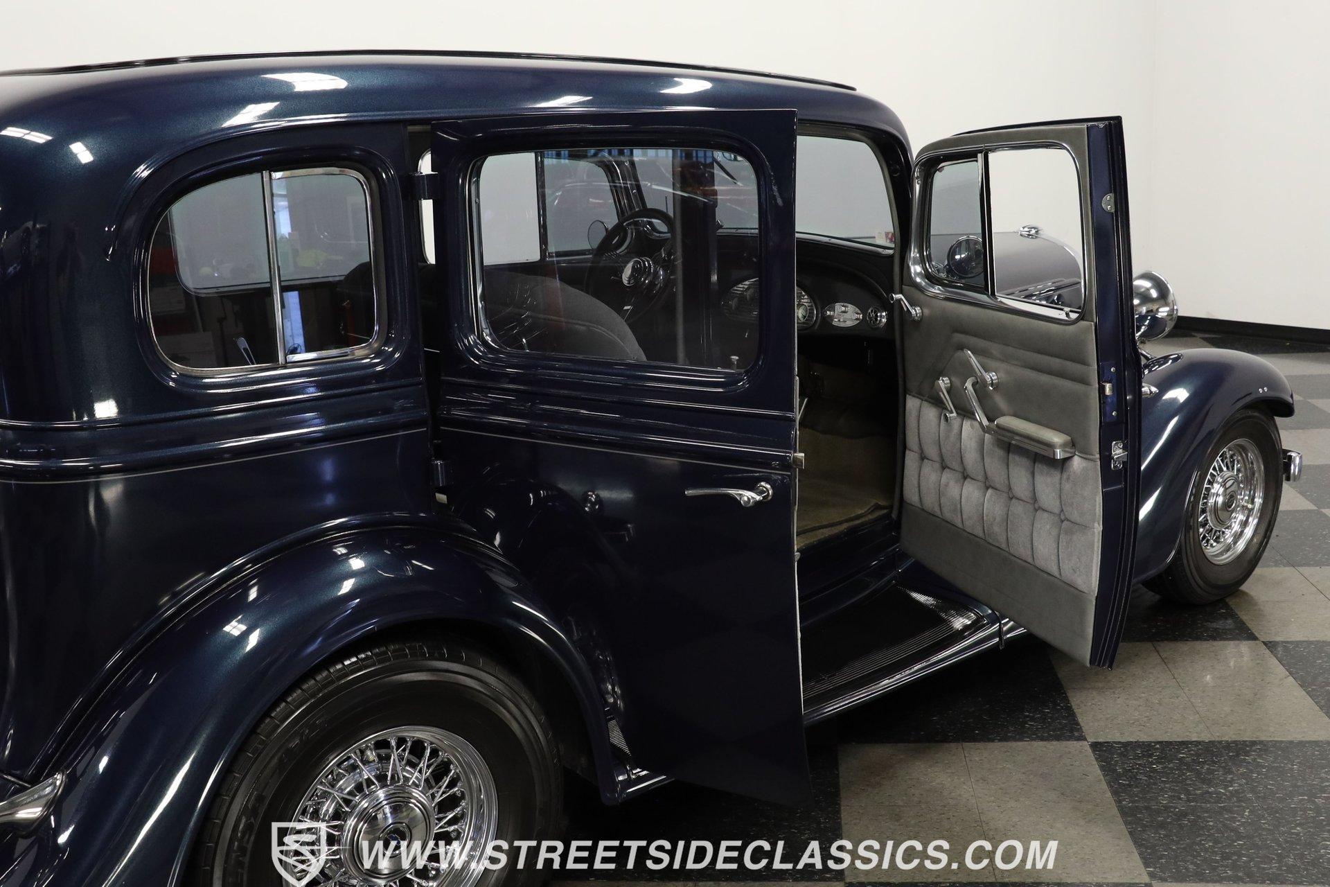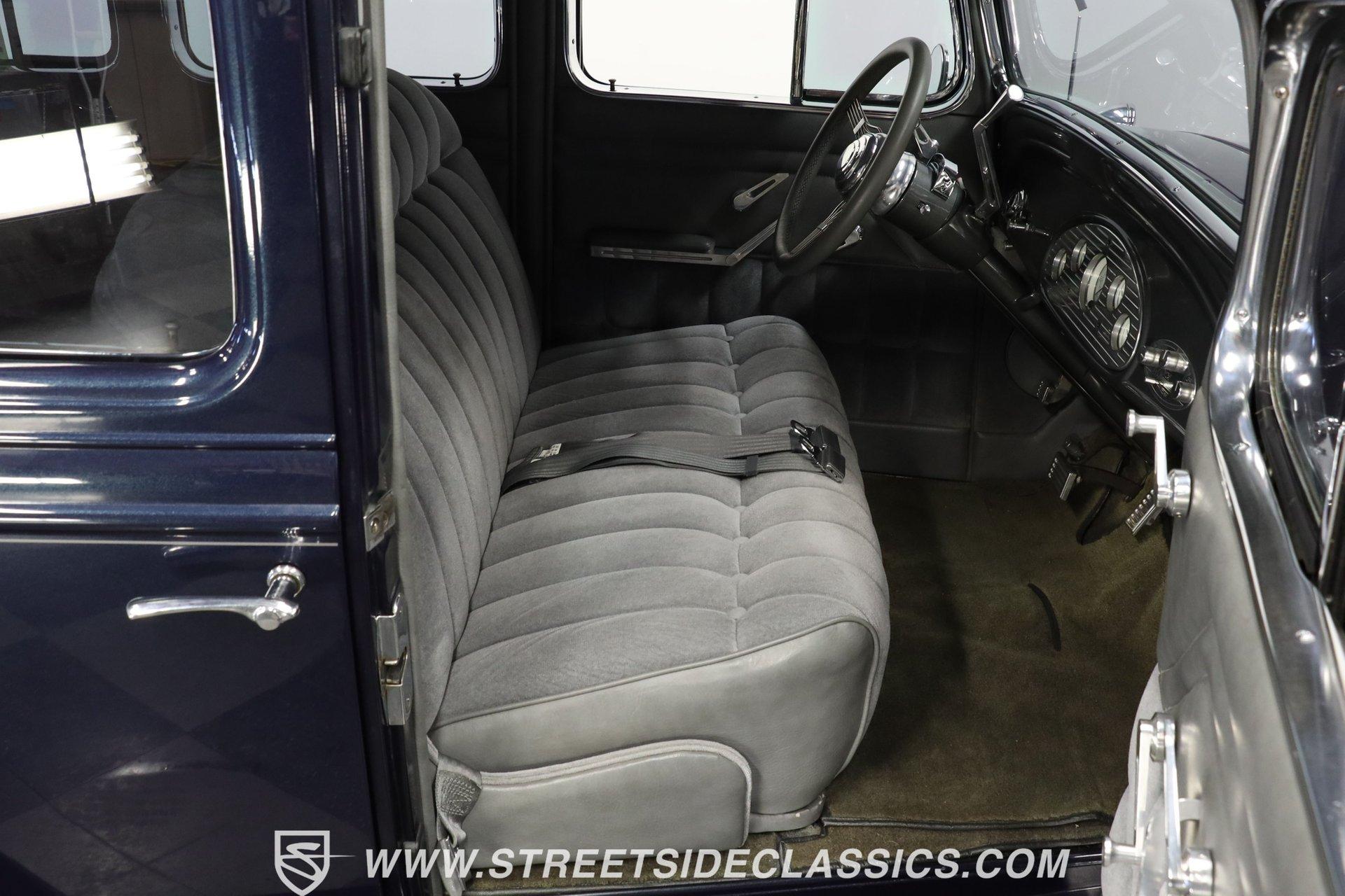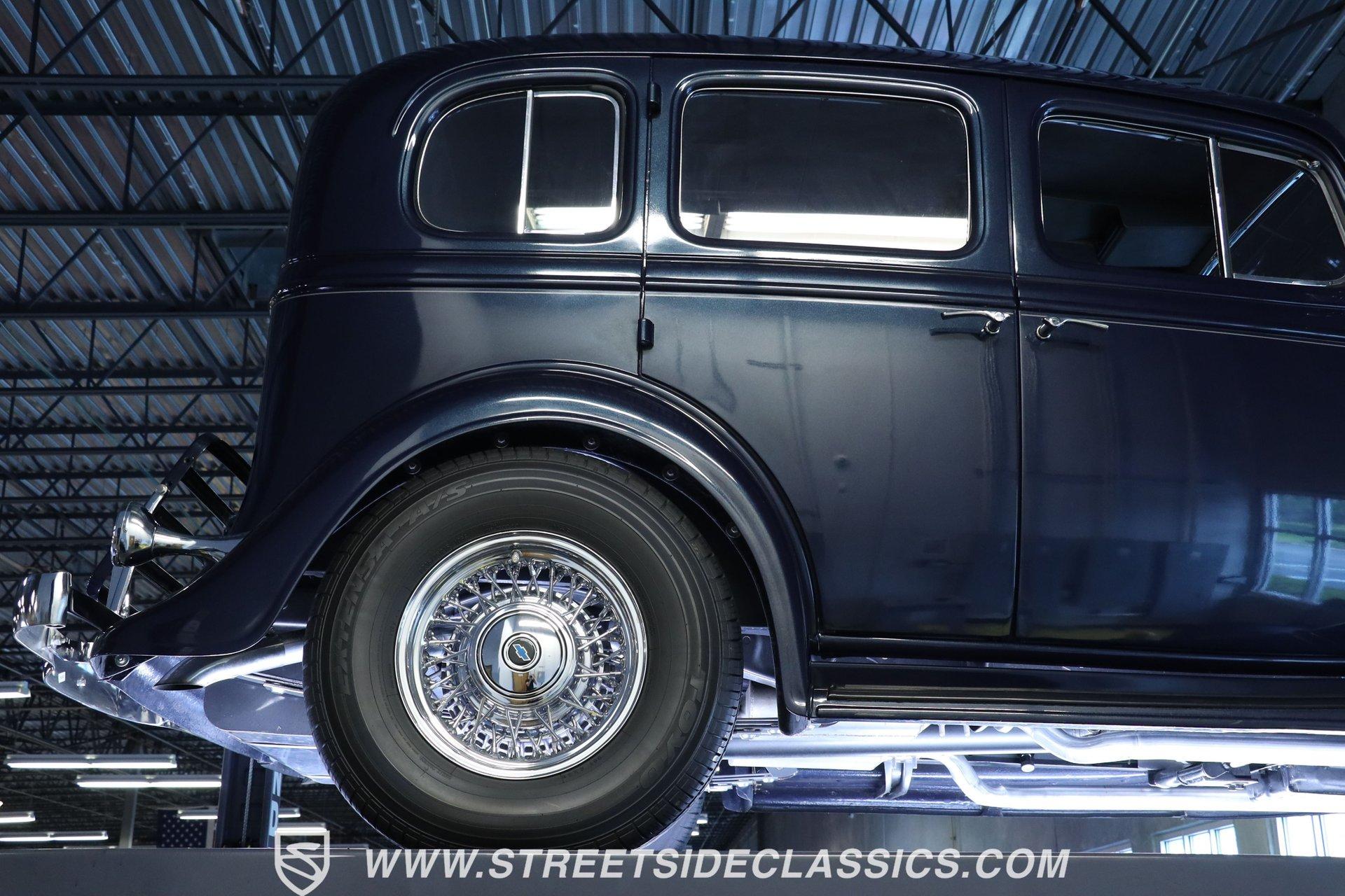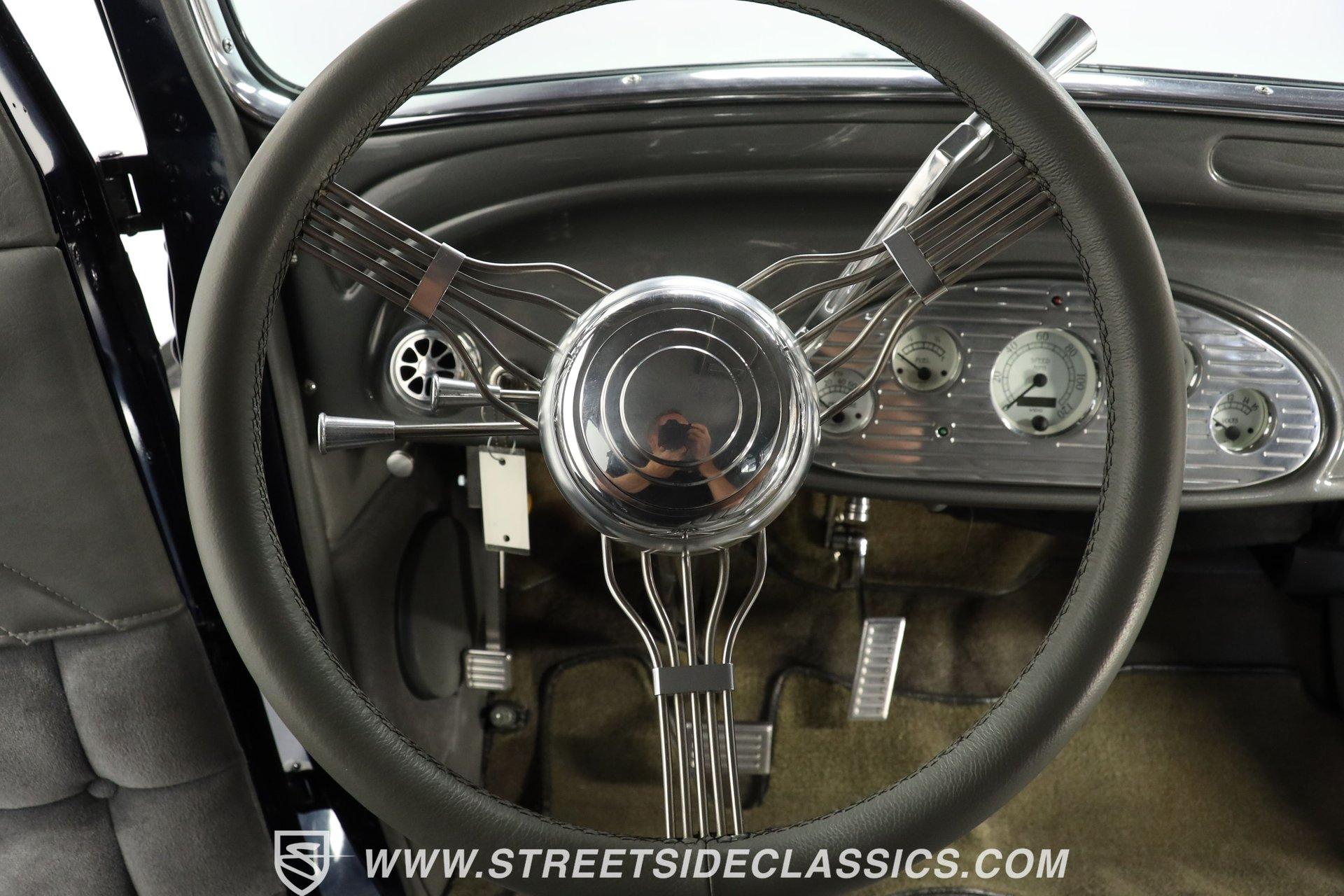 Step back in time and experience the charm and power of a true classic with this beautifully restored 1933 Chevrolet Master Touring Sedan. This iconic vehicle blends vintage elegance with modern performance, offering a driving experience that connects you to the golden era of American automobiles while enjoying today's reliability. Whether cruising down a scenic route or showing off at a car meet, this Chevrolet Master represents a timeless statement of style and craftsmanship. With its striking dark blue metallic paint and sleek four-door design, this sedan invites you to own a piece of automotive history that's ready to impress. Inside, the interior welcomes you with a sophisticated gray cloth and vinyl combination that exudes comfort and class. The dashboard, finished in metallic gray, features crisp VDO white face gauges for a vintage yet functional look. Vintage Air climate controls keep the cabin comfortable, complemented by a banjo-style steering wheel on a tilt column for added driving ease. Polished metal and chrome accents throughout highlight the meticulous attention to detail, while the full-size rear bench seat and front and rear seatbelts ensure a safe and enjoyable ride. Under the hood, you'll find a powerful ZZ4 crate 355 cubic inch small block engine paired with a smooth-shifting 4-speed automatic transmission (700R4). This setup is enhanced with dual Edelbrock 4-barrel carburetors, a chrome Edelbrock intake, headers, and an MSD ignition system, all contributing to impressive performance and reliability. Power steering and front disc brakes provide responsive handling and stopping power, while an upgraded front suspension with adjustable coilovers improves ride quality and control. The dual exhaust system and chrome touches add both style and performance benefits to this well-rounded drivetrain. Highlights 1933 Chevrolet Master Touring Sedan 4,903 Miles Since Built ZZ4 Crate 355ci Small Block Engine 4-Speed Automatic Transmission (700R4) Dual Edelbrock 4-Barrel Carburetors Chrome Edelbrock Intake Manifold MSD Ignition System Power Steering Front Disc Brakes Dual Exhaust System Upgraded Front Suspension with Adjustable Coilovers Vintage Air Climate Control Gray Cloth and Vinyl Interior Chrome Wire Wheels with 2018 Tires Mostly Steel Body with Fiberglass Rear Fenders Air Conditioning Seatbelts Front and Rear Excellent Paint with Medium Metallic Dark Blue Financing Available Vehicle Protection Plans Available Worldwide Shipping This 1933 Chevrolet Master Touring Sedan is a fantastic blend of classic style and modern upgrades, making it an excellent choice for collectors and enthusiasts alike. Its combination of eye-catching aesthetics, comfortable interior, and strong performance means it's ready for the road and show. Don't miss your chance to own this stunning piece of automotive history. Call, email, or come visit our showroom today! We can assist you with getting an Extended Vehicle Service Plan from Freedom Warranty, which provides comprehensive coverage that can save thousands of dollars on unexpected repairs. Inquire for more details and pricing!