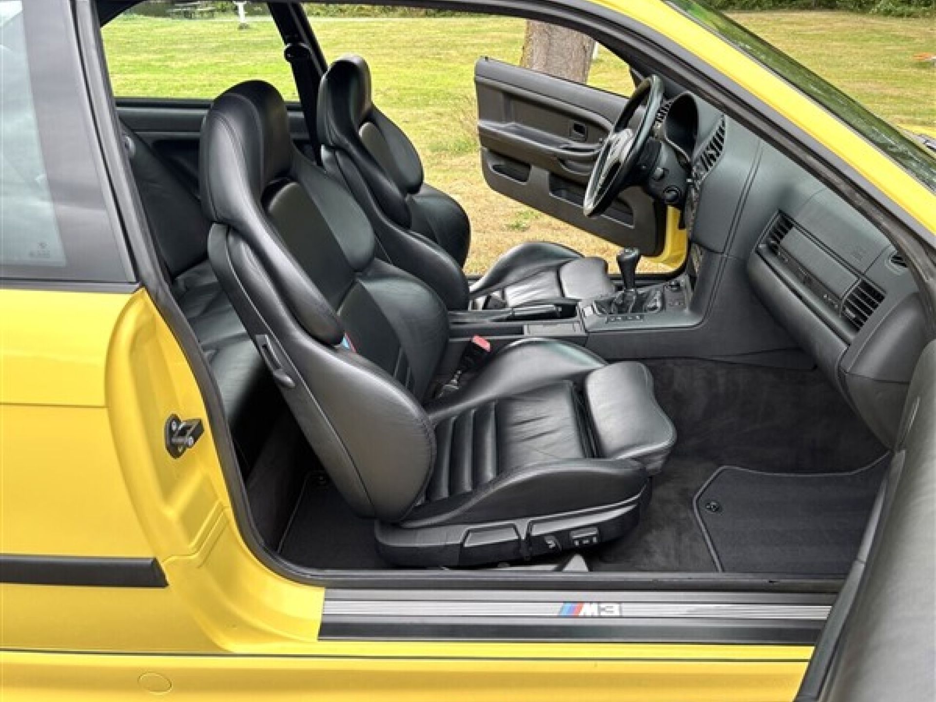 The exterior is very straight, damage-free, and every seam is correct. The car has been extensively polished and buffed, and the paint is super smooth. The body is 90% original. Dakar Yellow is the M3's introductory color, so it was featured in all the car magazines back then. In any case, there are only a few "true" E36 M3 colors: Dakar Yellow and Estorilb Blue. These are now the most popular and sought-after colors. The original M3 wheels look like new and are fitted with the correct Michelin Pilote Sport tires. The original factory stickers are still on the side mirrors!