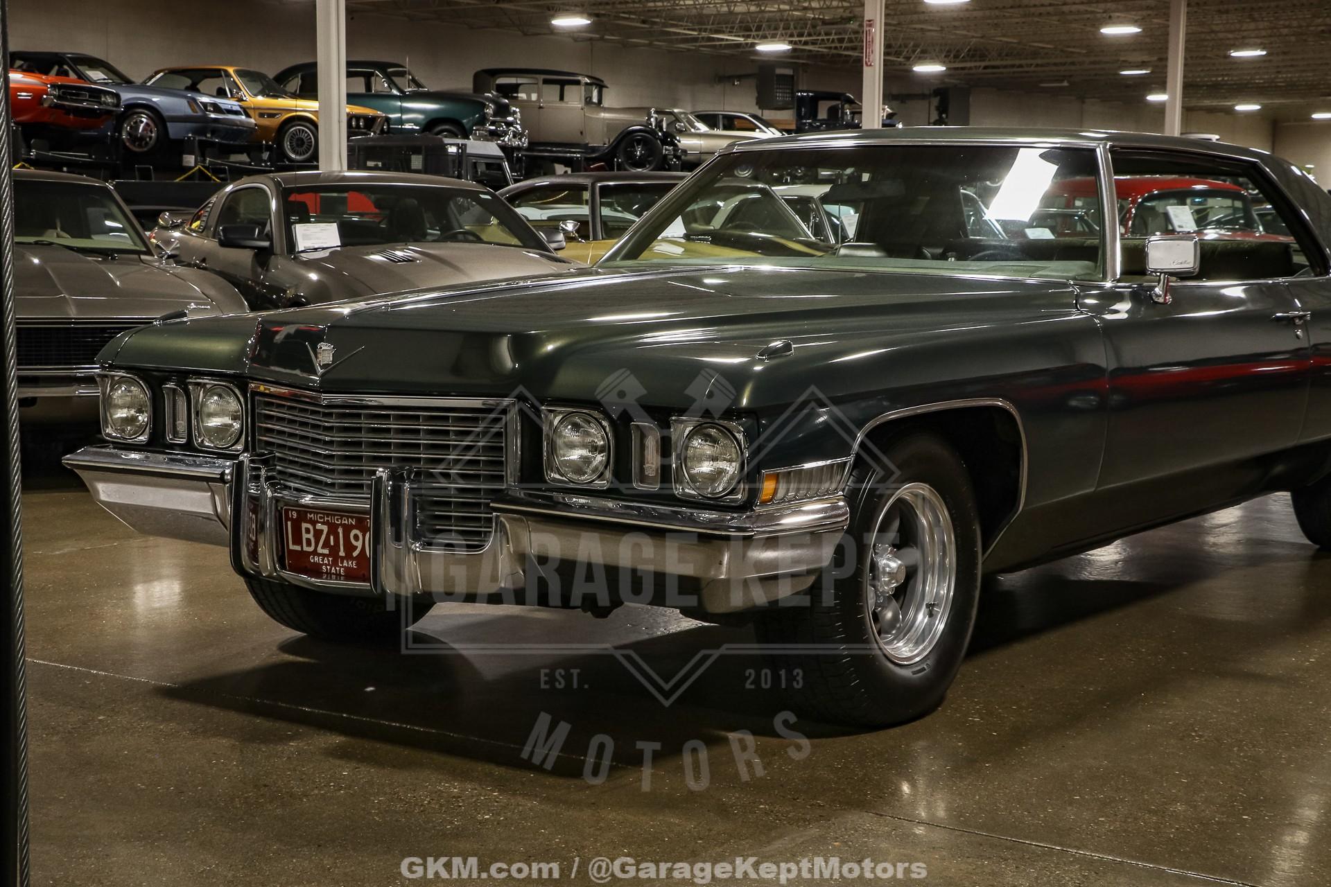 1972 Cadillac DeVille2-Door Hardtop Coupe- Detroit Car- Upgraded 454ci V8- Automatic Transmission- Green Metallic over Tan Interior- Upgraded Gauges and Steering Wheel- American Racing Wheels- Power Steering and Power Locks- 84k Miles ShownThe 1972 Cadillac DeVille 2-Door Hardtop Coupe captures the bold luxury and commanding style of early 1970s American automobiles. Originally a Detroit car, this example presents beautifully in Green Metallic over a Tan interior, a combination that highlights its presence and elegance. With its long, flowing body lines and signature Cadillac styling cues, the DeVille stands as an unmistakable symbol of the brand's dominance in the luxury car market during this era.Under the hood, this DeVille has been upgraded with a 454ci V8, giving it a stronger performance edge over the factory engine. Paired with an automatic transmission, the car delivers smooth cruising power while maintaining the effortless driving experience Cadillac was known for. The combination of a big-block upgrade and Cadillac refinement makes this example unique, offering both classic luxury and muscle-inspired performance.Inside, the Tan cabin has been tastefully enhanced with upgraded gauges and a custom steering wheel, providing a driver-focused touch while preserving the spacious comfort expected from a Cadillac. The coupe's hardtop design ensures wide-open visibility and an airy cabin feel, while features such as power steering and power locks add to its usability. This blend of comfort, luxury, and subtle customization makes it a standout driver-friendly classic.Rolling on American Racing wheels, the DeVille adds a hint of sportiness to its otherwise elegant profile. With 84k miles shown, it reflects careful use over the years while still offering plenty of road life ahead. For enthusiasts seeking a full-sized American classic with tasteful upgrades and timeless Cadillac style, this 1972 DeVille presents an appealing mix of luxury, presence, and performance.
