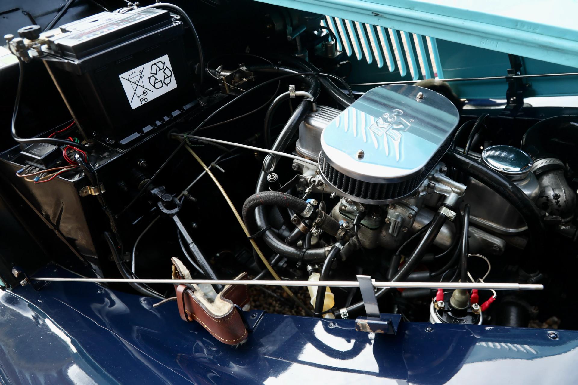 Beneath the long, elegant bonnet lies the tried-and-true 1600 cc Ford Kent engine—a powerplant celebrated for its reliability and smooth delivery. Introduced in the Morgan 4/4 in 1967 and standard from 1970 onward, it perfectly complements the car's light weight and Morgan's trademark engineering, including the renowned sliding pillar front suspension. The result is a driving experience that is light, direct, and surprisingly lively—a car that doesn't demand, but rather invites, turning every journey into a seamless dialogue between driver and machine.