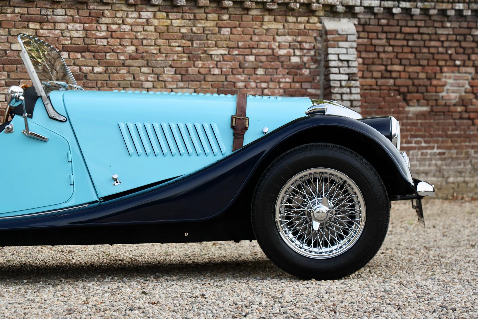 This particular example underwent a full body-off restoration in England during the 1990s, carried out by a recognized Morgan specialist and dealer. The quality of that work is still evident today: an exceptionally well-presented car, meticulously rebuilt to factory-correct standards, with gleaming paintwork, a superb interior, and an overall presence that immediately inspires confidence. Thanks to that restoration and mechanical refurbishment, this Morgan remains in fine condition and drives exactly as one would expect from a classic of this caliber.