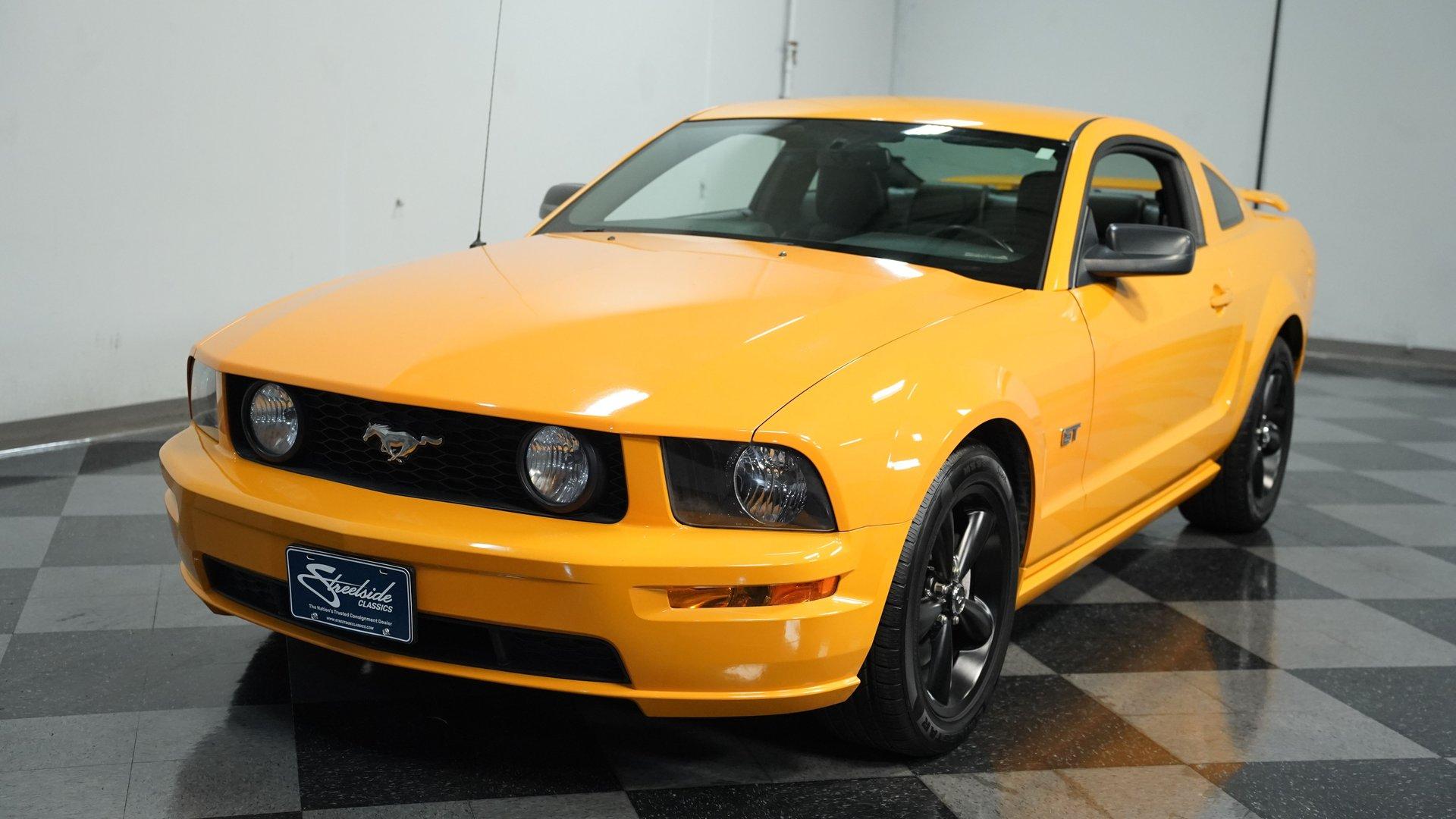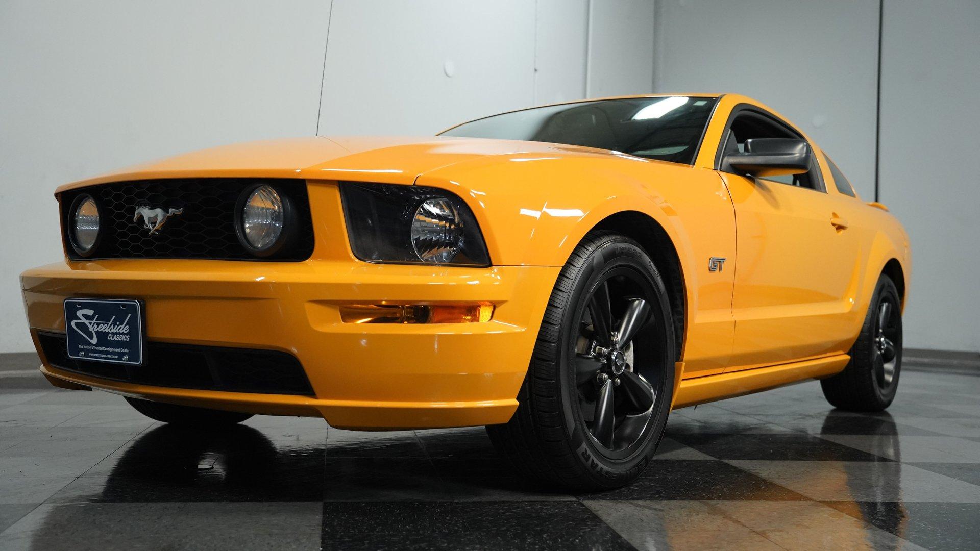 When the fifth generation of the Ford Mustang rolled out in 2005, it spurred on a retro-themed craze from Pony Cars everywhere. Known as the S197 generation, this 2007 Ford Mustang GT Deluxe comes to you with just 13,985 actual miles on its odometer. With its believed original body decked out in its believed original Grabber Orange, this one-owner Mustang is the perfect ride for anyone who wanted one of these muscle cars but couldn't afford it until now. Inside, we find a Dark Charcoal Black leather interior. A pair of six-way power and heated bucket seats is separated by a center storage console, complete with dual cupholders. Power windows, locks, and mirrors, along with air conditioning and cruise control, provide a range of modern conveniences. An AM/FM/AUX/CD stereo provides plenty of soundtrack options, if you ever get tired of listening to the rumble of the exhaust, or simply want to add to it. Under the hood, we find a clean engine bay featuring a 4.6-liter single-overhead-cam, 24-valve V-8 engine. From the factory, this small block V-8 was capable of pumping out a healthy 300 horsepower at 5,750 rpm and 320 pound-feet of torque at 4,500 rpm. That power is routed through a tried-and-true Tremec 3650 five-speed manual transmission. HIGHLIGHTS: One Owner 13,985 Actual Miles Believed Original Body Believed Original Hugger Orange Paint 4.6-Liter V8 Tremec Five Speed Manual Dark Charcoal Black Leather Heated and Power Seats Power Locks Power Mirrors Power Windows AC Cruise Power Steering AM/FM/CD/AUX Stereo Four Wheel Power Disc Brakes ABS Front and Side Airbags Anti-Theft System This 2007 Ford Mustang GT Deluxe rides on a set of 18-inch powder-coated black, five-spoke wheels shod in 235/50R-18 Milestar tires. Power disc brakes at all four corners stand ready to scrub off speed at a moment's notice, while front and side airbags allow you to drive safely for as long as you'd like. If you missed your chance to own a fifth-gen Mustang the first time around, then this ultra-low-mileage, one-owner car is your second chance. Don't wait, call today!