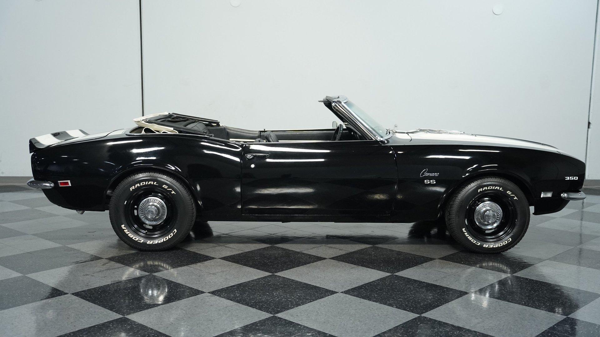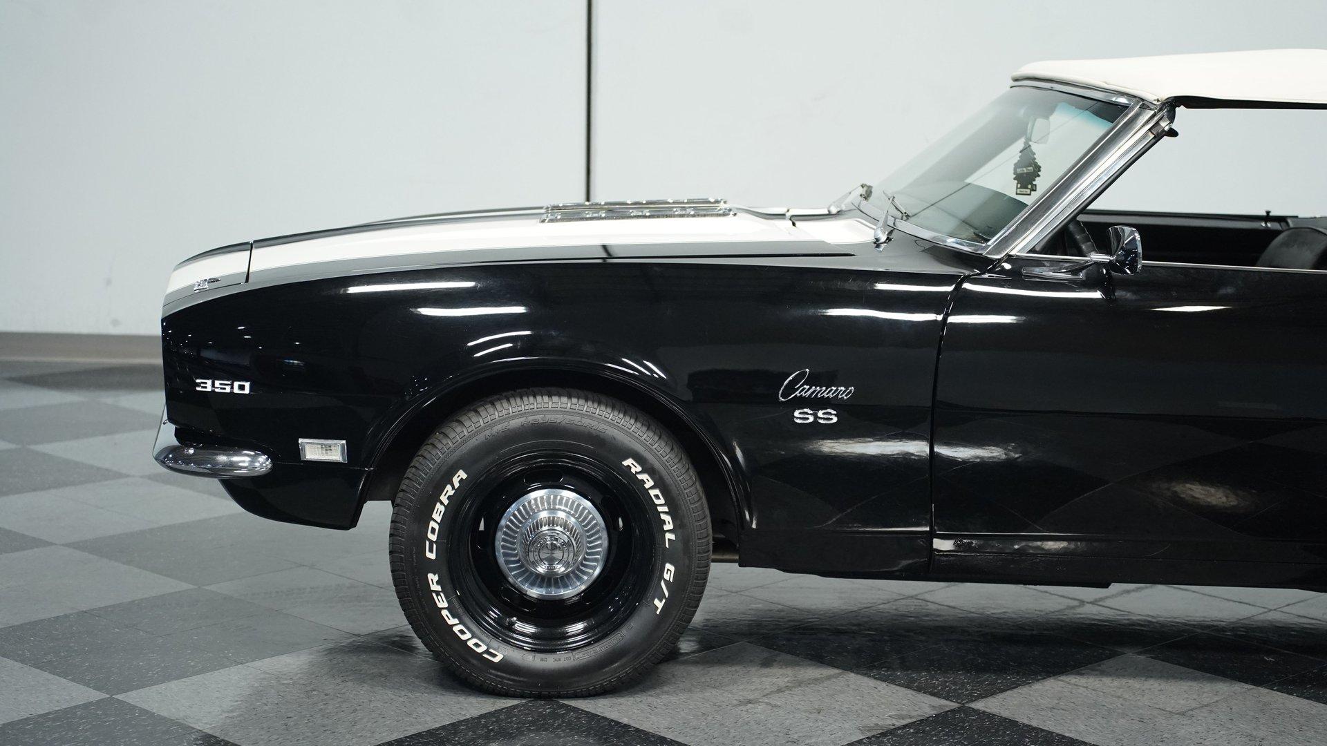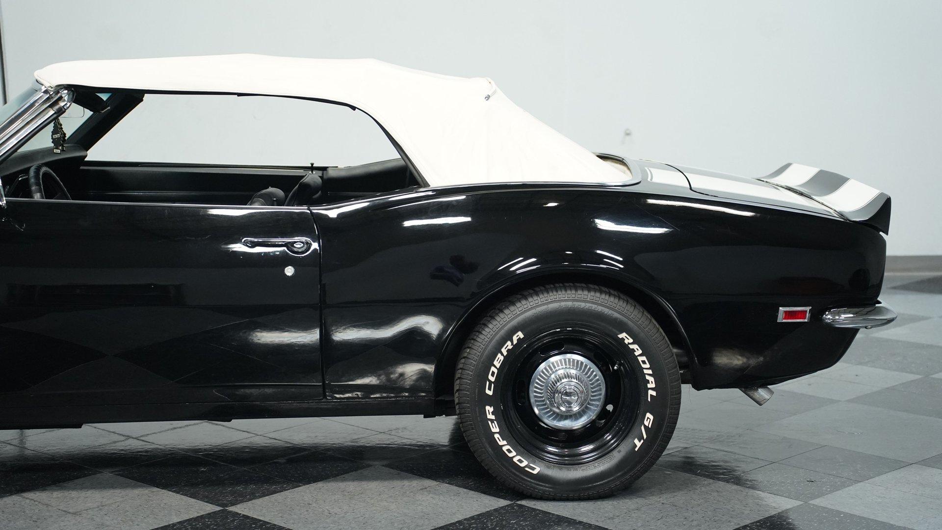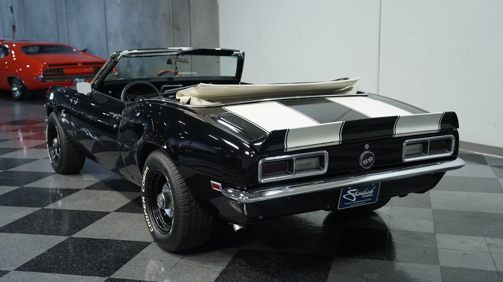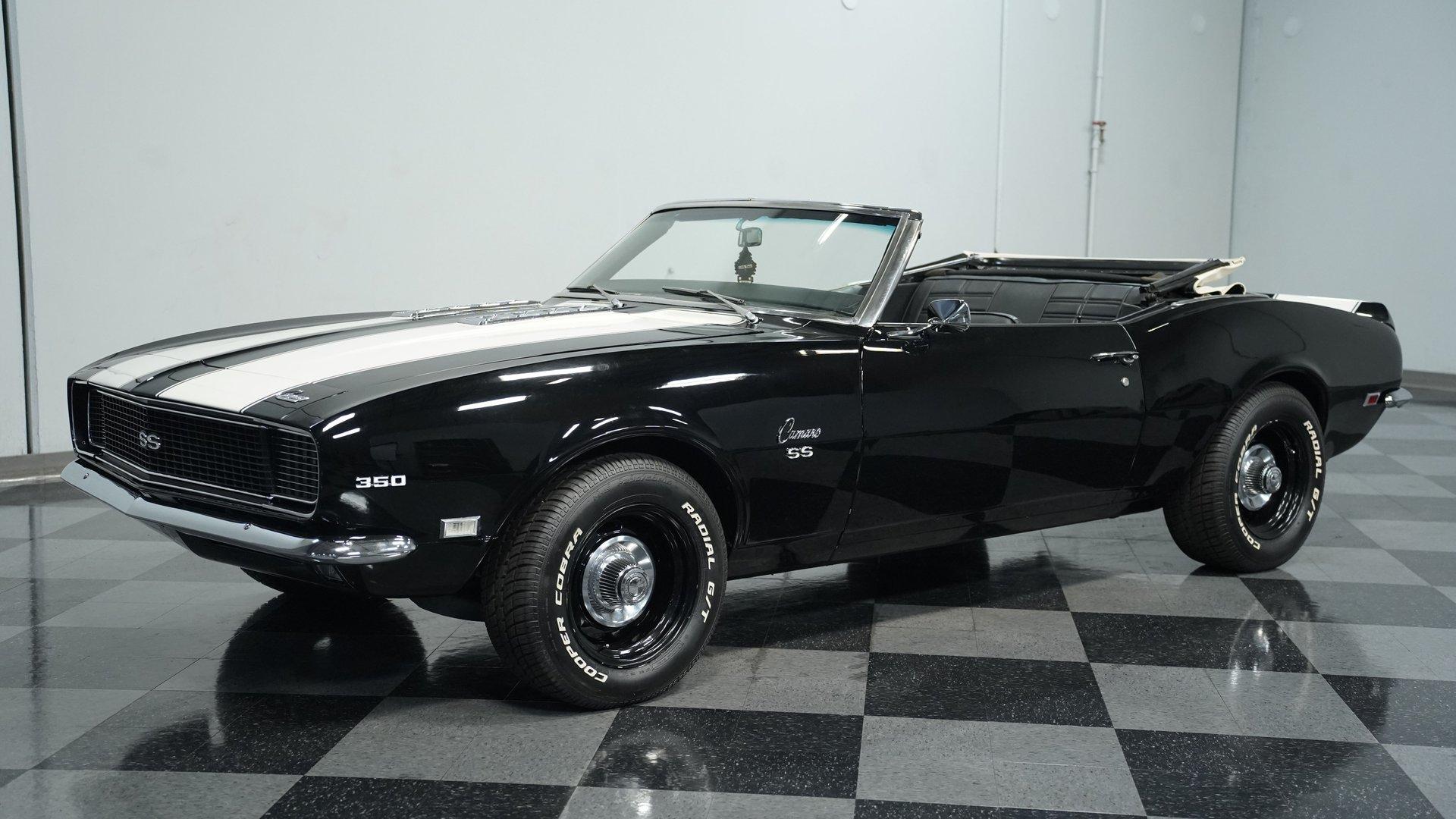 Experience the thrill of American muscle with a car that embodies classic style and open-air freedom. This 1968 Chevrolet Camaro RS/SS Tribute is more than just a vehicle; it's a statement of timeless design and spirited driving. The iconic black paint with a striking white convertible top makes this Camaro pop on the road, inviting you to create unforgettable memories behind the wheel. Whether cruising down the boulevard or turning heads at the car show, this Camaro captures the essence of the late 60s muscle car era. Don't miss your chance to own this 1968 Chevrolet Camaro RS/SS Tribute. Step inside to find an interior that balances classic charm with modern touches. The upholstery and door panels have been recently refreshed, giving the cabin a fresh, inviting look. The aftermarket radio and cool cupholder in the center console add convenience for today's driver. The solid back glass, chrome trim, and overall presentation showcase a well-cared-for interior that complements the car's bold exterior. Under the hood, this Camaro packs a rebuilt 350 V8 engine, equipped with a Weiand intake and Holley carburetor for enhanced performance. Ribbed aluminum valve covers and an aluminum air cleaner add a touch of style to the engine bay, which presents very well. The 3-speed automatic transmission shifts smoothly, delivering a driving experience that is both powerful and enjoyable. The factory-style suspension and 10-bolt rear axle ensure classic handling, while the 15-inch factory-style wheels wrapped in 255/60R15 tires maintain the car's authentic look. Highlights 1968 Chevrolet Camaro RS/SS Tribute 350 V8 Engine 3-Speed Automatic Transmission Weiand Intake & Holley Carburetor Ribbed Aluminum Valve Covers Power Convertible Top Factory Style Suspension Front & Rear 10-Bolt Rear Axle 15-Inch Factory Style Wheels 255/60R15 Tires Front & Rear Aftermarket Radio With Aux & Bluetooth Vinyl Interior With Recent Upholstery Drum Brakes Front And Rear Financing Available Vehicle Protection Plans Available Worldwide Shipping This 1968 Chevrolet Camaro RS/SS Tribute is a fantastic opportunity for anyone looking to enjoy a classic muscle car with a strong presence and solid performance. Its blend of restoration quality, tasteful upgrades, and iconic styling make it a standout choice. Call today!