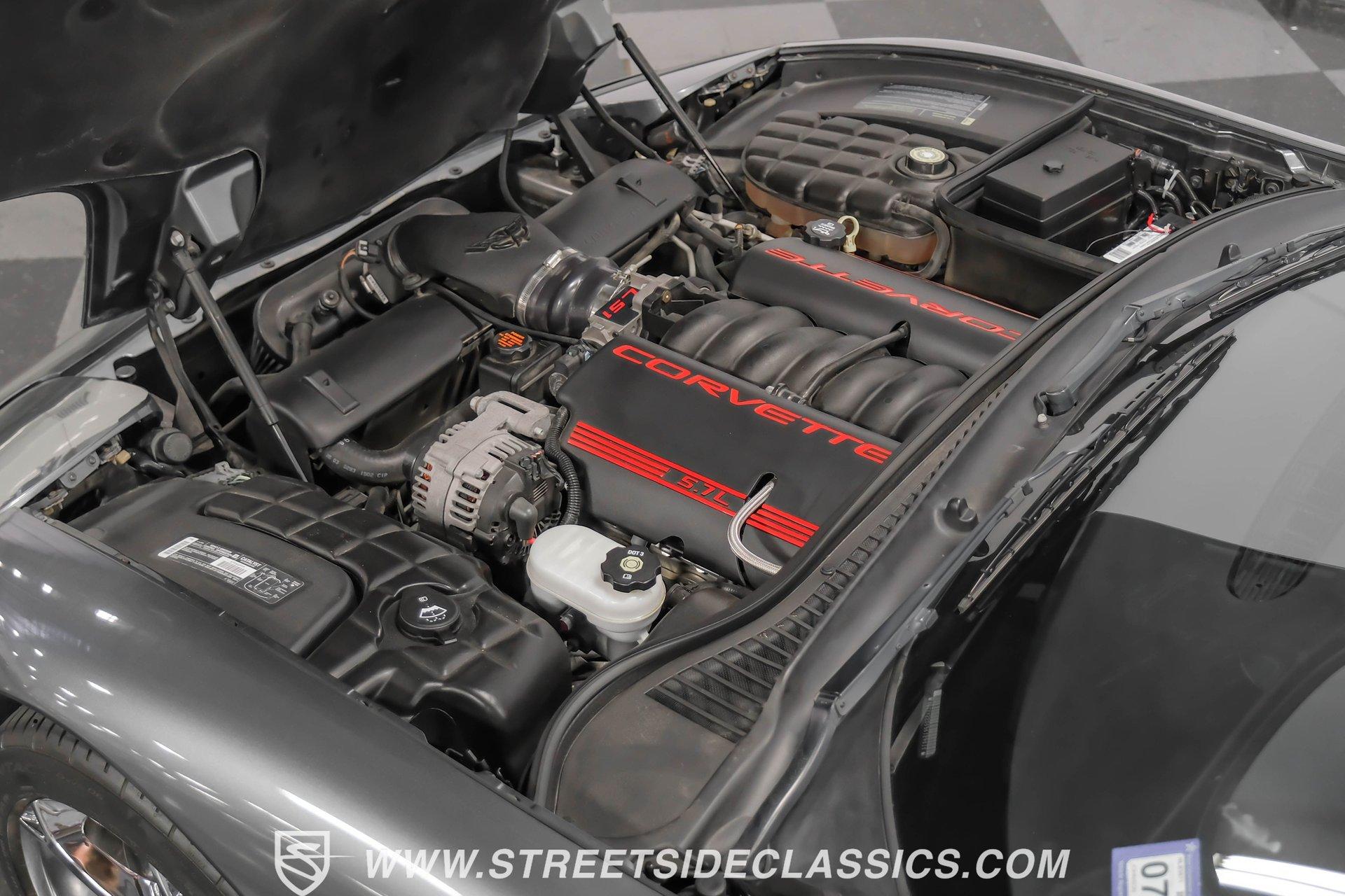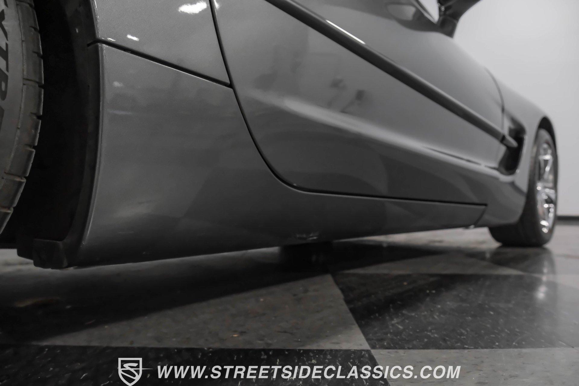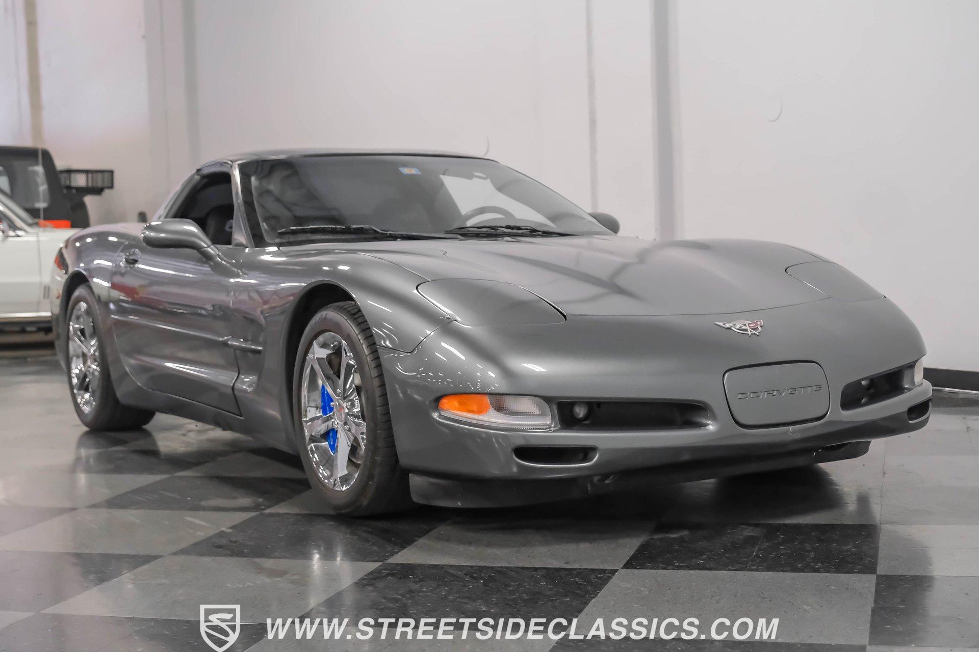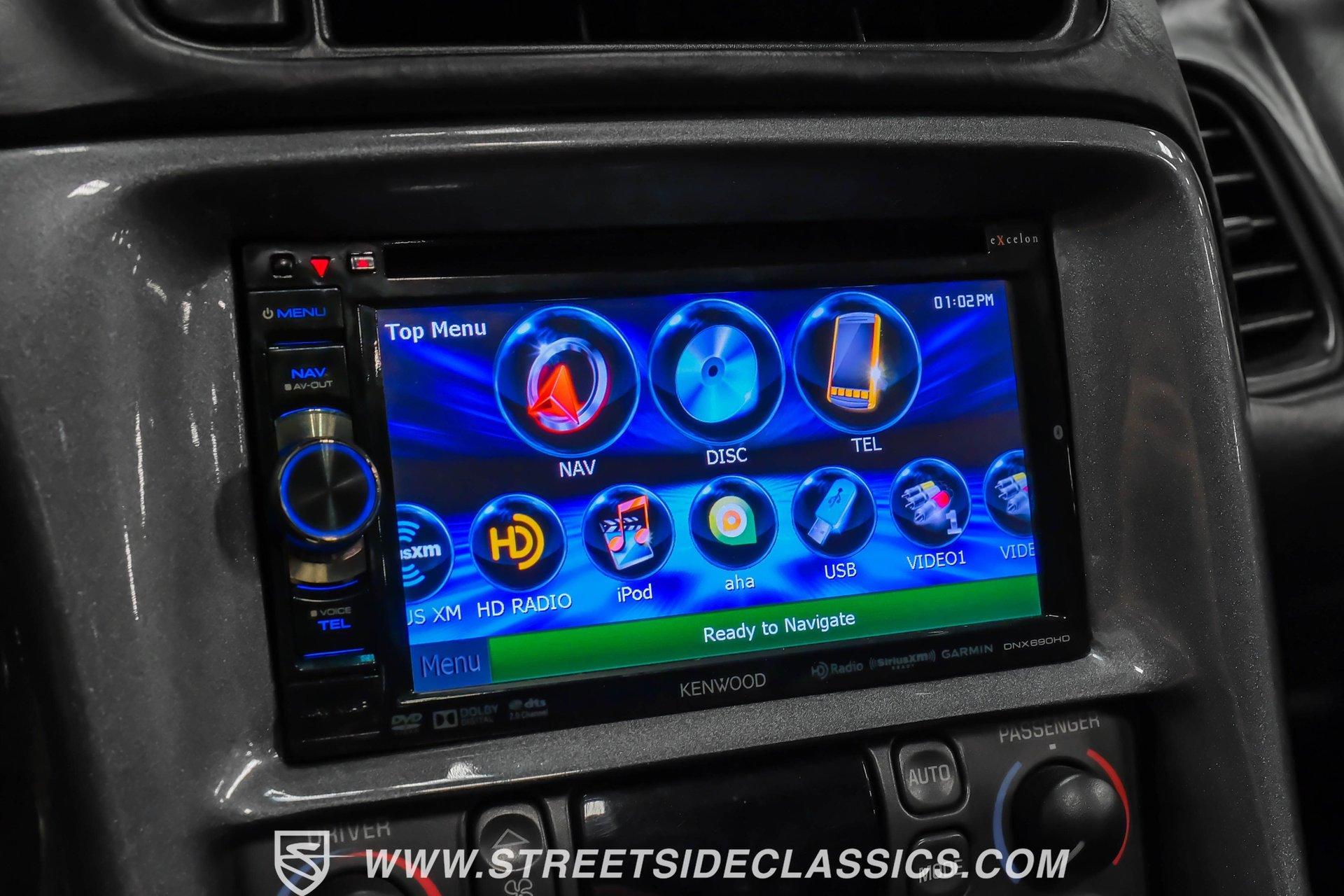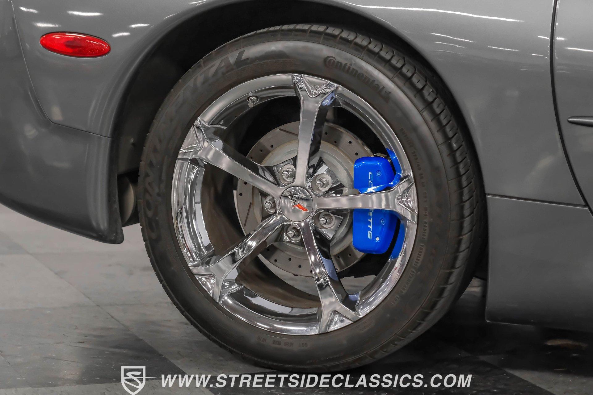 When it debuted in 1997, the fifth generation of Chevy's Corvette was considered by many as the beginning of the modern era of the General's halo car. Lasting almost a decade, this 2003 Chevrolet Corvette represents the 50th model year of the venerable C5. With a mere 60,332 actual miles on its odometer and fully repainted in Medium Spiral Gray Metallic, it appears as though this car has just come off its first lease. With its swoopy lines and color-keyed removable targa top, this Corvette is perfect for anyone who wasn't able to buy one of these gems the first time around. Inside, we find a beautifully redone black leather interior. A locking center console separates a pair of supportive power bucket seats sporting custom embroidery on the headrests. A power-assisted, four-spoke, padded steering wheel featuring the Crossed Flags emblem sits just ahead of the six-pod analog gauge cluster featuring a 7,000 RPM tachometer and 200 mph speedometer. An upgraded Kenwood AM/FM/CD/AUX touchscreen also offers satellite, navigation, and Bluetooth connectivity, while power mirrors, locks, and windows, dual-zone climate control, cruise control, along with air conditioning provide all the modern amenities required for a comfortable drive. Under the signature front-hinged hood, we find an overhead valve 5.7-liter LS1 V-8 engine. With its beautiful Corvette valve covers, aluminum blocks and heads, and composite intake manifold, this modern small block has been upgraded with a performance camshaft, Dynatech long tube headers, and Corsa dual exhaust. Those upgrades have allowed this C5 to produce a dyno-proven 376 horsepower and 337 pound-feet of torque to the rear wheels. Power is routed through a rear-mounted four-speed automatic transmission before heading out to the rear end that transfers that muscle to the tarmac via a set of staggered C6 Grand Sport-style wheels measuring 17 inches up front and 18 inches in the rear. HIGHLIGHTS: Full Medium Spiral Gray Metallic Repaint Color Keyed Targa Top 60,332 Actual Miles LS1 V8 Performance Cam Dynatech Long Tube Headers Corsa Dual Exhaust 376 RWHP 337 RWTQ Four Speed Auto Four Wheel Power Discs Cross Drilled and Slotted Rotors C6 Grand Sport Style Wheels ABS Power Steering Redone Leather Custom Embroidery Power Windows Power Locks Power Seats Power Mirrors Kenwood Touchscreen Satellite Bluetooth Navigation Dyno Sheet Reproduction Window Sticker Receipts This 2003 Chevrolet Corvette is equipped with a fully independent suspension, while four-wheel power disc brakes featuring large cross-drilled and slotted rotors are ready to scrub off speed at a moment's notice. If you missed out on the C5 the first time around, then this low-mileage beauty is your second chance to finally get behind the wheel. Don't wait, call today!