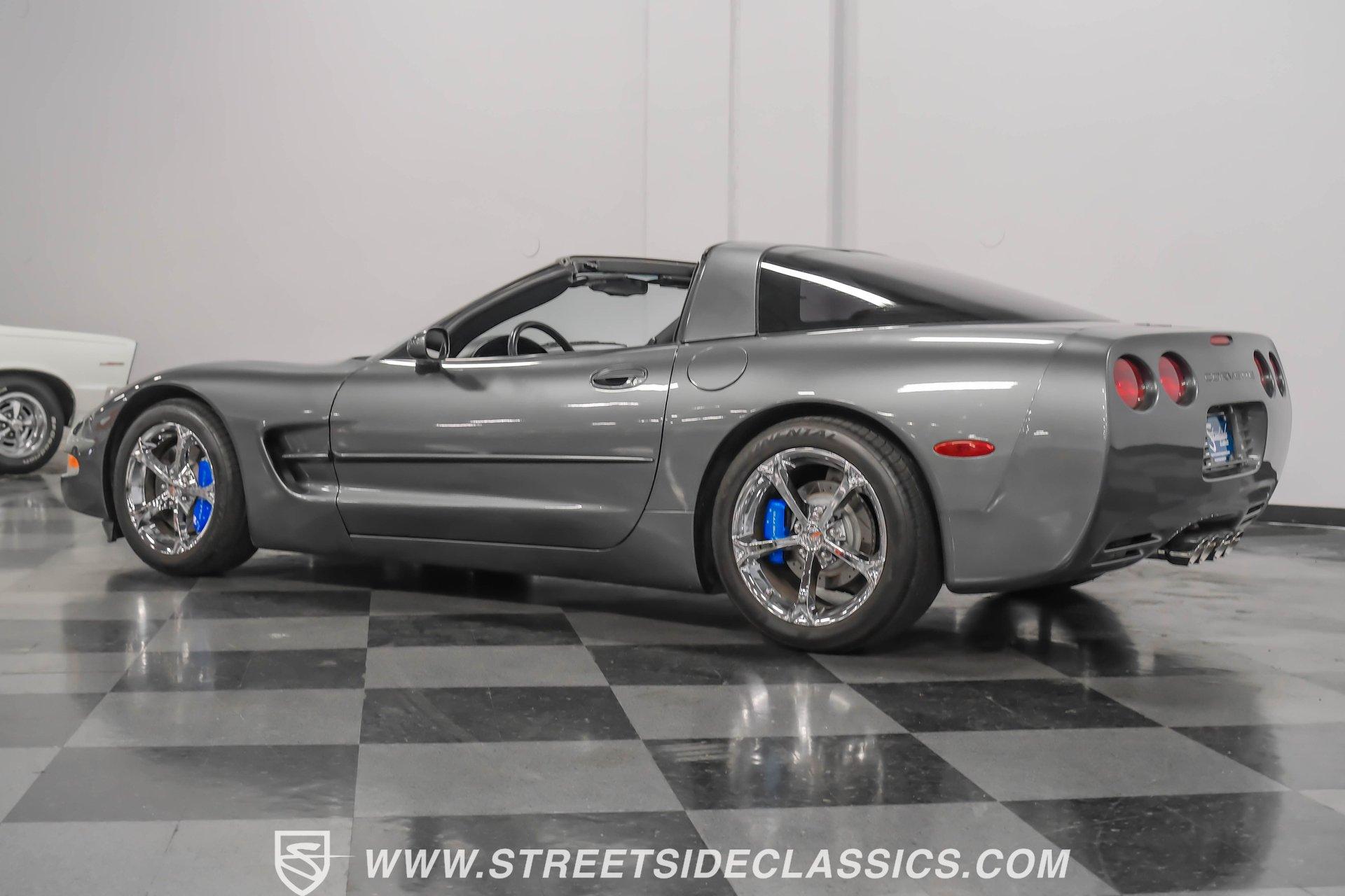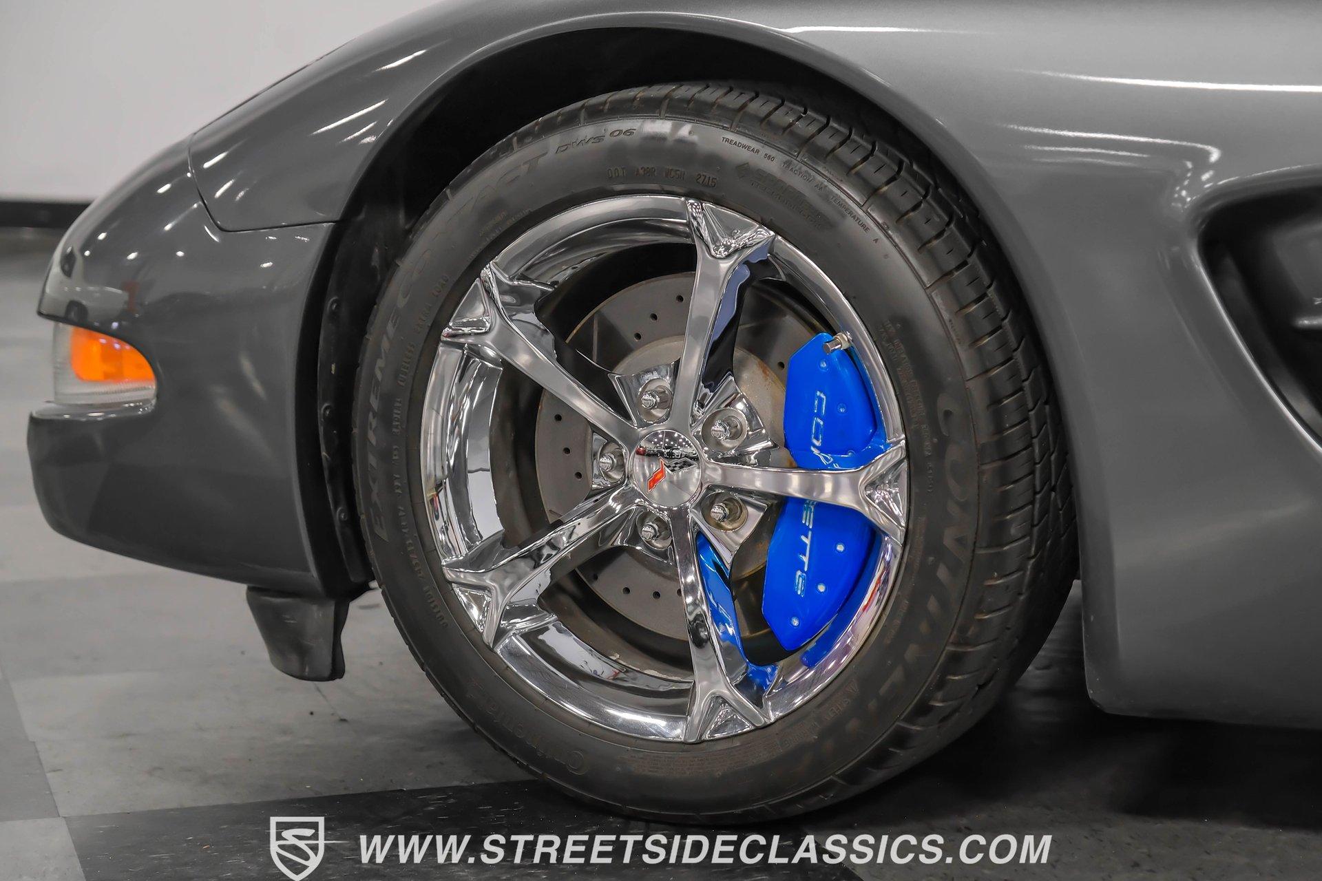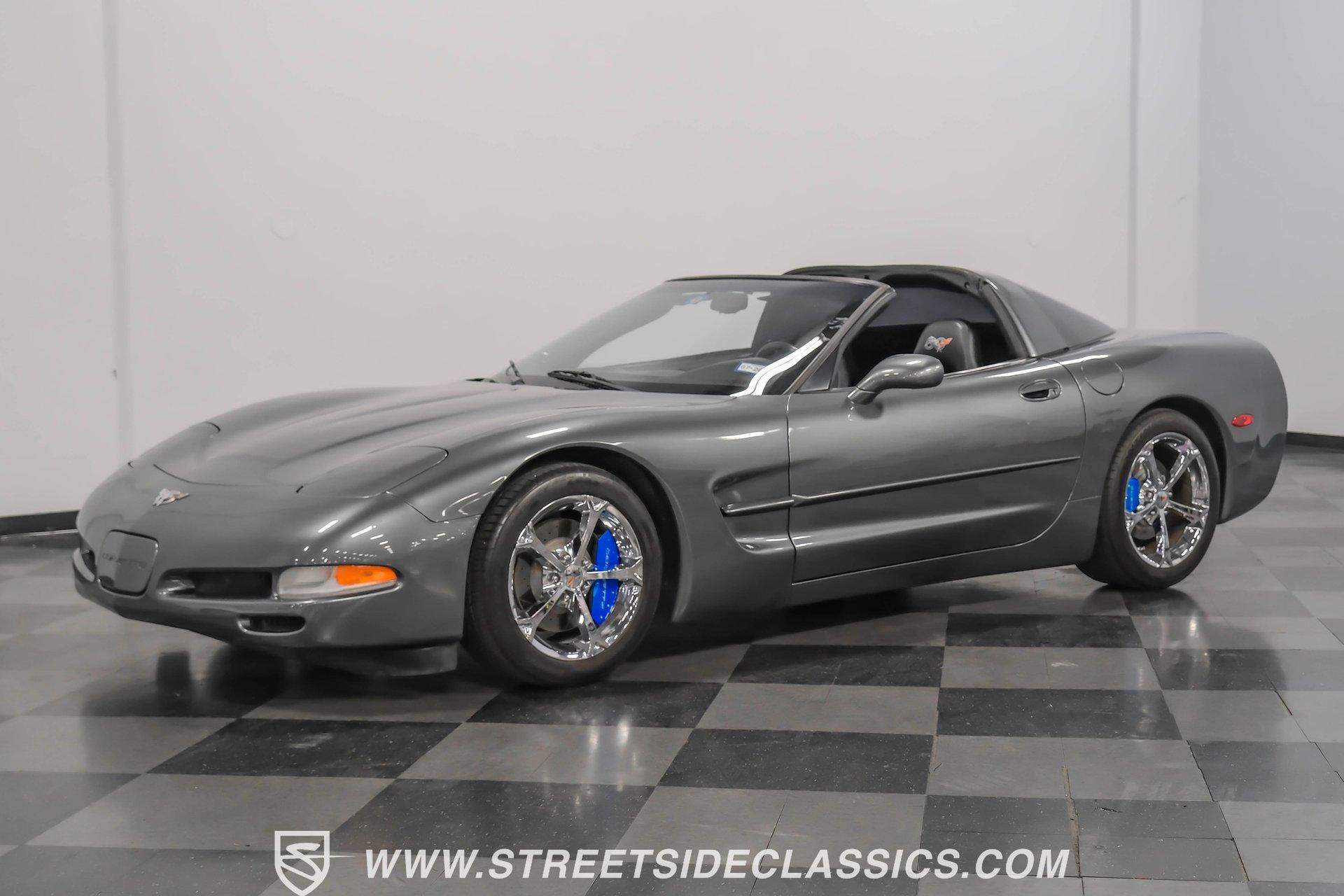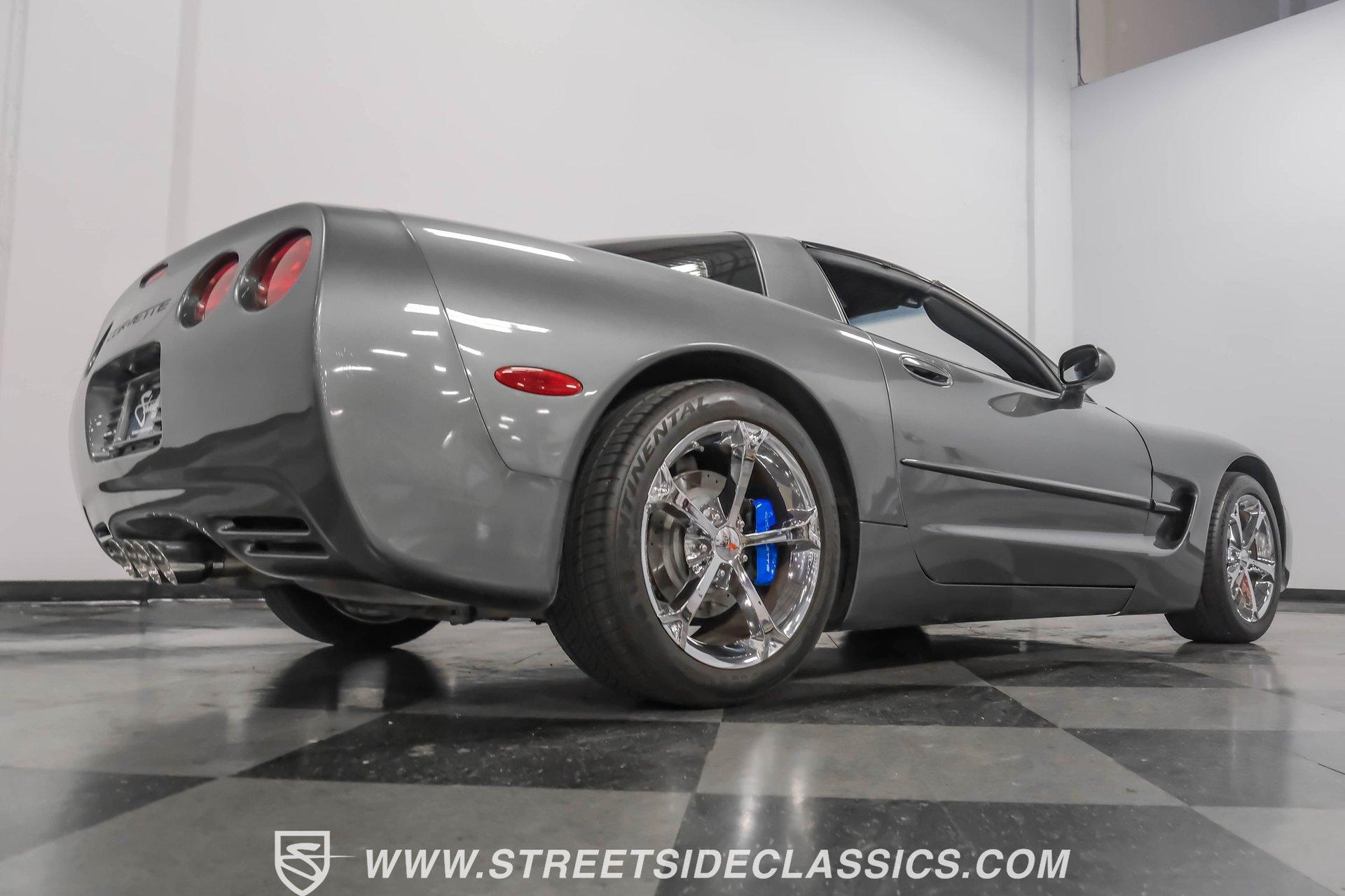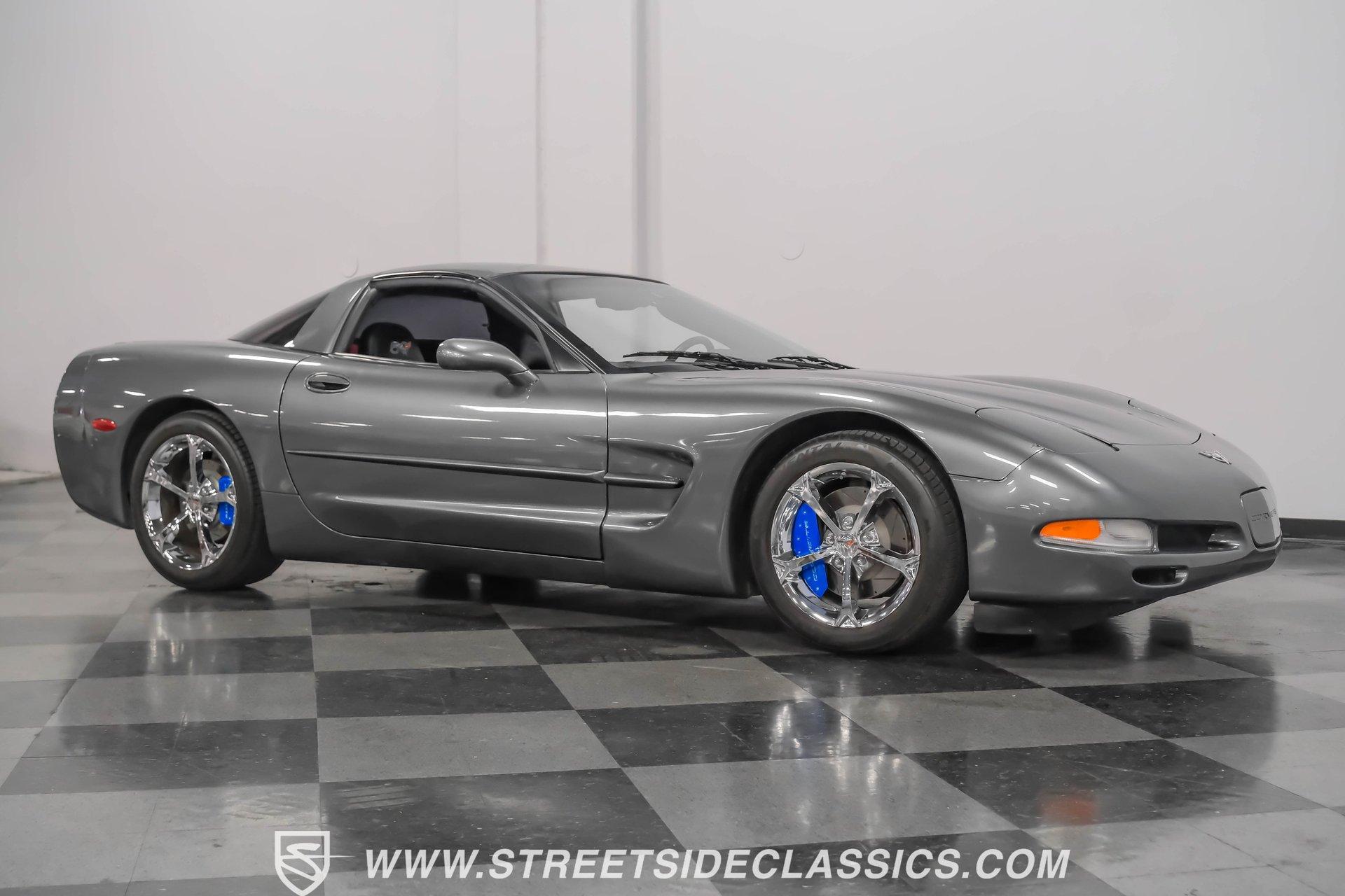 When it debuted in 1997, the fifth generation of Chevy's Corvette was considered by many as the beginning of the modern era of the General's halo car. Lasting almost a decade, this 2003 Chevrolet Corvette represents the 50th model year of the venerable C5. With a mere 60,332 actual miles on its odometer and fully repainted in Medium Spiral Gray Metallic, it appears as though this car has just come off its first lease. With its swoopy lines and color-keyed removable targa top, this Corvette is perfect for anyone who wasn't able to buy one of these gems the first time around. Inside, we find a beautifully redone black leather interior. A locking center console separates a pair of supportive power bucket seats sporting custom embroidery on the headrests. A power-assisted, four-spoke, padded steering wheel featuring the Crossed Flags emblem sits just ahead of the six-pod analog gauge cluster featuring a 7,000 RPM tachometer and 200 mph speedometer. An upgraded Kenwood AM/FM/CD/AUX touchscreen also offers satellite, navigation, and Bluetooth connectivity, while power mirrors, locks, and windows, dual-zone climate control, cruise control, along with air conditioning provide all the modern amenities required for a comfortable drive. Under the signature front-hinged hood, we find an overhead valve 5.7-liter LS1 V-8 engine. With its beautiful Corvette valve covers, aluminum blocks and heads, and composite intake manifold, this modern small block has been upgraded with a performance camshaft, Dynatech long tube headers, and Corsa dual exhaust. Those upgrades have allowed this C5 to produce a dyno-proven 376 horsepower and 337 pound-feet of torque to the rear wheels. Power is routed through a rear-mounted four-speed automatic transmission before heading out to the rear end that transfers that muscle to the tarmac via a set of staggered C6 Grand Sport-style wheels measuring 17 inches up front and 18 inches in the rear. HIGHLIGHTS: Full Medium Spiral Gray Metallic Repaint Color Keyed Targa Top 60,332 Actual Miles LS1 V8 Performance Cam Dynatech Long Tube Headers Corsa Dual Exhaust 376 RWHP 337 RWTQ Four Speed Auto Four Wheel Power Discs Cross Drilled and Slotted Rotors C6 Grand Sport Style Wheels ABS Power Steering Redone Leather Custom Embroidery Power Windows Power Locks Power Seats Power Mirrors Kenwood Touchscreen Satellite Bluetooth Navigation Dyno Sheet Reproduction Window Sticker Receipts This 2003 Chevrolet Corvette is equipped with a fully independent suspension, while four-wheel power disc brakes featuring large cross-drilled and slotted rotors are ready to scrub off speed at a moment's notice. If you missed out on the C5 the first time around, then this low-mileage beauty is your second chance to finally get behind the wheel. Don't wait, call today!