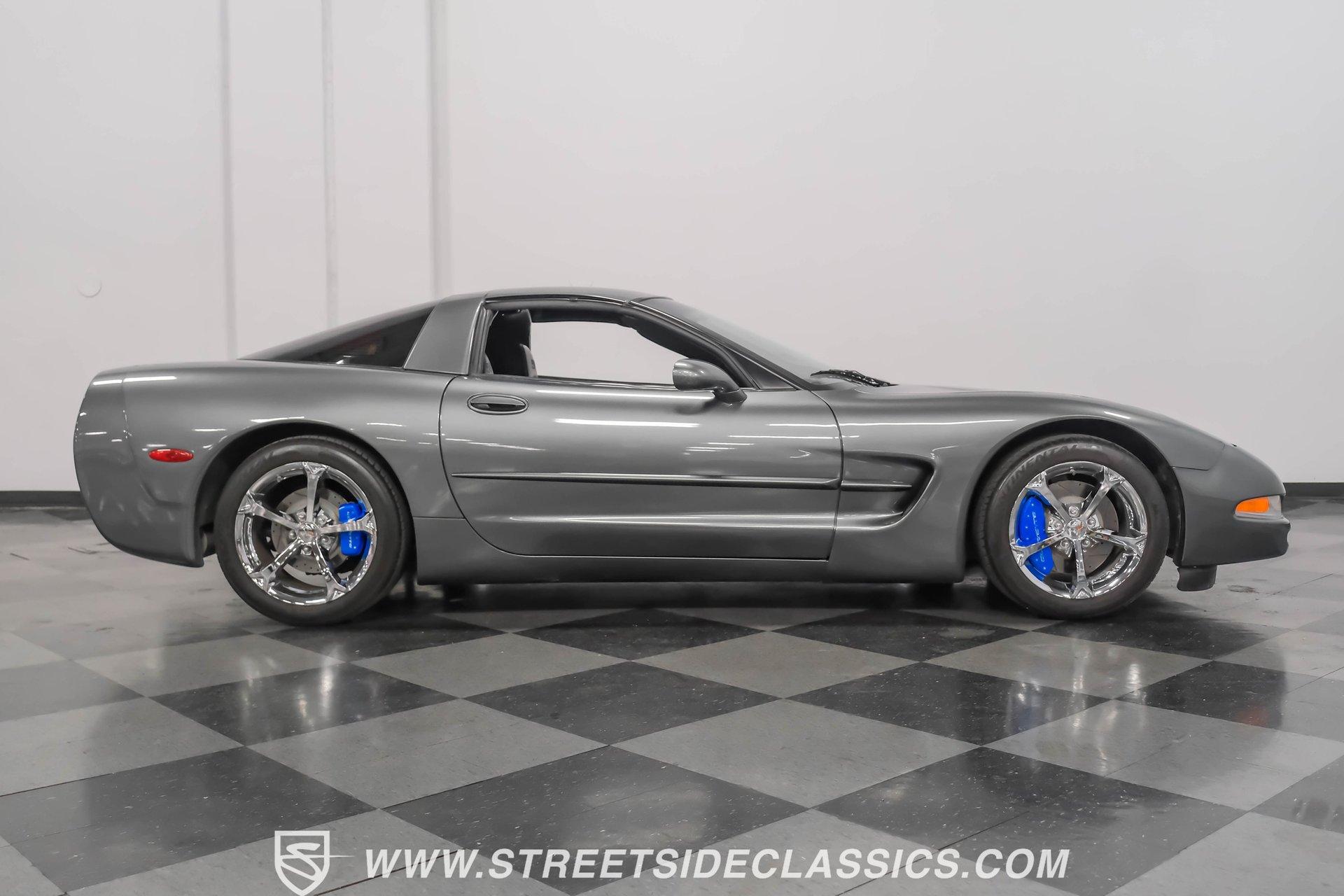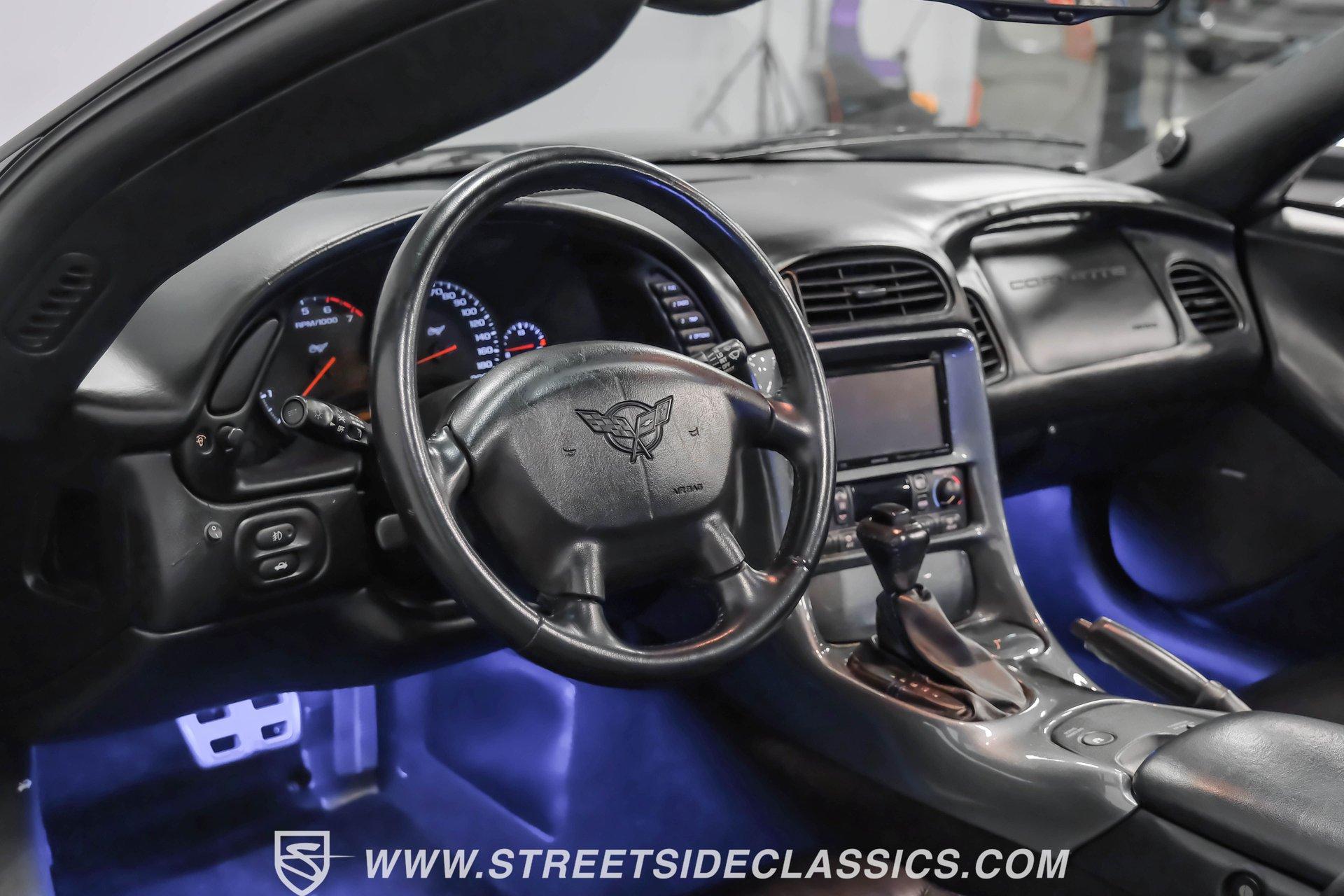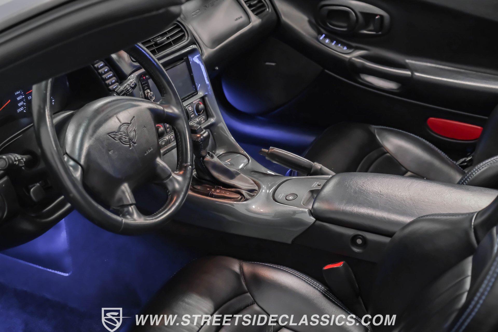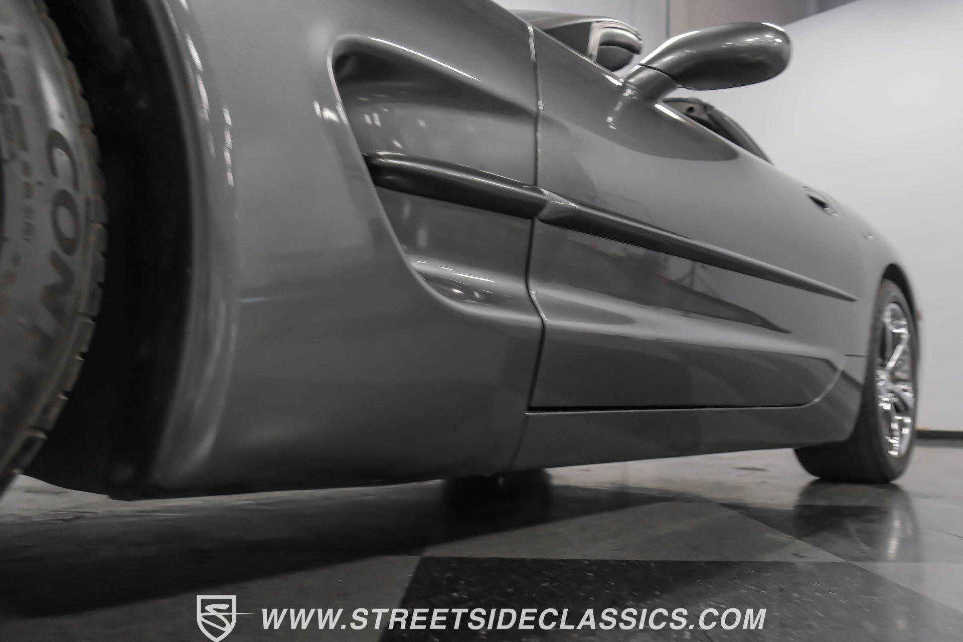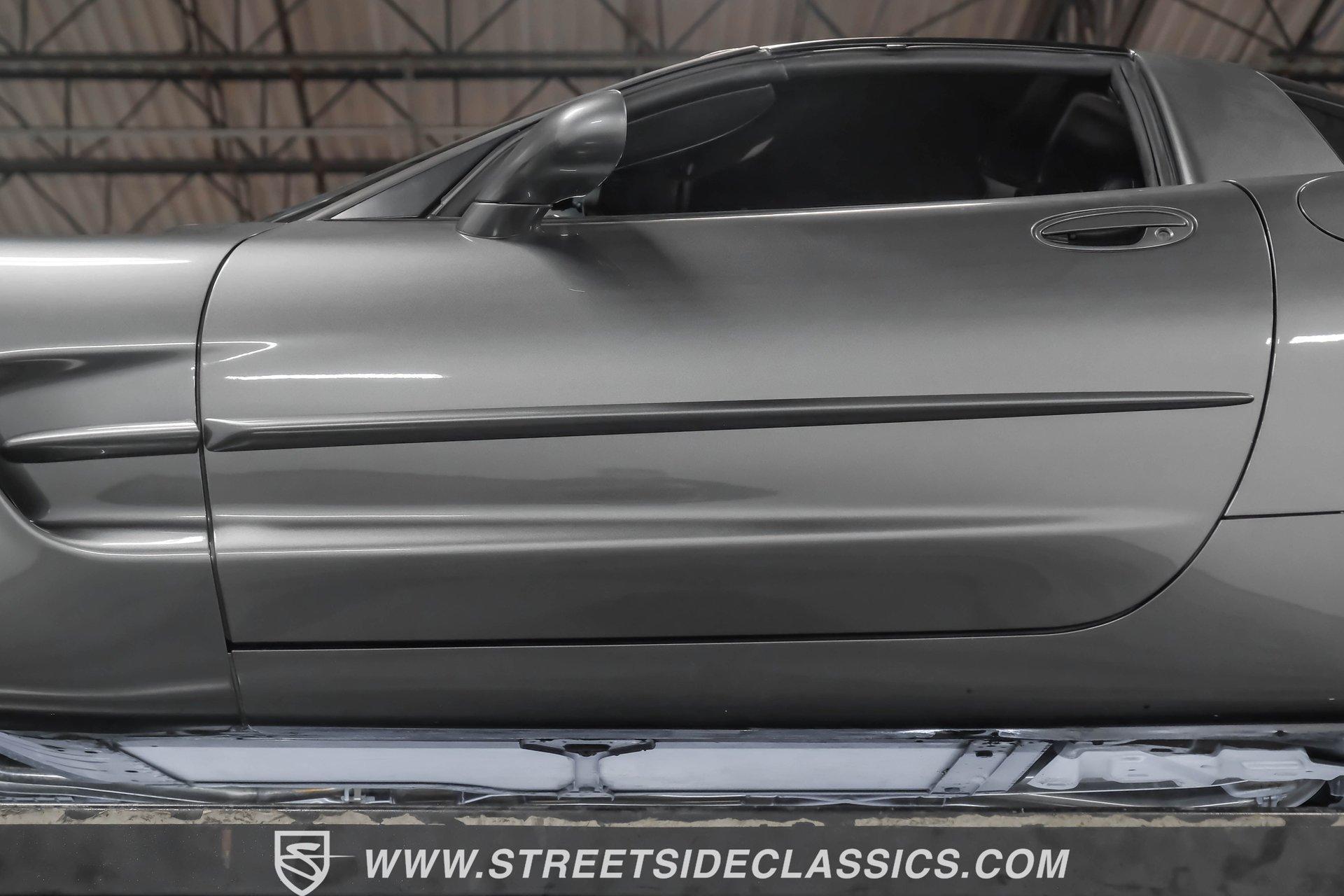 When it debuted in 1997, the fifth generation of Chevy's Corvette was considered by many as the beginning of the modern era of the General's halo car. Lasting almost a decade, this 2003 Chevrolet Corvette represents the 50th model year of the venerable C5. With a mere 60,332 actual miles on its odometer and fully repainted in Medium Spiral Gray Metallic, it appears as though this car has just come off its first lease. With its swoopy lines and color-keyed removable targa top, this Corvette is perfect for anyone who wasn't able to buy one of these gems the first time around. Inside, we find a beautifully redone black leather interior. A locking center console separates a pair of supportive power bucket seats sporting custom embroidery on the headrests. A power-assisted, four-spoke, padded steering wheel featuring the Crossed Flags emblem sits just ahead of the six-pod analog gauge cluster featuring a 7,000 RPM tachometer and 200 mph speedometer. An upgraded Kenwood AM/FM/CD/AUX touchscreen also offers satellite, navigation, and Bluetooth connectivity, while power mirrors, locks, and windows, dual-zone climate control, cruise control, along with air conditioning provide all the modern amenities required for a comfortable drive. Under the signature front-hinged hood, we find an overhead valve 5.7-liter LS1 V-8 engine. With its beautiful Corvette valve covers, aluminum blocks and heads, and composite intake manifold, this modern small block has been upgraded with a performance camshaft, Dynatech long tube headers, and Corsa dual exhaust. Those upgrades have allowed this C5 to produce a dyno-proven 376 horsepower and 337 pound-feet of torque to the rear wheels. Power is routed through a rear-mounted four-speed automatic transmission before heading out to the rear end that transfers that muscle to the tarmac via a set of staggered C6 Grand Sport-style wheels measuring 17 inches up front and 18 inches in the rear. HIGHLIGHTS: Full Medium Spiral Gray Metallic Repaint Color Keyed Targa Top 60,332 Actual Miles LS1 V8 Performance Cam Dynatech Long Tube Headers Corsa Dual Exhaust 376 RWHP 337 RWTQ Four Speed Auto Four Wheel Power Discs Cross Drilled and Slotted Rotors C6 Grand Sport Style Wheels ABS Power Steering Redone Leather Custom Embroidery Power Windows Power Locks Power Seats Power Mirrors Kenwood Touchscreen Satellite Bluetooth Navigation Dyno Sheet Reproduction Window Sticker Receipts This 2003 Chevrolet Corvette is equipped with a fully independent suspension, while four-wheel power disc brakes featuring large cross-drilled and slotted rotors are ready to scrub off speed at a moment's notice. If you missed out on the C5 the first time around, then this low-mileage beauty is your second chance to finally get behind the wheel. Don't wait, call today!