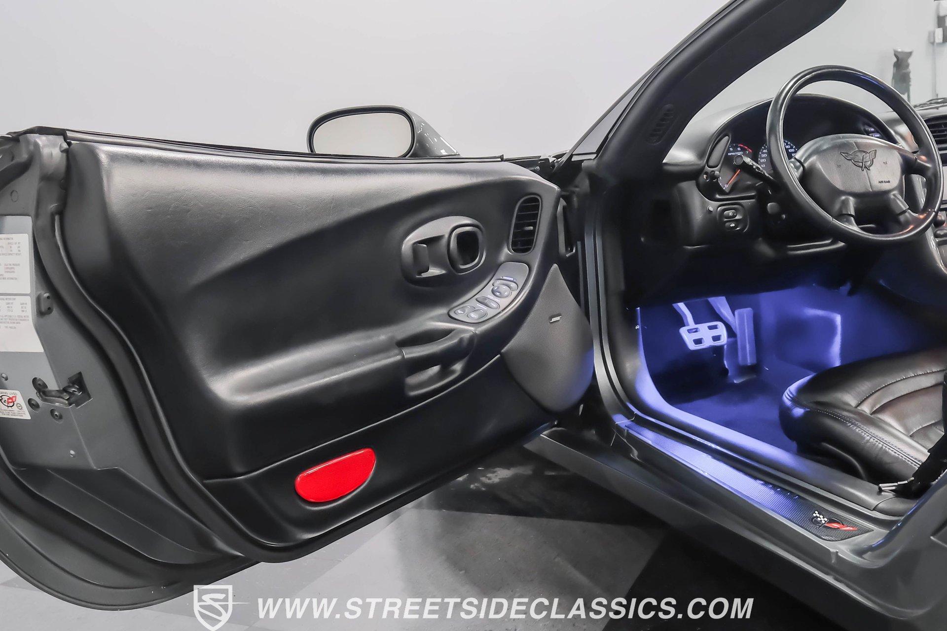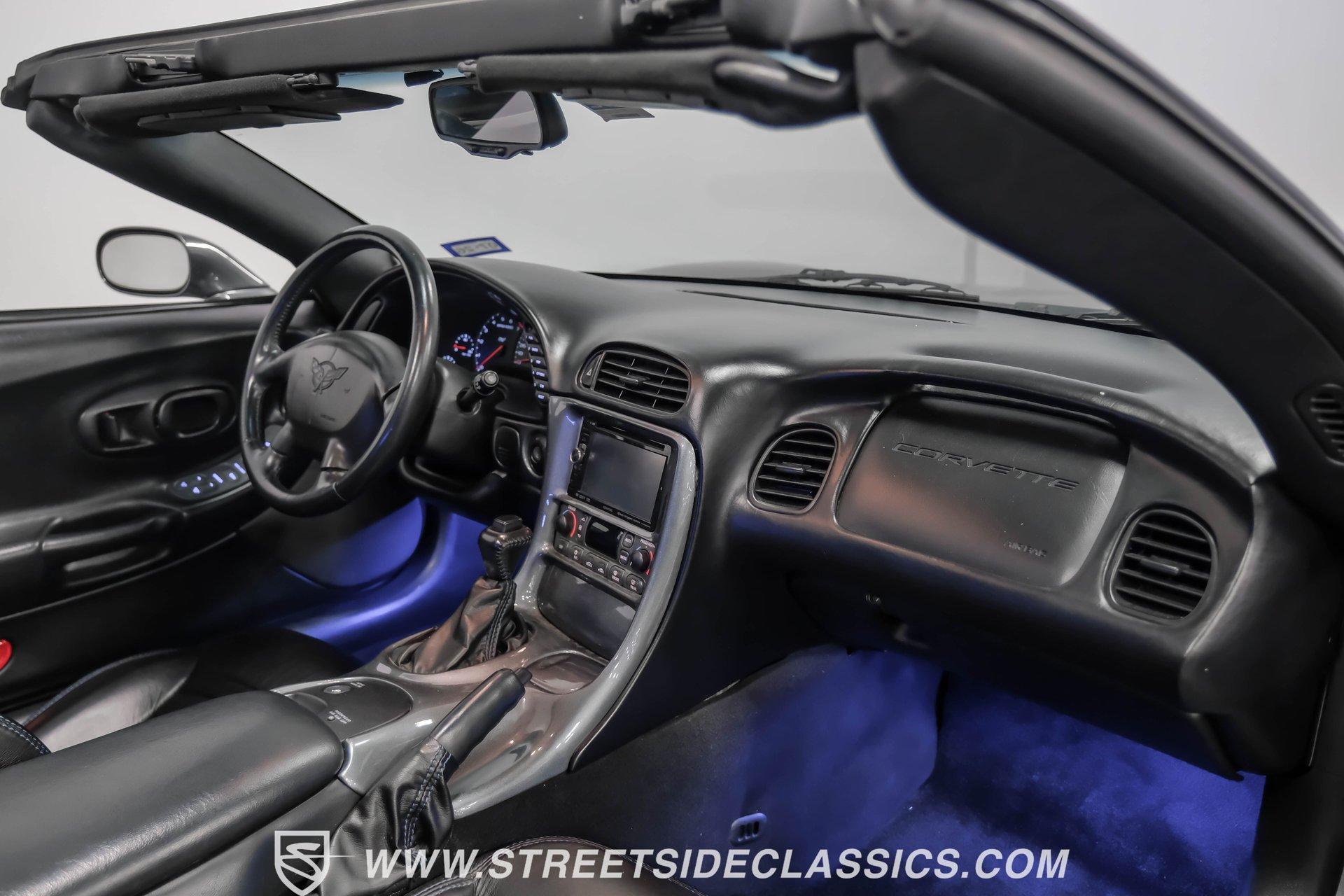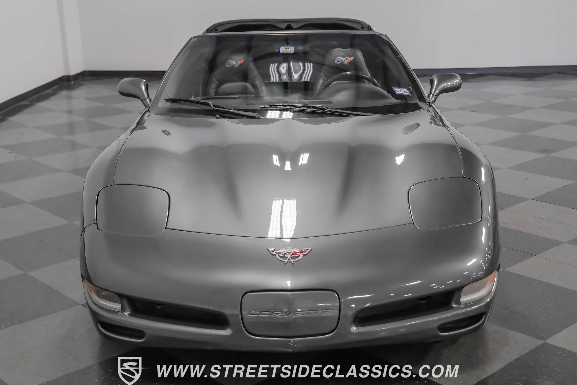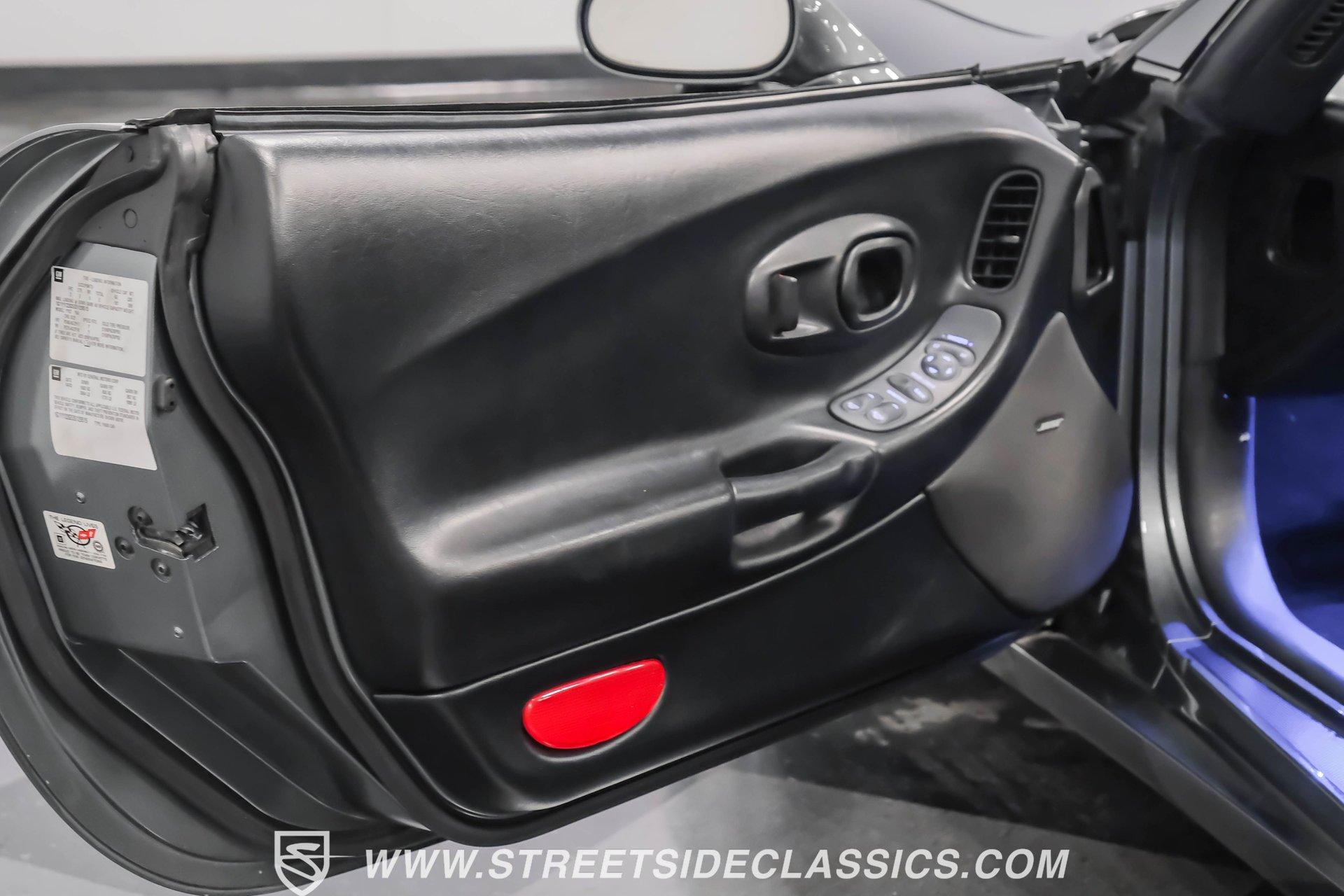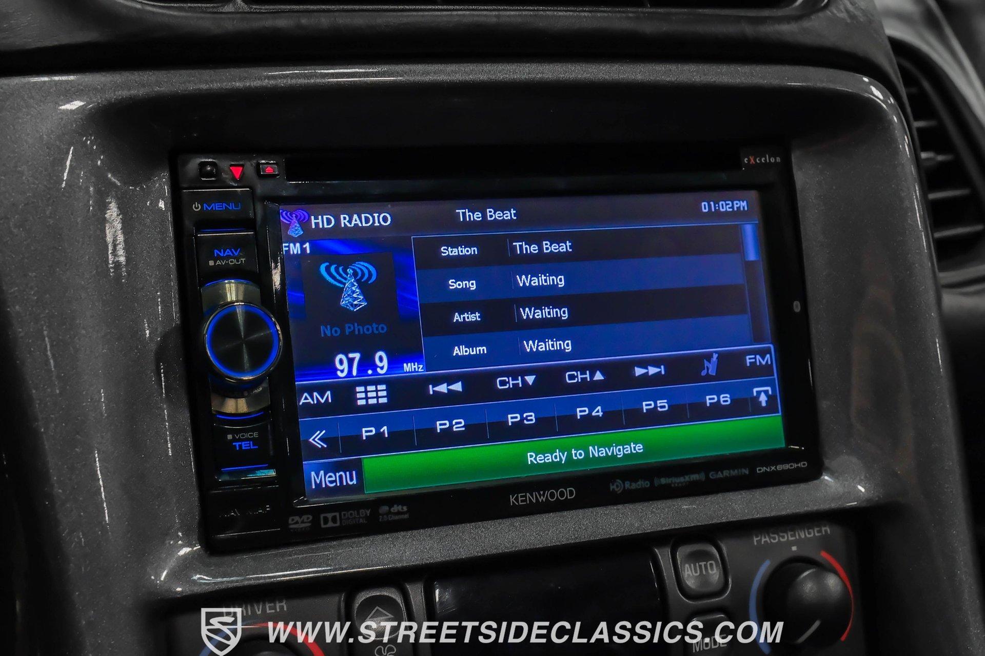 When it debuted in 1997, the fifth generation of Chevy's Corvette was considered by many as the beginning of the modern era of the General's halo car. Lasting almost a decade, this 2003 Chevrolet Corvette represents the 50th model year of the venerable C5. With a mere 60,332 actual miles on its odometer and fully repainted in Medium Spiral Gray Metallic, it appears as though this car has just come off its first lease. With its swoopy lines and color-keyed removable targa top, this Corvette is perfect for anyone who wasn't able to buy one of these gems the first time around. Inside, we find a beautifully redone black leather interior. A locking center console separates a pair of supportive power bucket seats sporting custom embroidery on the headrests. A power-assisted, four-spoke, padded steering wheel featuring the Crossed Flags emblem sits just ahead of the six-pod analog gauge cluster featuring a 7,000 RPM tachometer and 200 mph speedometer. An upgraded Kenwood AM/FM/CD/AUX touchscreen also offers satellite, navigation, and Bluetooth connectivity, while power mirrors, locks, and windows, dual-zone climate control, cruise control, along with air conditioning provide all the modern amenities required for a comfortable drive. Under the signature front-hinged hood, we find an overhead valve 5.7-liter LS1 V-8 engine. With its beautiful Corvette valve covers, aluminum blocks and heads, and composite intake manifold, this modern small block has been upgraded with a performance camshaft, Dynatech long tube headers, and Corsa dual exhaust. Those upgrades have allowed this C5 to produce a dyno-proven 376 horsepower and 337 pound-feet of torque to the rear wheels. Power is routed through a rear-mounted four-speed automatic transmission before heading out to the rear end that transfers that muscle to the tarmac via a set of staggered C6 Grand Sport-style wheels measuring 17 inches up front and 18 inches in the rear. HIGHLIGHTS: Full Medium Spiral Gray Metallic Repaint Color Keyed Targa Top 60,332 Actual Miles LS1 V8 Performance Cam Dynatech Long Tube Headers Corsa Dual Exhaust 376 RWHP 337 RWTQ Four Speed Auto Four Wheel Power Discs Cross Drilled and Slotted Rotors C6 Grand Sport Style Wheels ABS Power Steering Redone Leather Custom Embroidery Power Windows Power Locks Power Seats Power Mirrors Kenwood Touchscreen Satellite Bluetooth Navigation Dyno Sheet Reproduction Window Sticker Receipts This 2003 Chevrolet Corvette is equipped with a fully independent suspension, while four-wheel power disc brakes featuring large cross-drilled and slotted rotors are ready to scrub off speed at a moment's notice. If you missed out on the C5 the first time around, then this low-mileage beauty is your second chance to finally get behind the wheel. Don't wait, call today!
