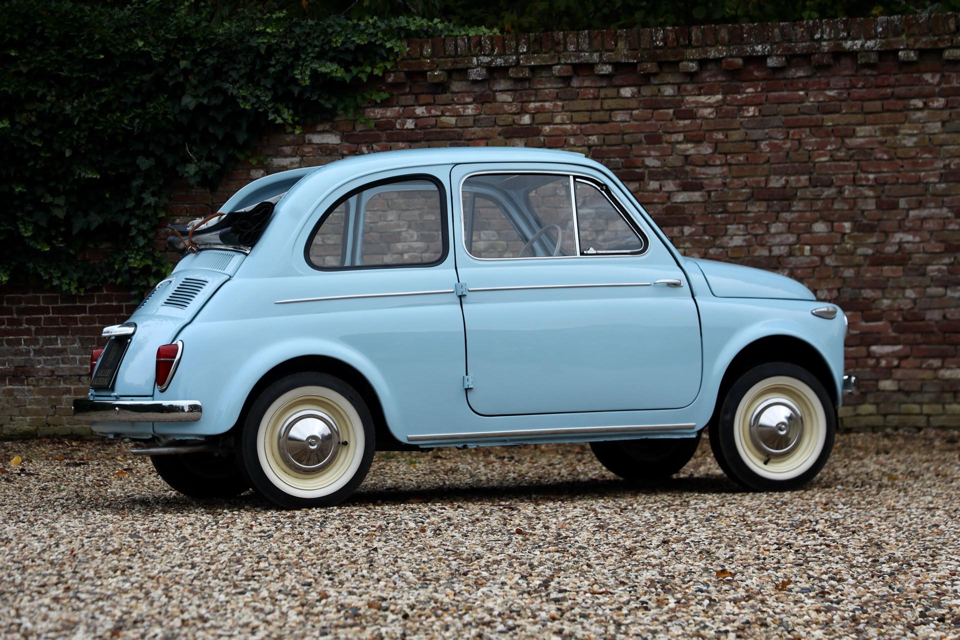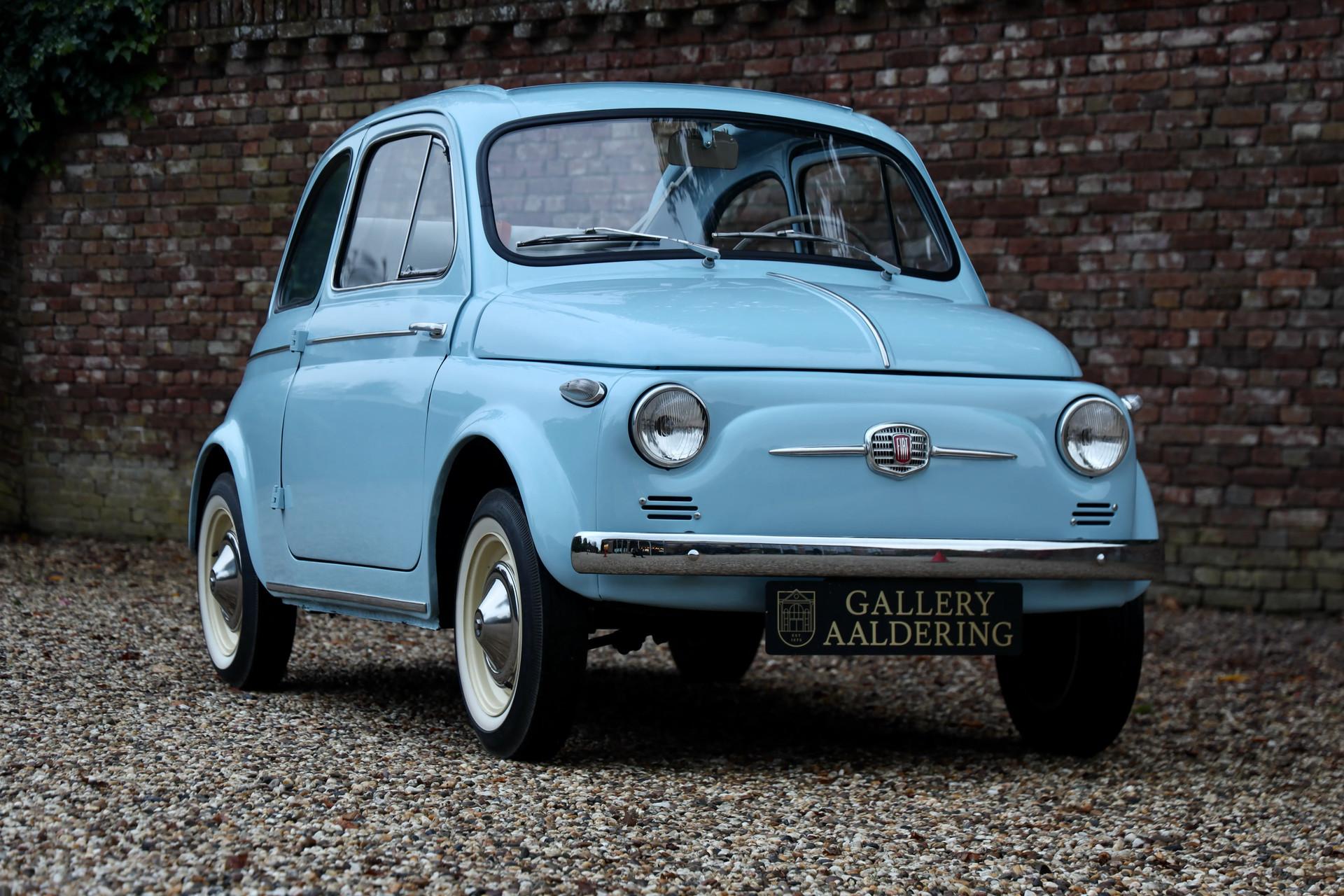 Charming, isn't it? This 1958 Fiat 500N Trasformabile is a small marvel of Italian engineering, culture, and optimism, all wrapped into less than three meters of pure emotion. Finished in a delightful light blue with whitewall tires, this example has been fully restored to original specifications, down to the very last detail. Everything is just right: the deep luster of the paintwork, the elegant upholstery, the correct identification plates, and the meticulously finished engine bay.